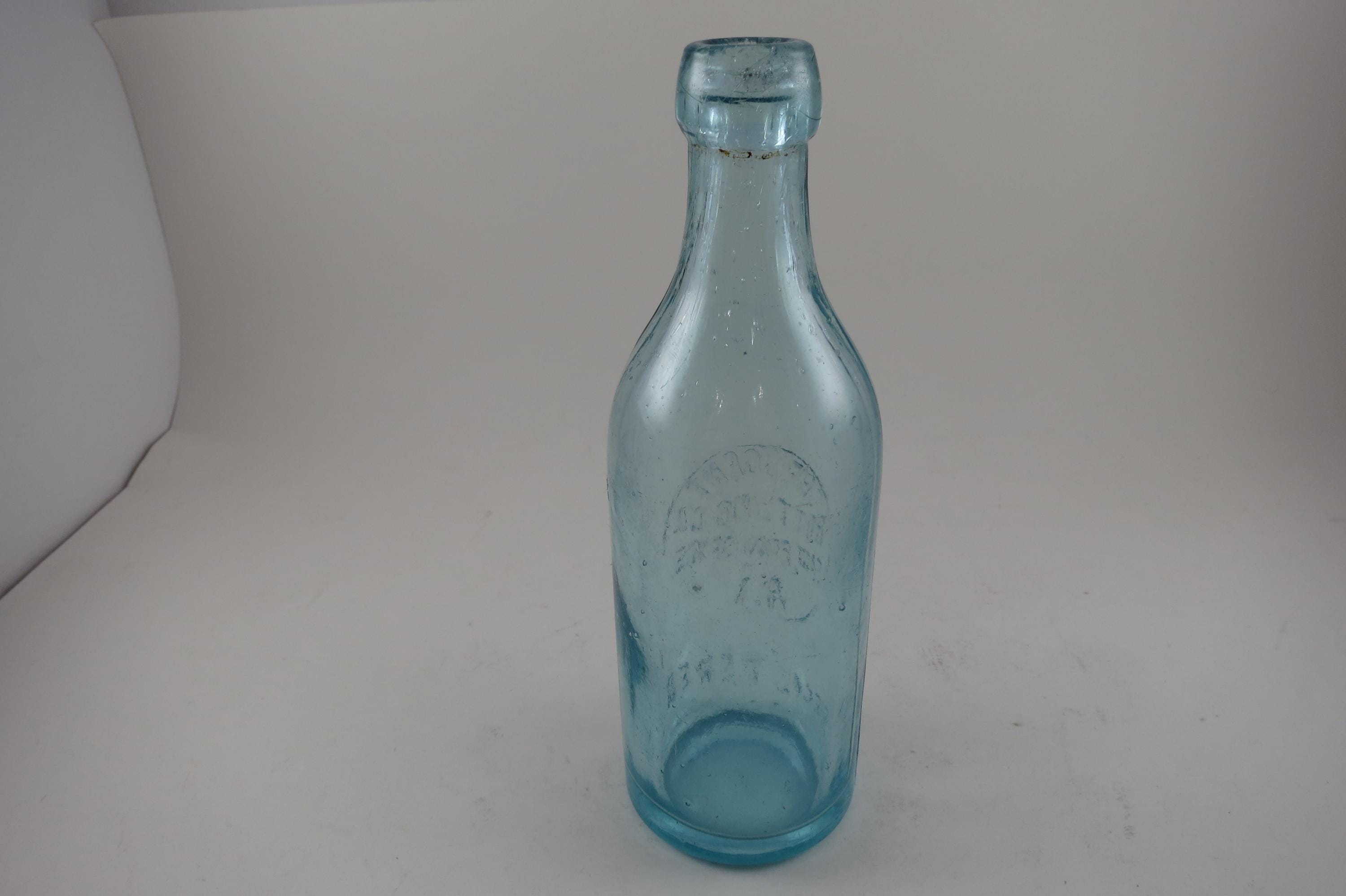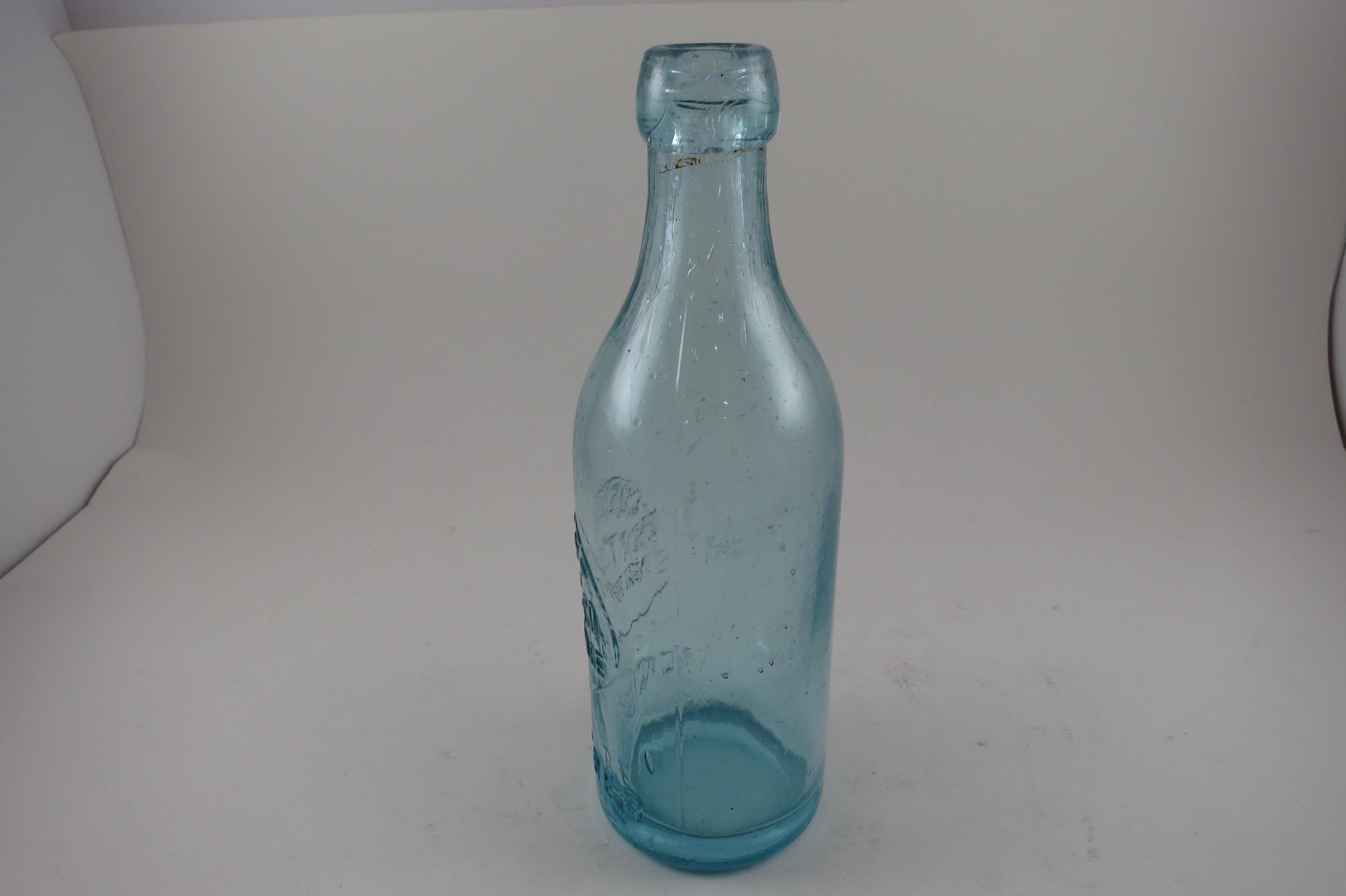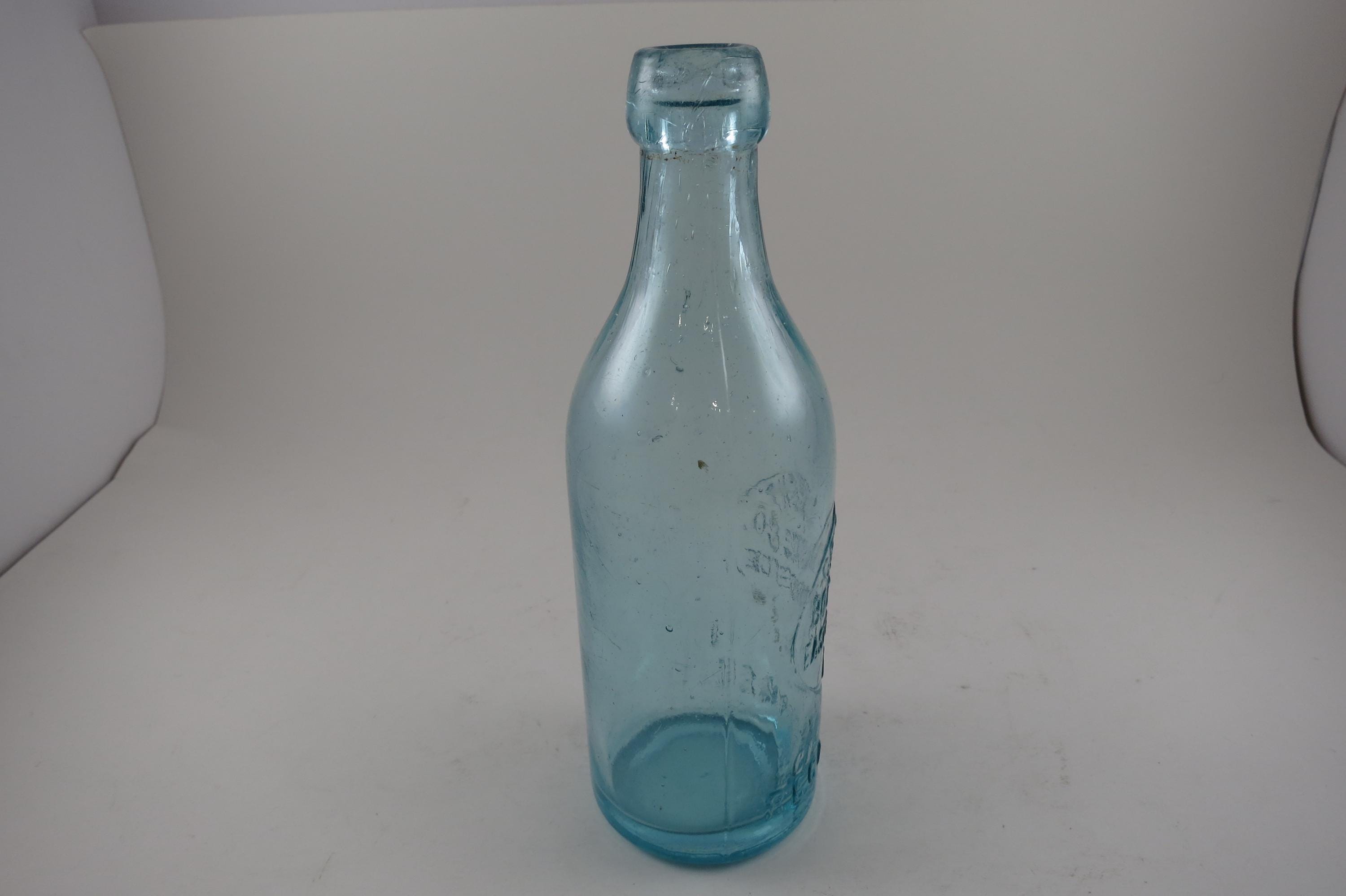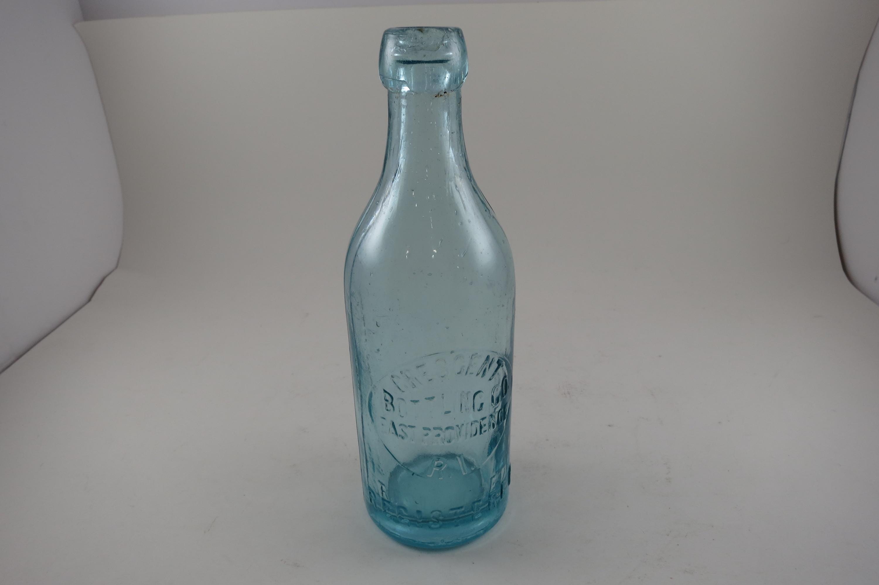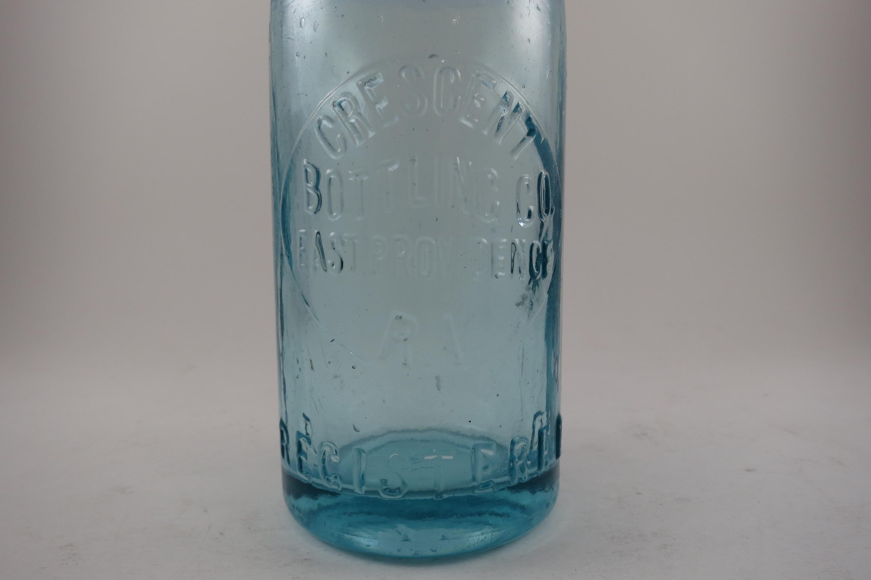 Embossed Aqua Crescent Bottling Company Embossed Bottle East Providence RI.