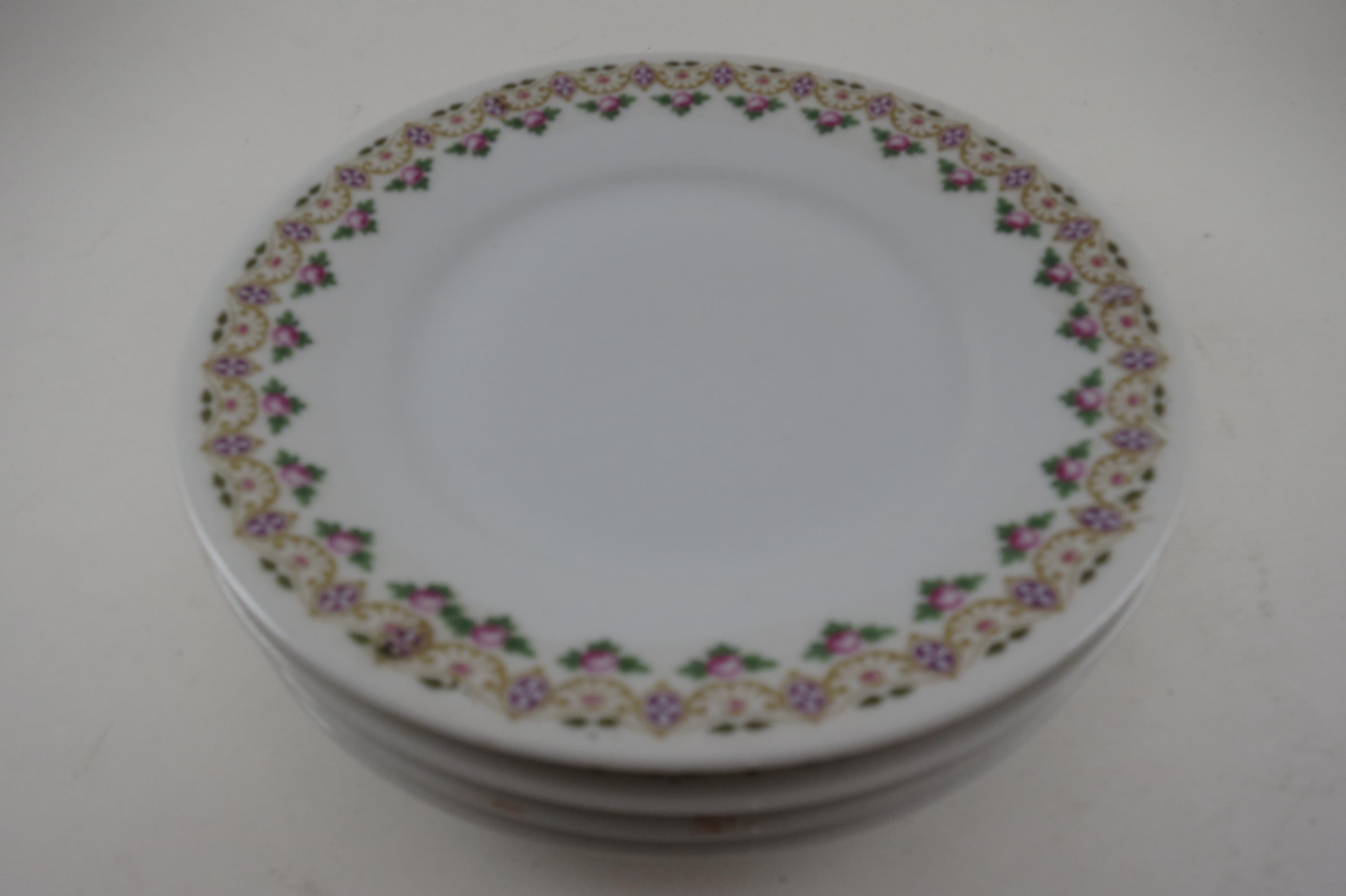 Vintage Purple Gold Green Floral Hand Painted Bread Plates-Set of 4
