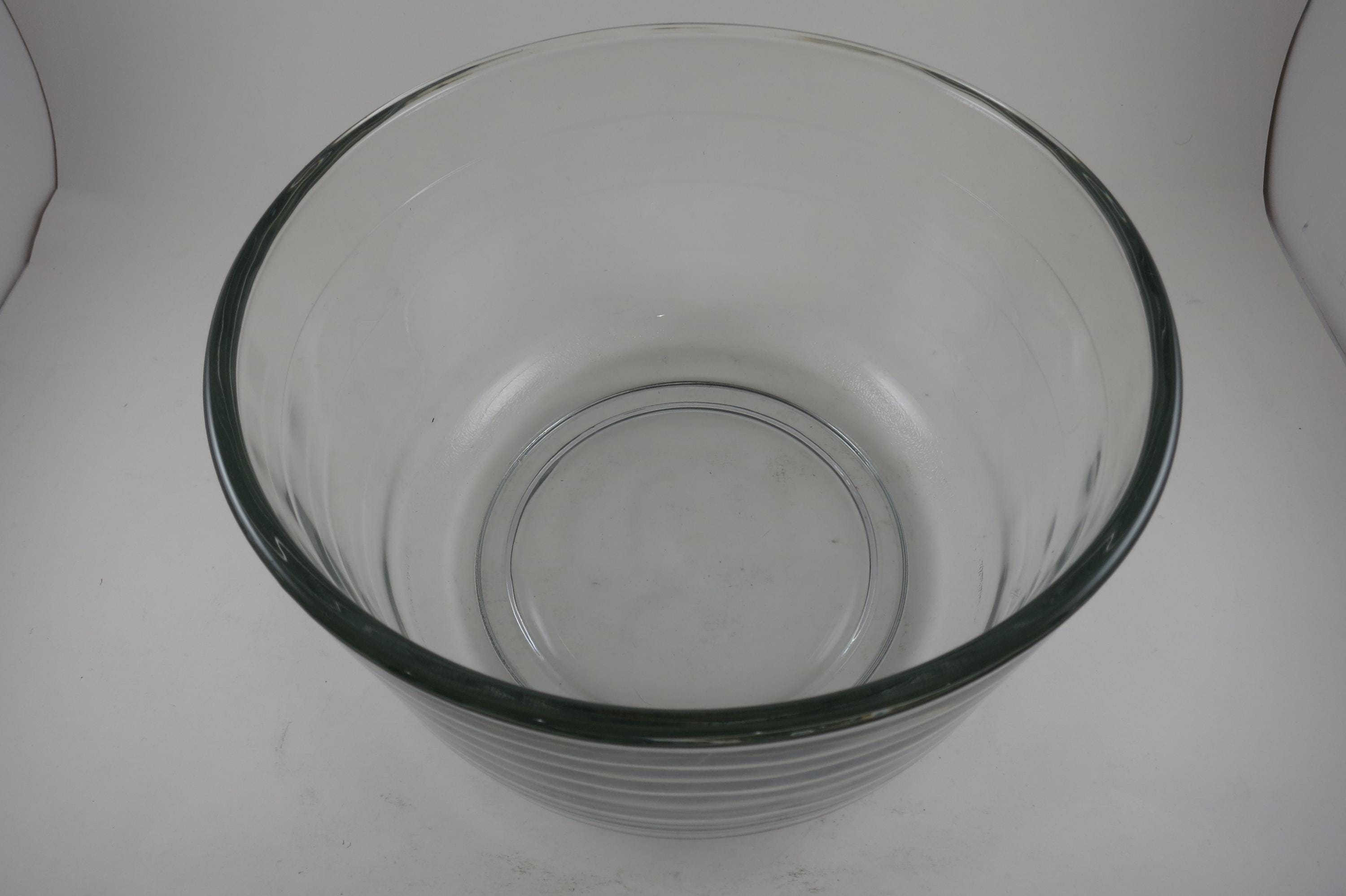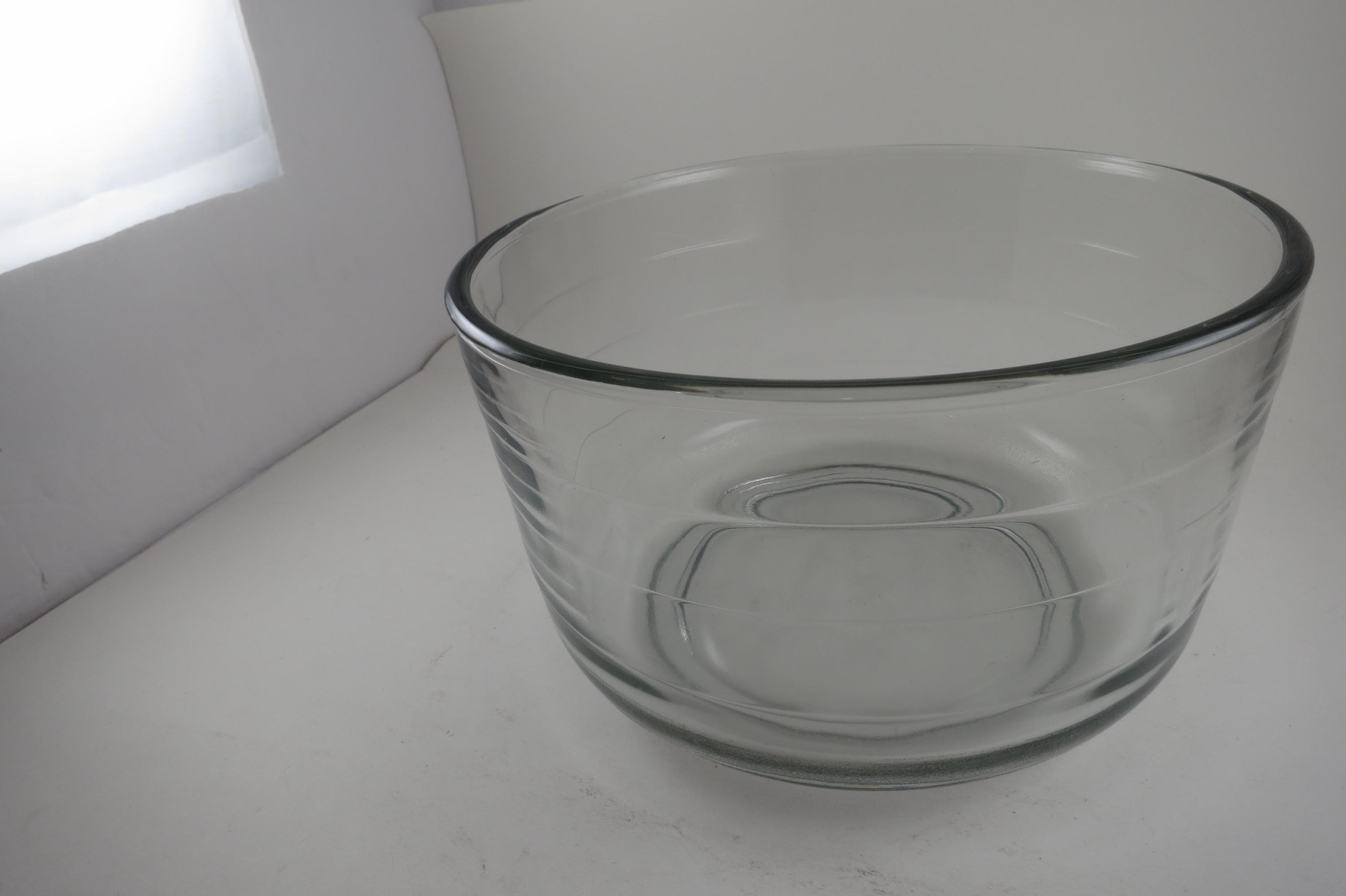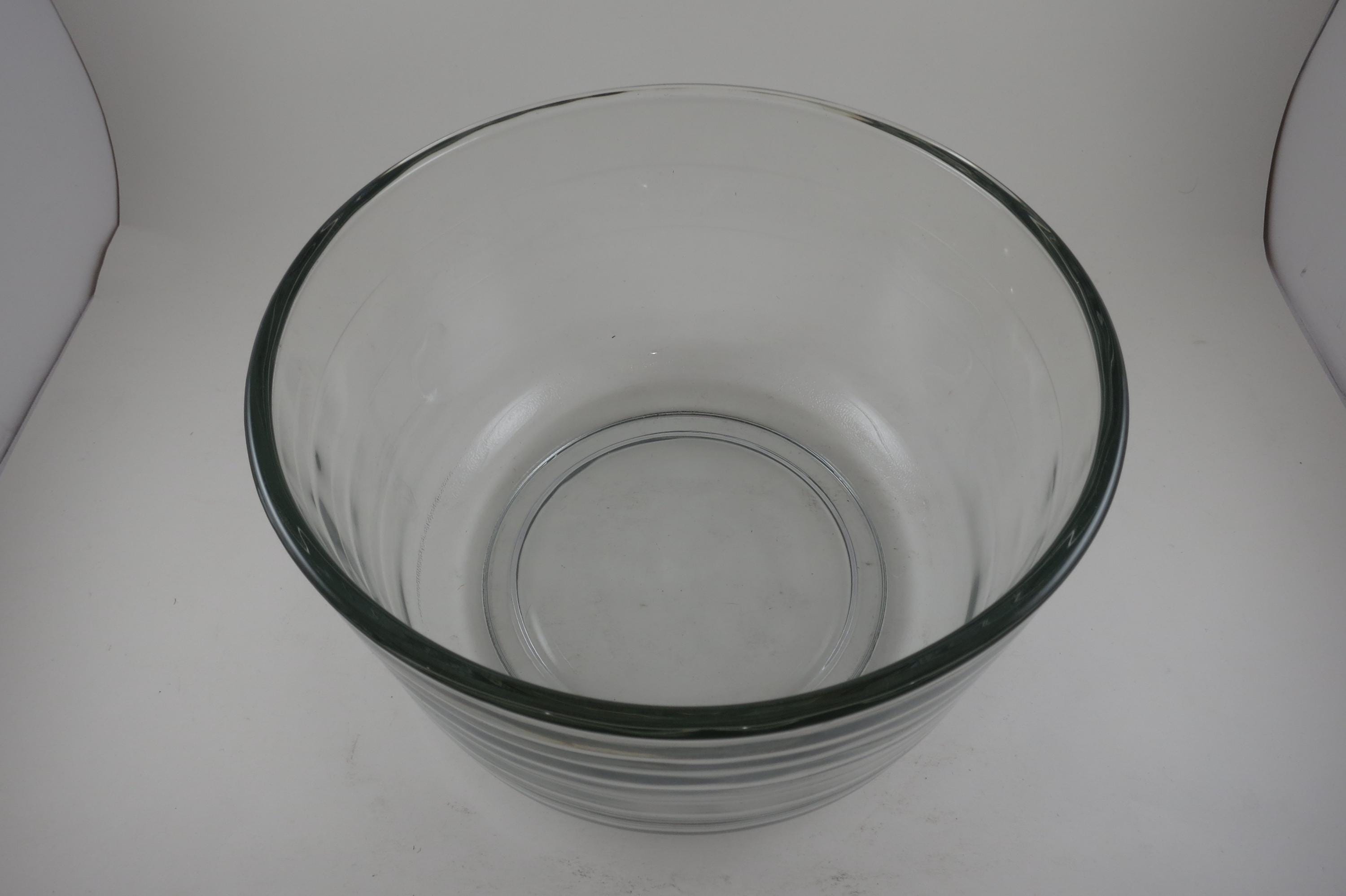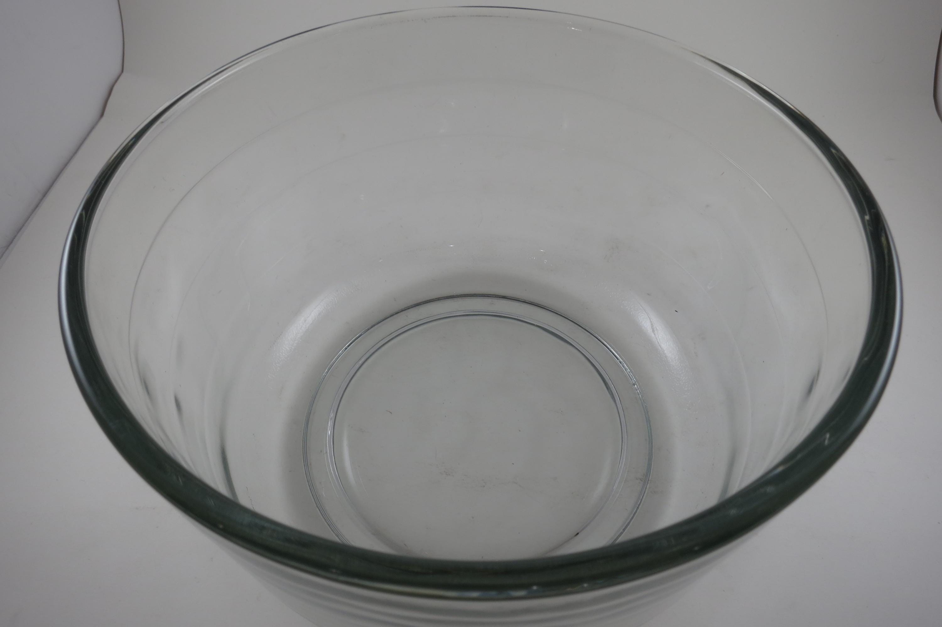 Large Ribbed Glass 9 Inch Mixing Bowl. 5 1/2 inches deep. Like New Condition.