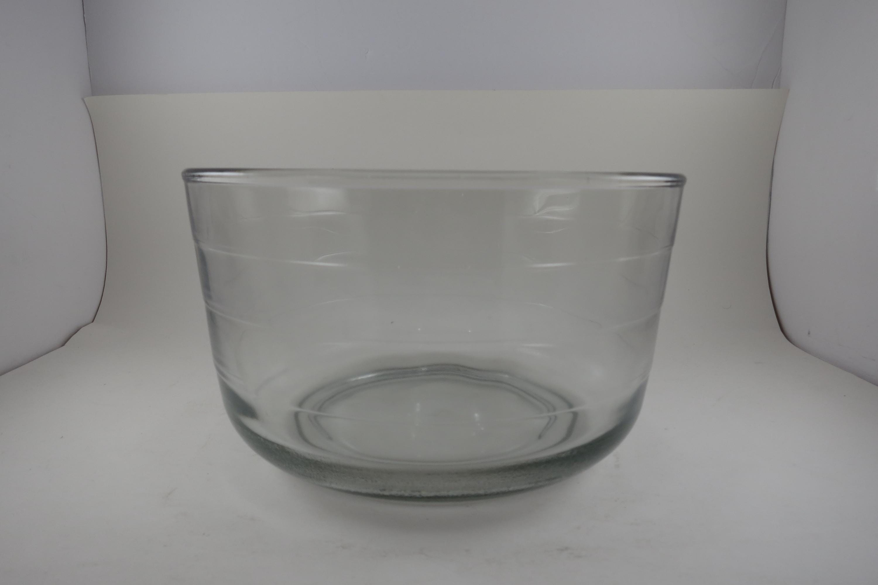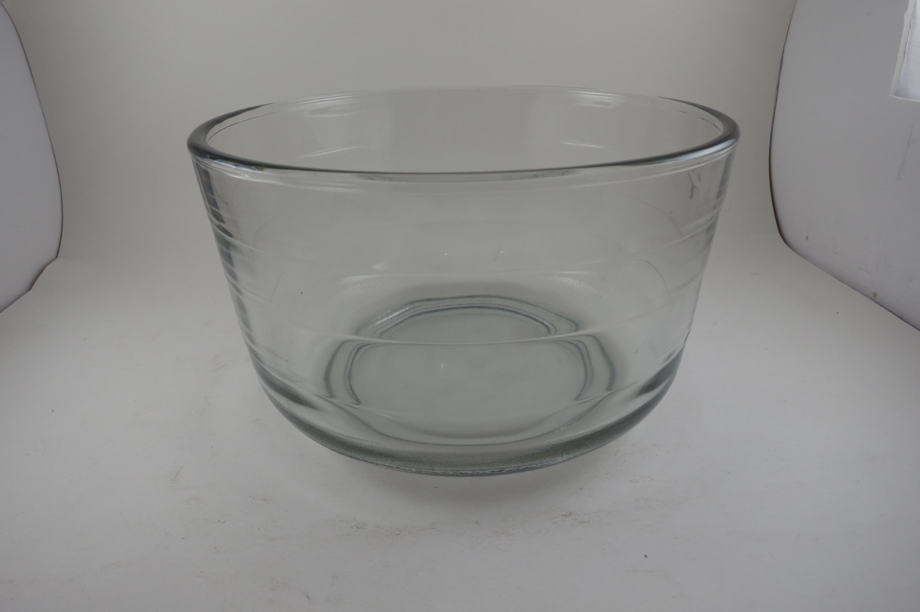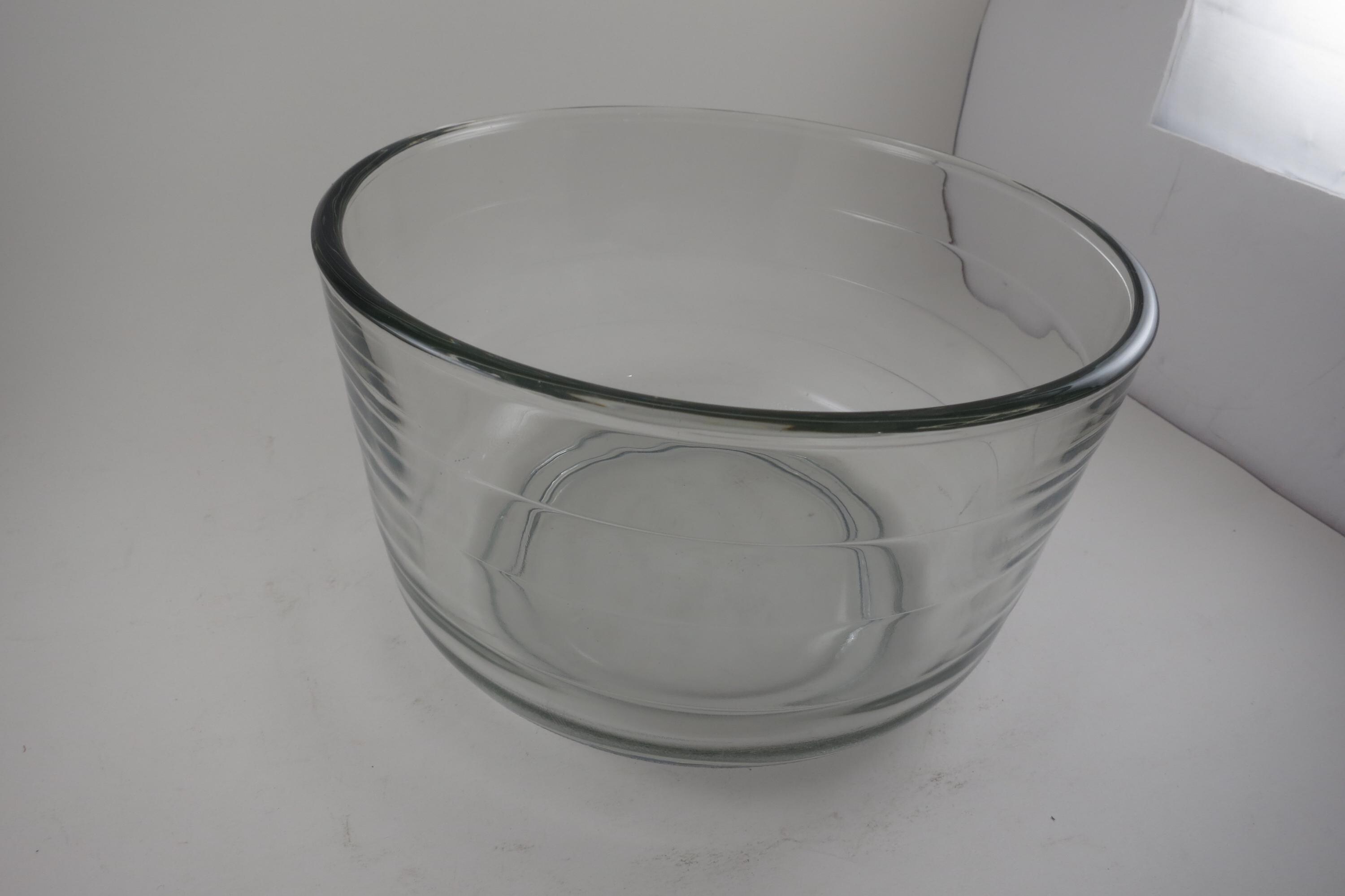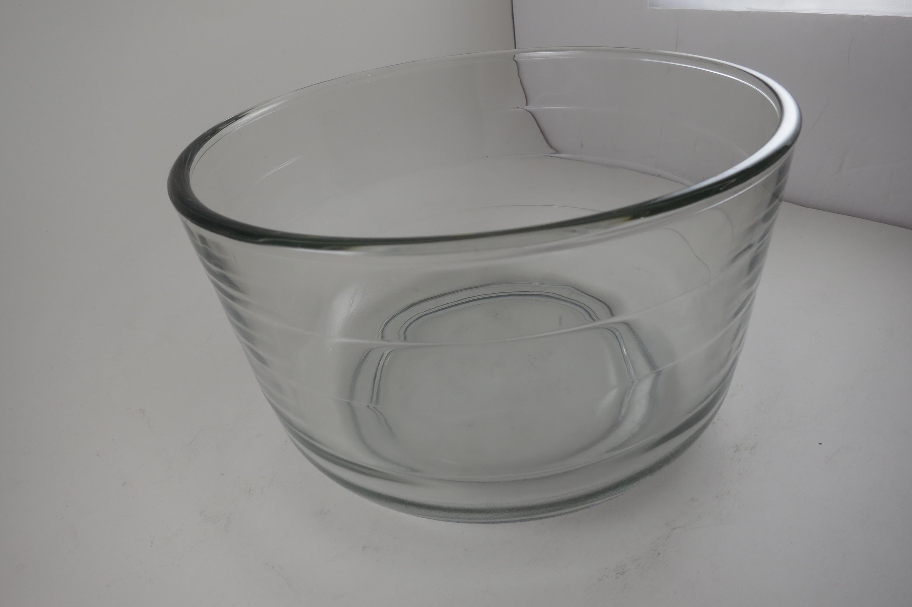 Large Ribbed Glass 9 Inch Mixing Bowl. 5 1/2 inches deep. Like New Condition.