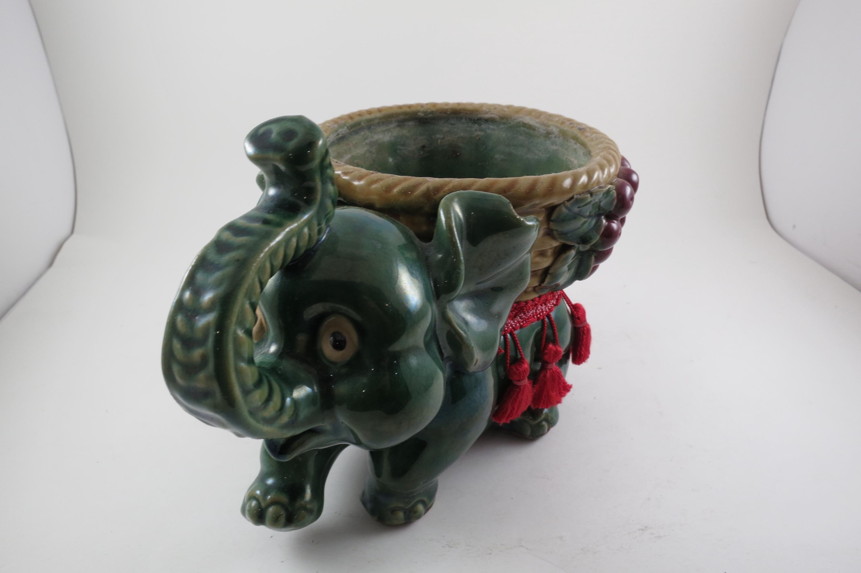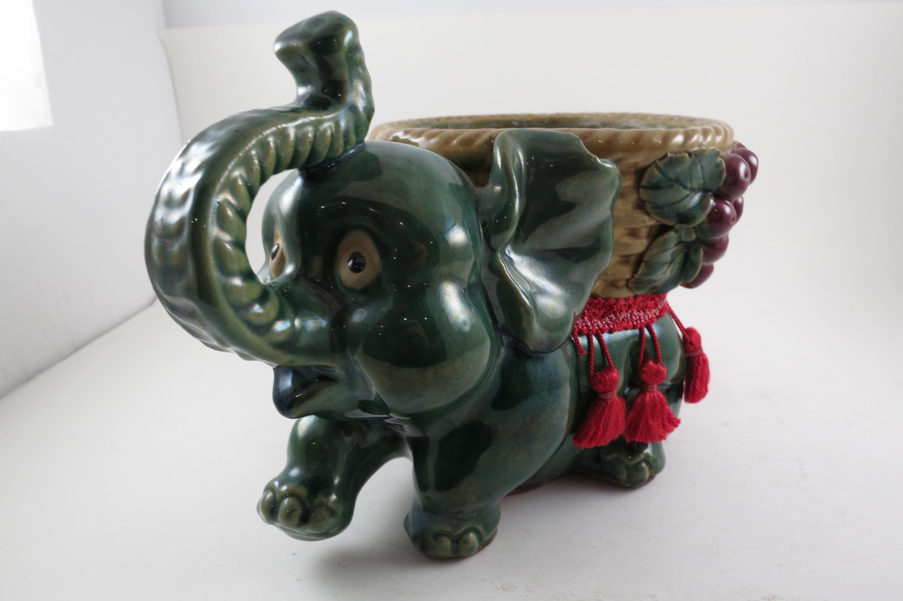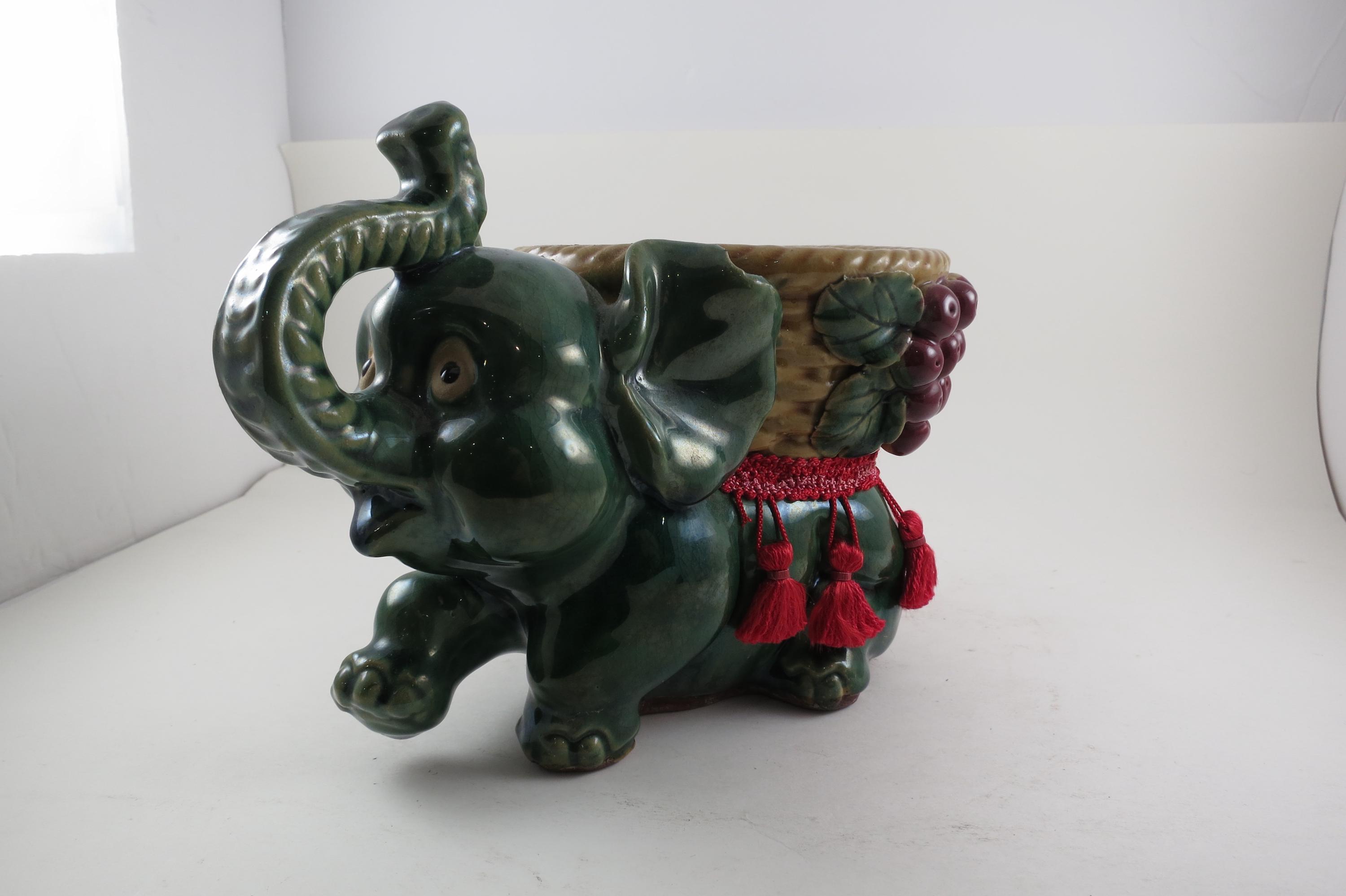 Vintage Green Elephant Planter Chinese Prosperity Highly Detailed.
