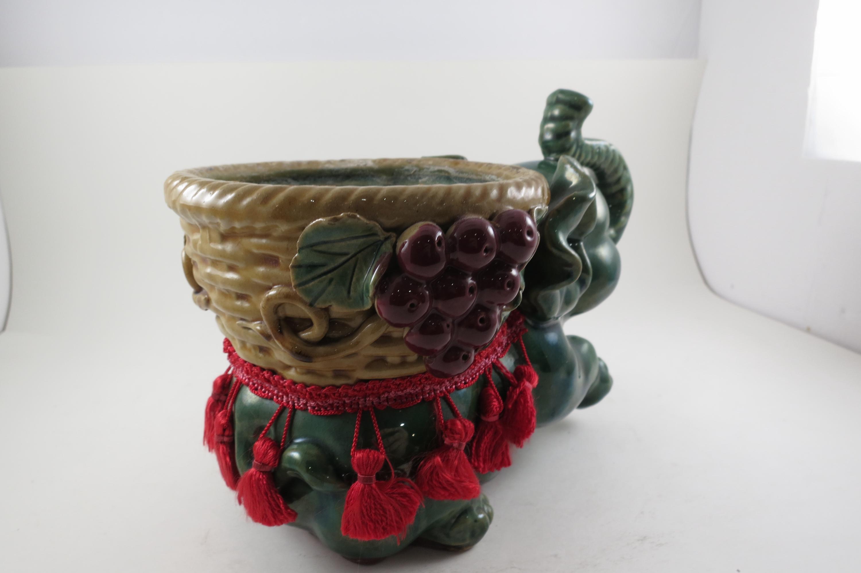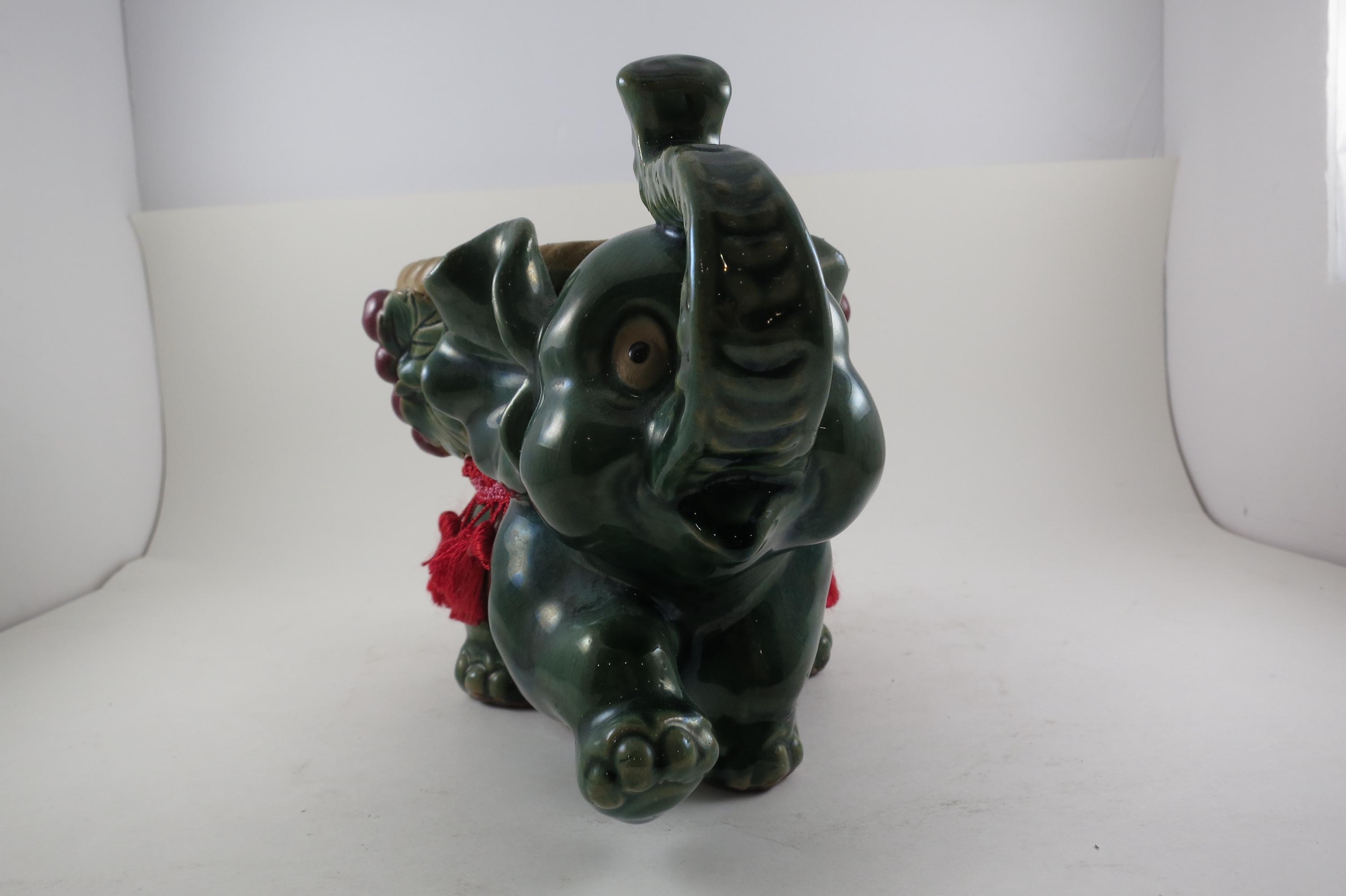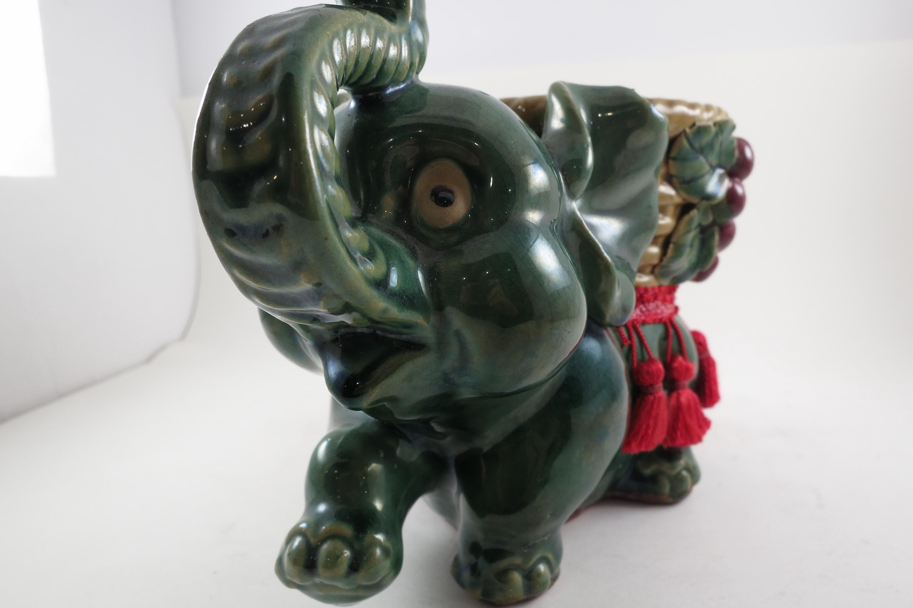 Vintage Green Elephant Planter Chinese Prosperity Highly Detailed.