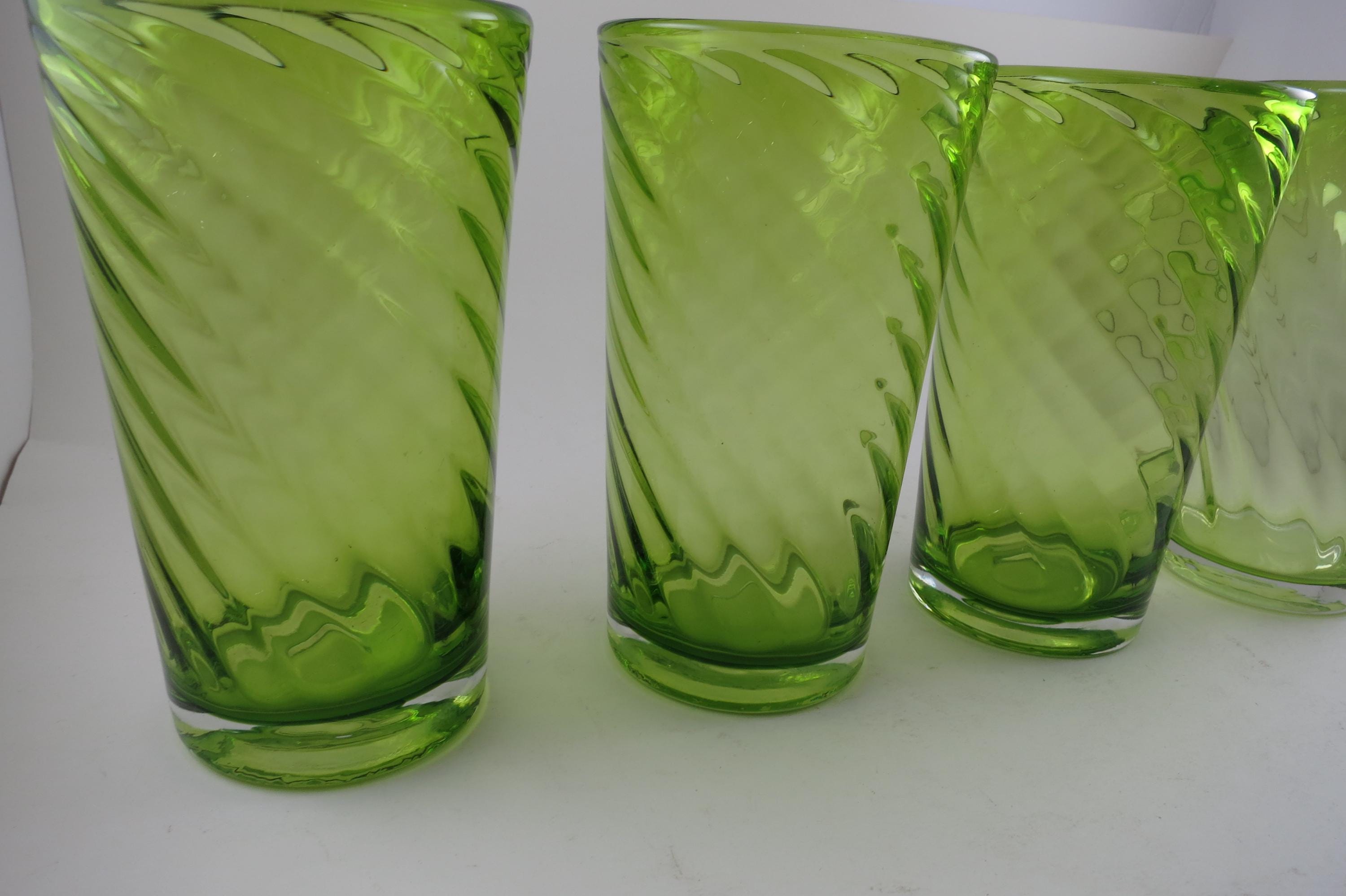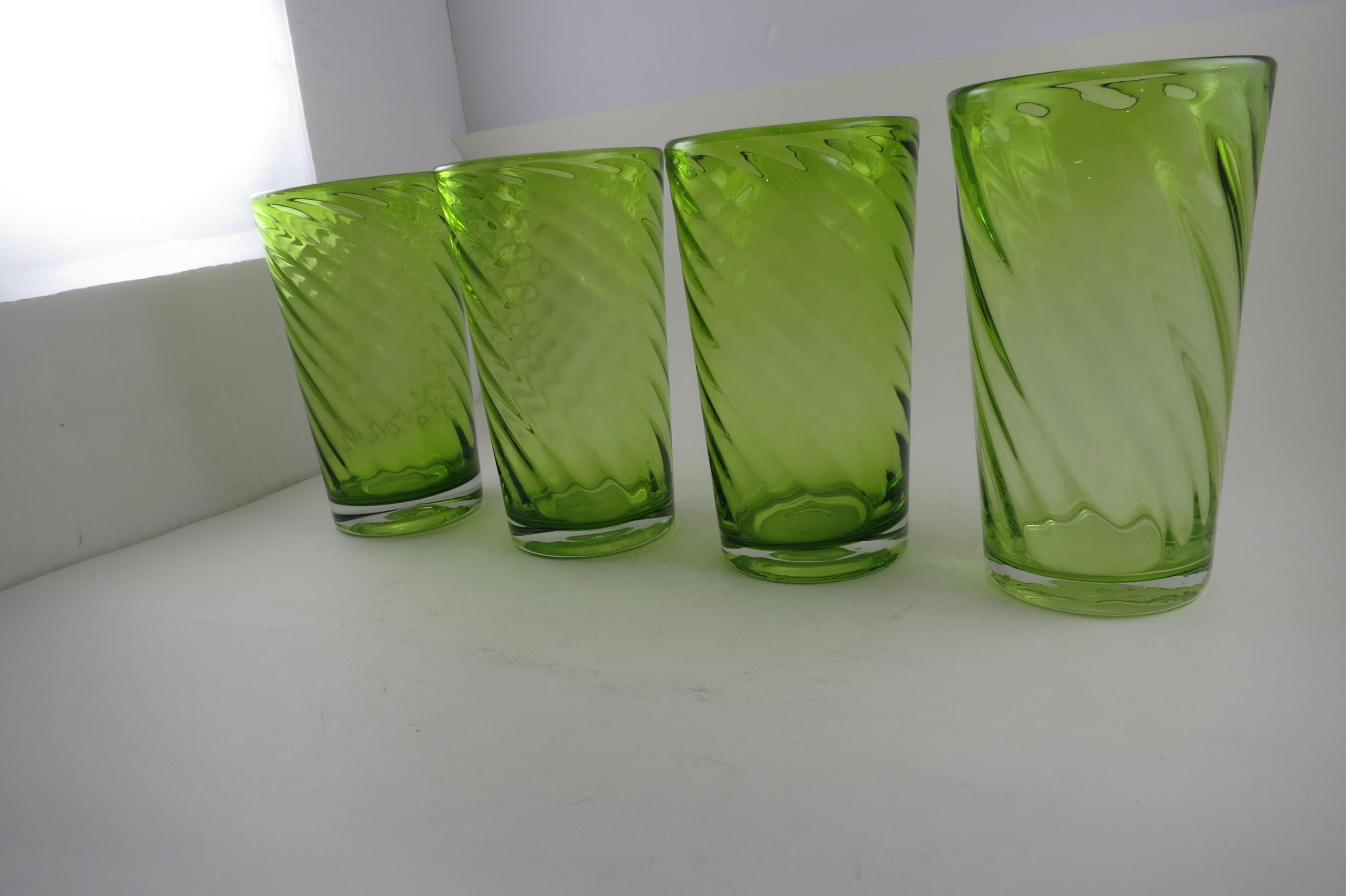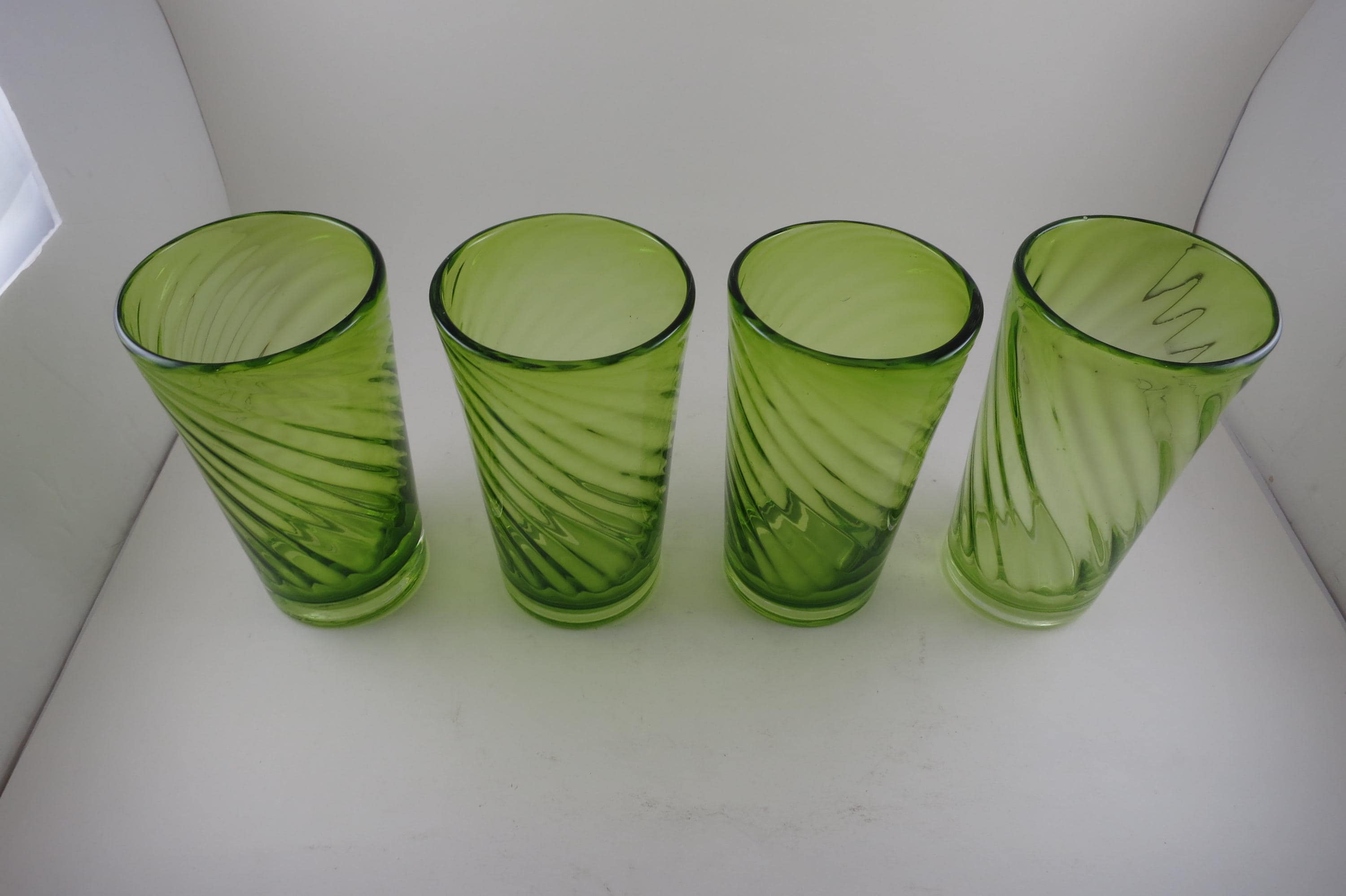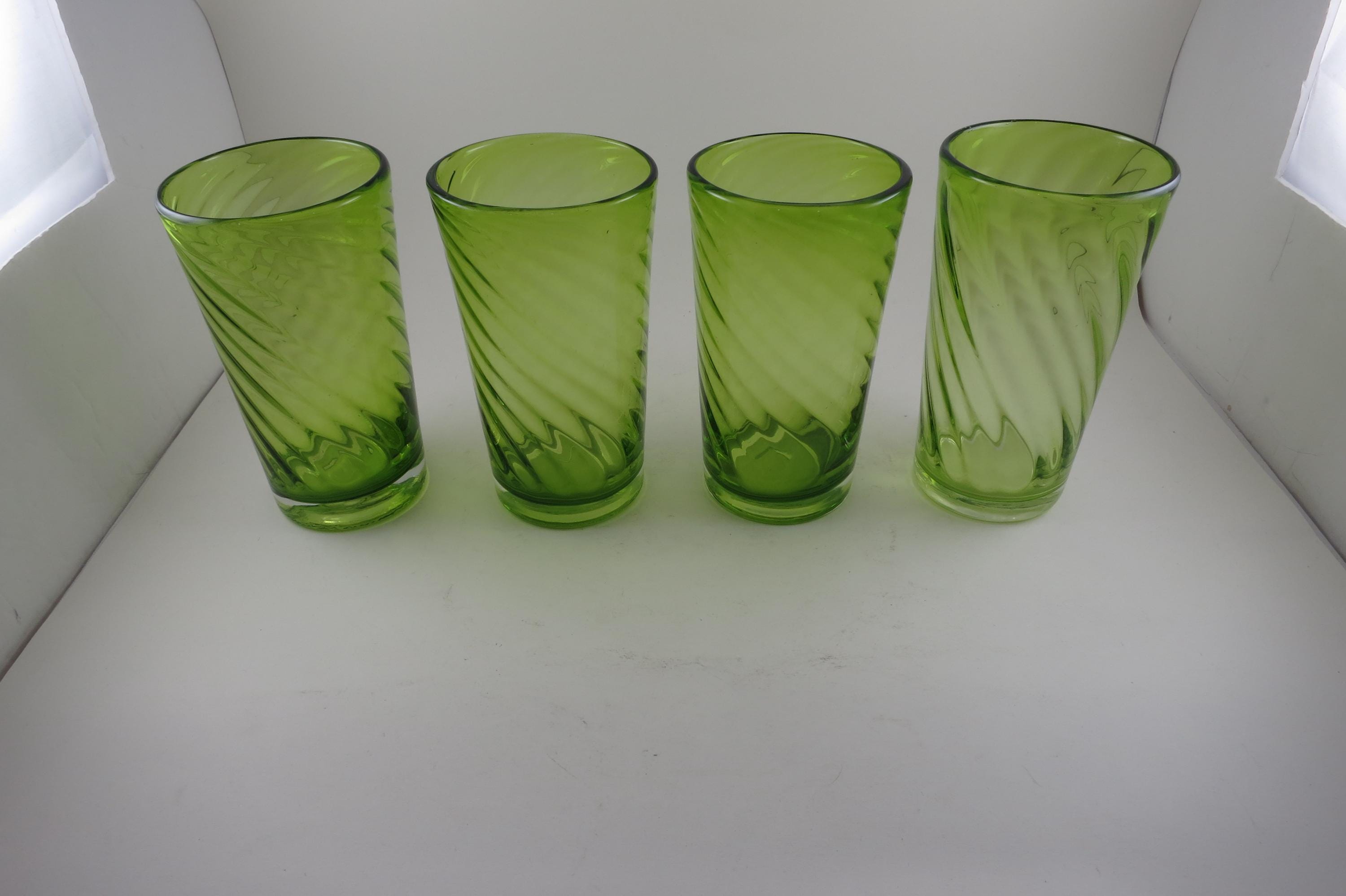 No chips, cracks or other damages. All four are in excellent condition. They measure 6 1/4 inches tall and 3 1/2 inches wide at the rim.