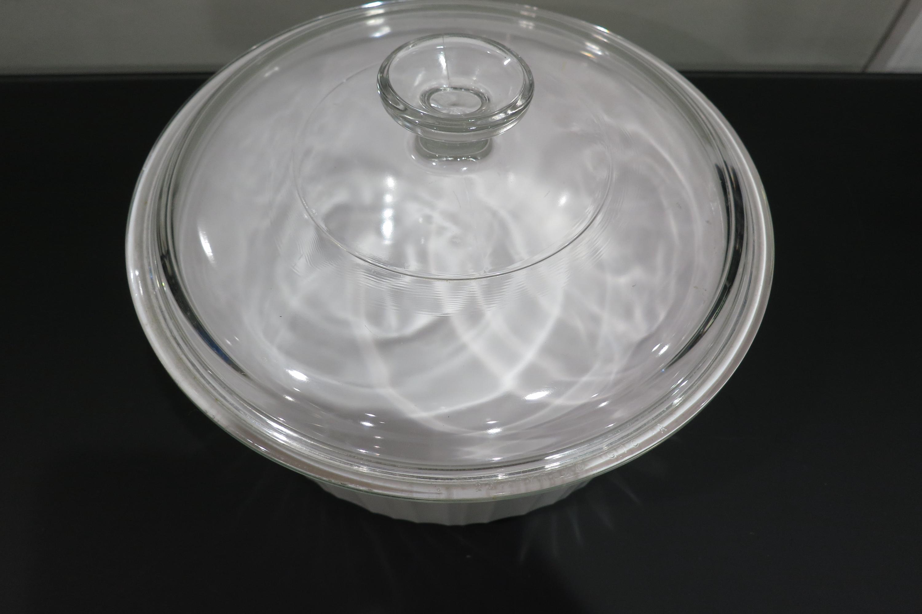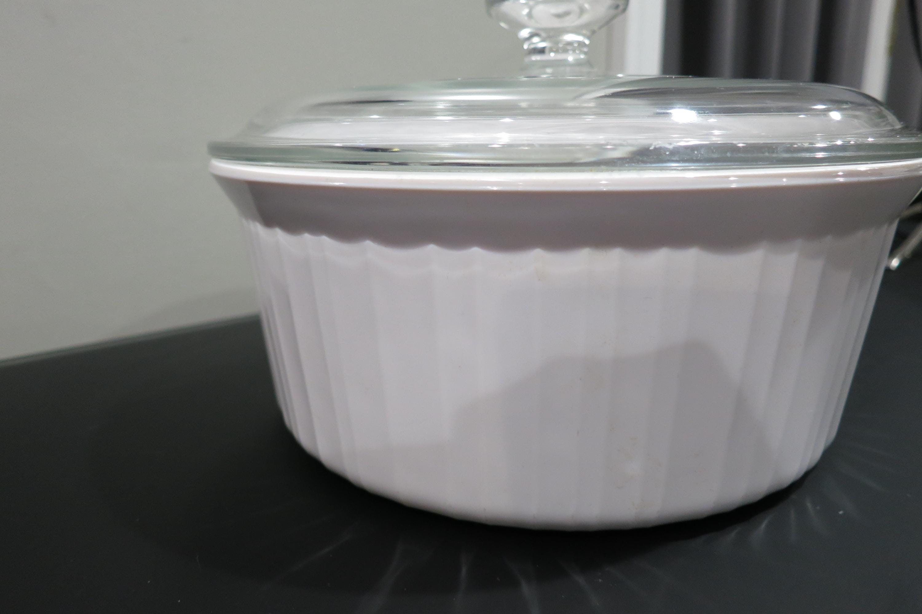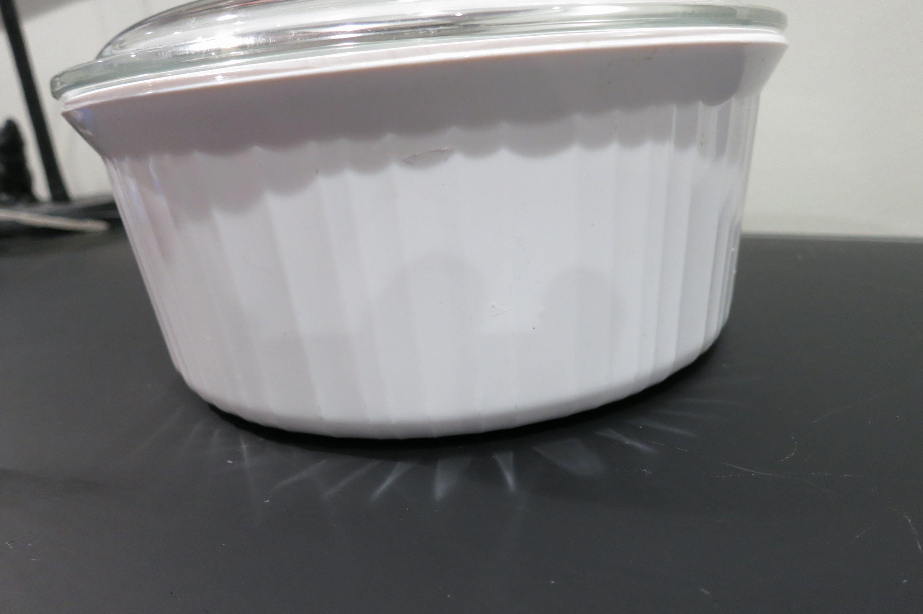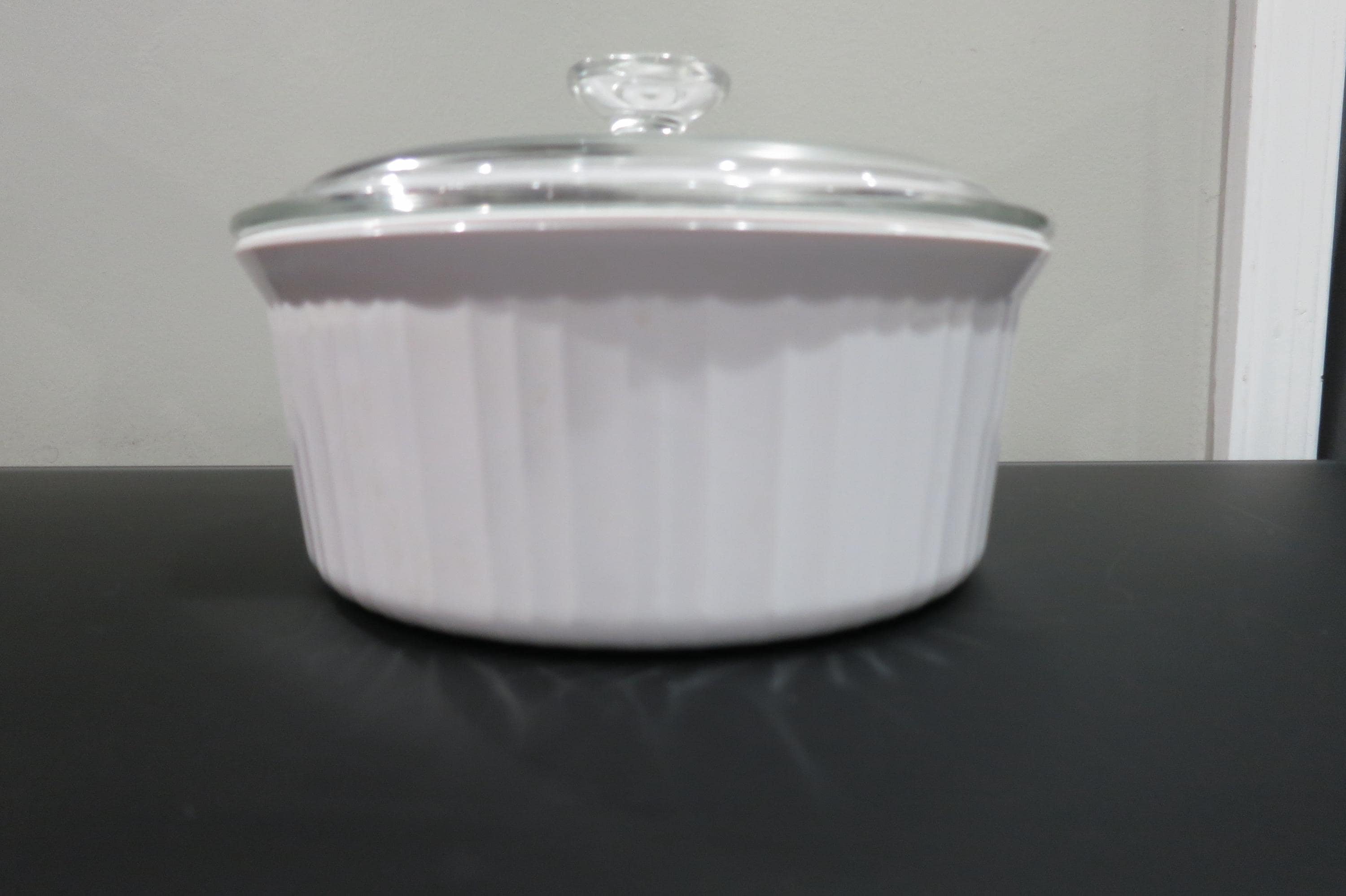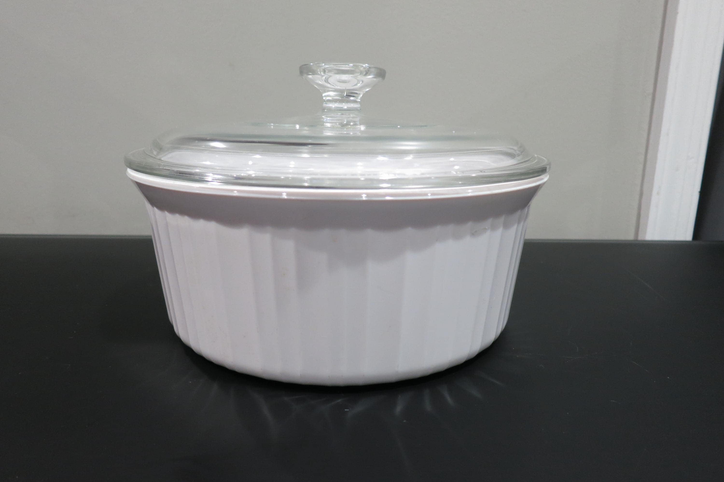 Corning French White Round Casserole Dish: 2.5 Quart F-1-B with Glass Lid