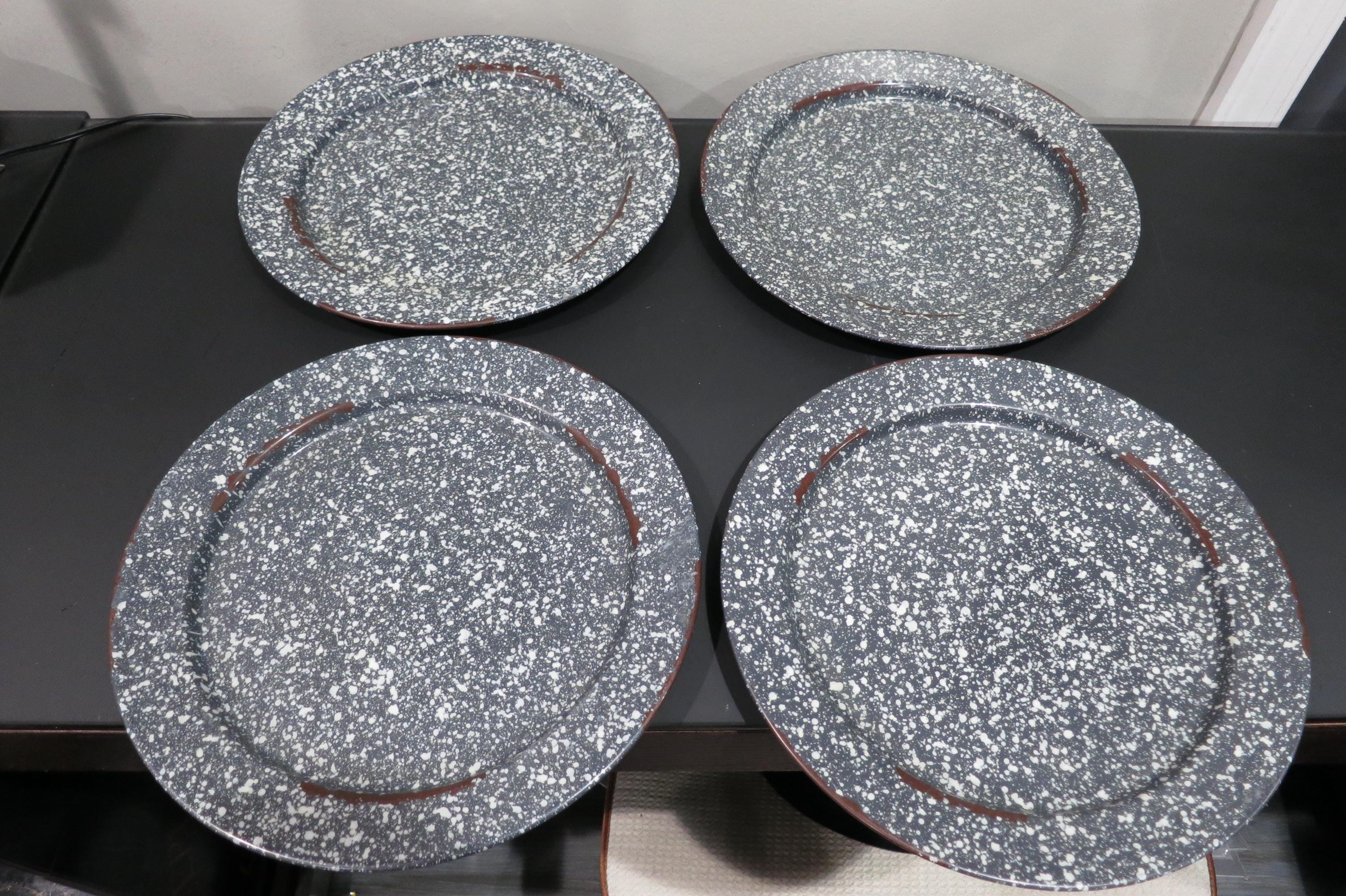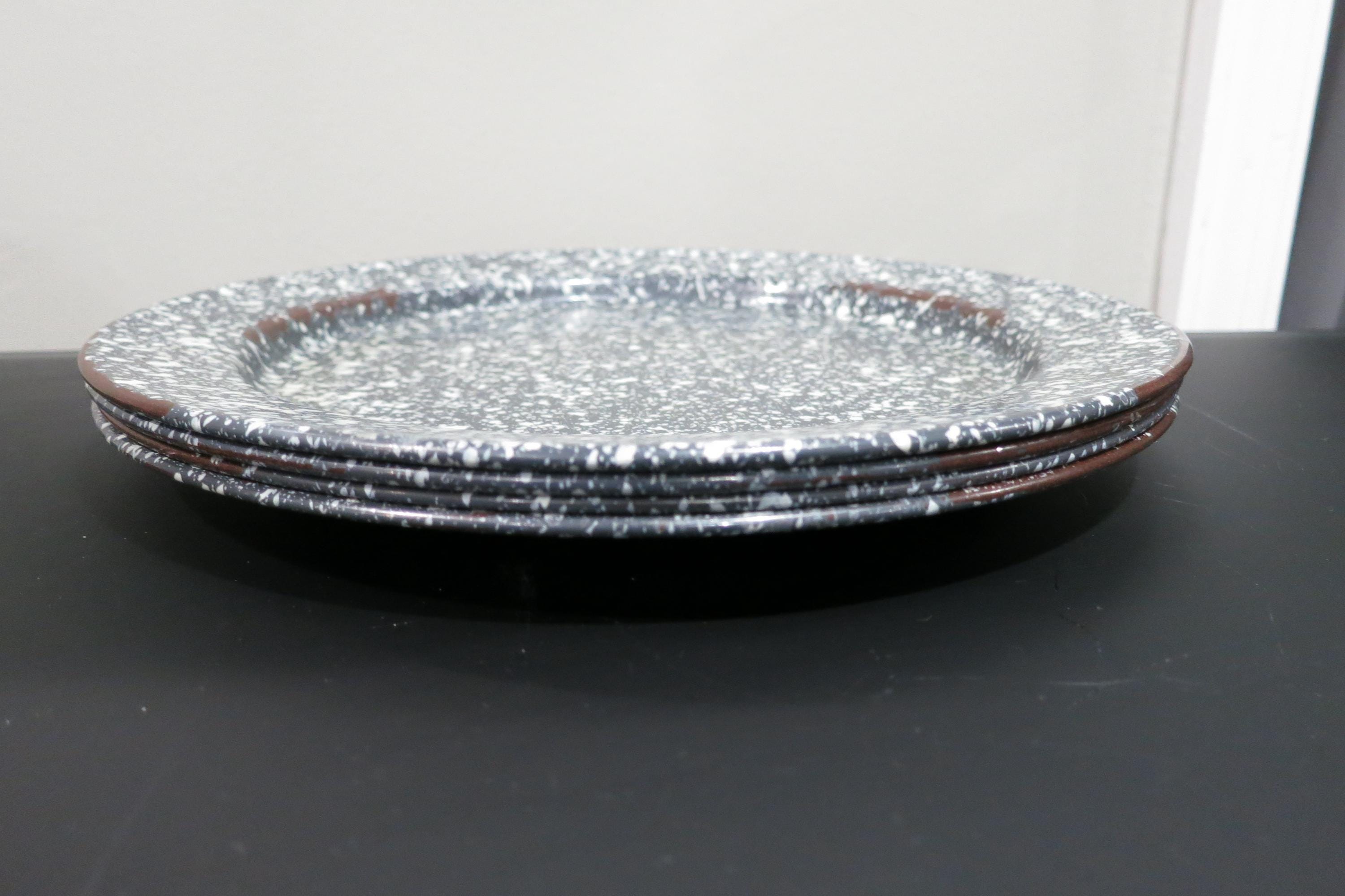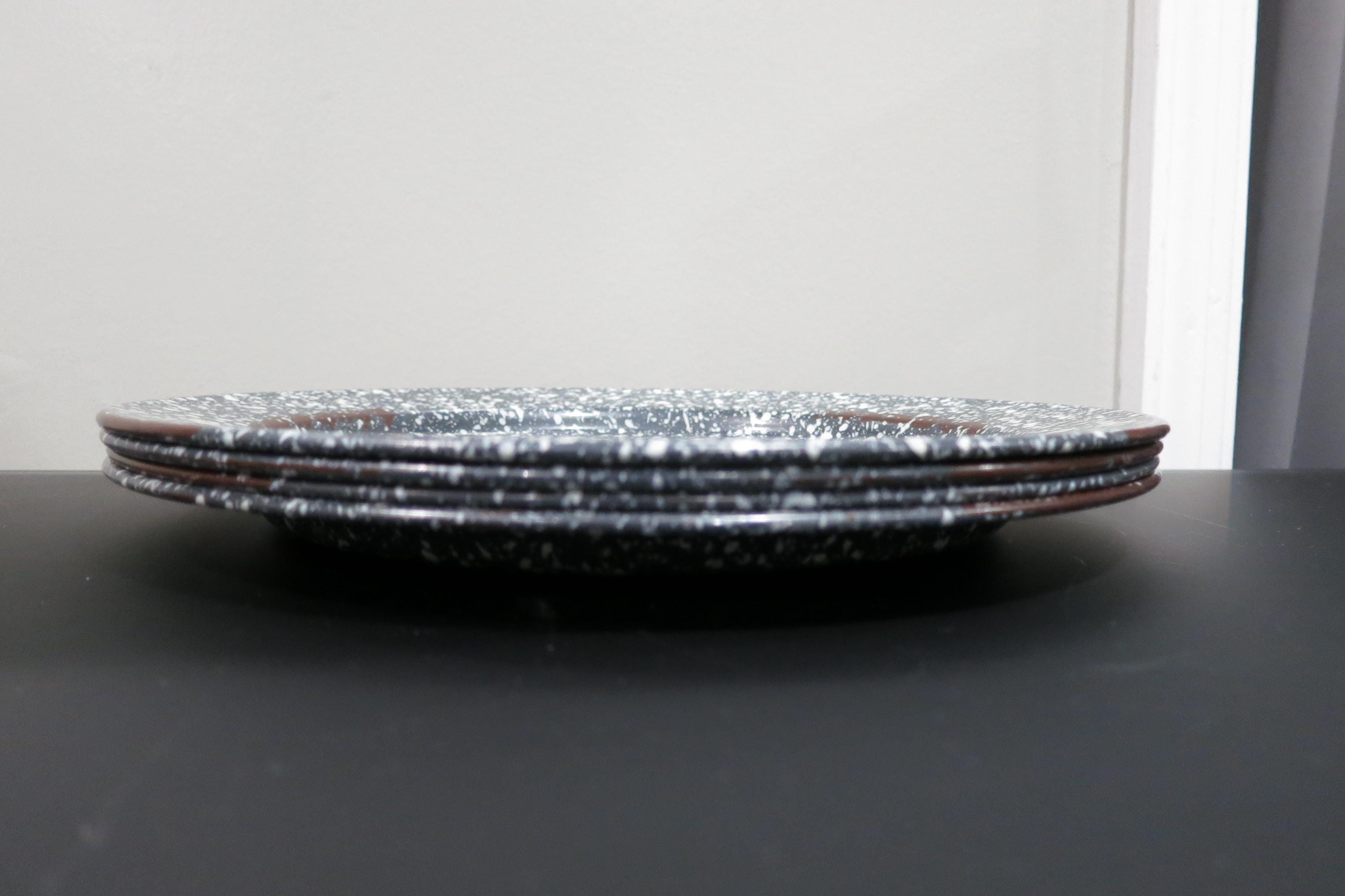 Vintage Granite Enamelware by Park Design 10 Inch Dinner Plates Set of 4. No chips, cracks or damages. Listing is for a set of four 10 inch dinner plates. These are in excellent used condition.