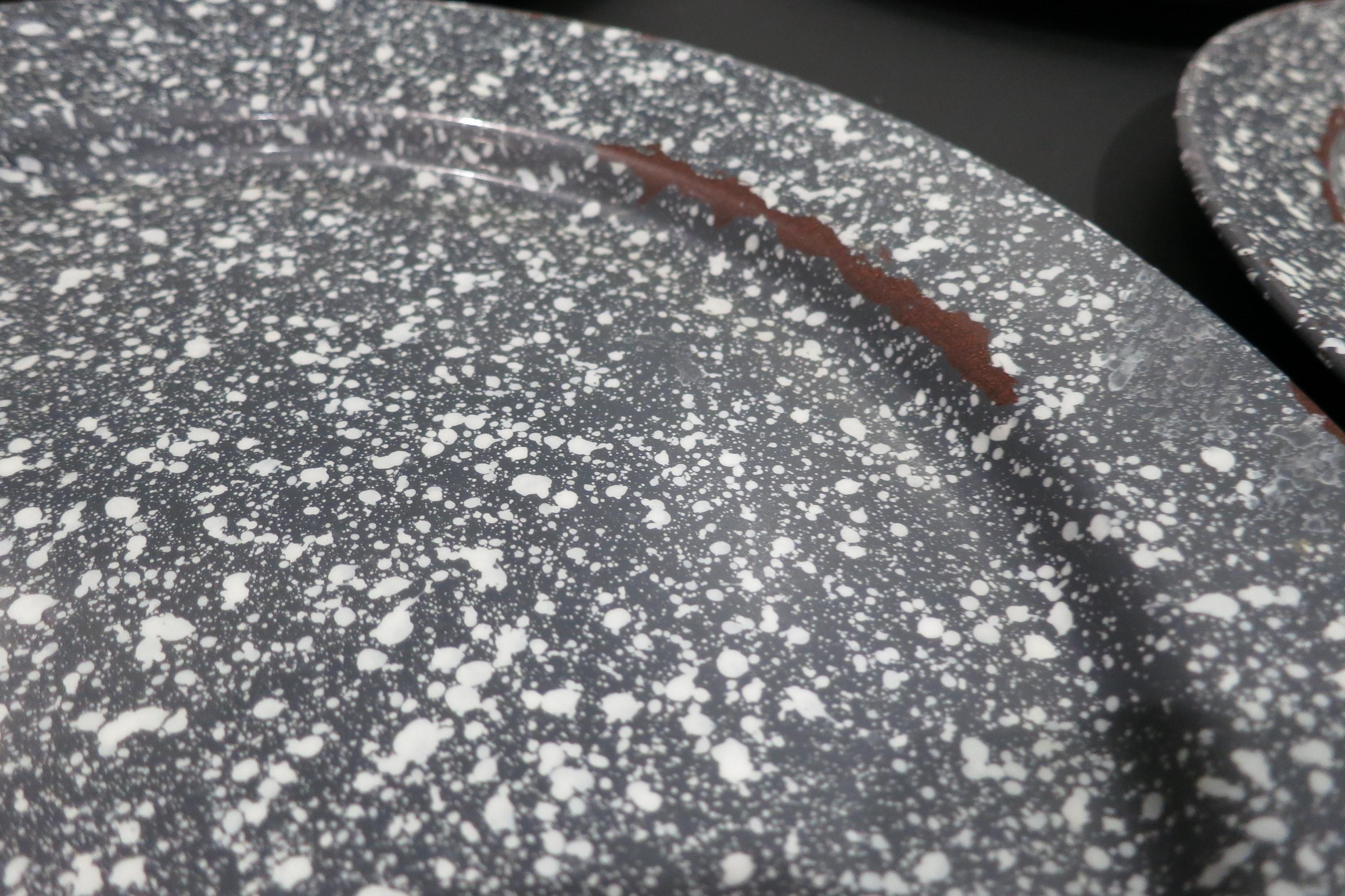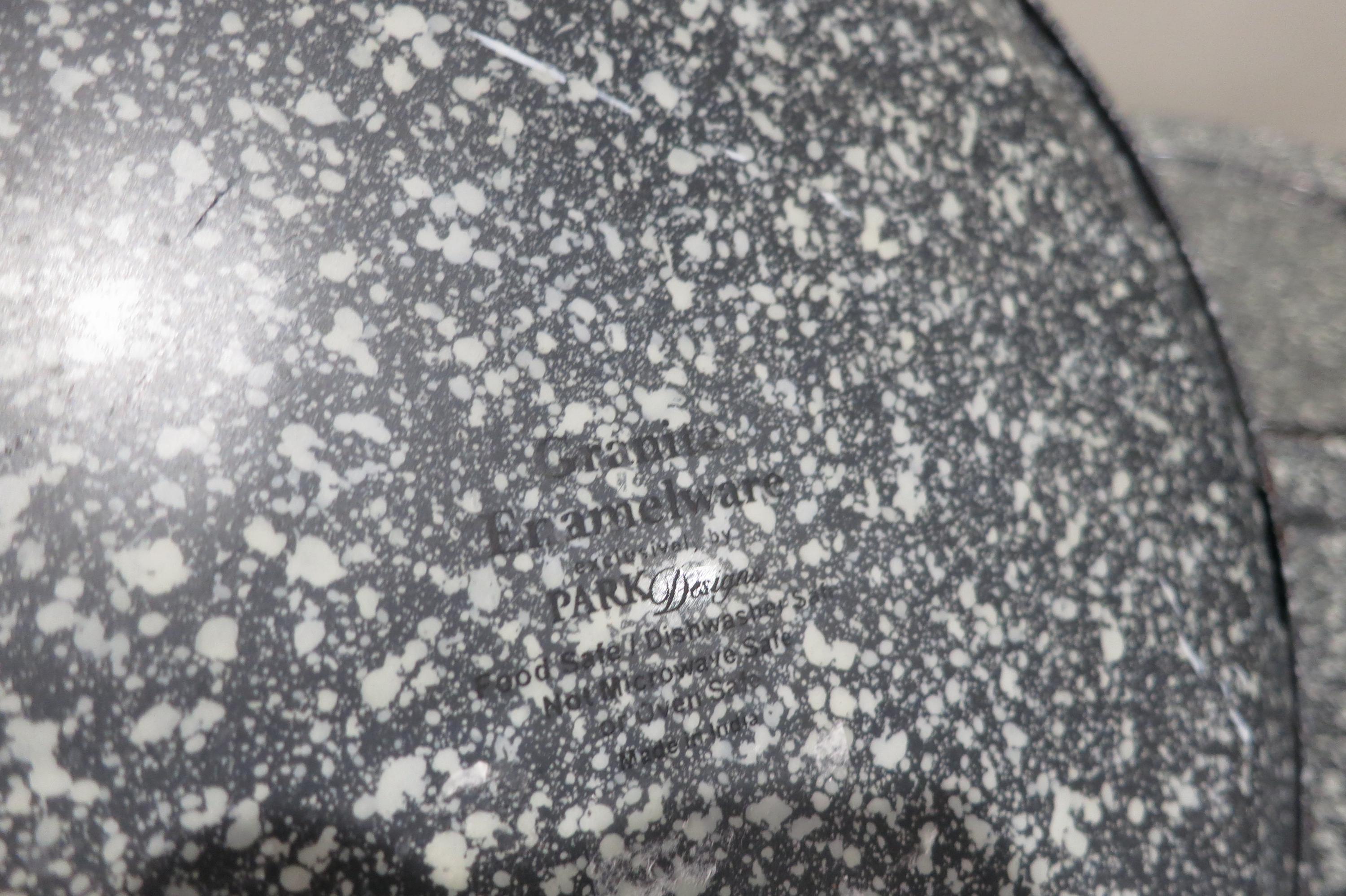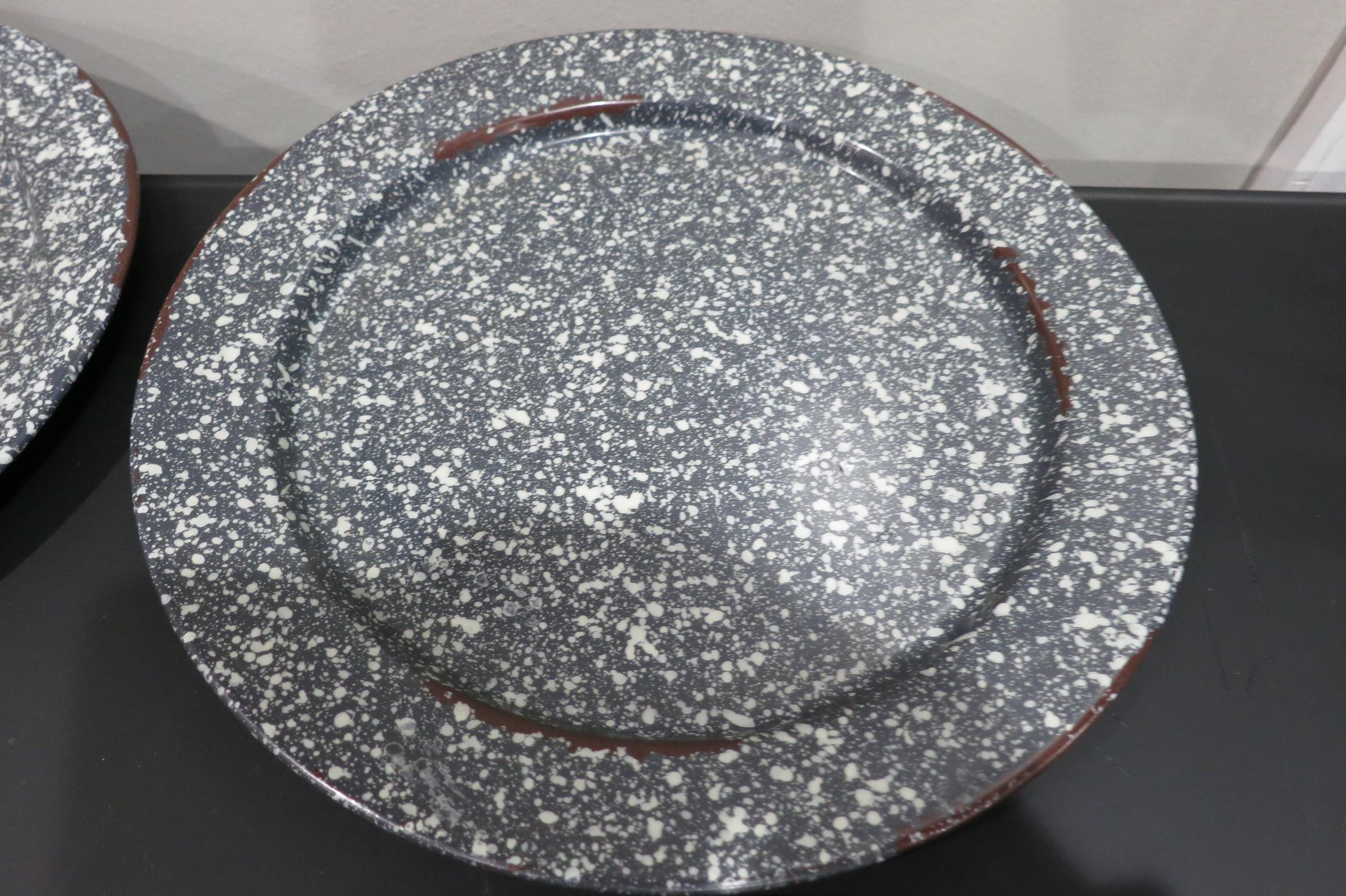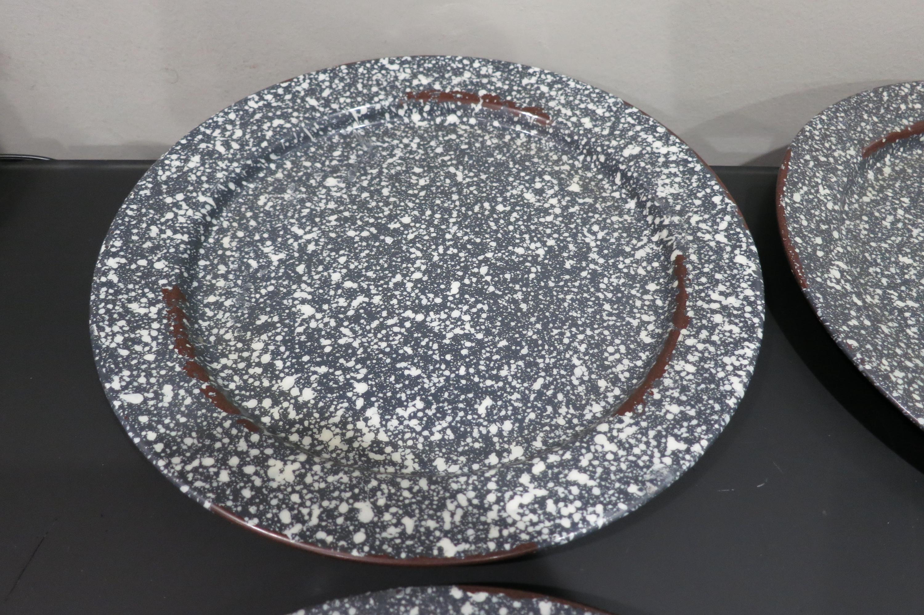 Vintage Granite Enamelware by Park Design 10 Inch Dinner Plates Set of 4. No chips, cracks or damages. Listing is for a set of four 10 inch dinner plates. These are in excellent used condition.