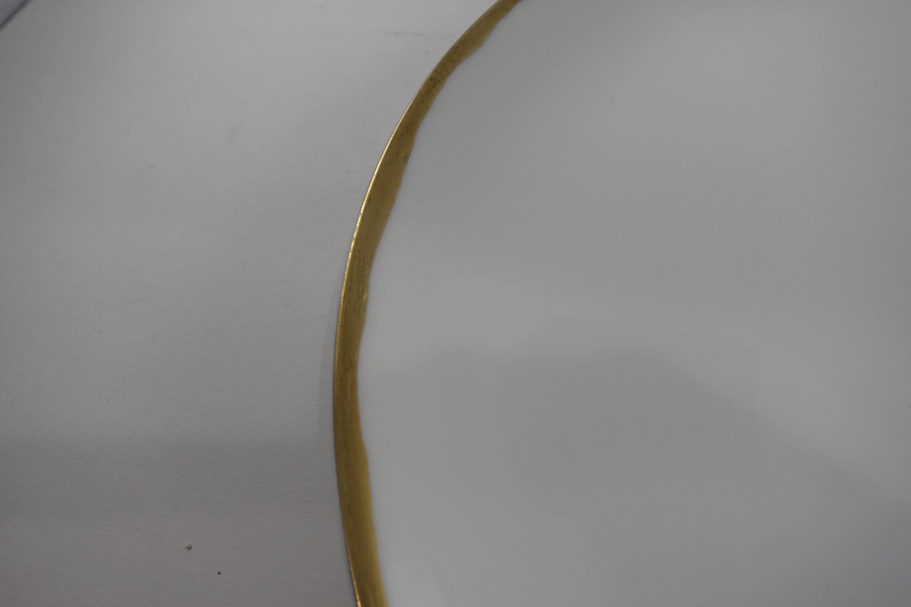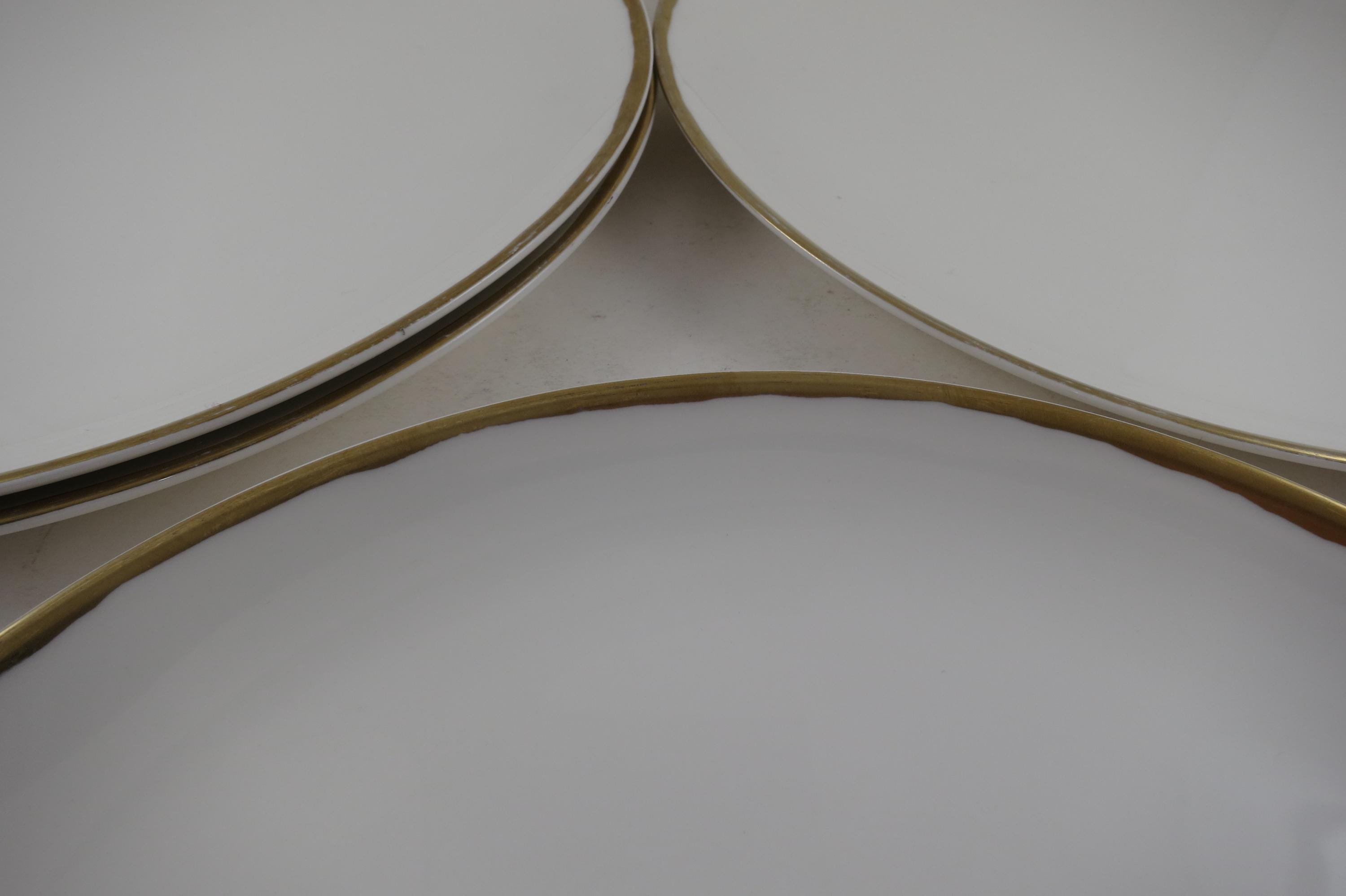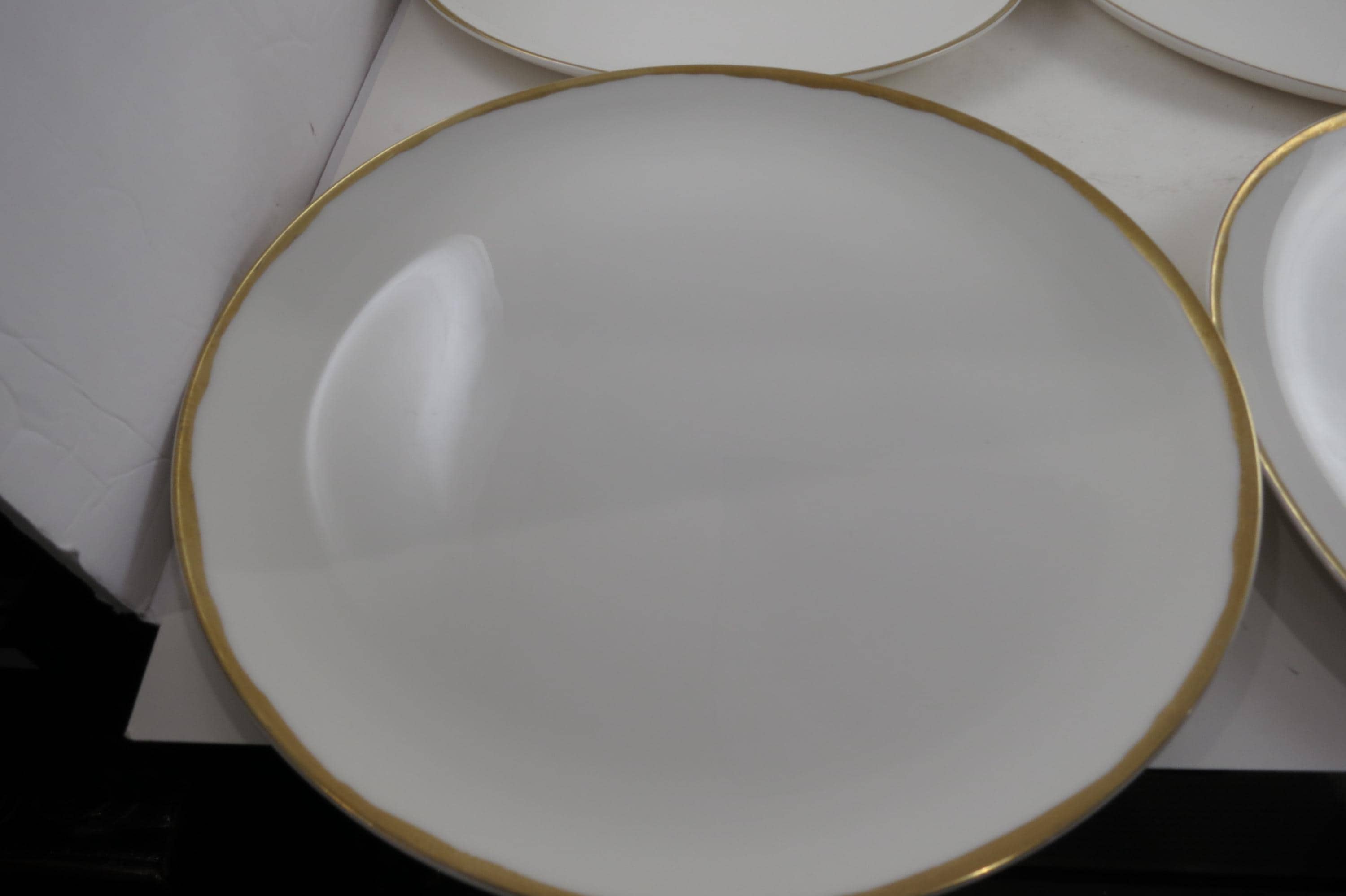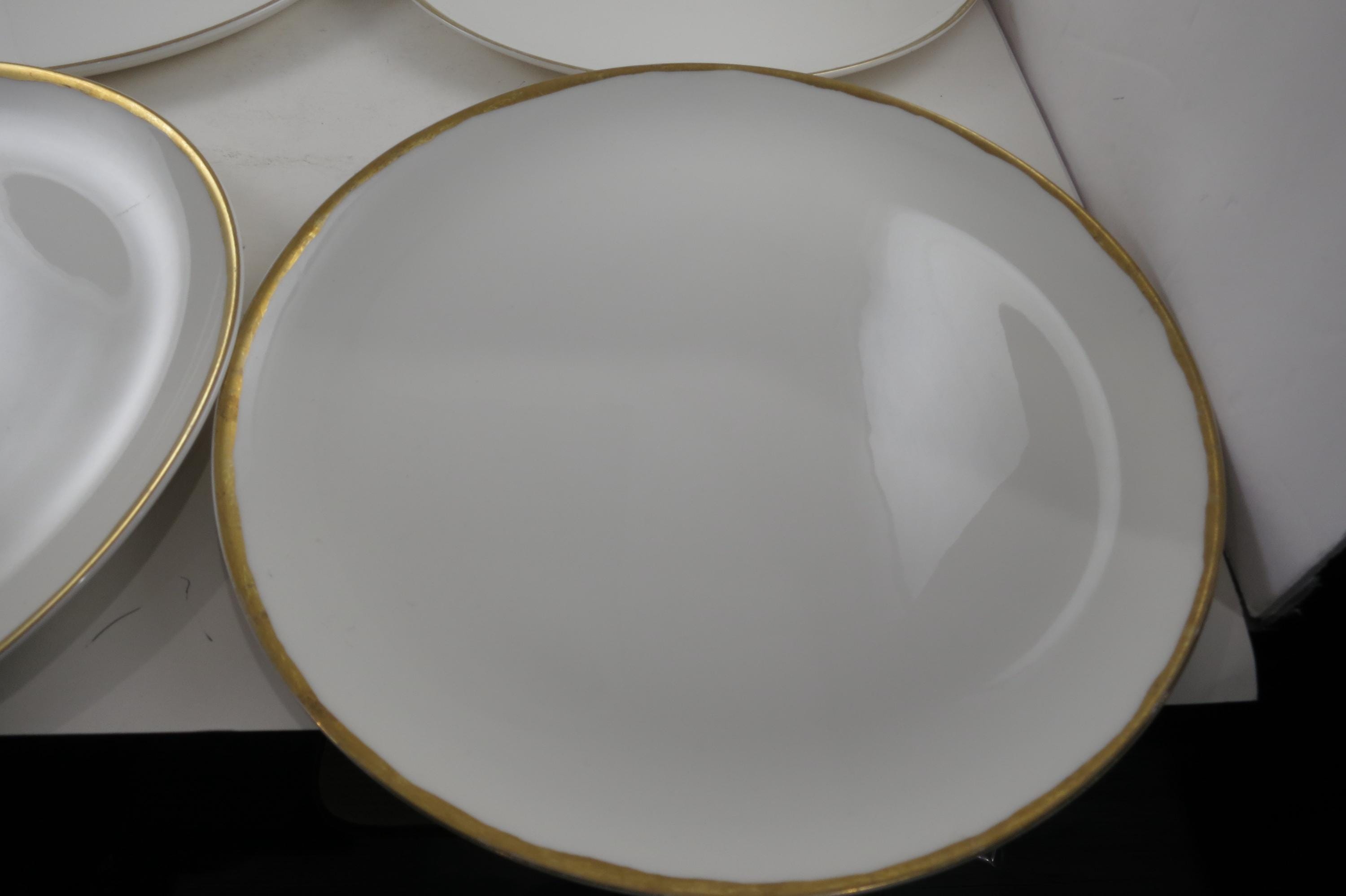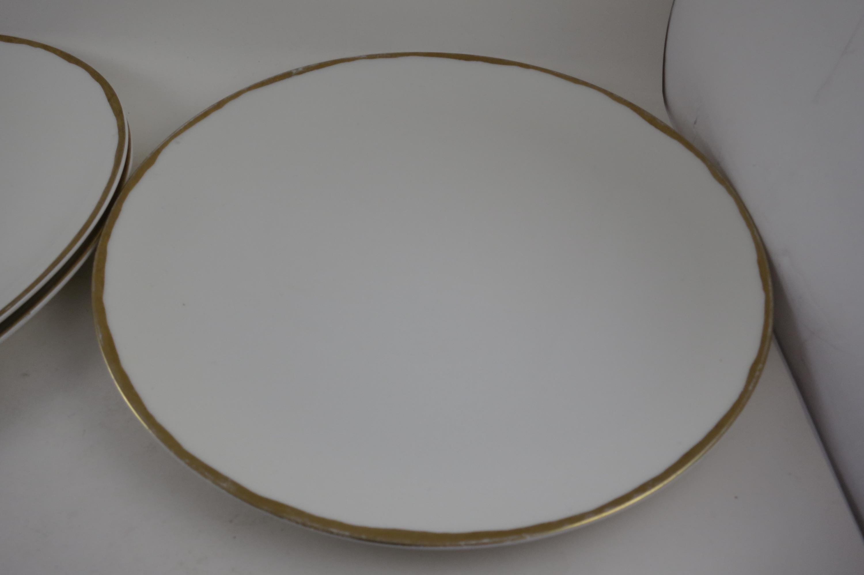 Beautiful gold trim plates, measuring 11 1/4 inches in diameter. They show normal use wear and are in very good used condition with no chips or cracks. Set of Four.