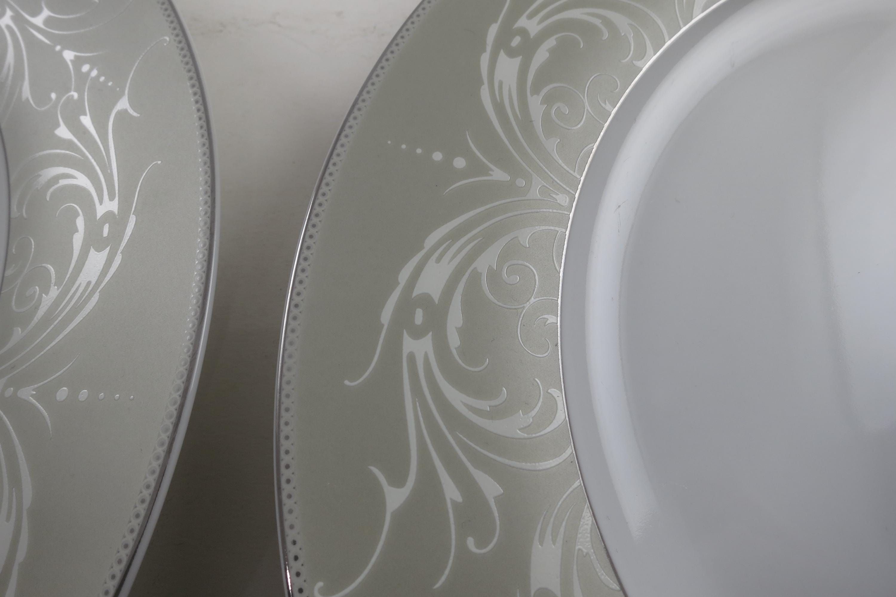 Beautiful Pattern, silver border, we have an entire set we are listing in different listings.