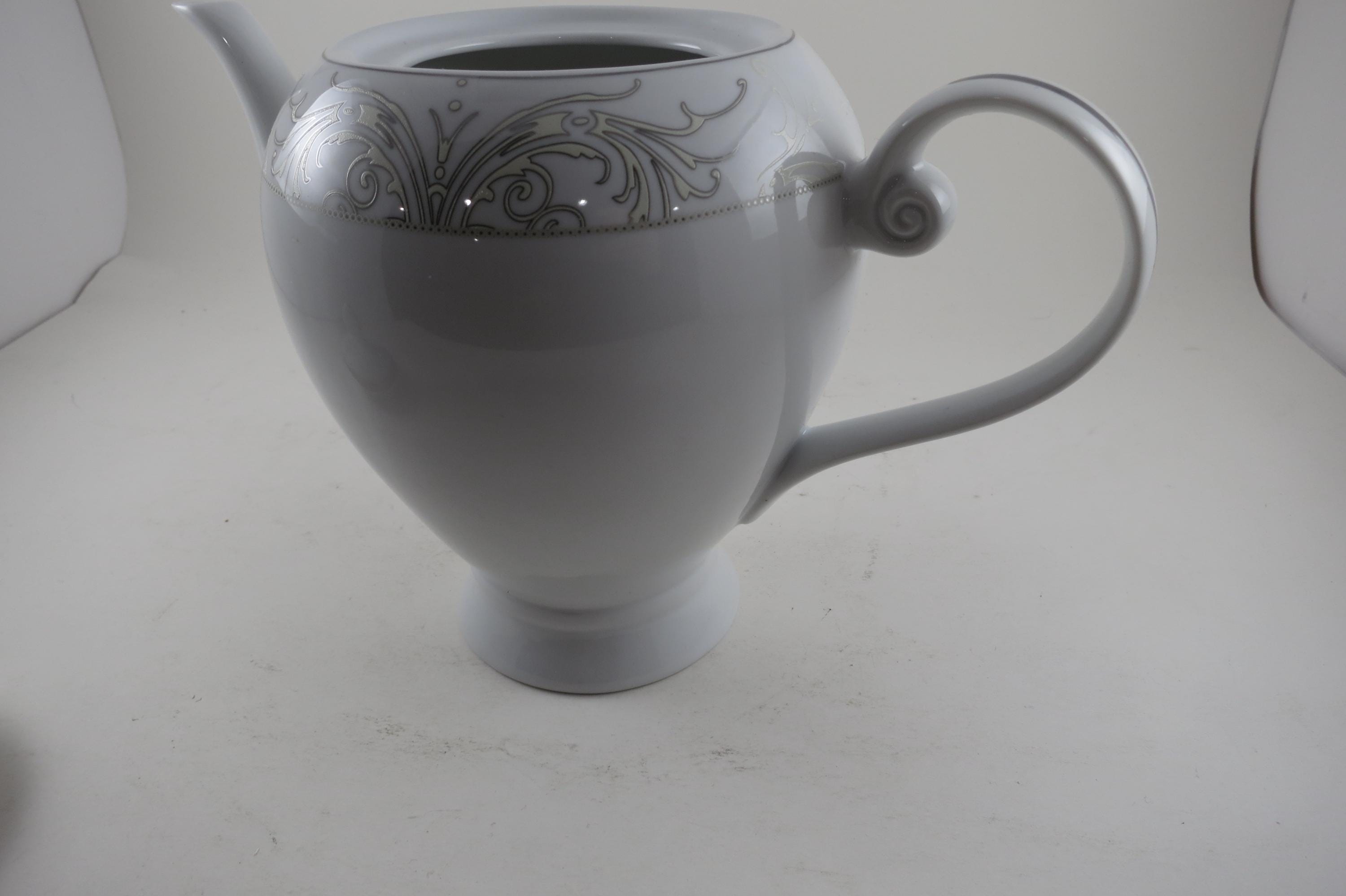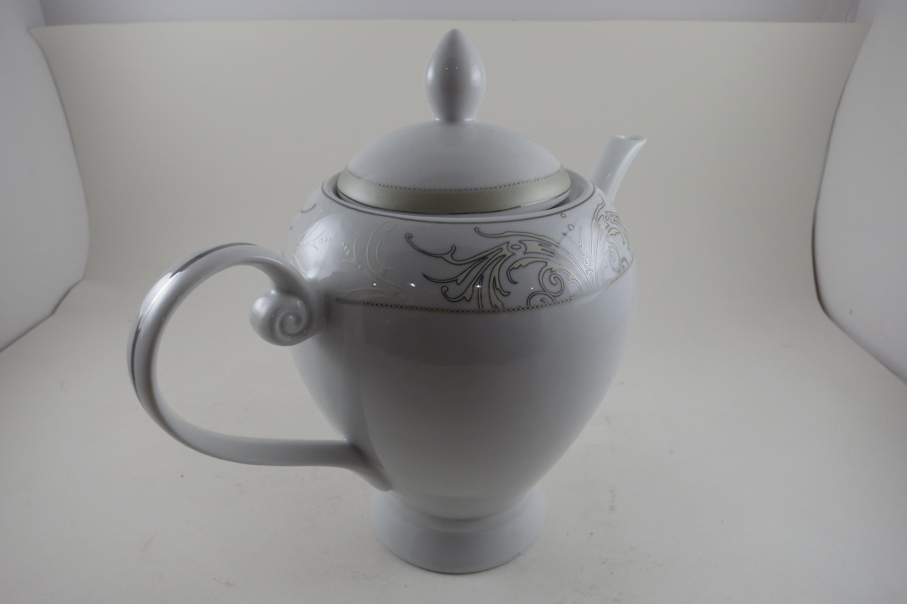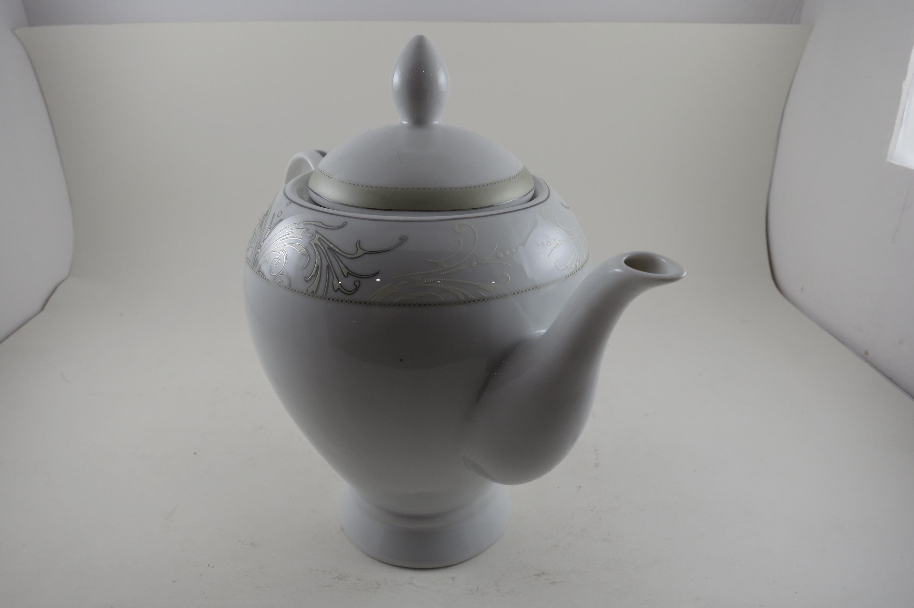 Vintage Lorren Home Trends Porcelain Olympia Pattern 8 Inch Coffee Pot with Lid