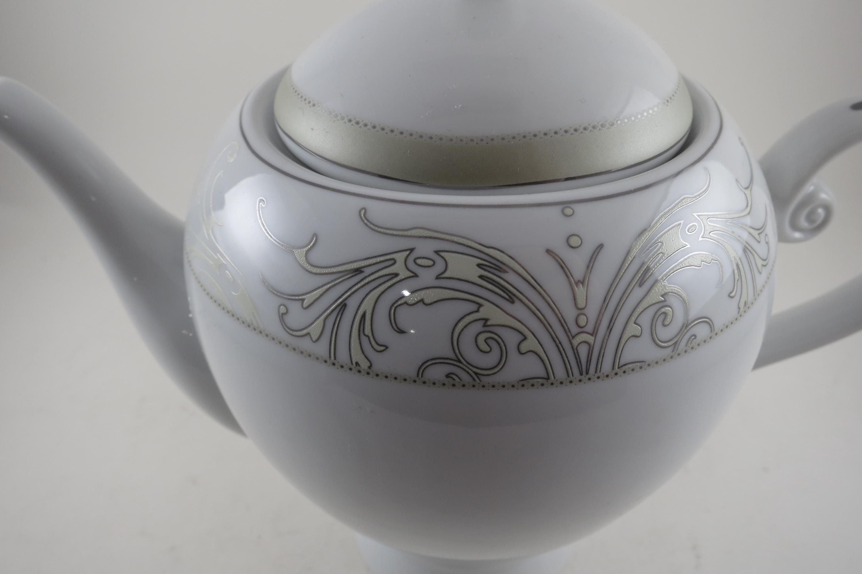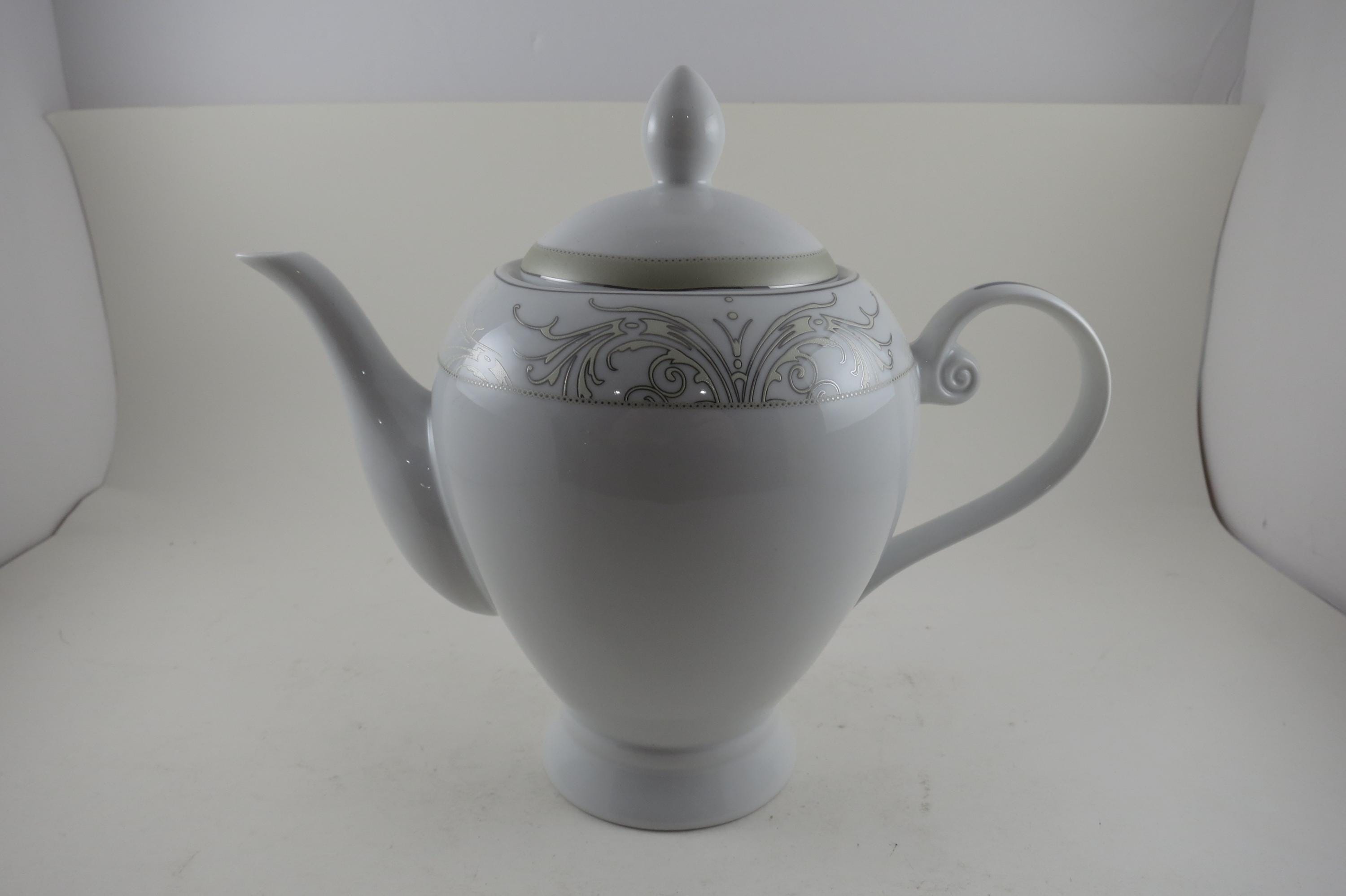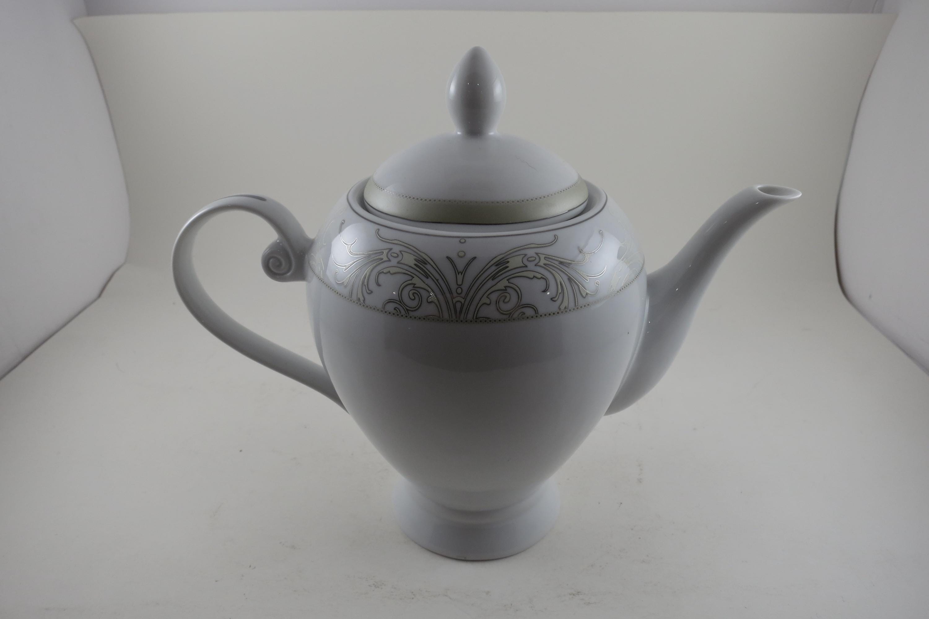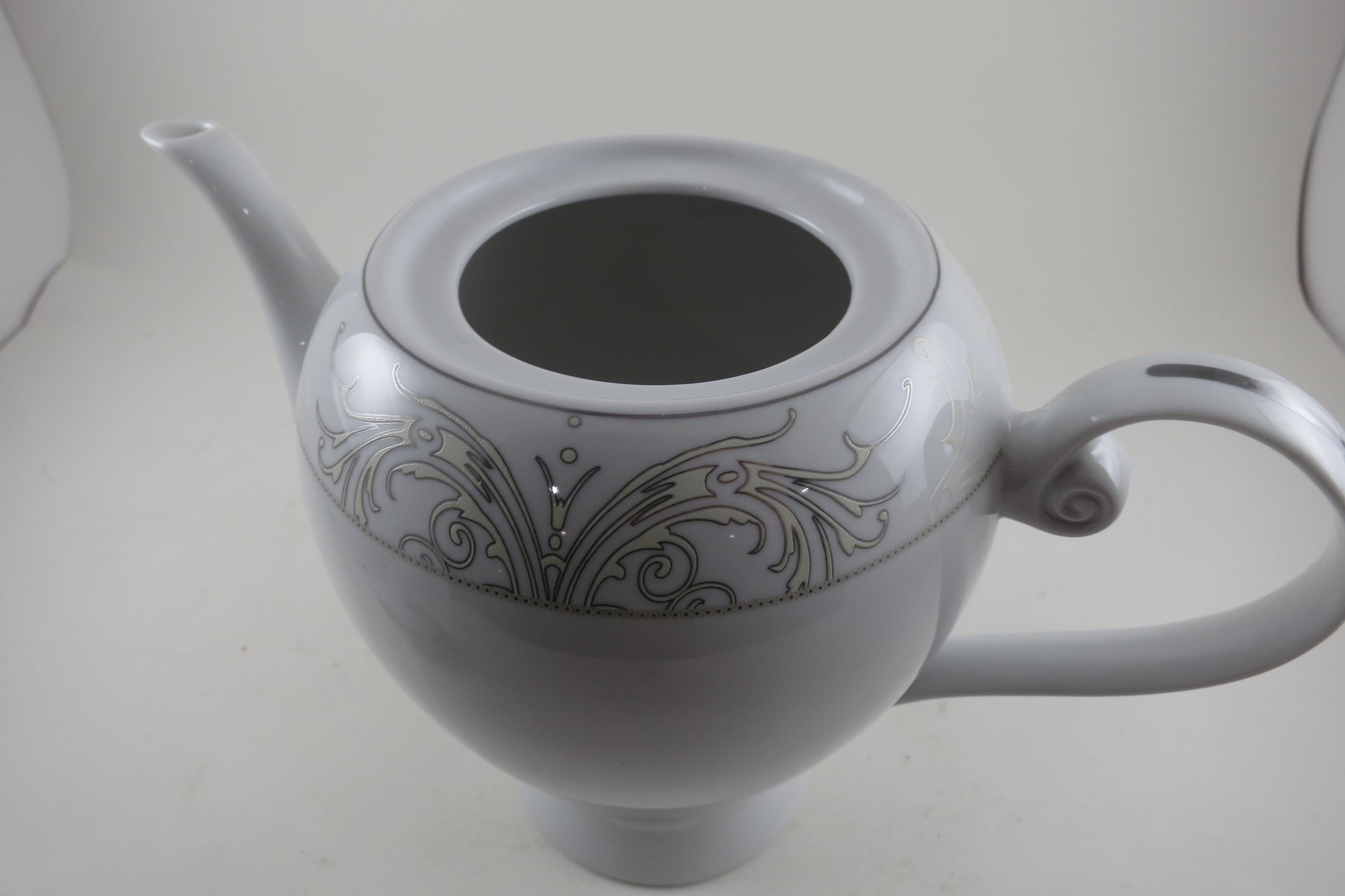 Vintage Lorren Home Trends Porcelain Olympia Pattern 8 Inch Coffee Pot with Lid