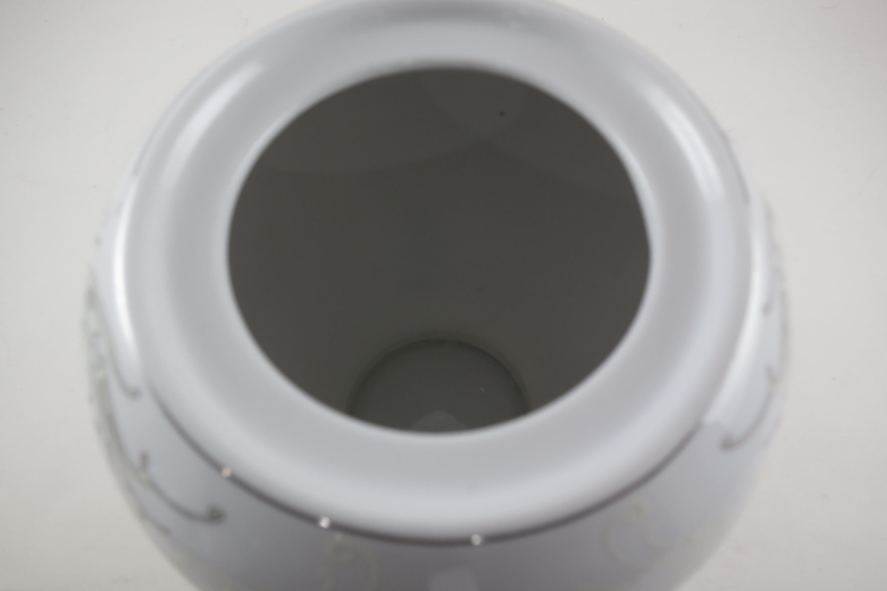 Pot is in perfect condition with no chips, cracks or damages. Measures 8 inches tall and 9 inches wide.