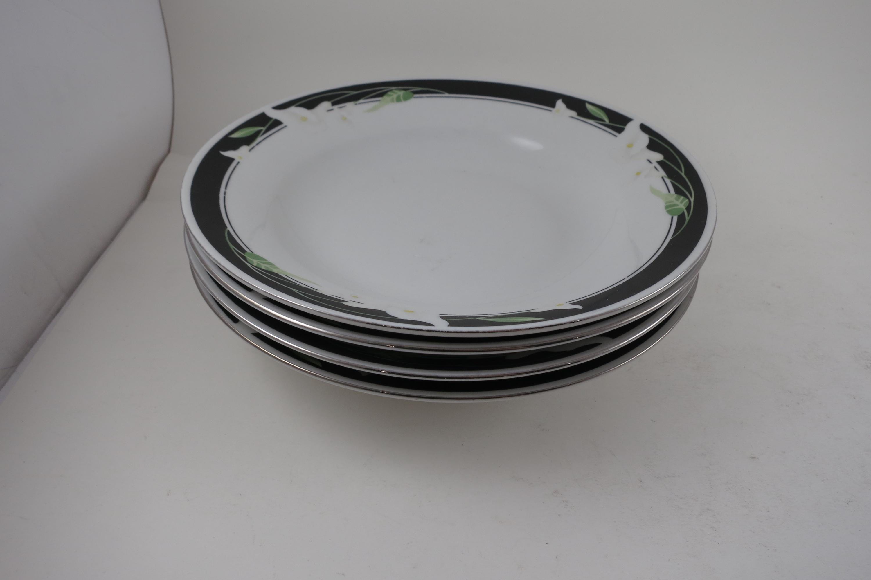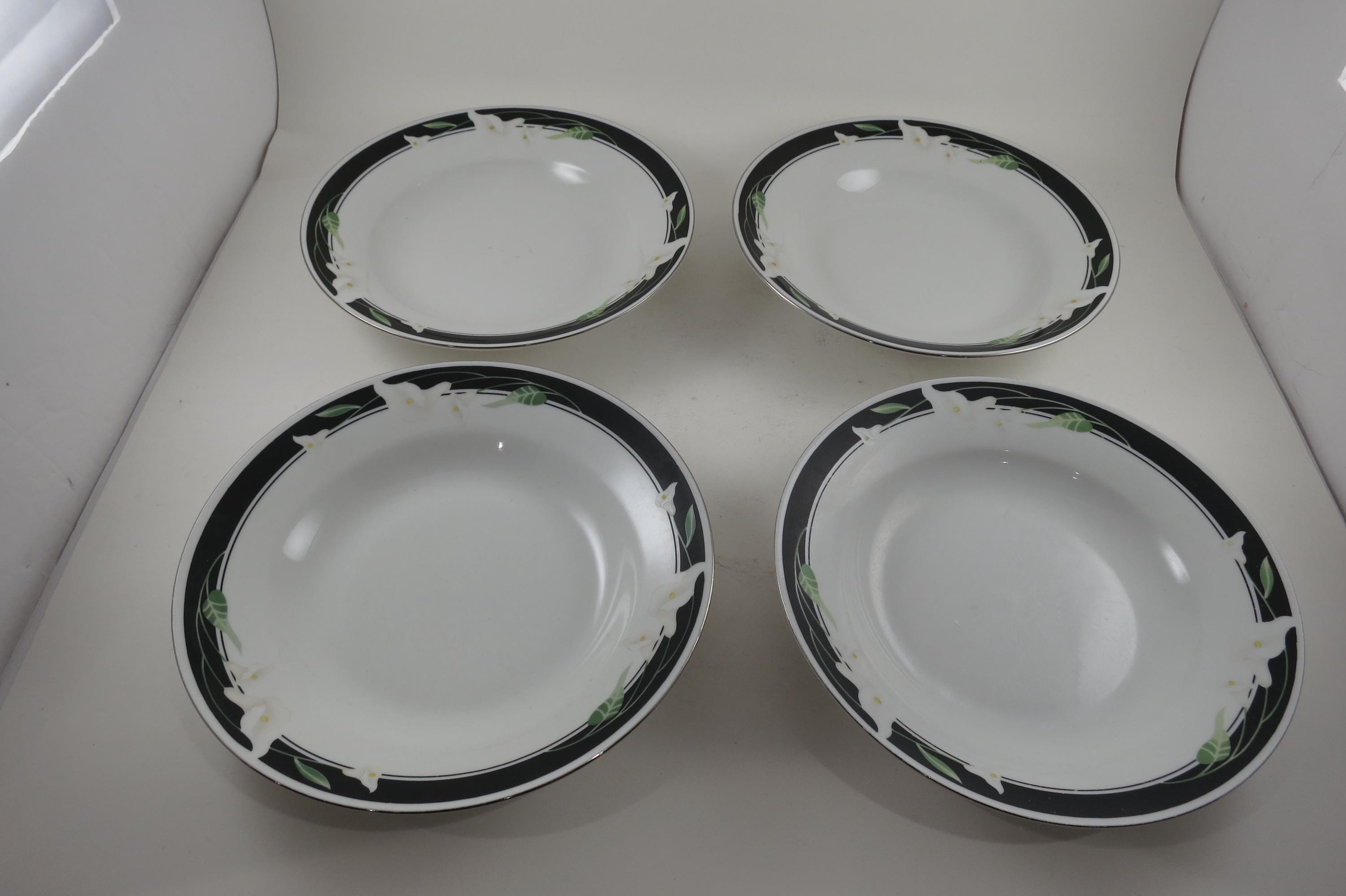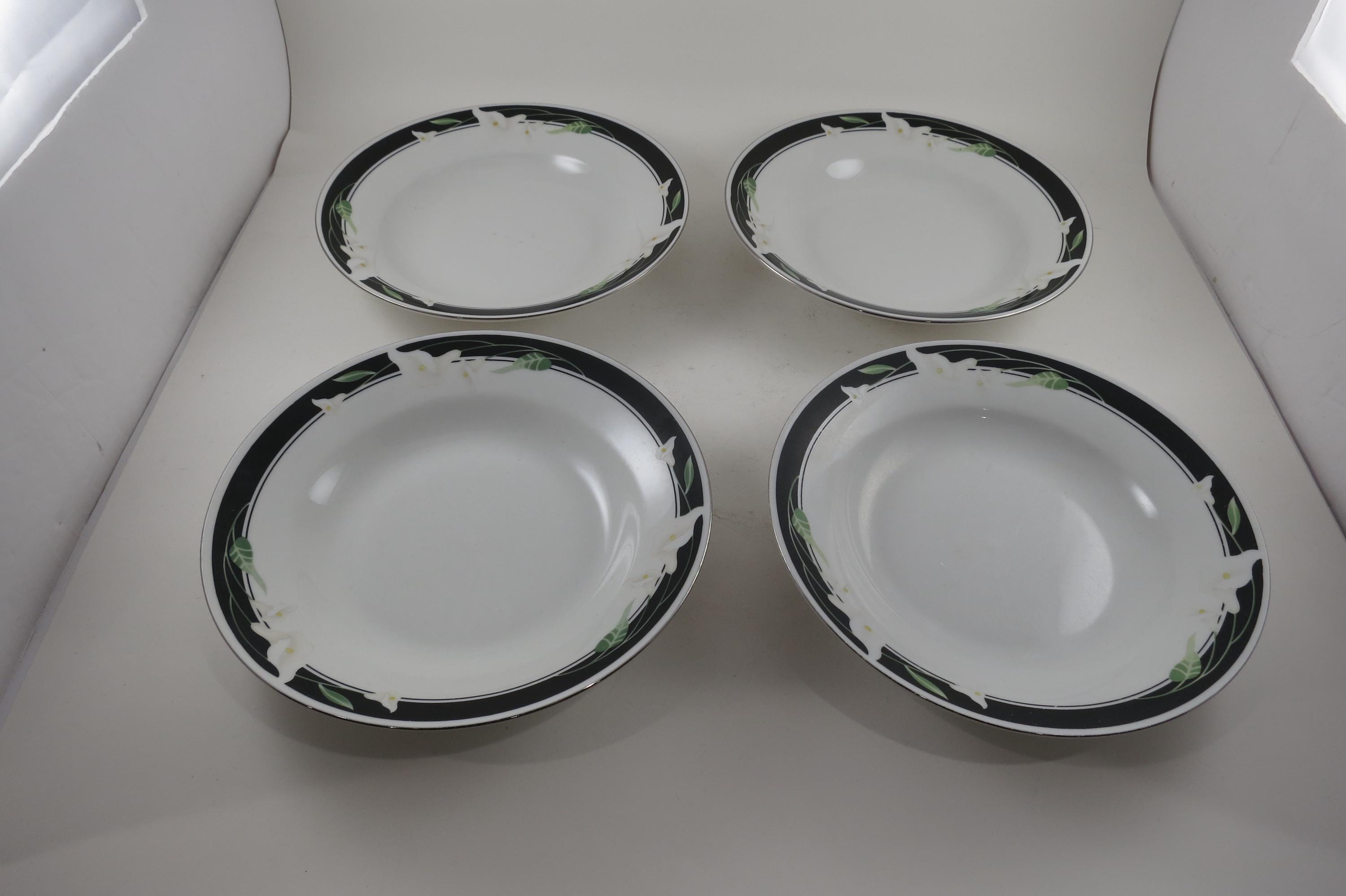 Vintage Majesty Collection Black Fantasy 8391 Pattern 8 Inch Rim Soup Bowls-Set of 4.
