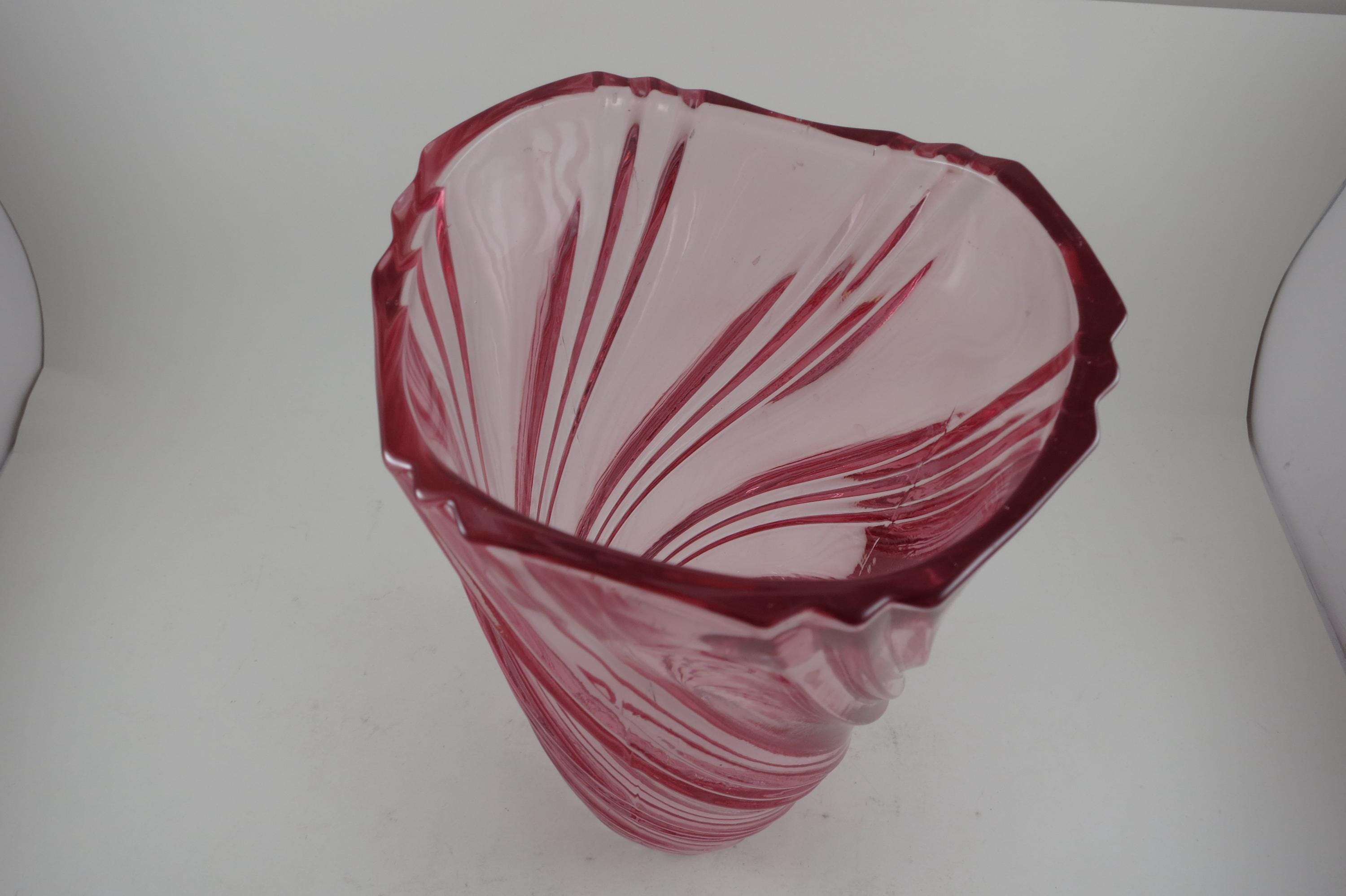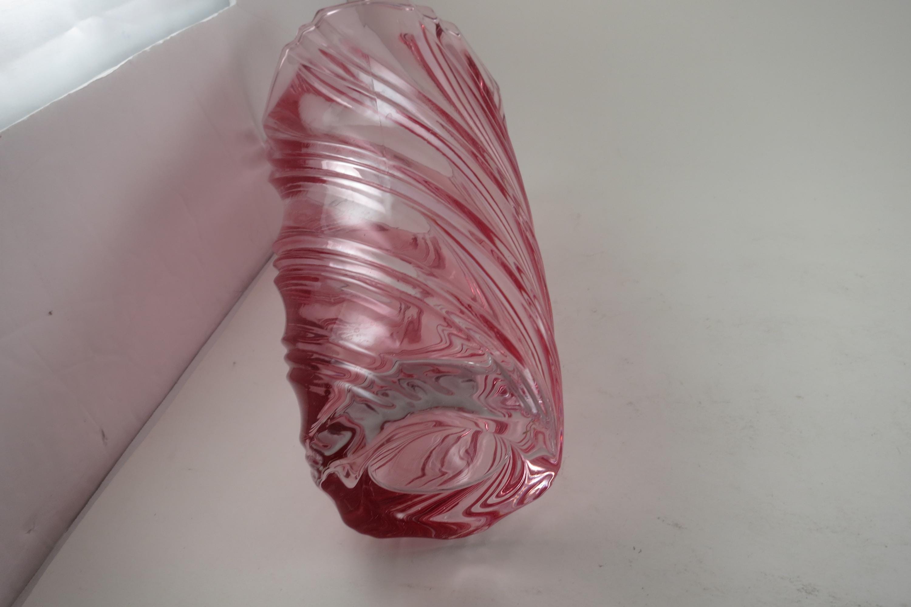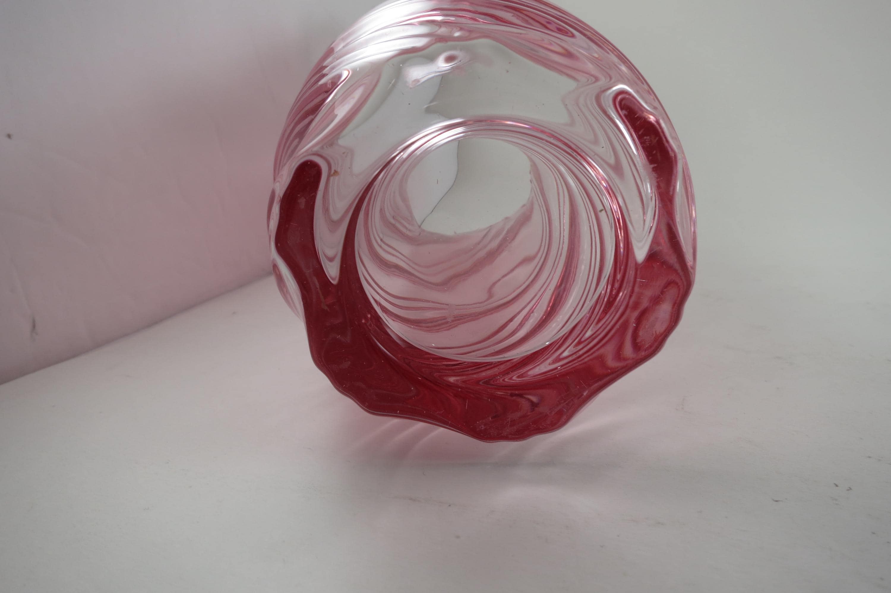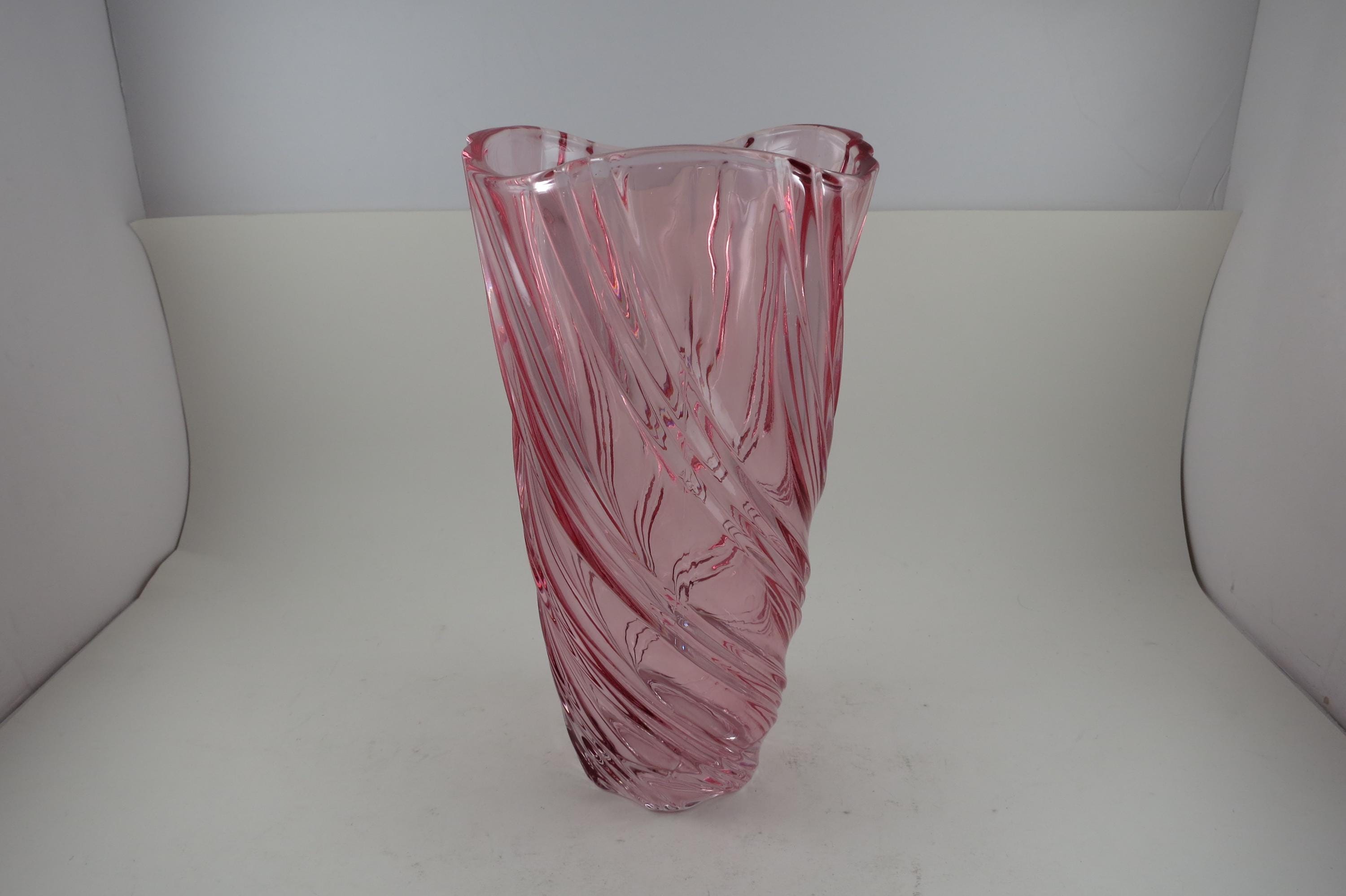Vintage Pink Peppermint Swirl Heavy Twisted Art Glass Vase 9 1/4 Inches Tall.