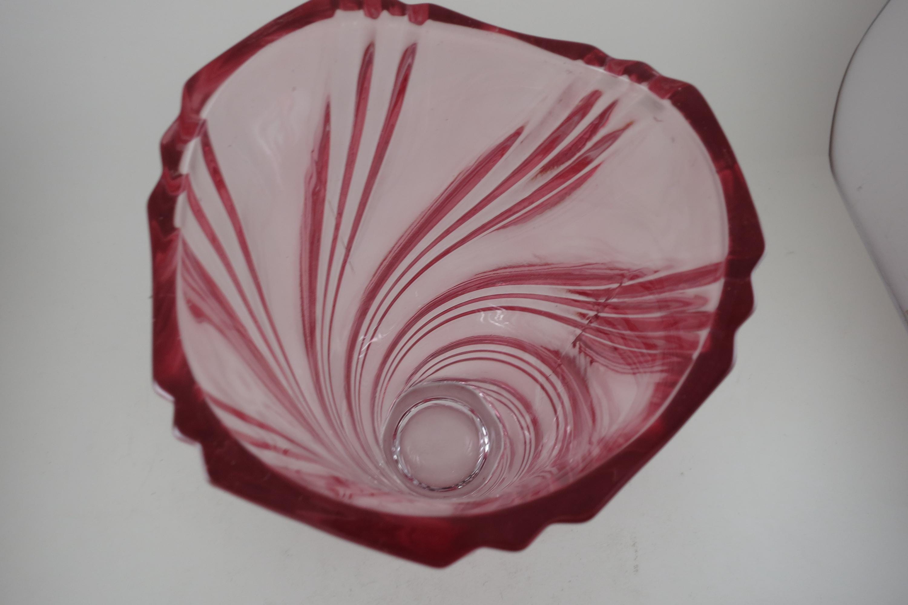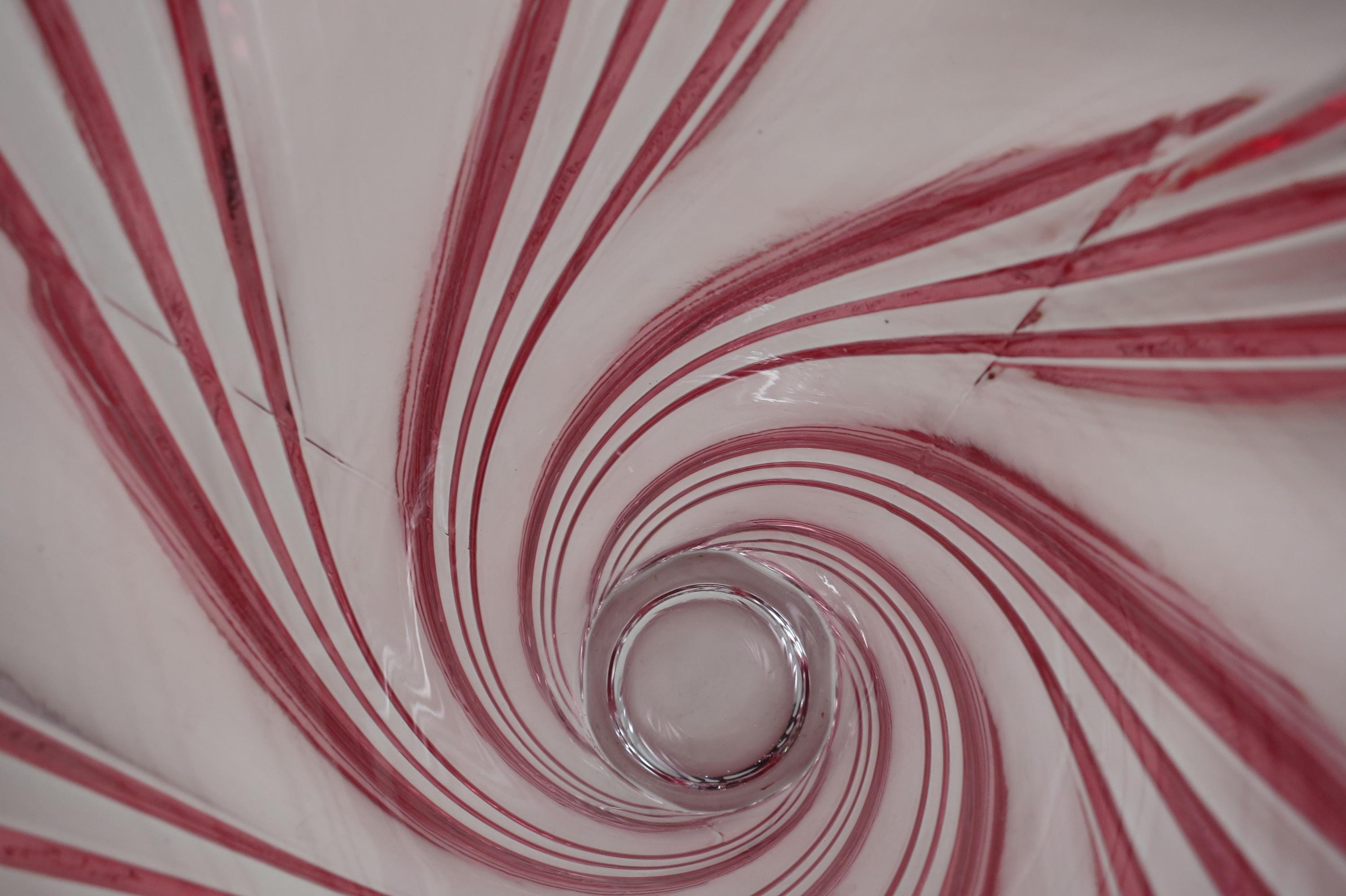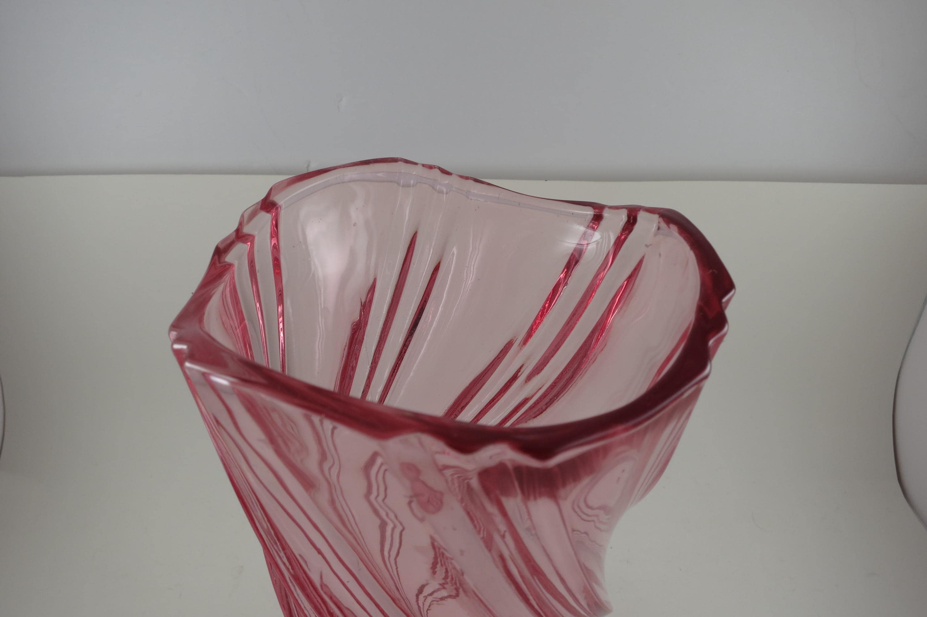 Vintage Pink Peppermint Swirl Heavy Twisted Art Glass Vase 9 1/4 Inches Tall