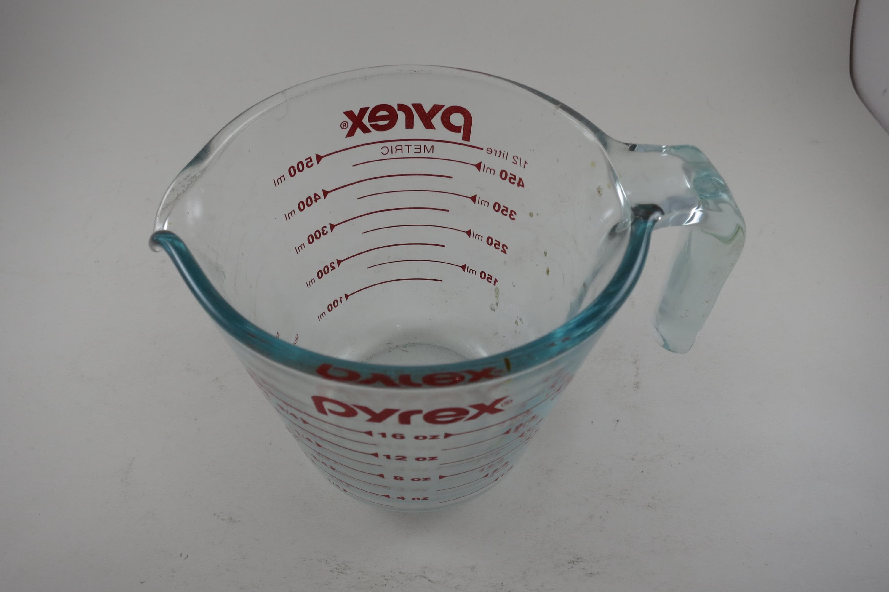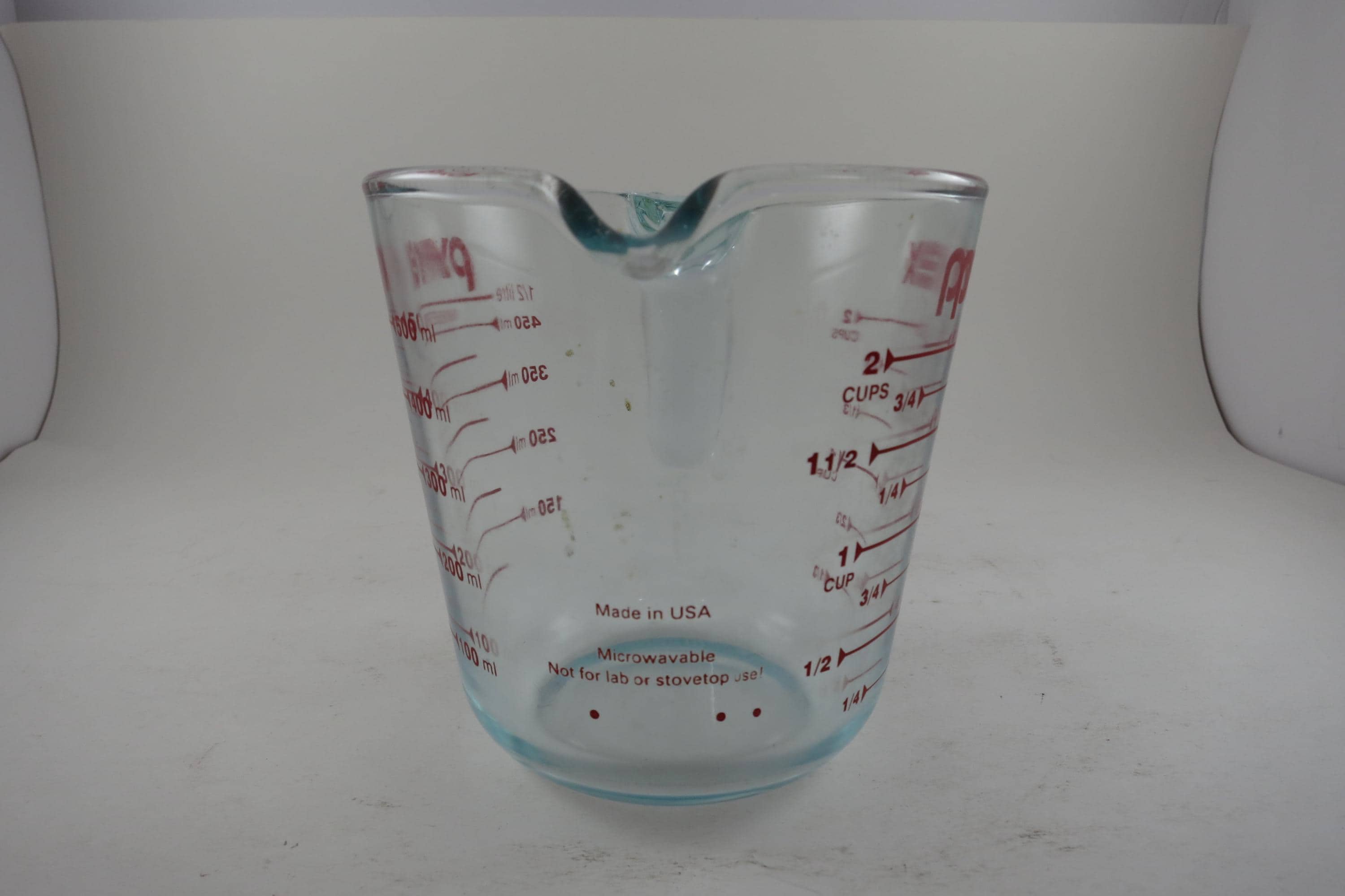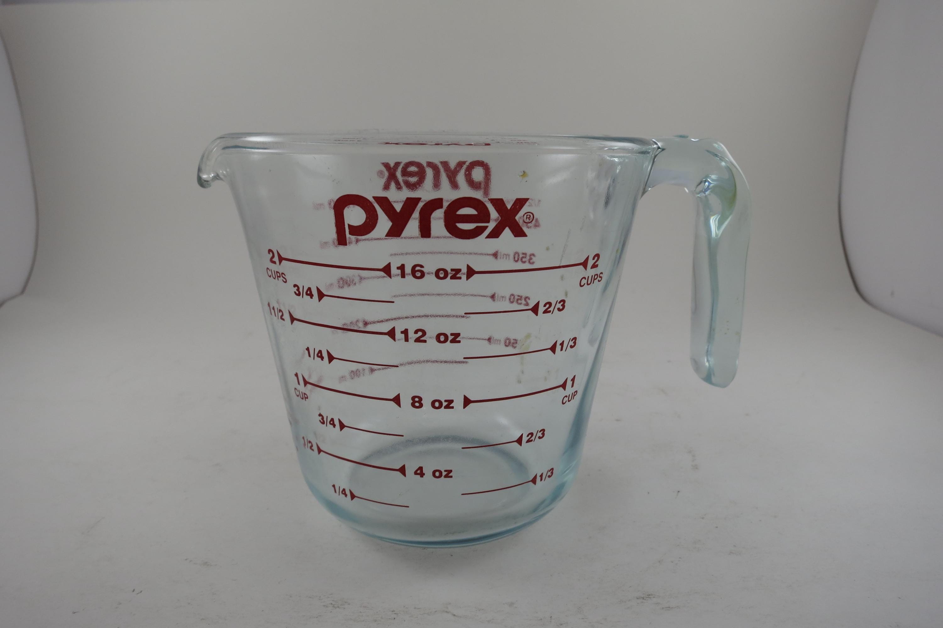 Vintage Red Letter Pyrex 2 Cup Measuring Cup with Handle Excellent Condition, no chips, cracks or damages. Light Use Wear.