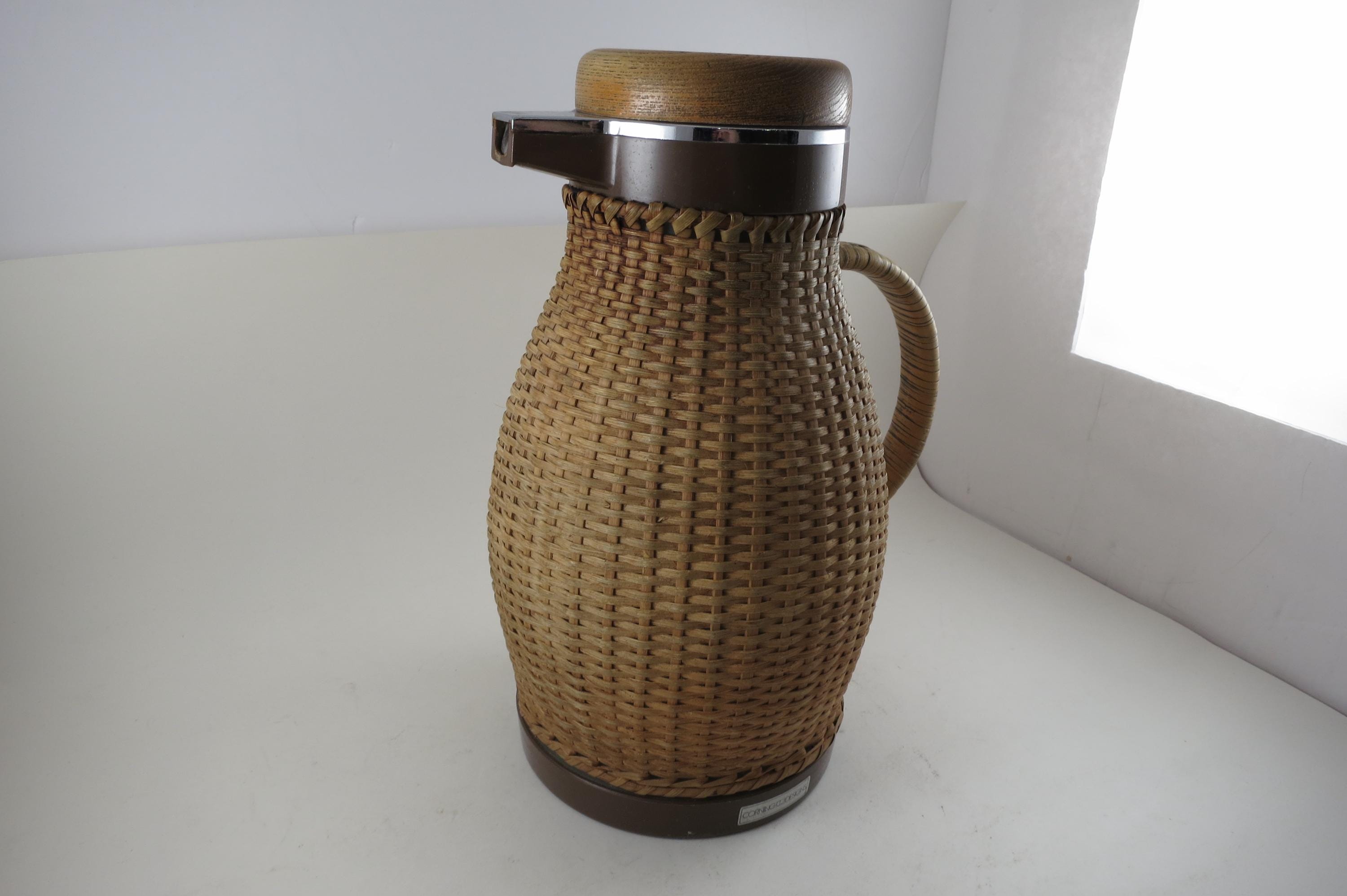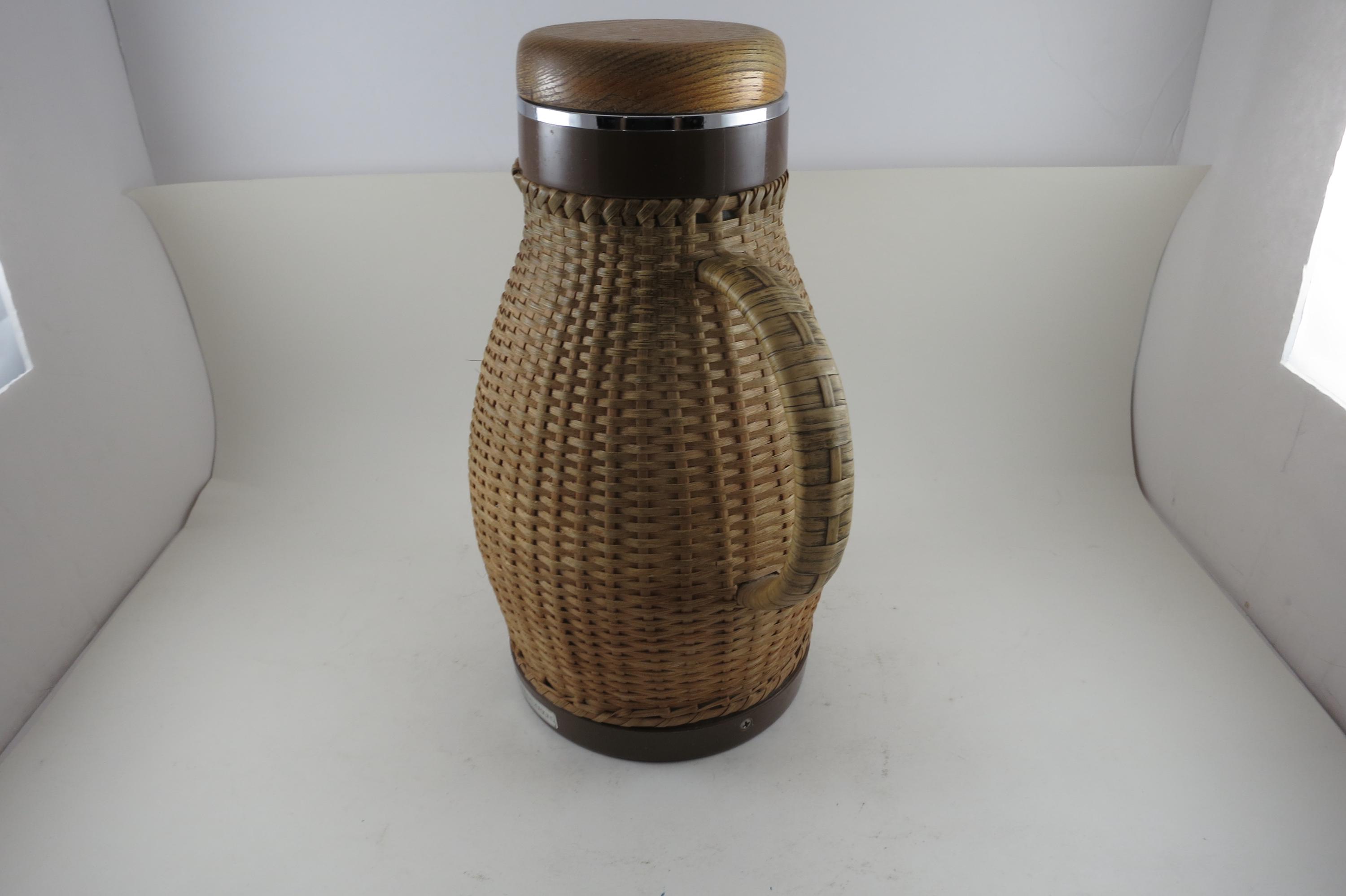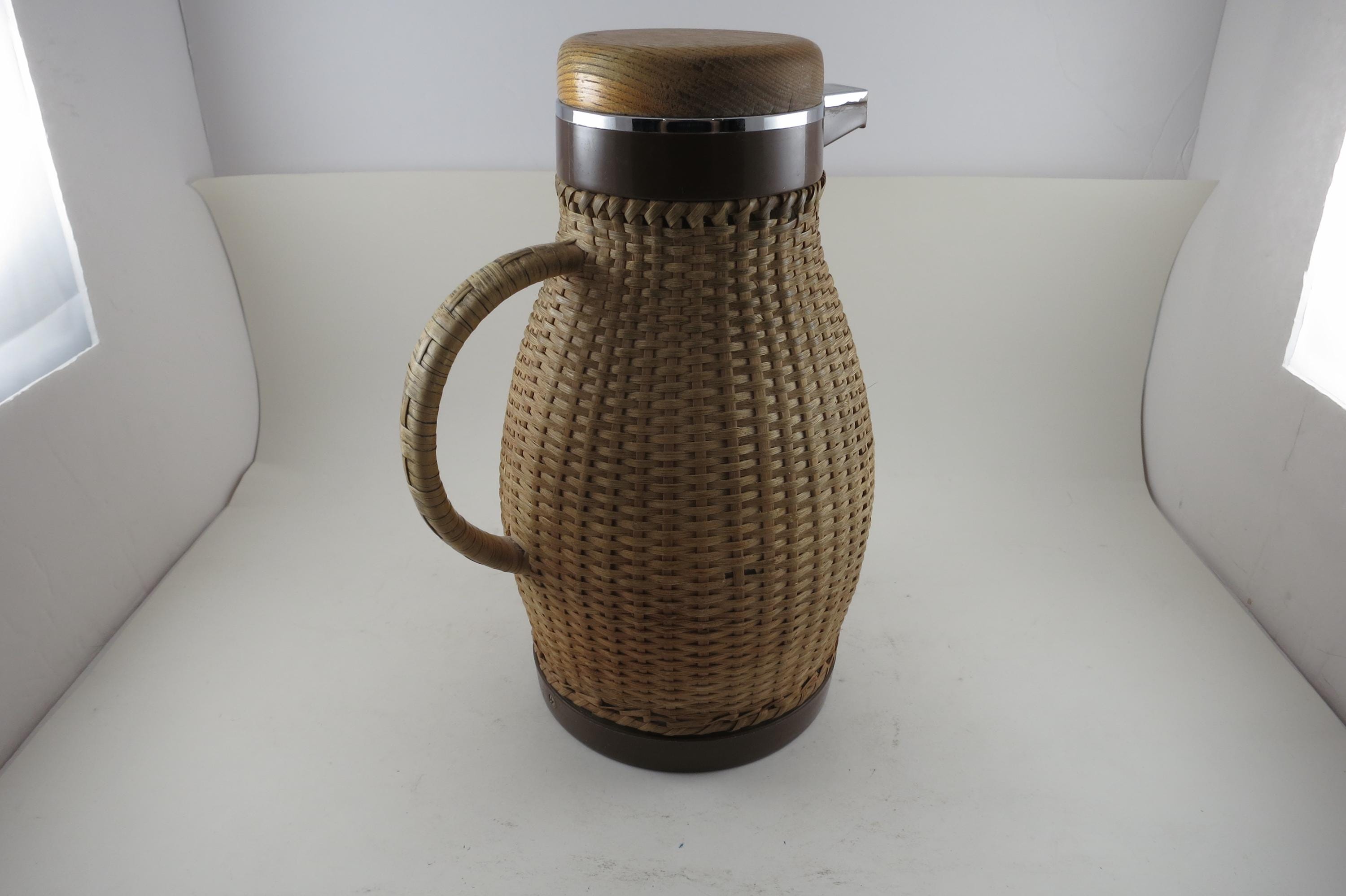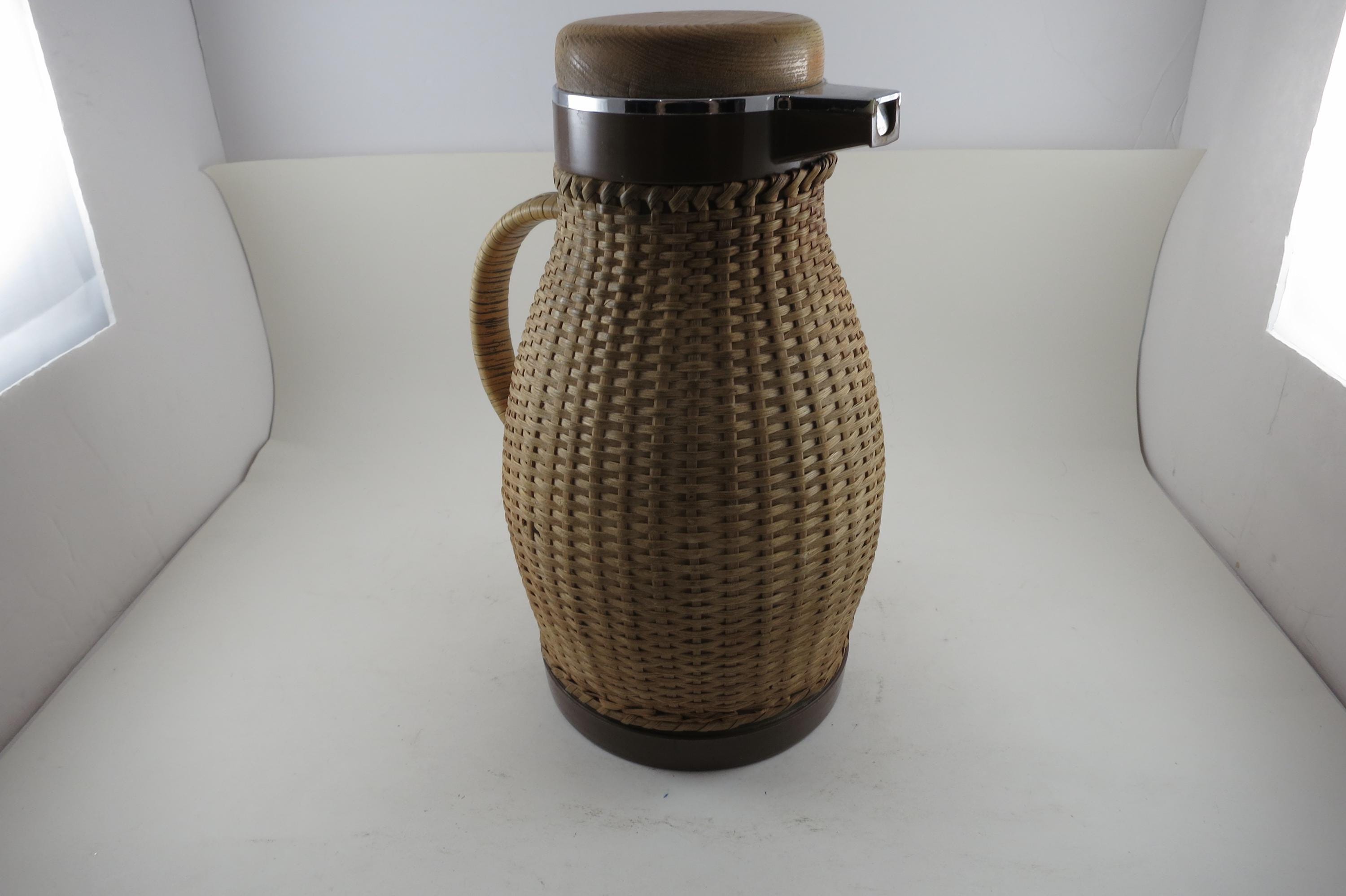 Vintage Corning Designs Wicker Rattan Insulated Coffee Carafe Thermos.