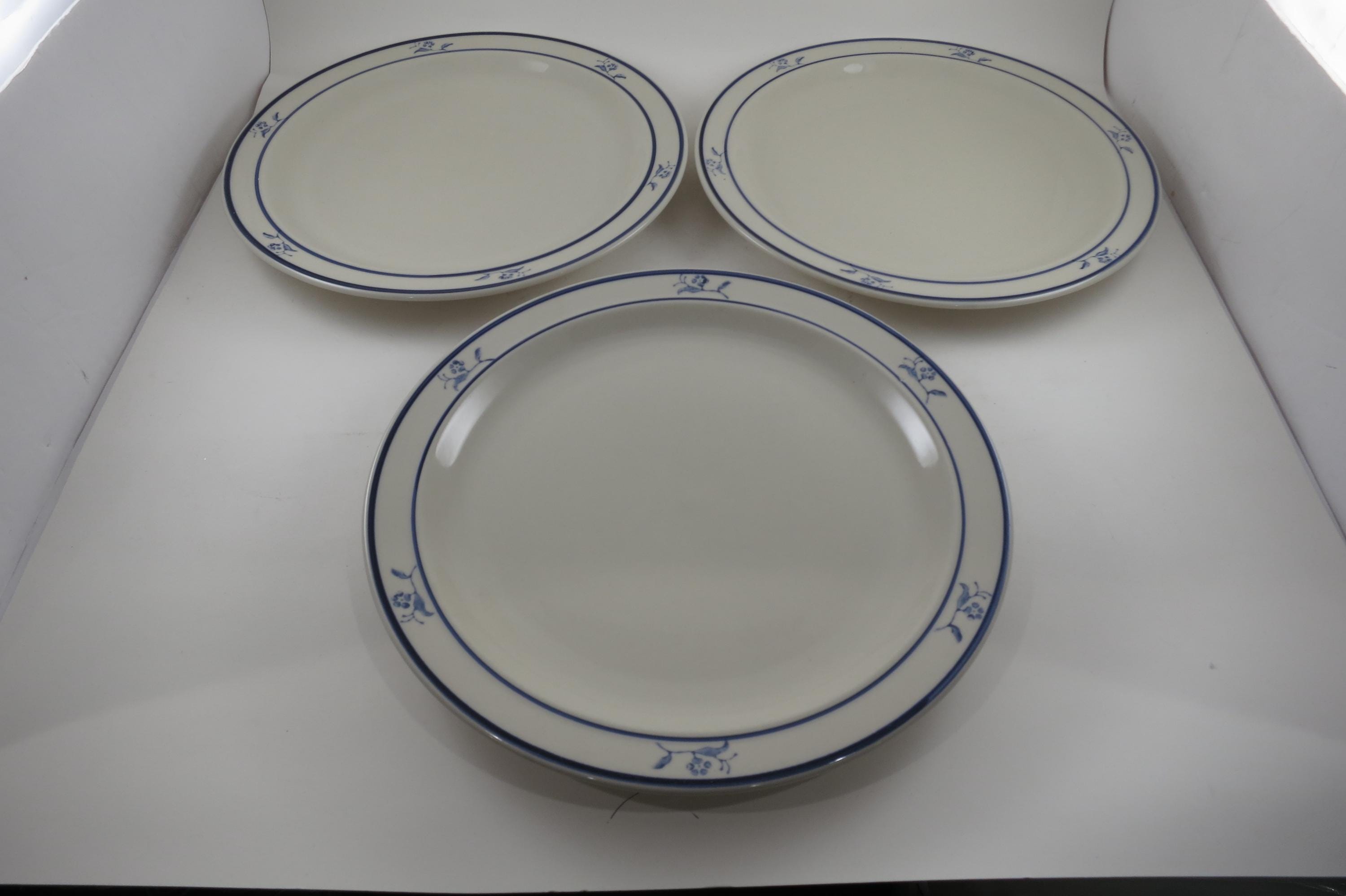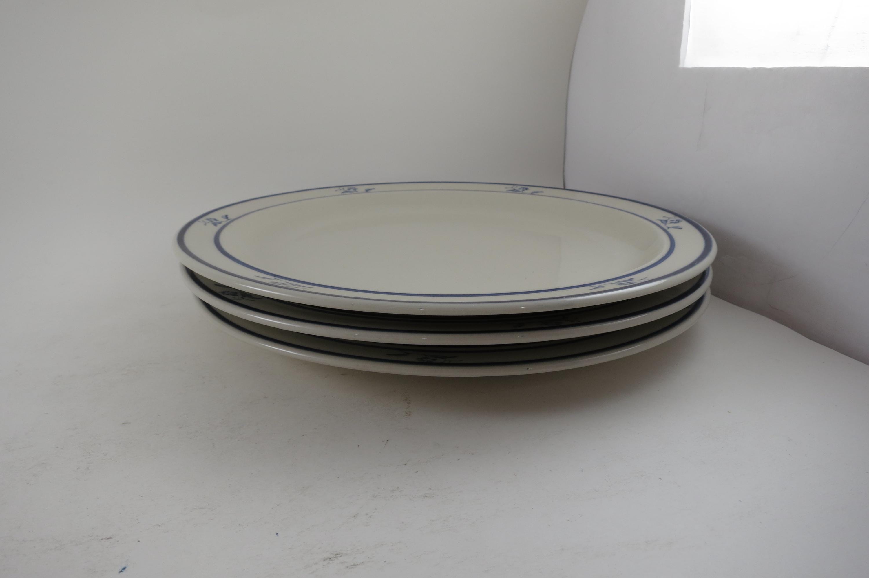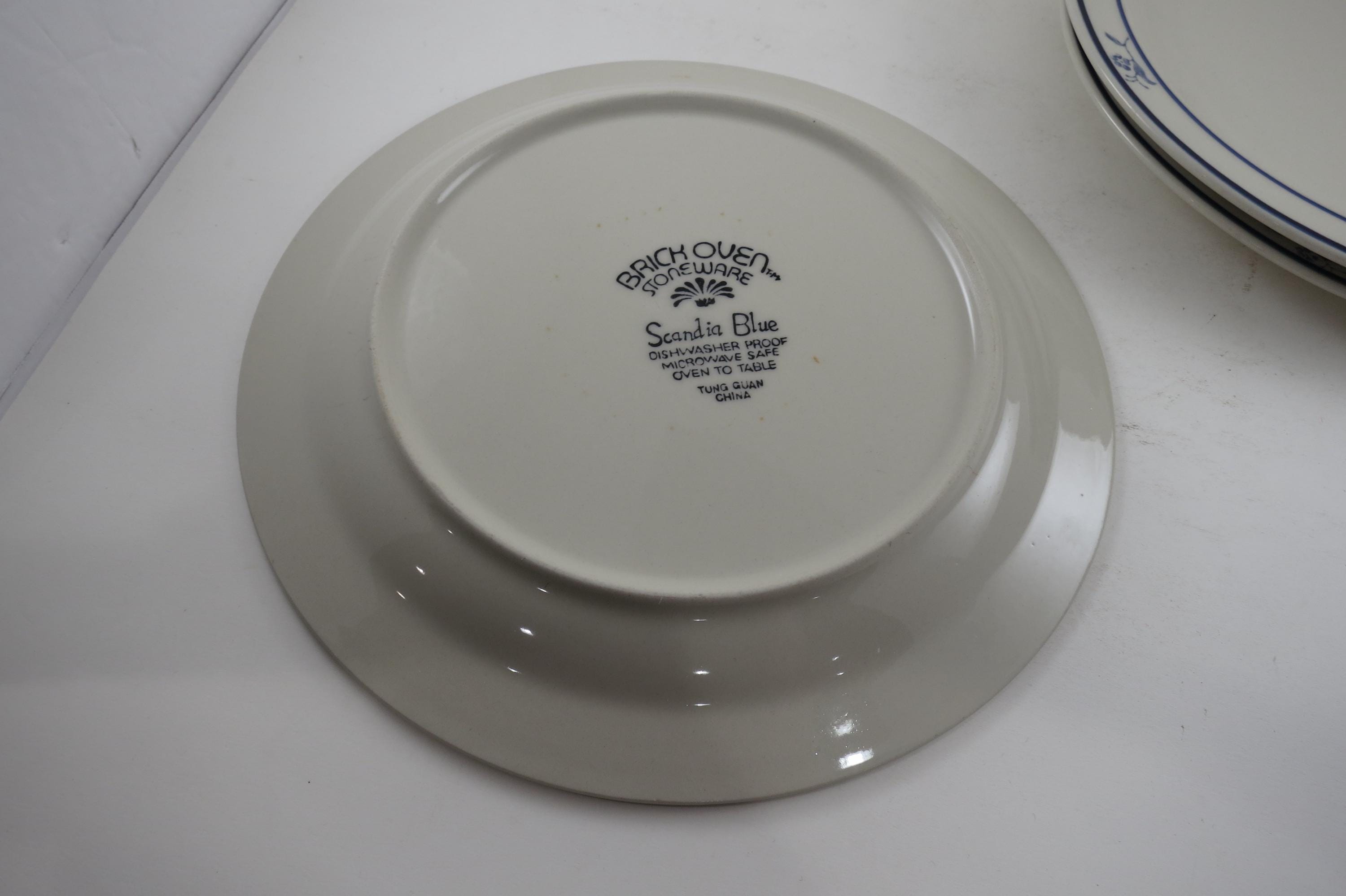 Set of 3 Brick Oven Stoneware Scandia Blue 10 Inch Dinner Plates.