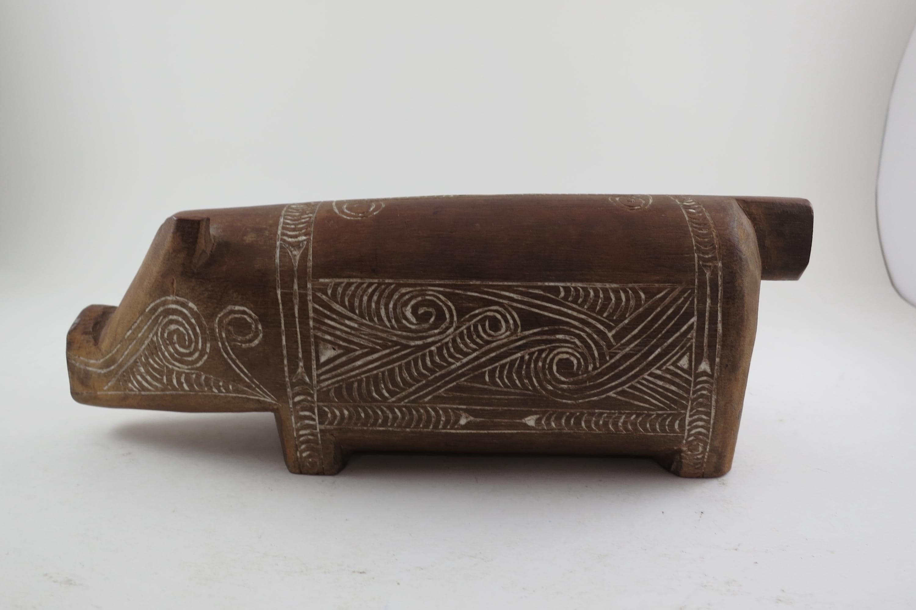 Hand Carved Peruvian Wooden Pig: Folk Art.