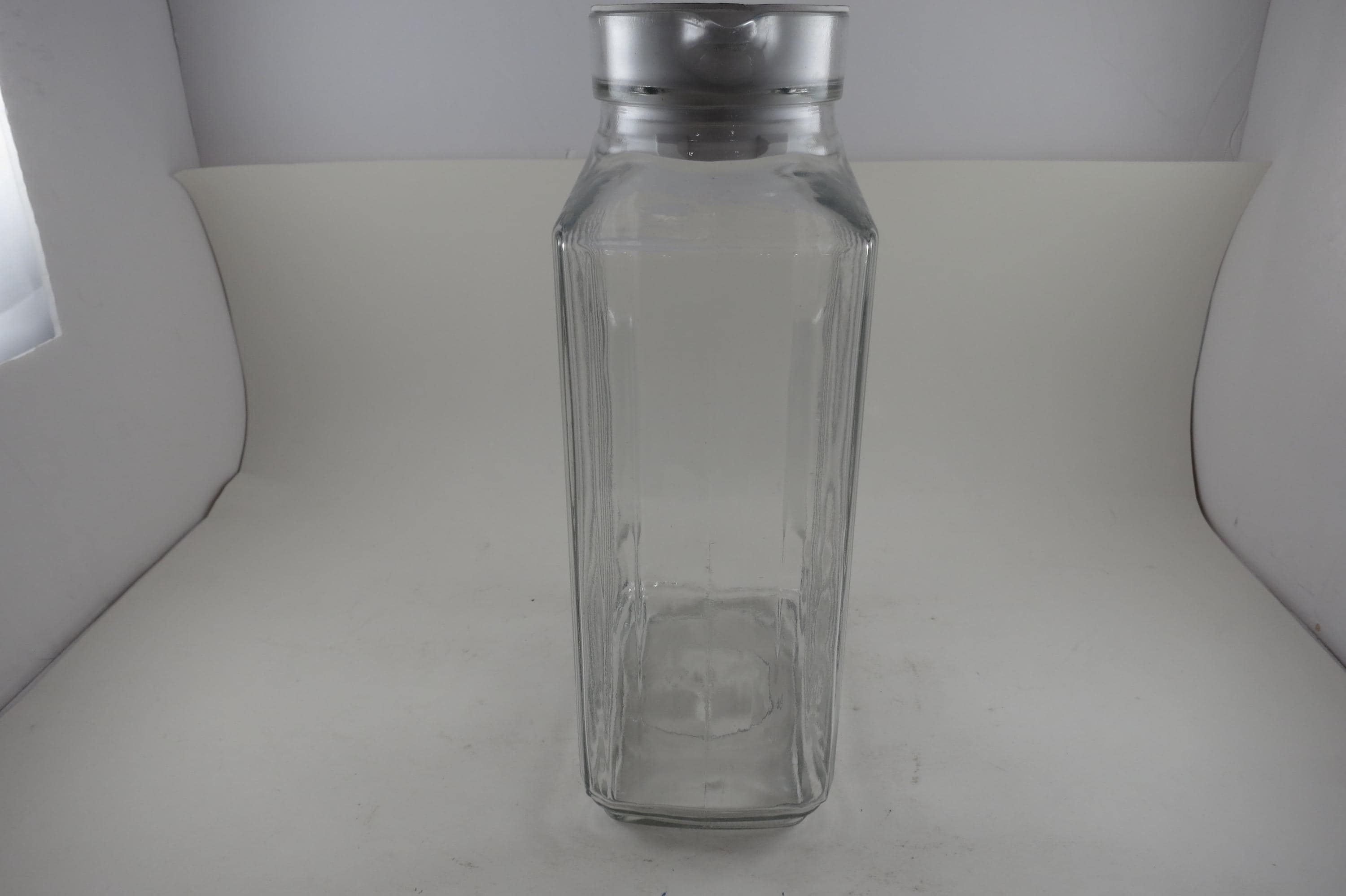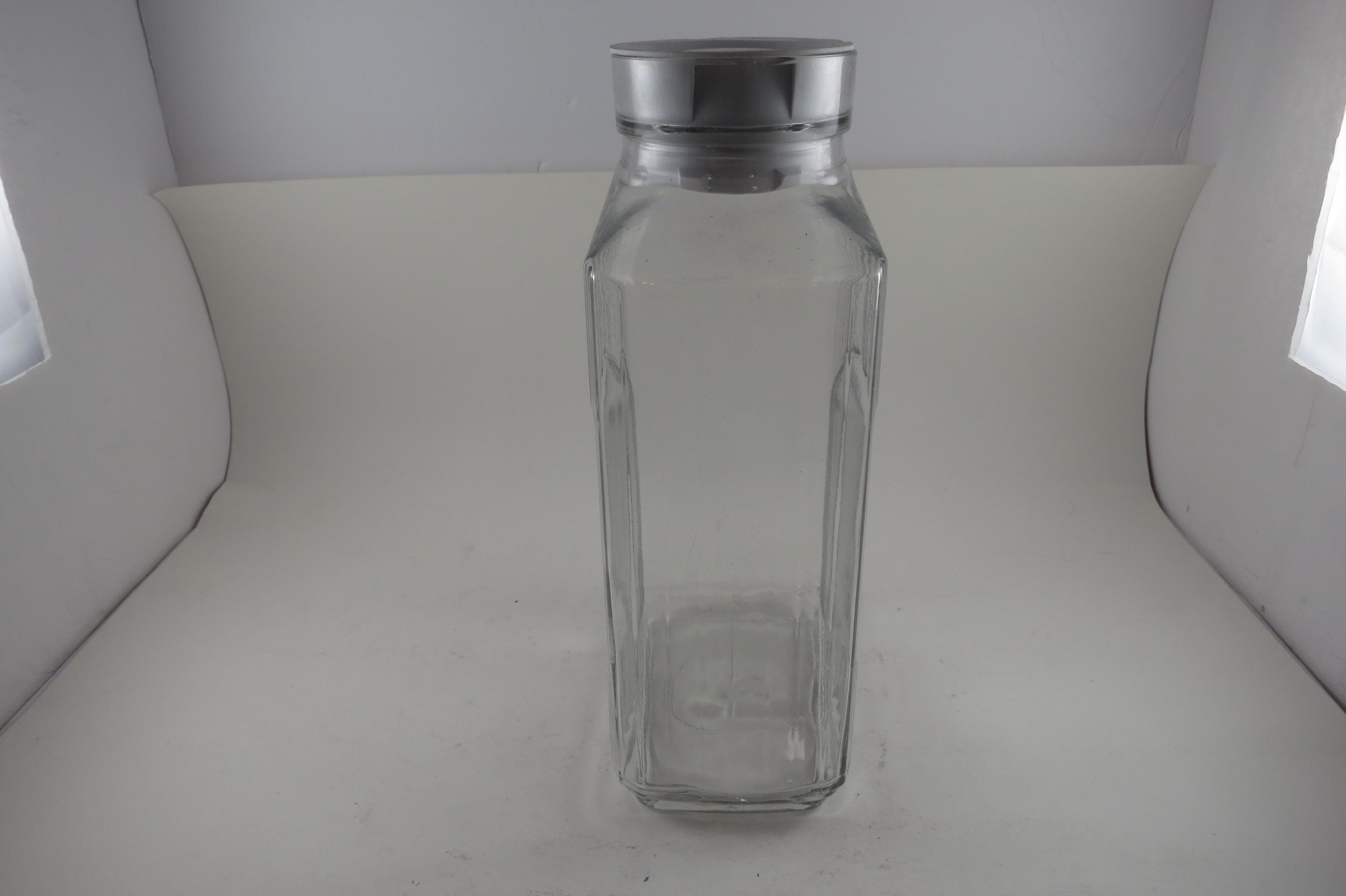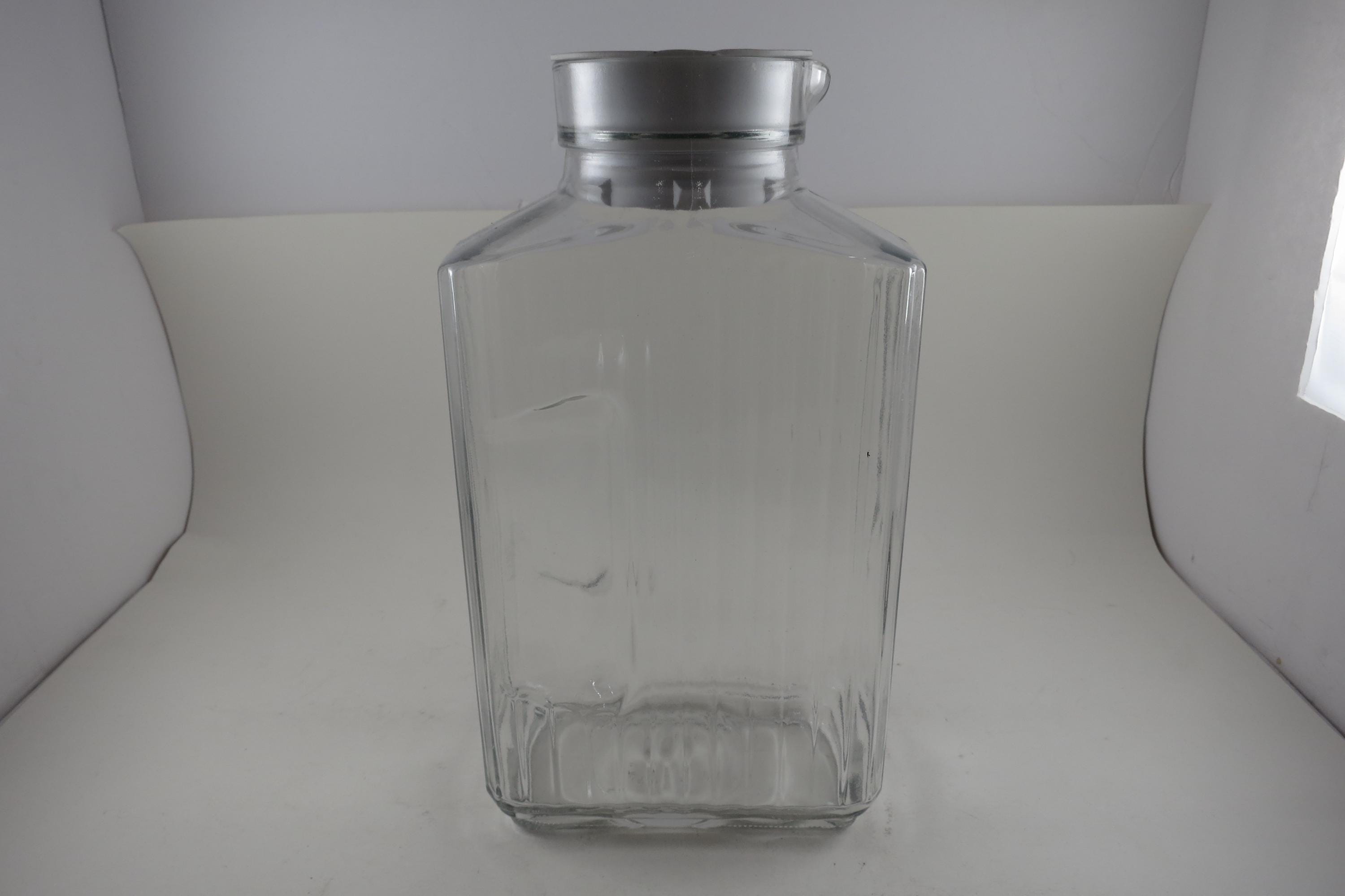 Vintage Anchor Hocking Ribbed Glass Juice/Water Jar with Original White Lid 2 Liter Excellent Original Condition. Measures 10 1/2 Inches Tall and 5 1/2 inches wide. Excellent Condition with No chips, cracks or damages.
