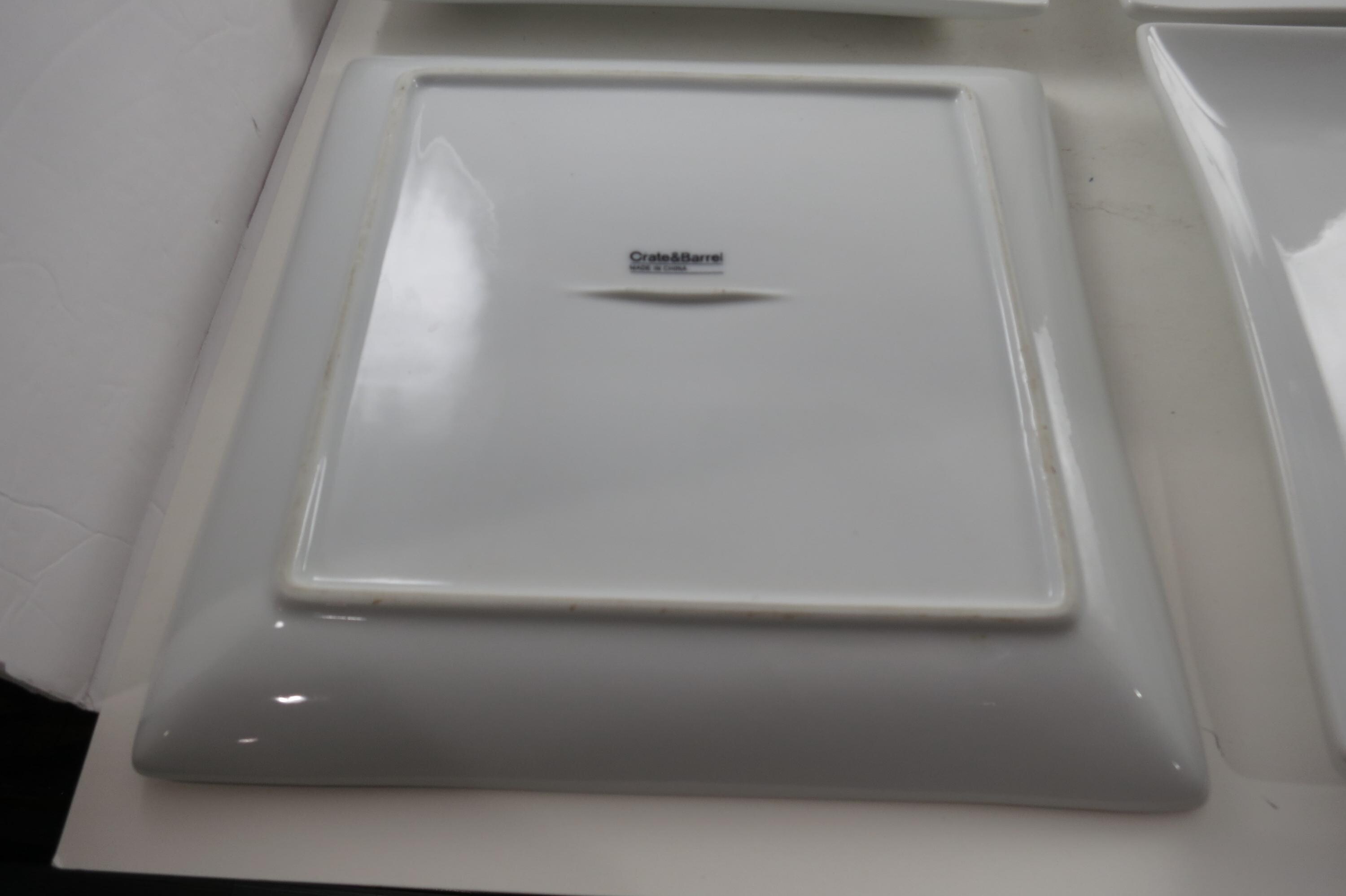 Set of Four Crate & Barrel Court 9 1/2 Inch Square Dinner Plates