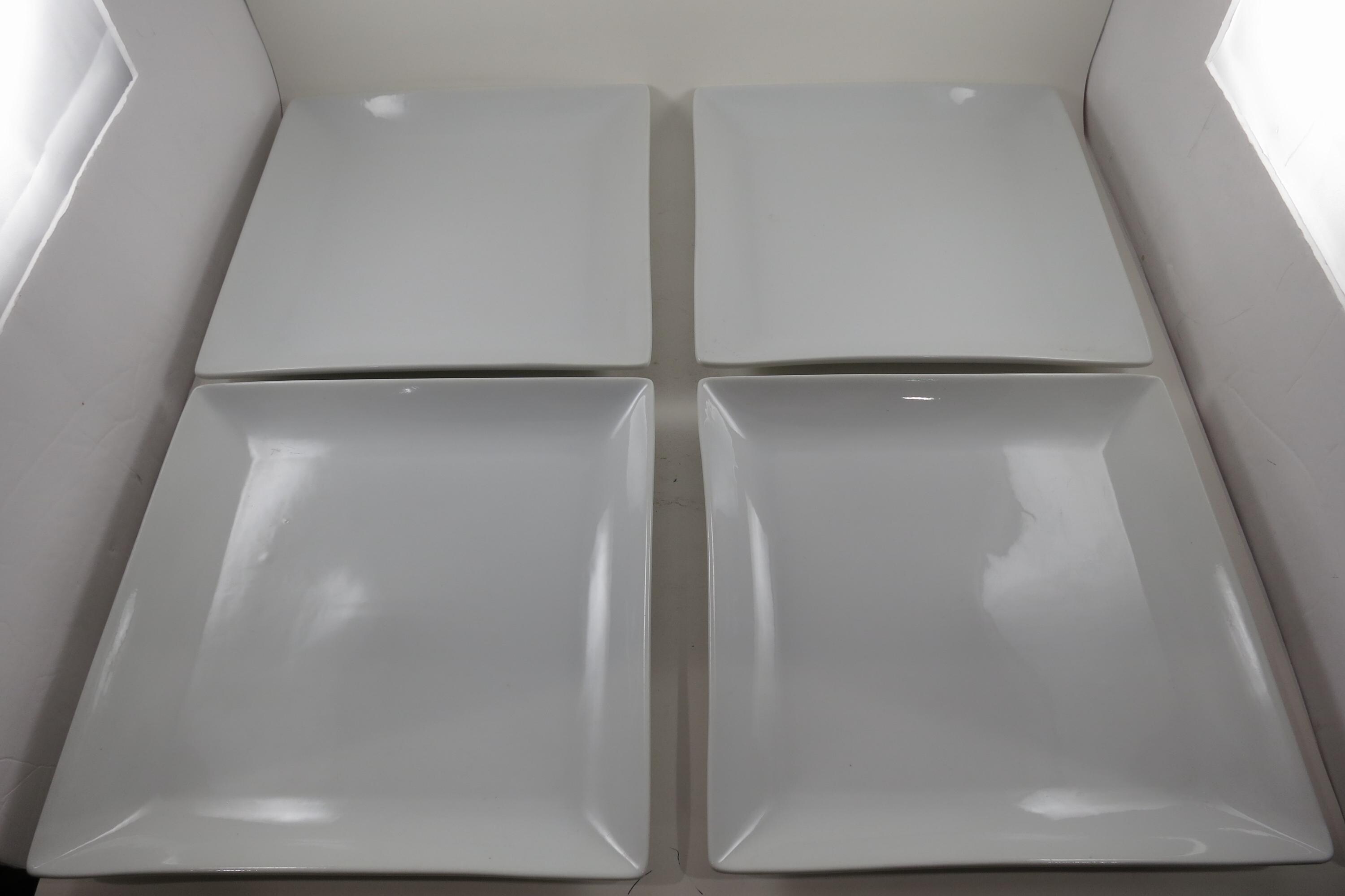 This listing is for a set of four 9 1/2 Inch Square Dinner Plates.