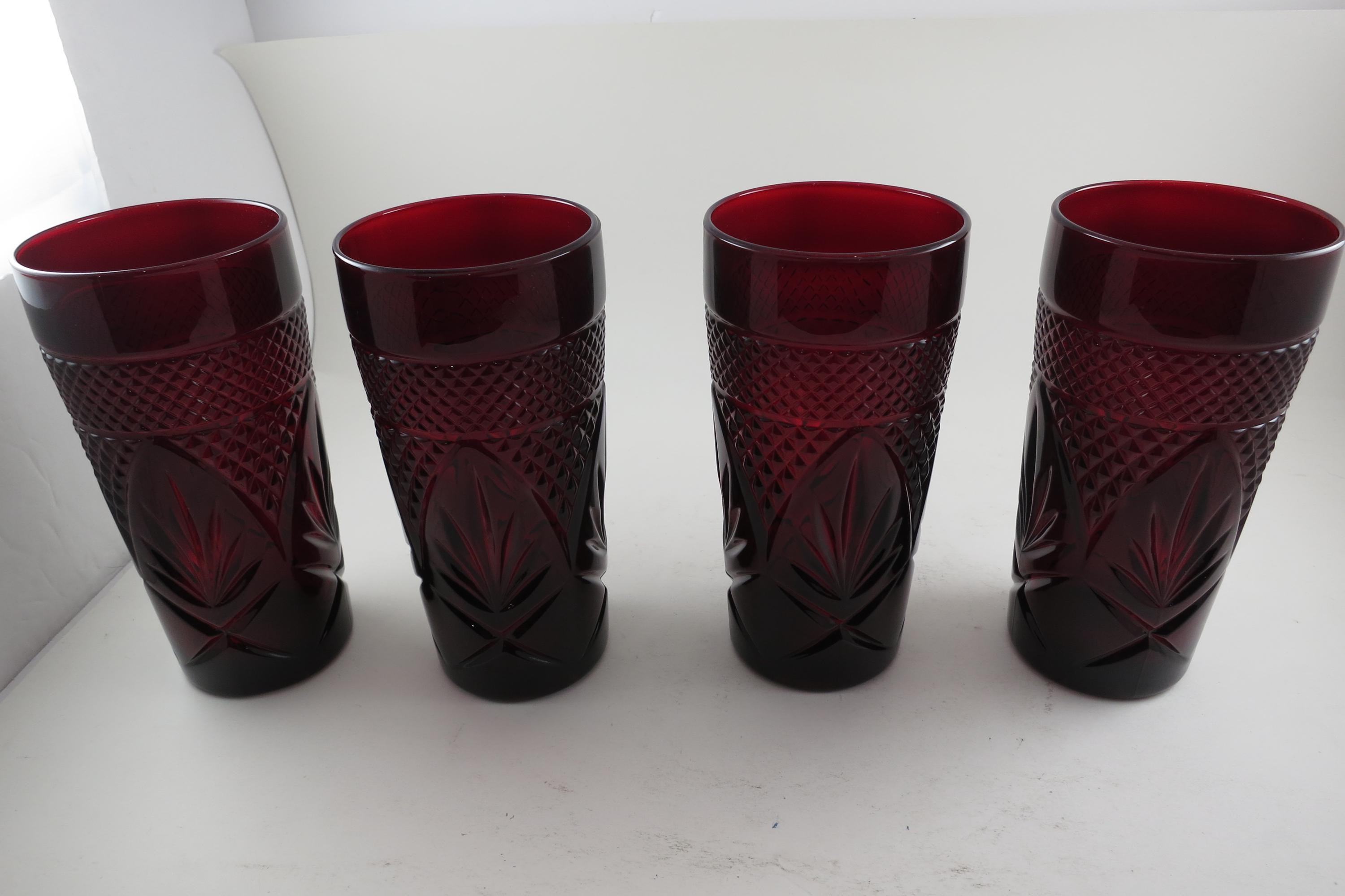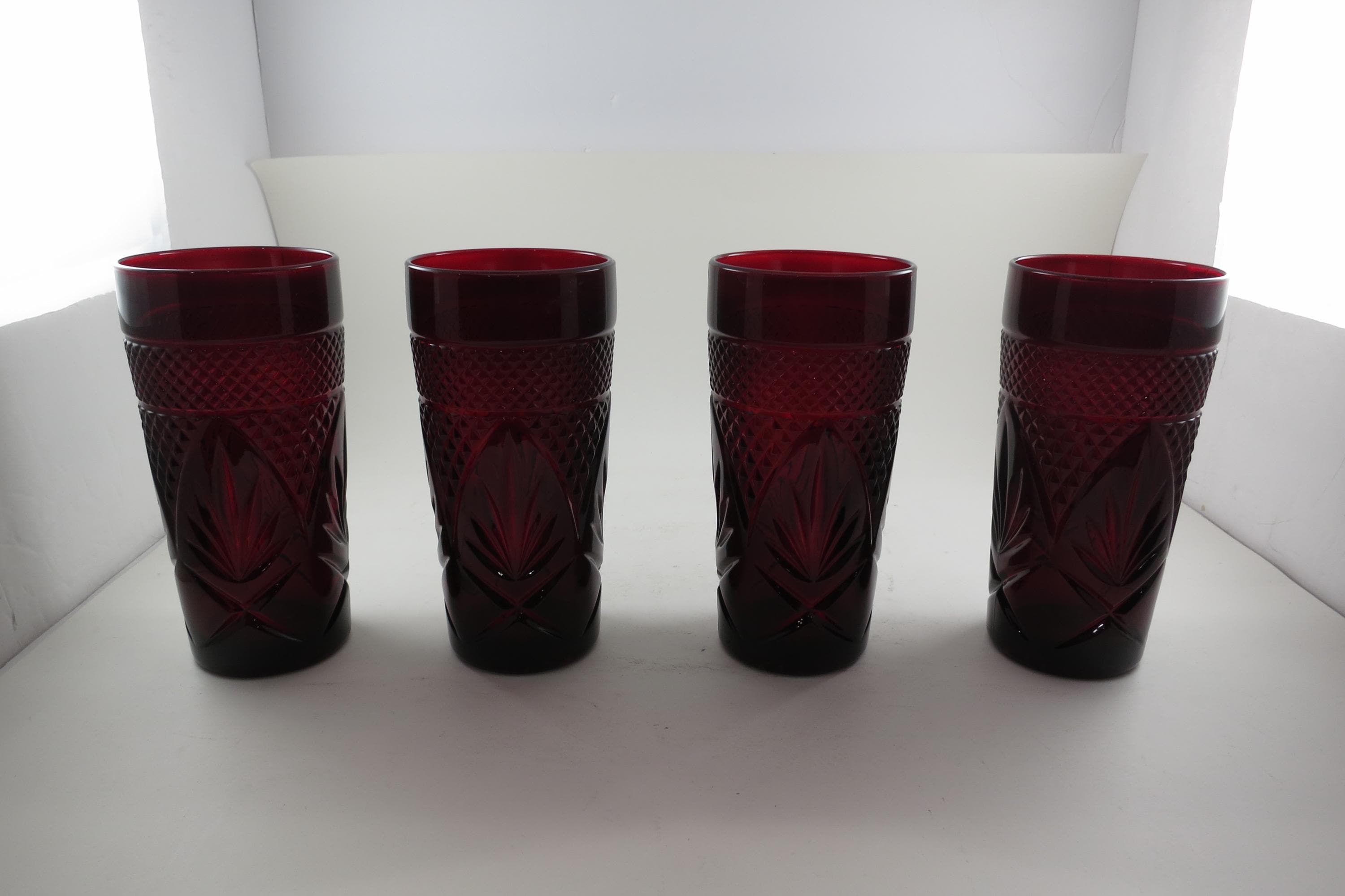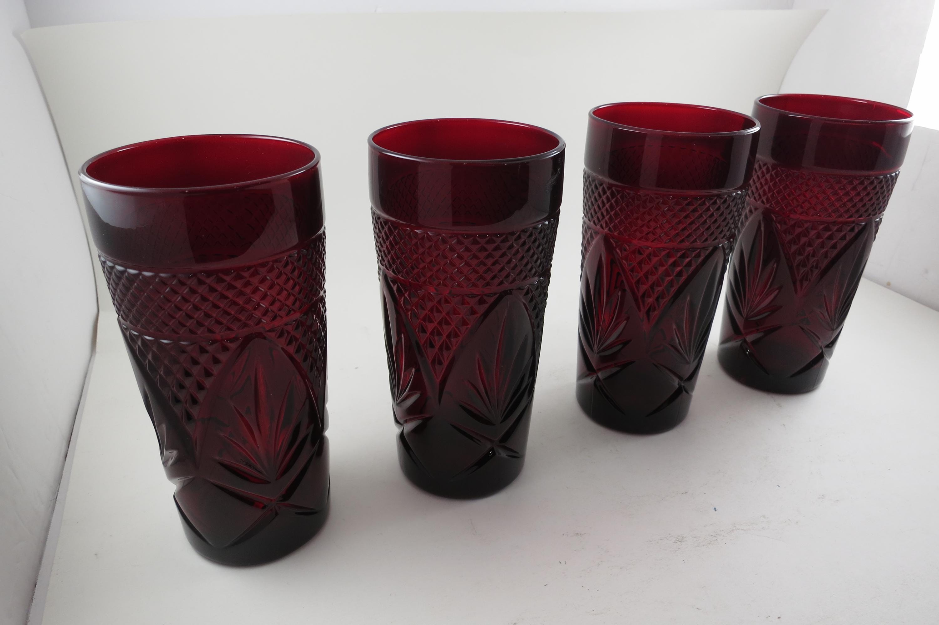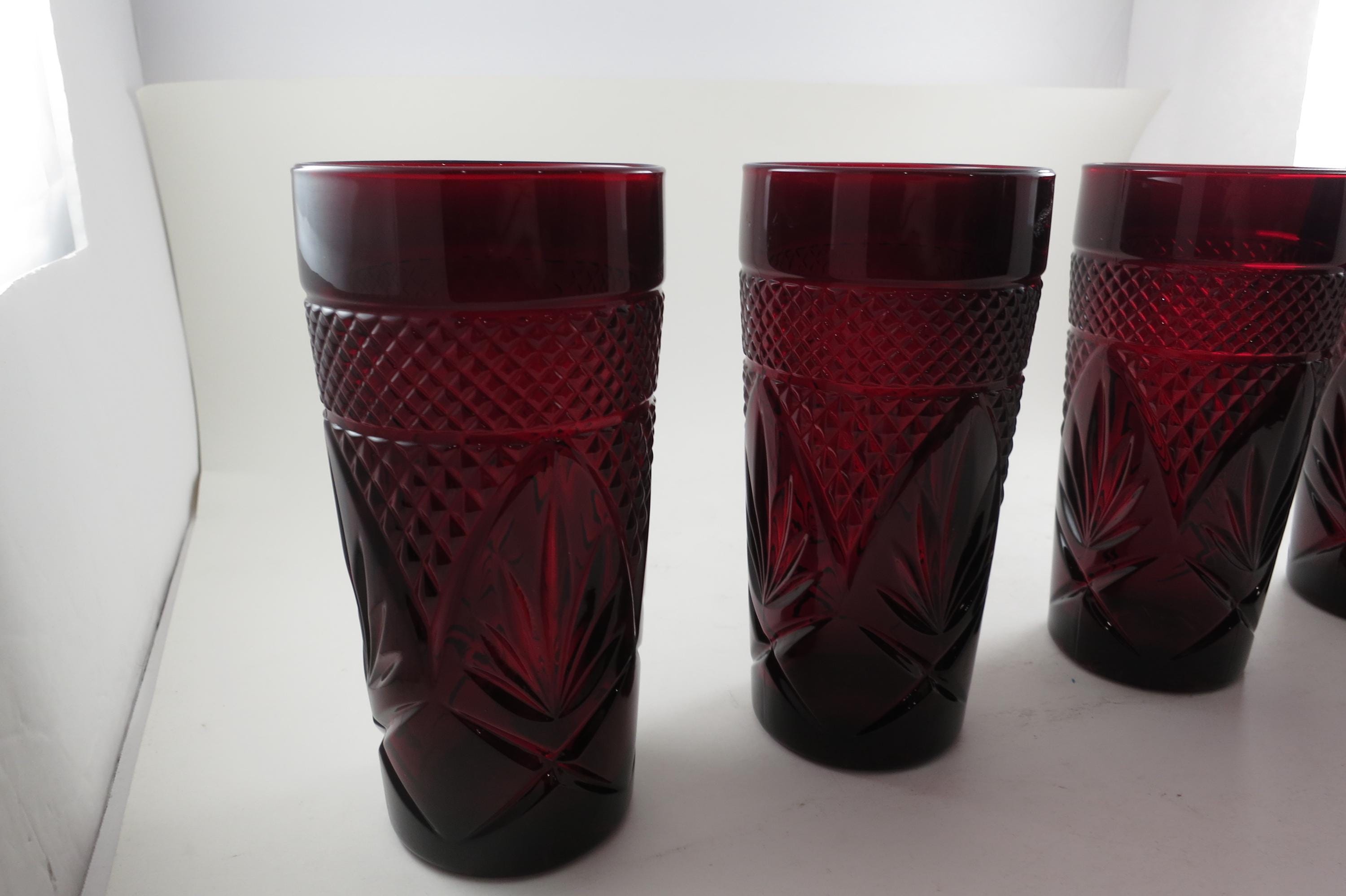 Vintage Set of Four Ruby Red Cristal d'Arques Durand Luminarc Water Glasses