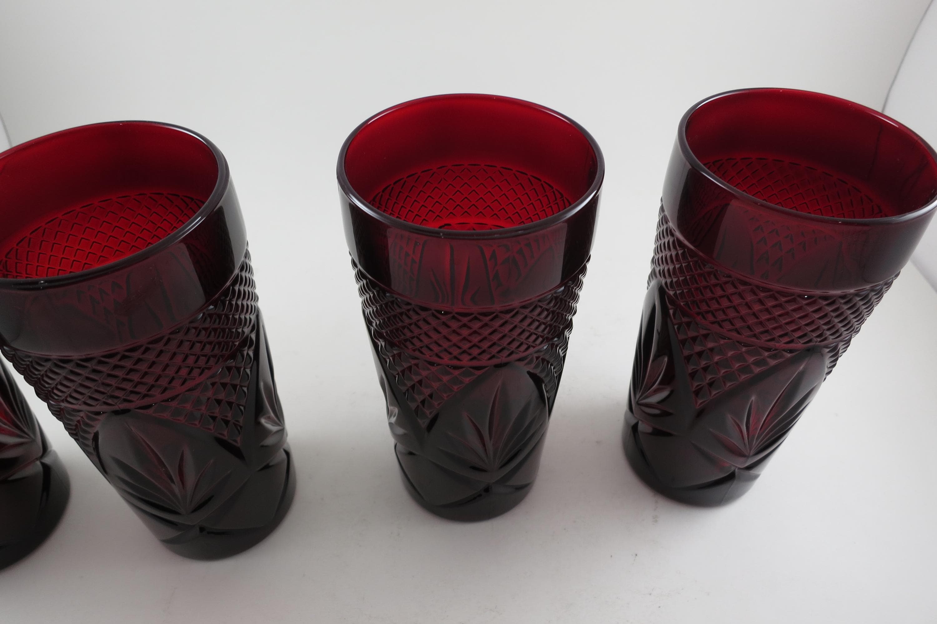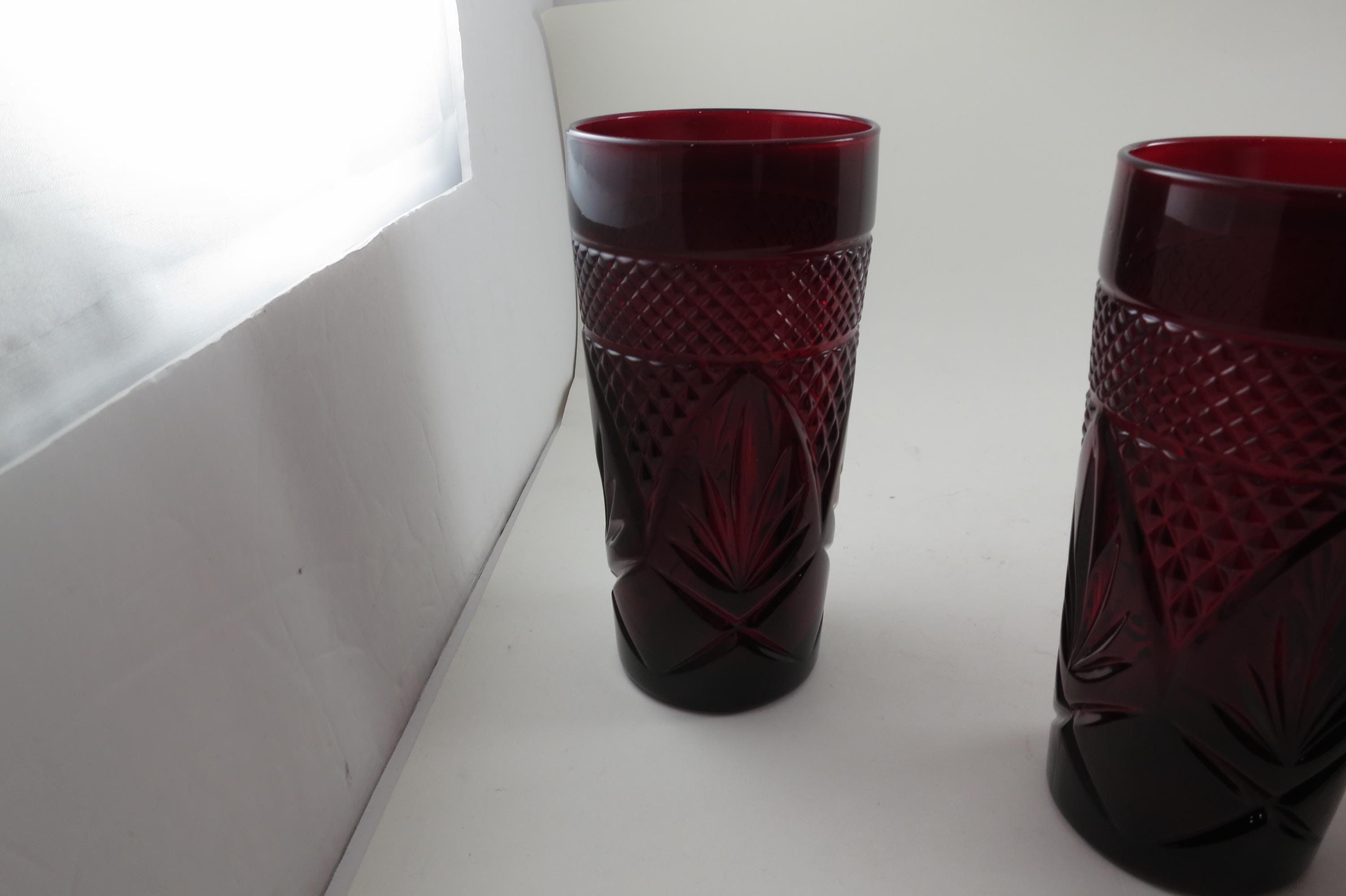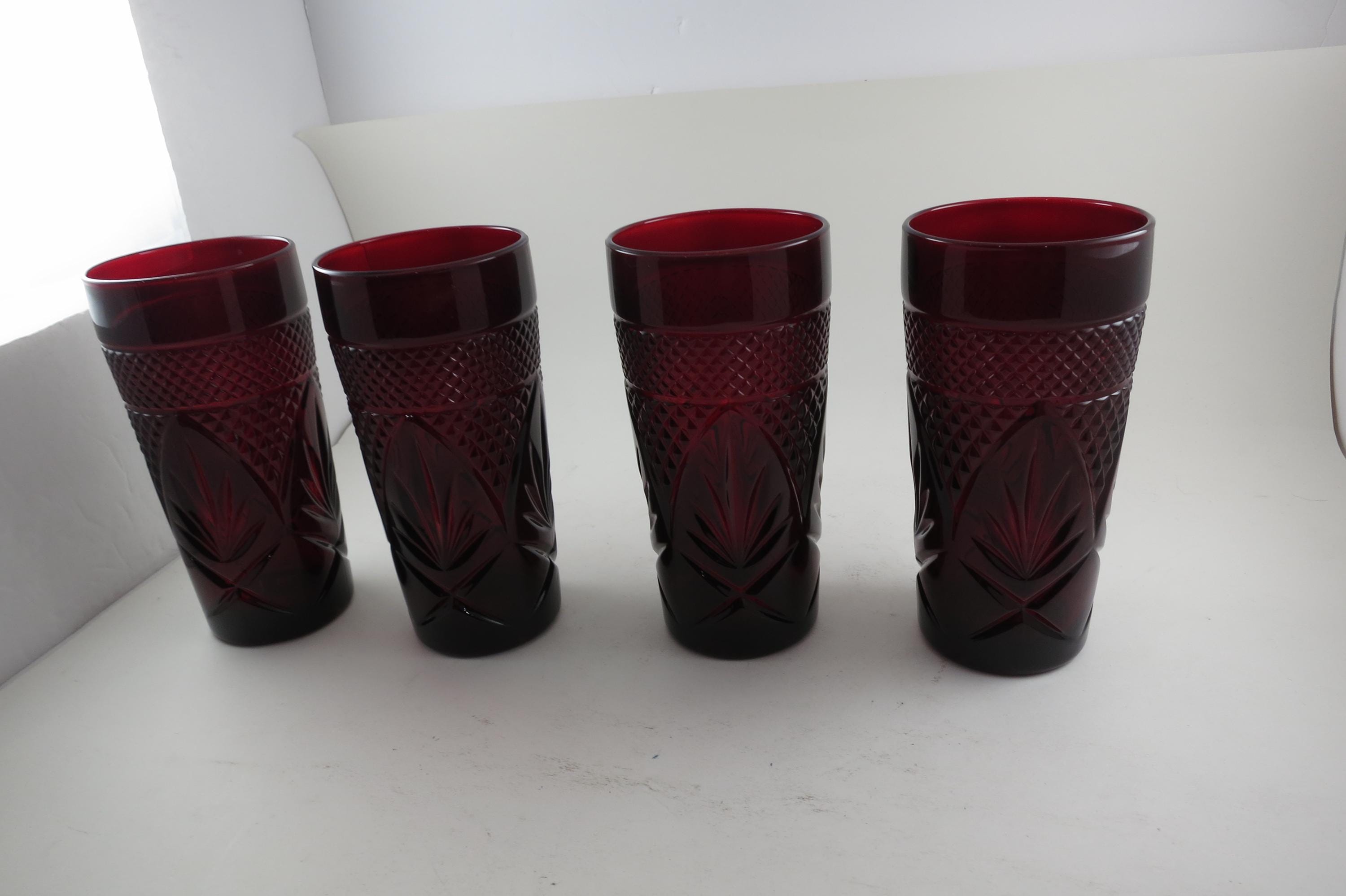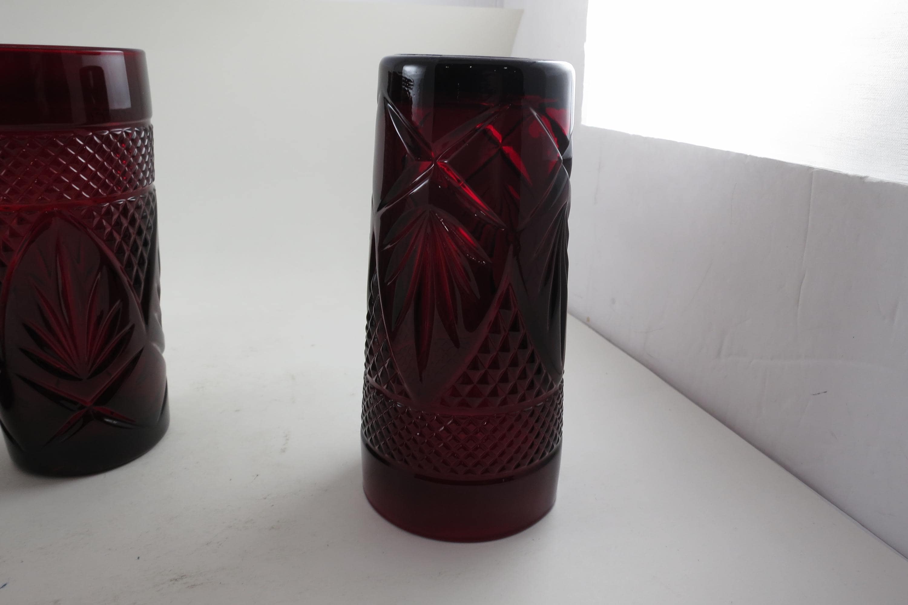 Vintage Set of Four Ruby Red Cristal d'Arques Durand Luminarc Water Glasses
