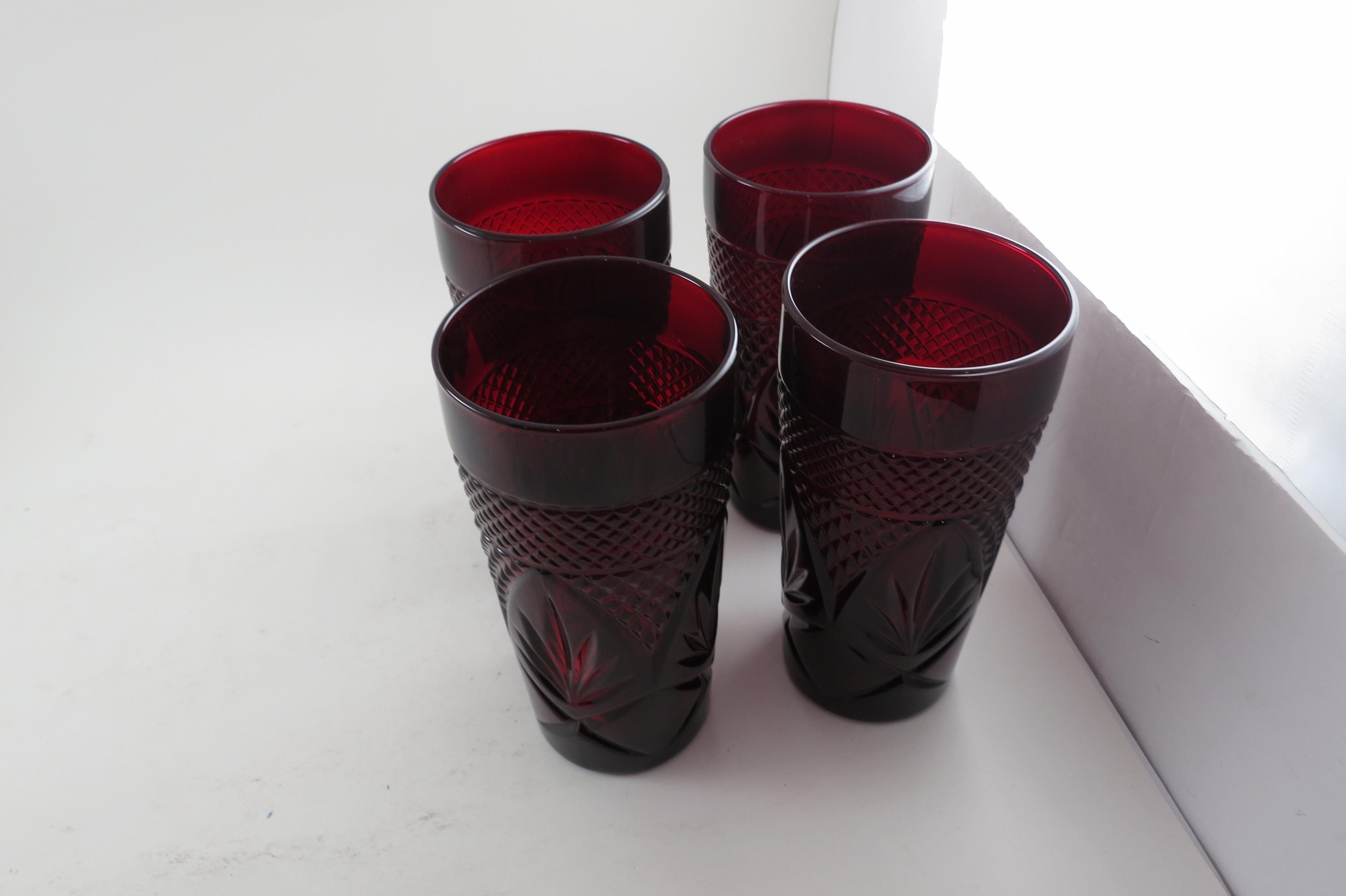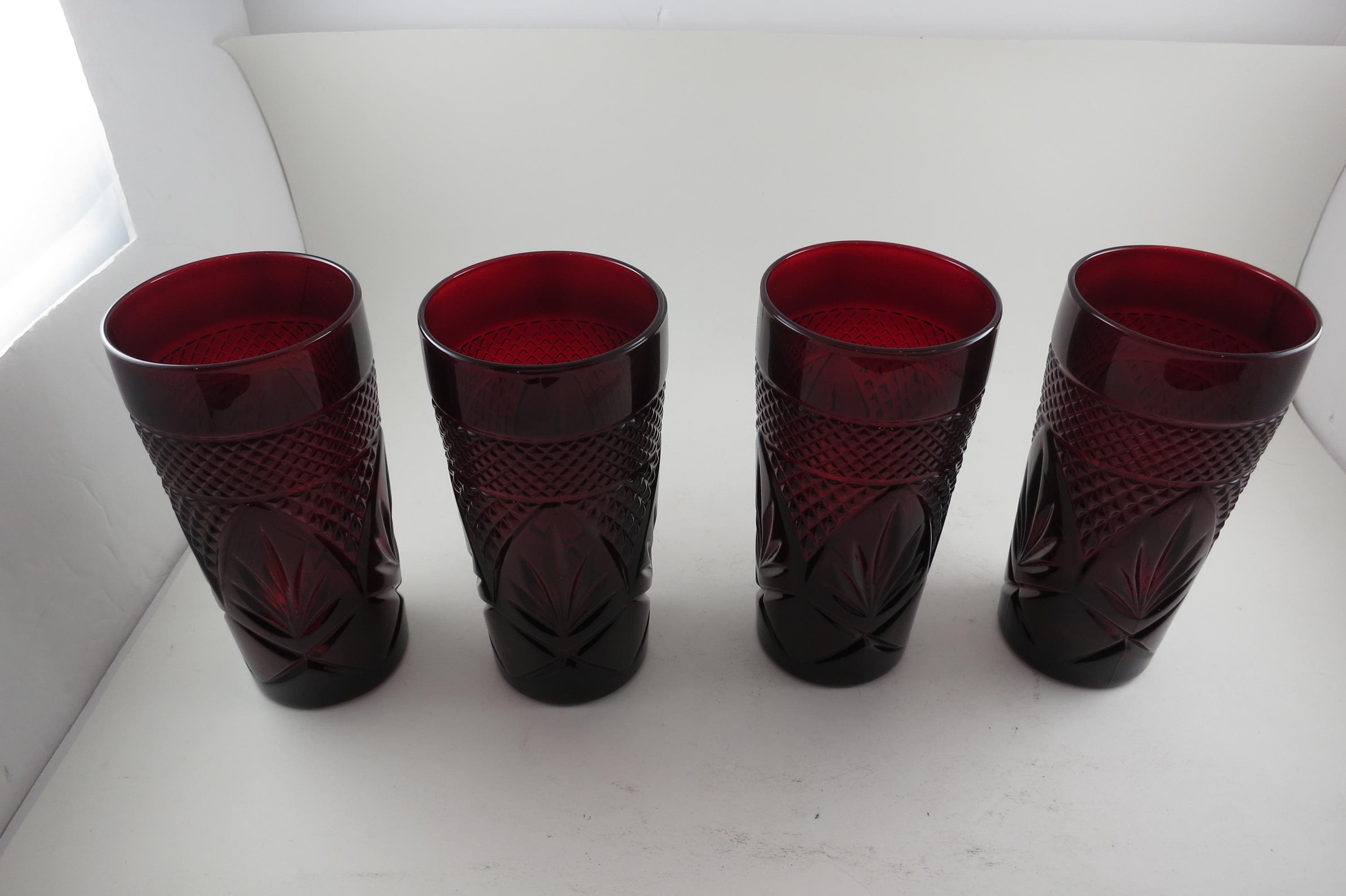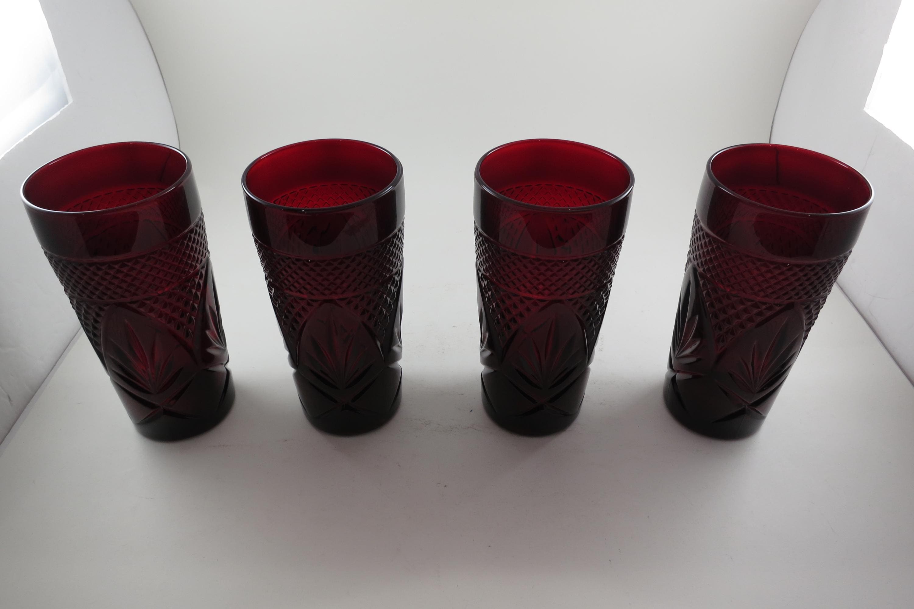 Vintage Set of Four Ruby Red Cristal d'Arques Durand Luminarc Water Glasses.