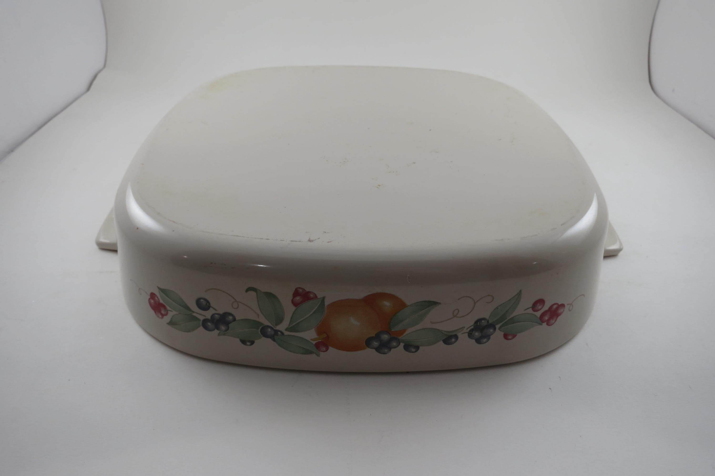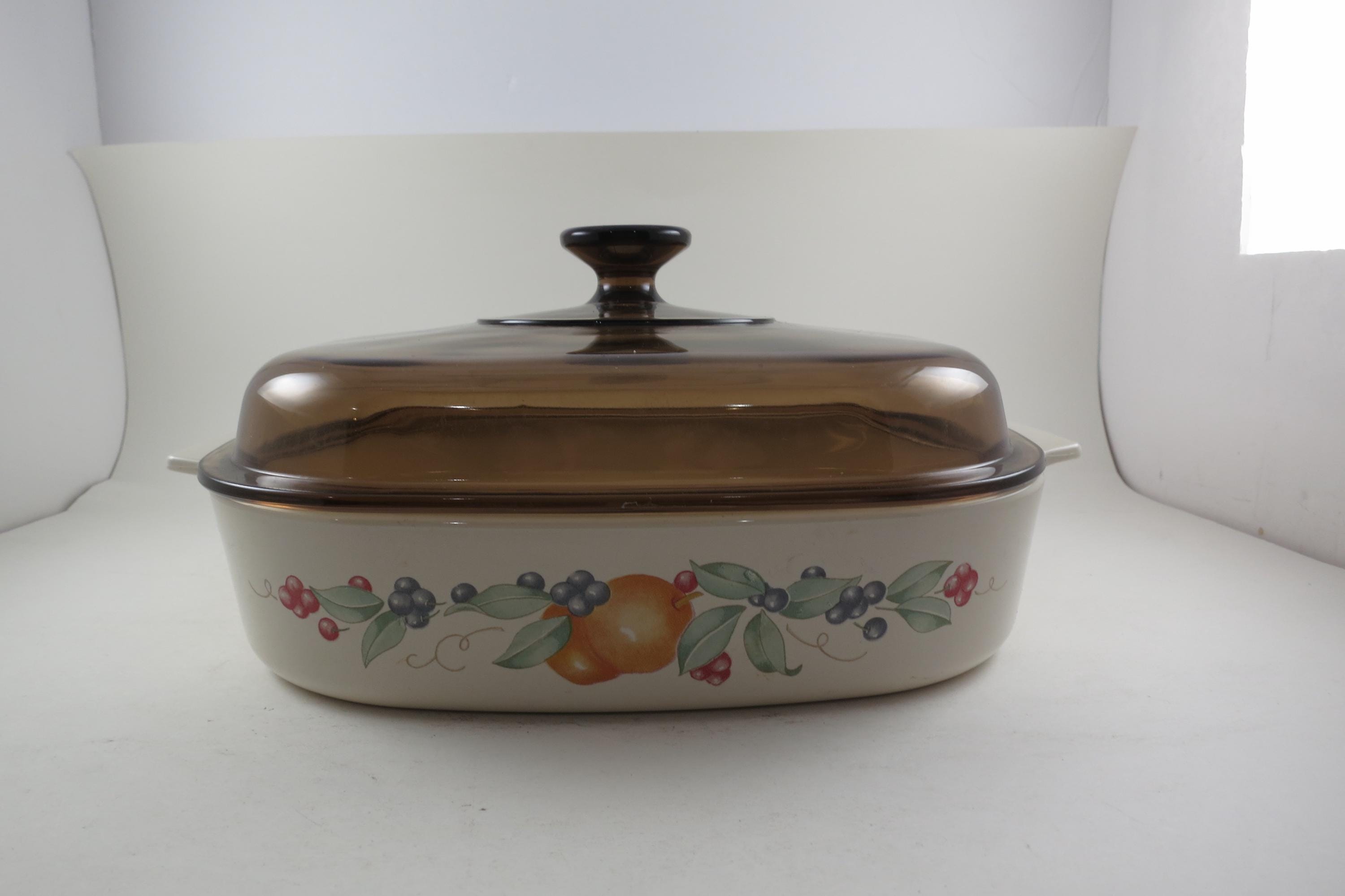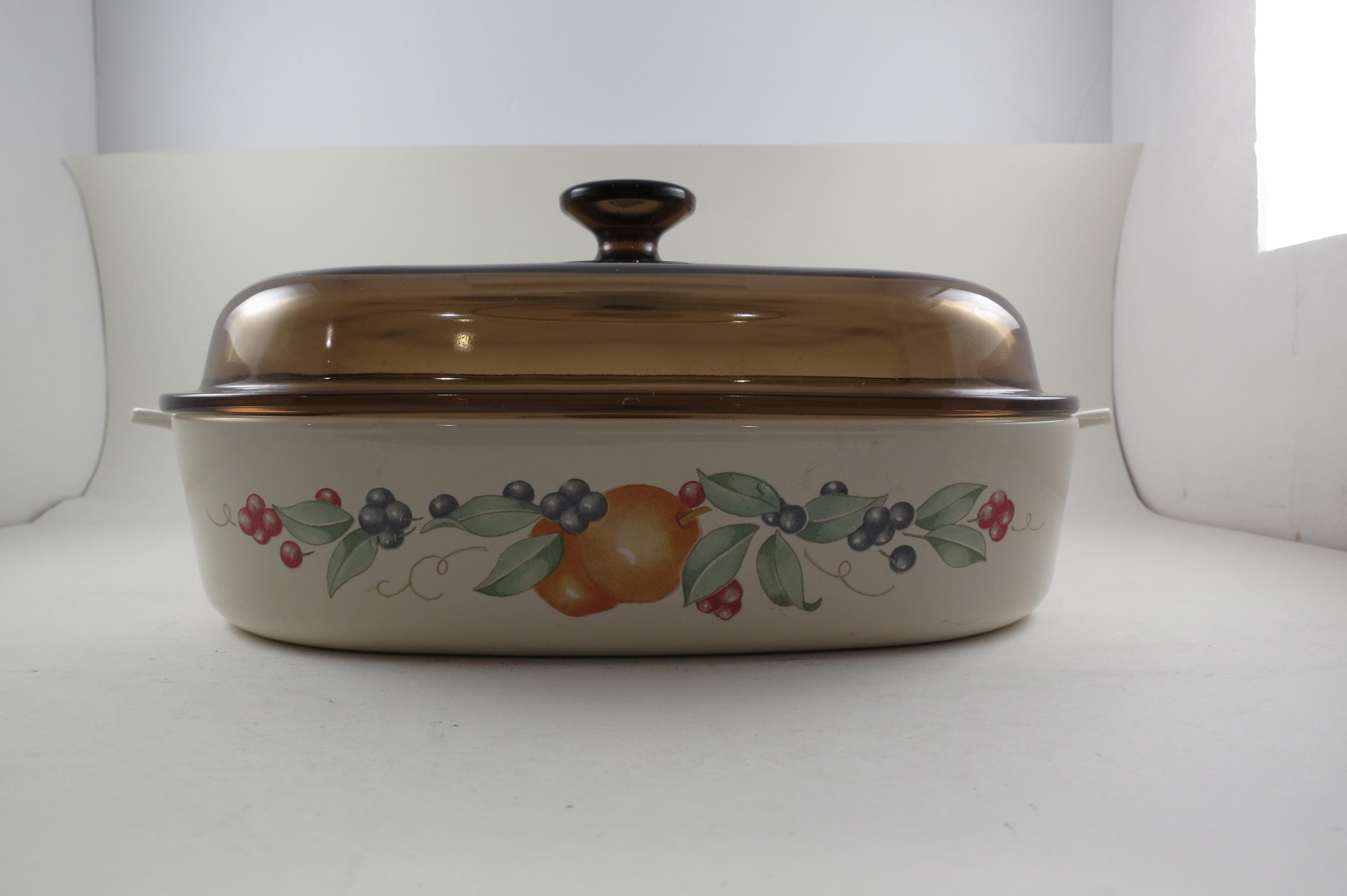 Vintage Corning Ware Skillet: Abundance Pattern, A-10-B 1992-96 with Brown Fireside Lid
