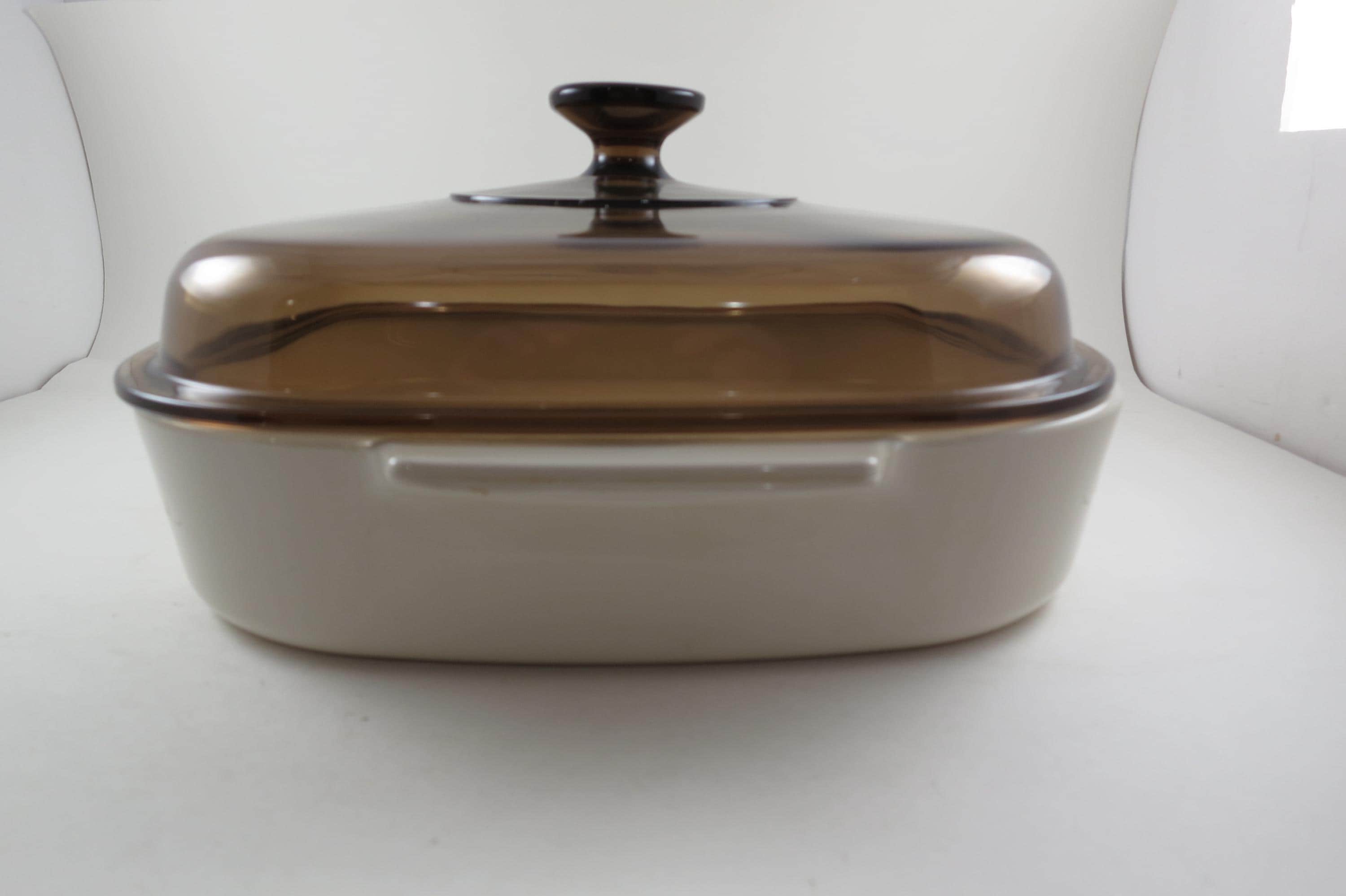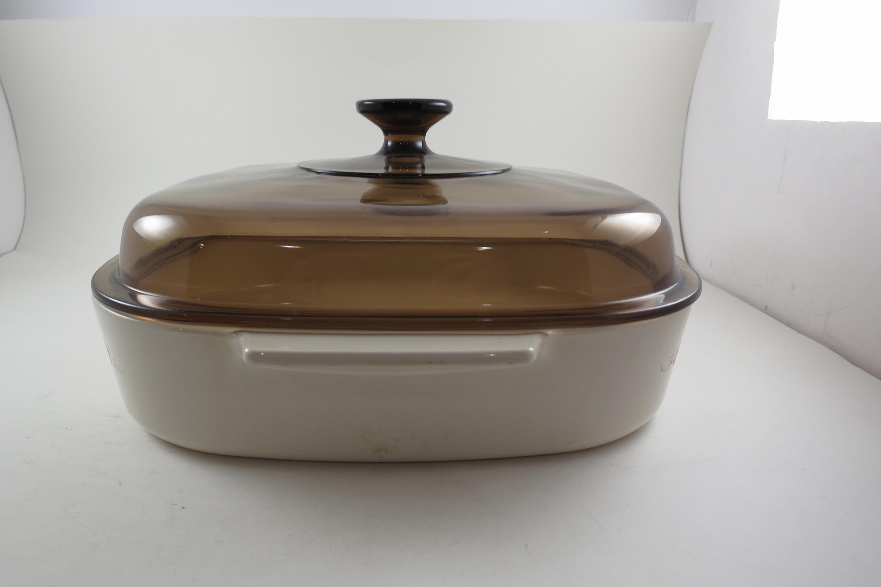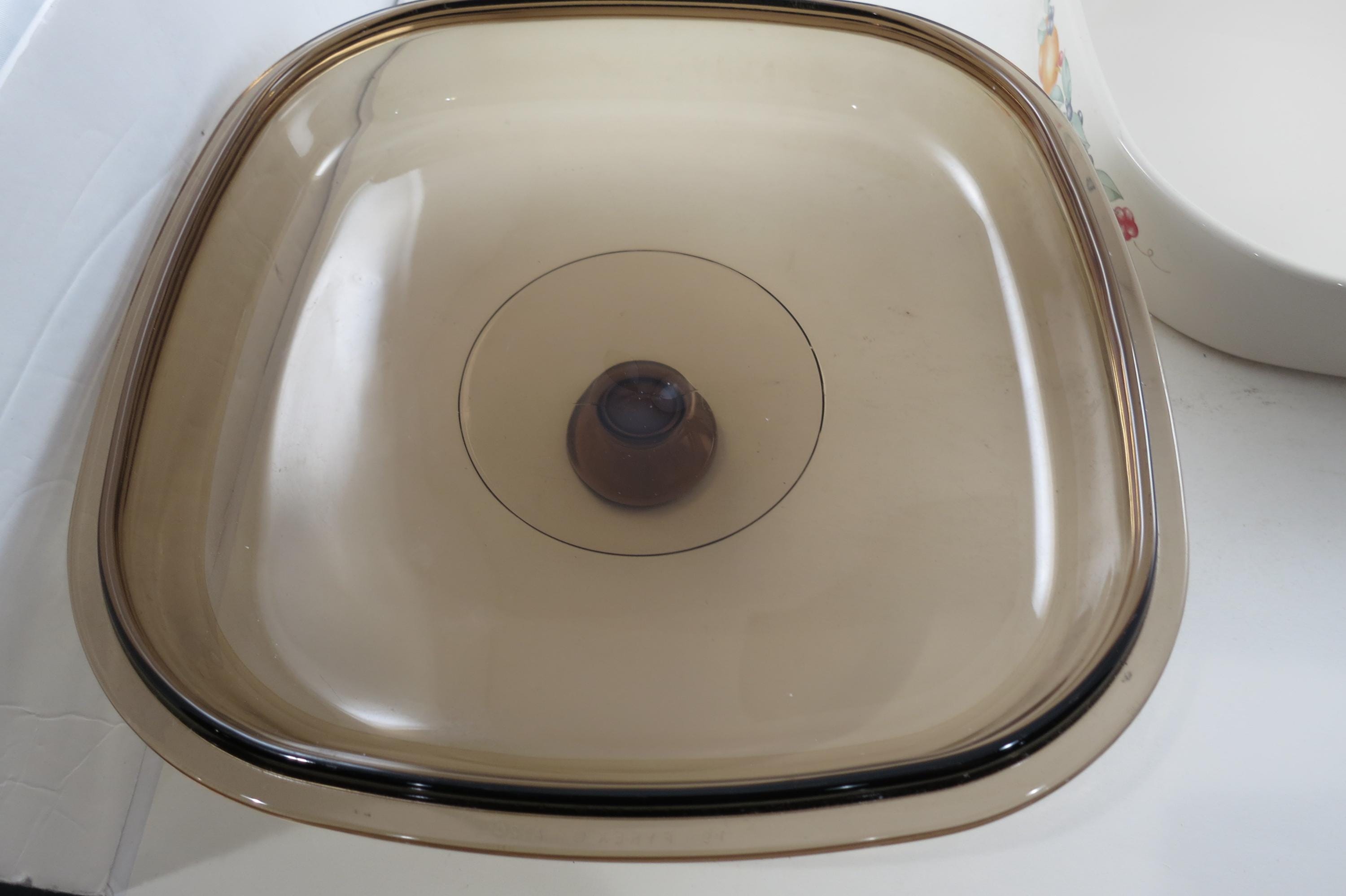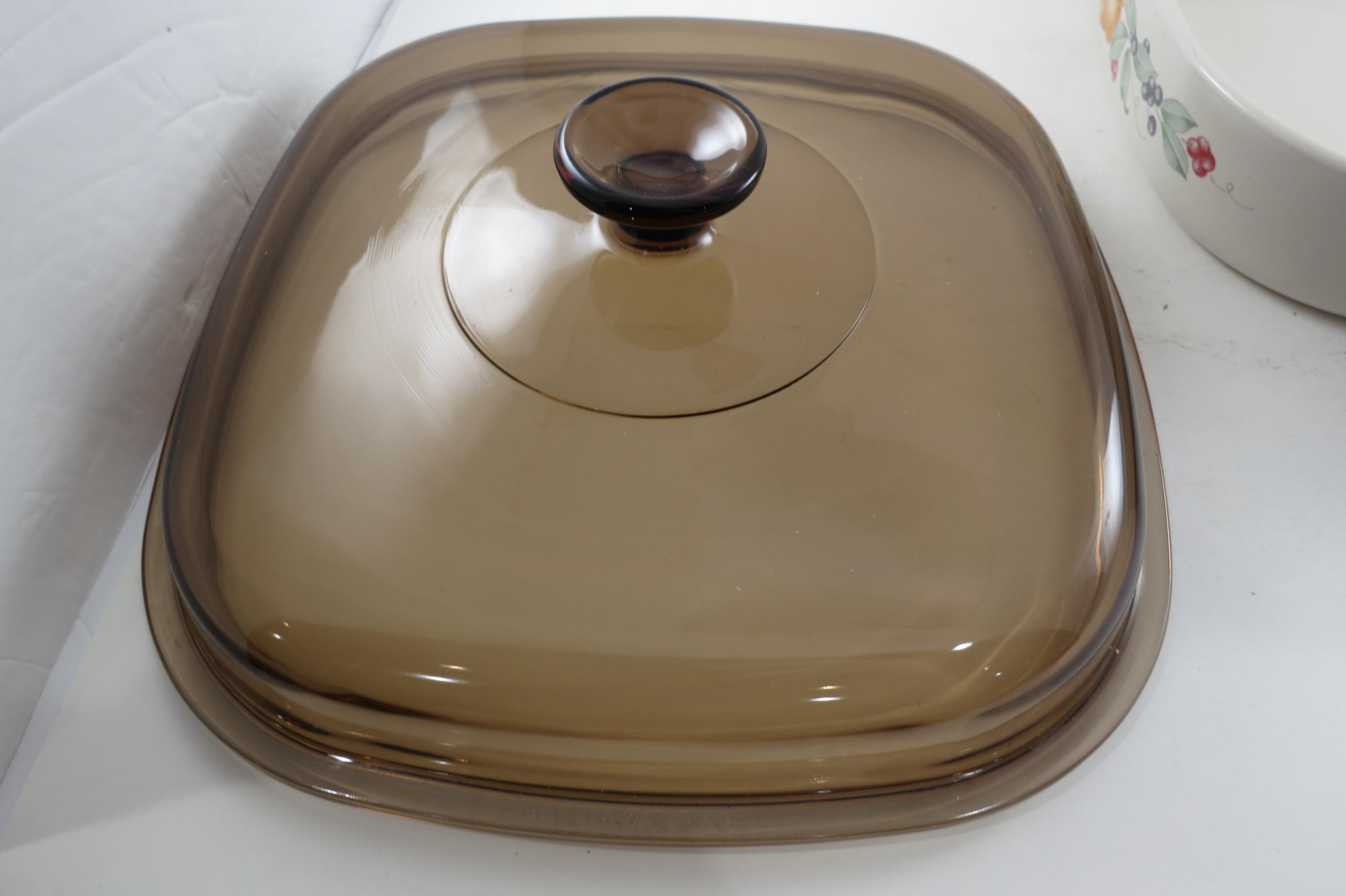 Vintage Corning Ware Skillet: Abundance Pattern, A-10-B 1992-96 with Brown Fireside Lid.