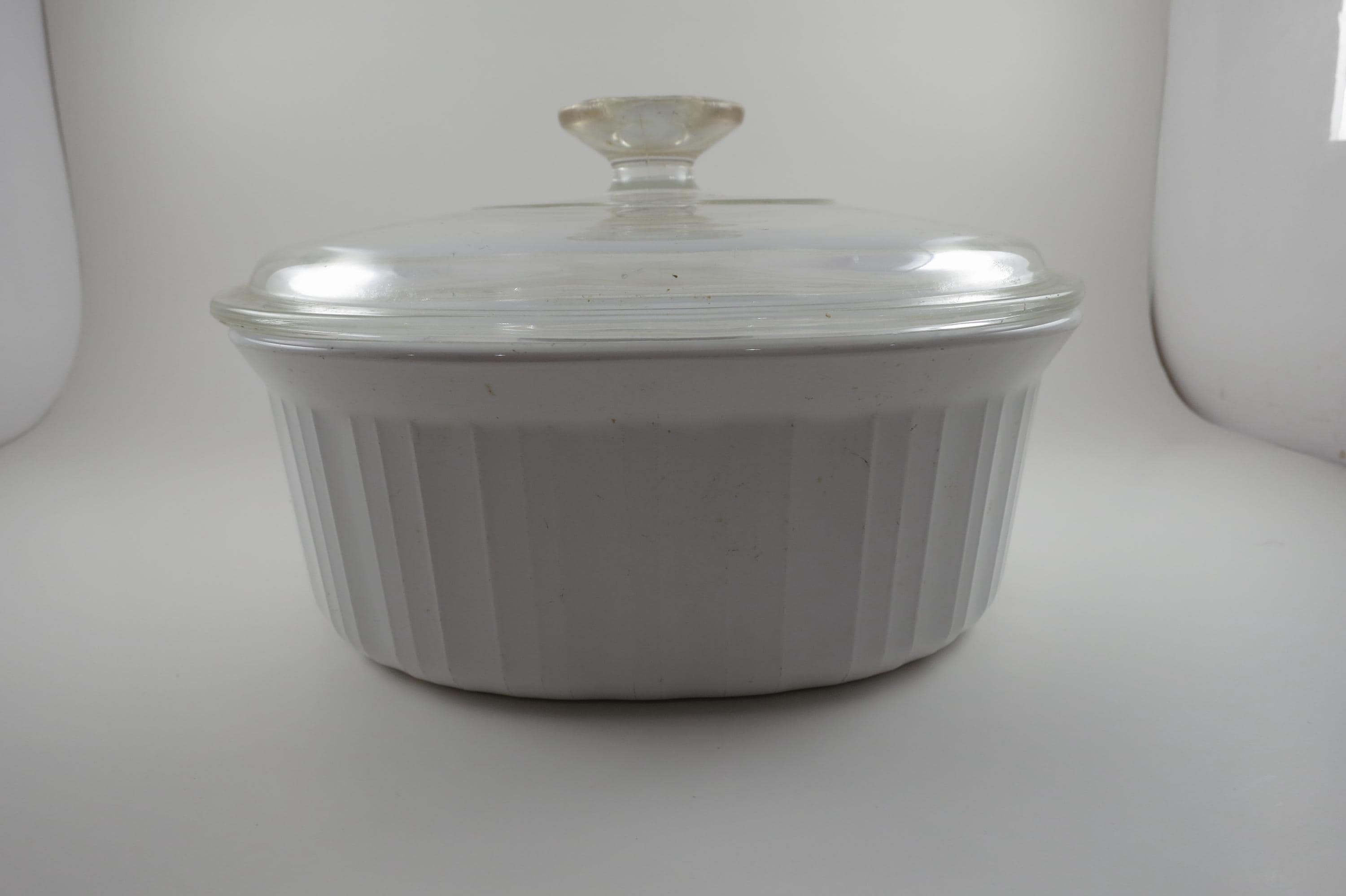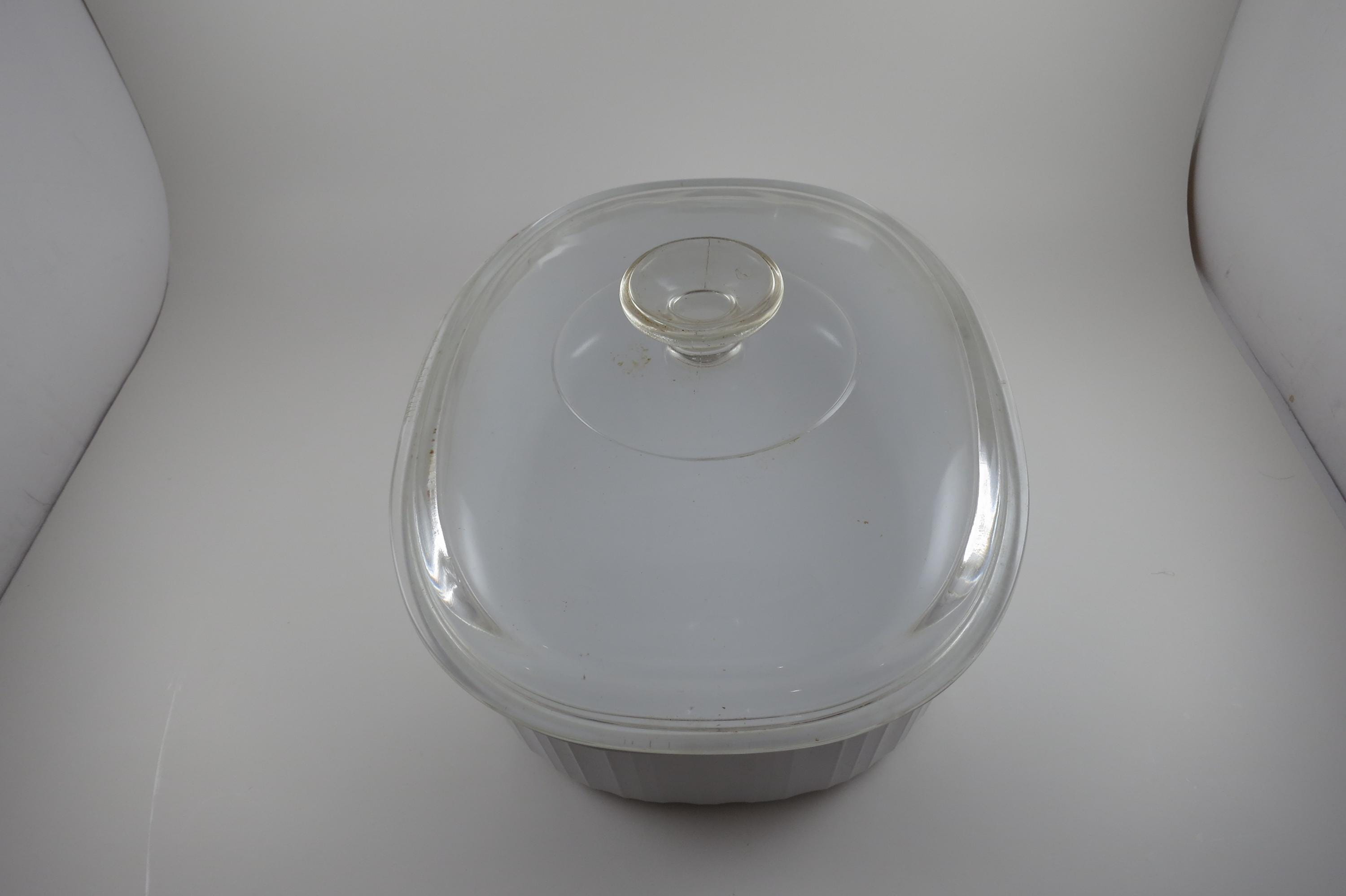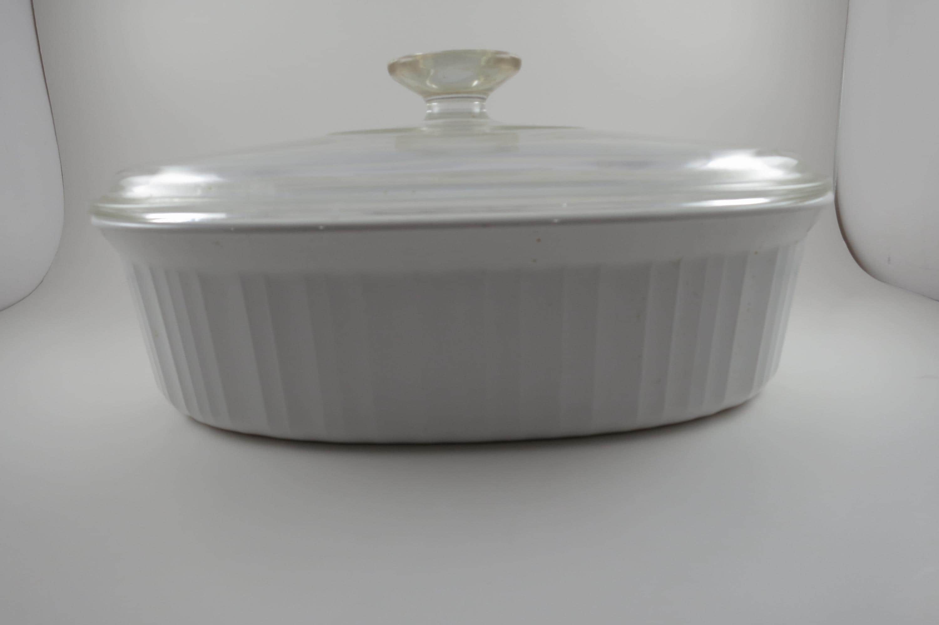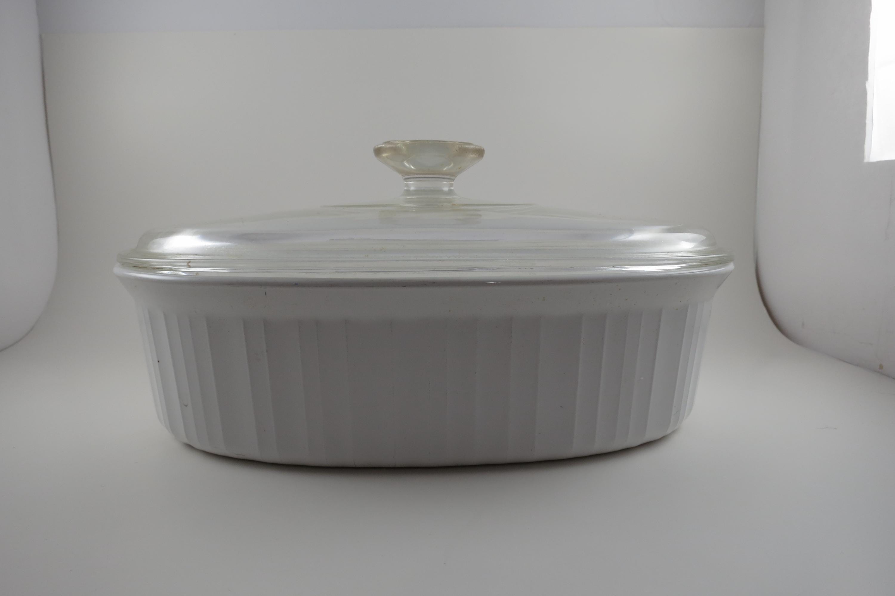 Corning French White Oval Casserole Dish: 2.5 Quart 2.8 Liter with Glass Lid