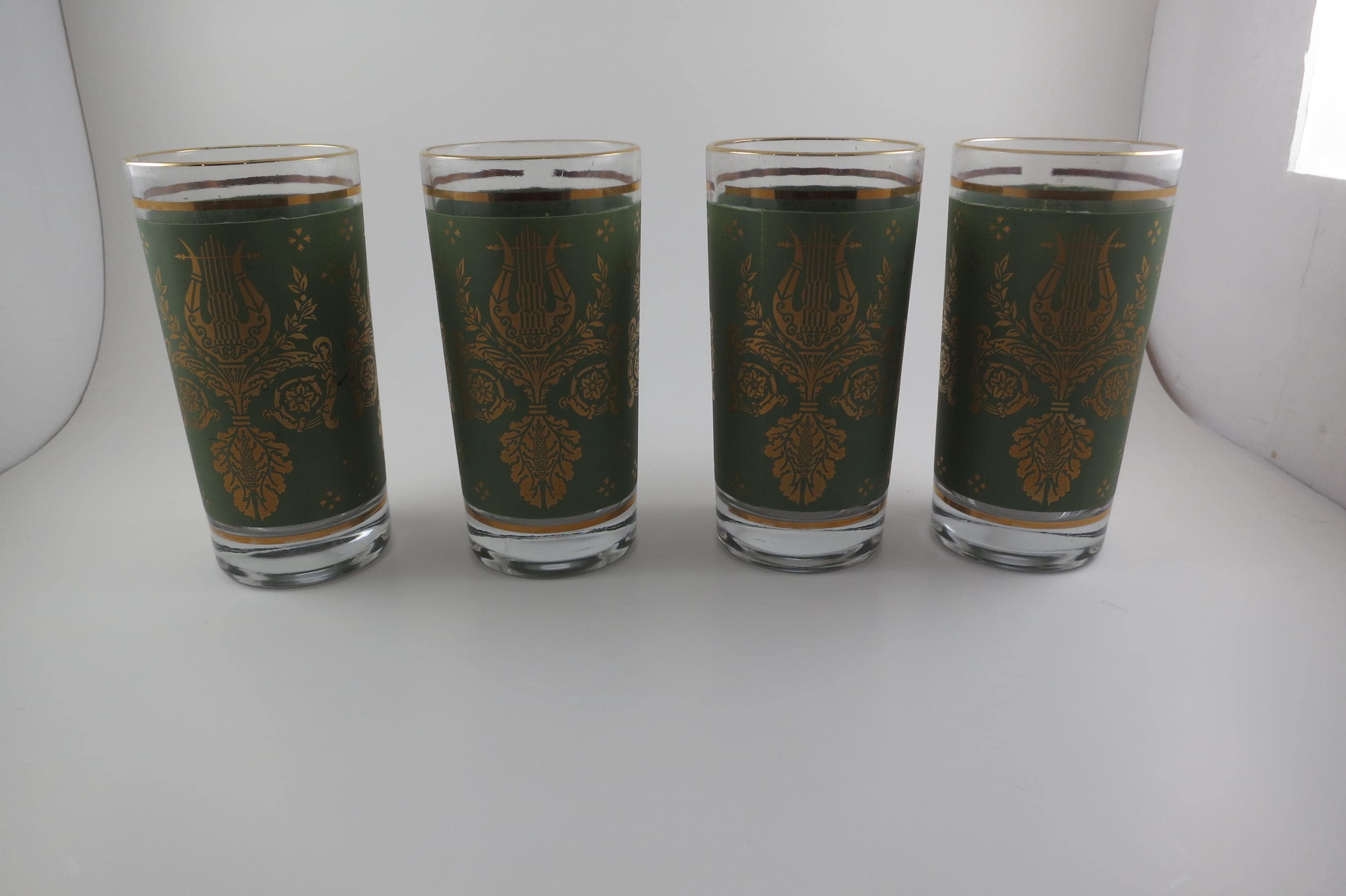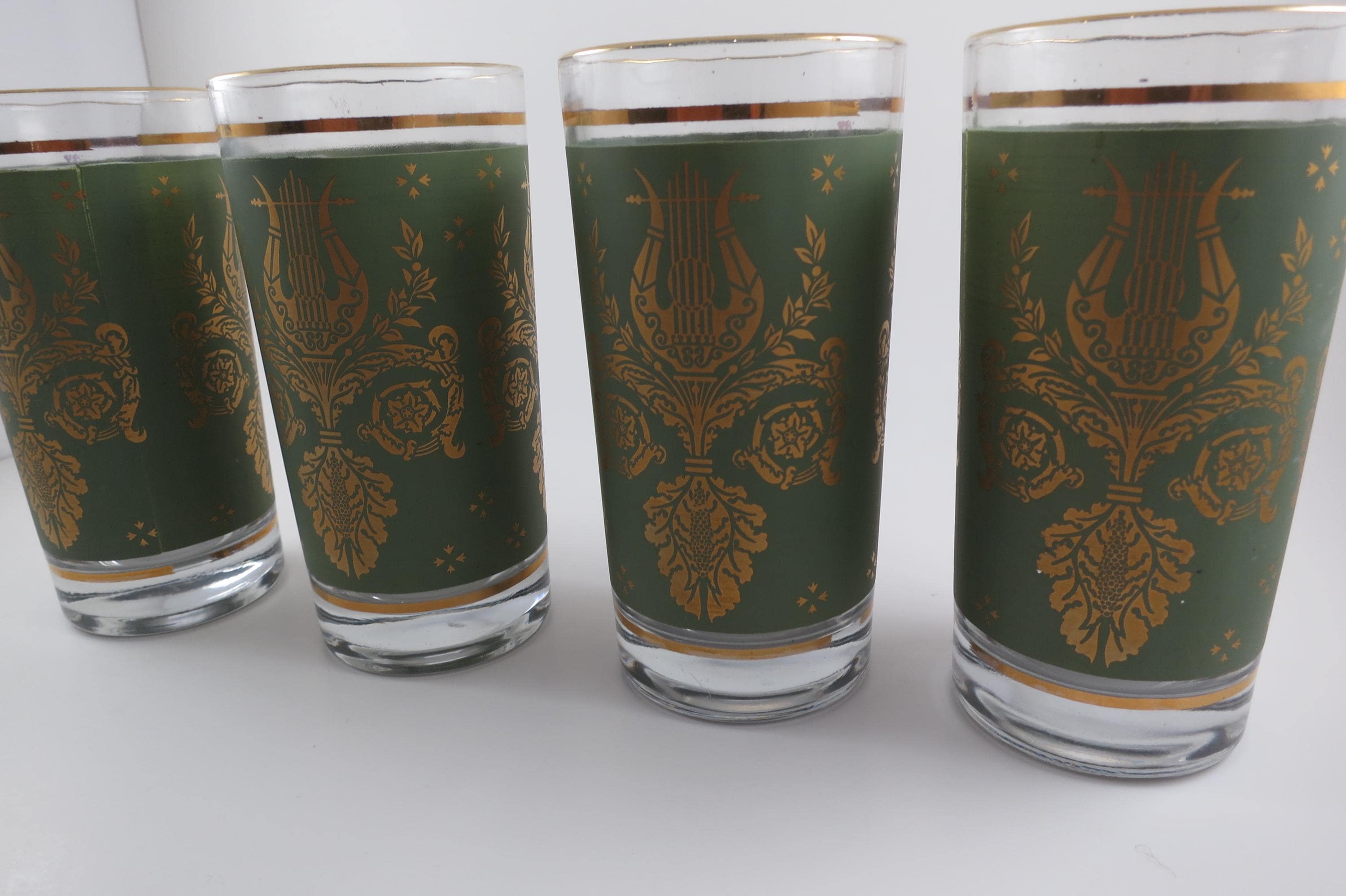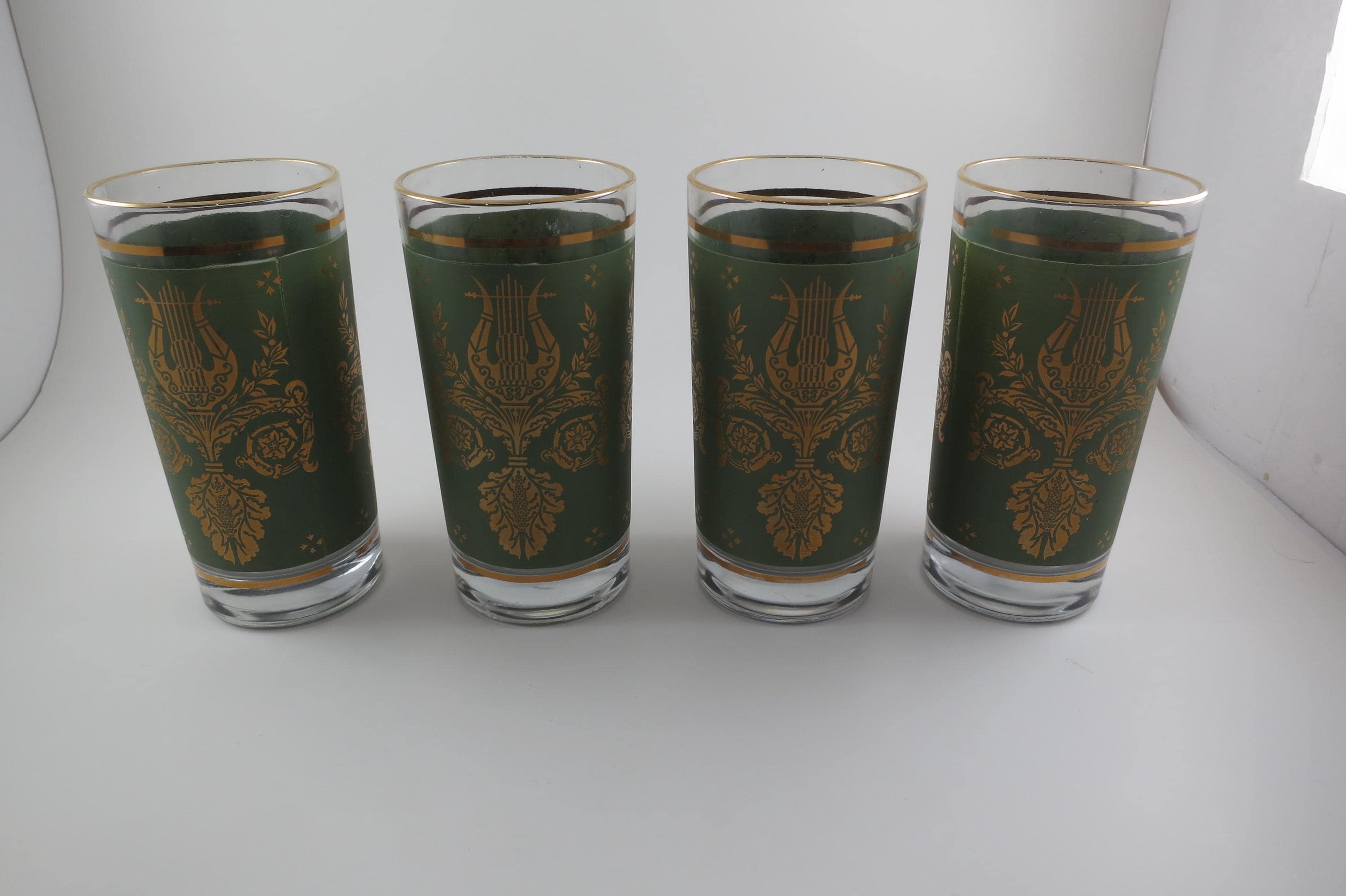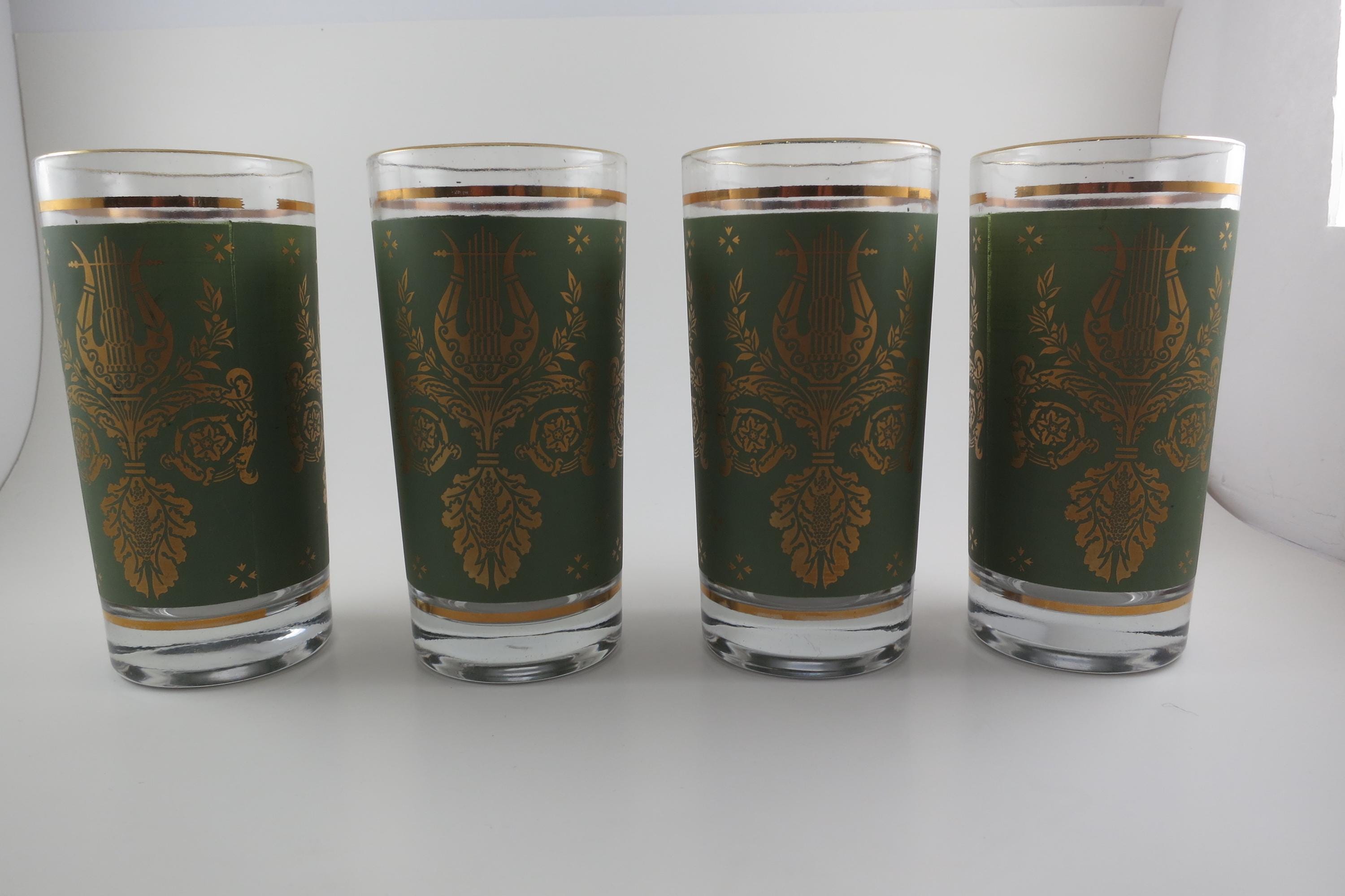 Set of Four Jeannette Glass Co Harp & Lyre 12 Oz Tumbler Glasses.