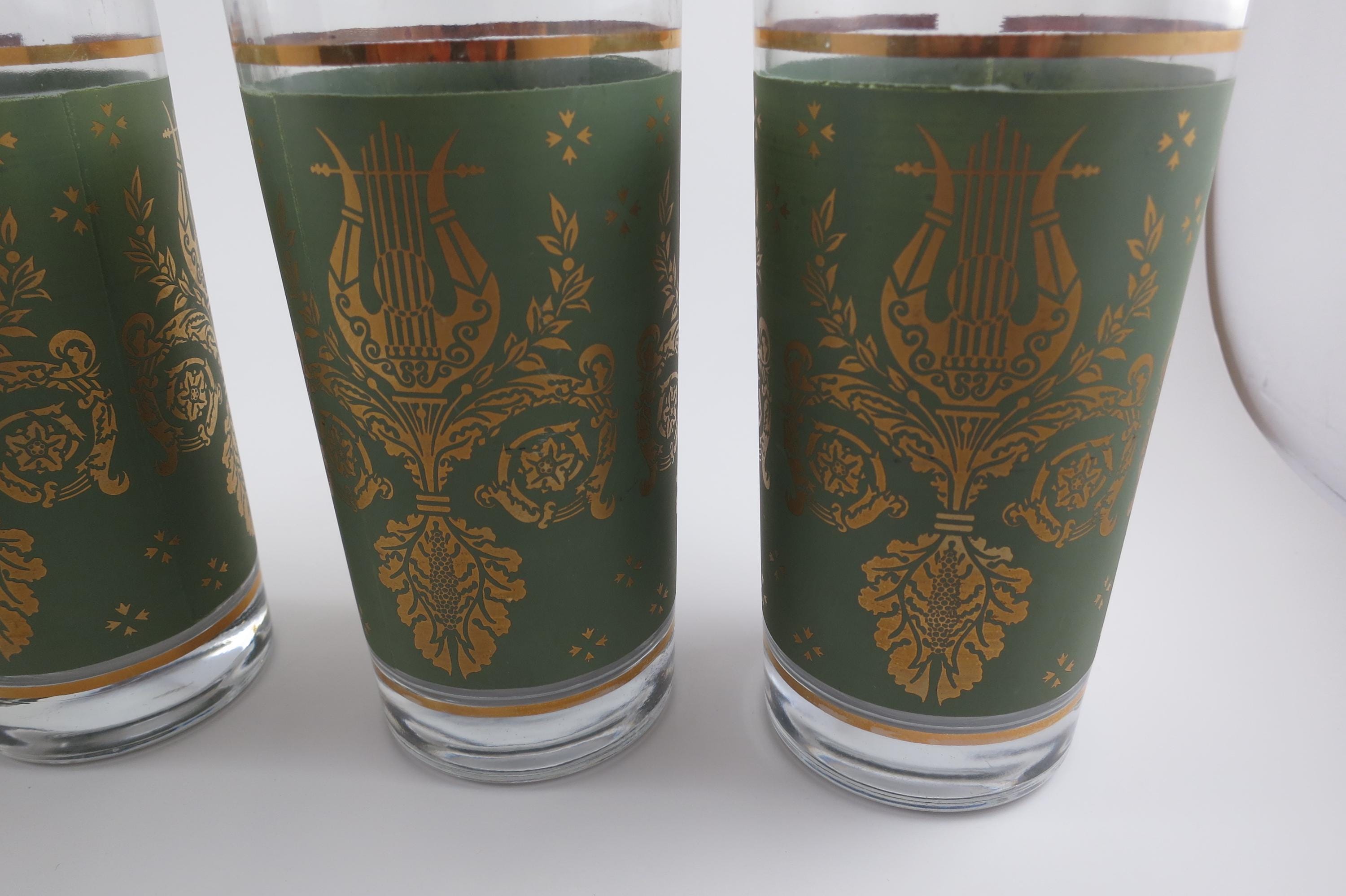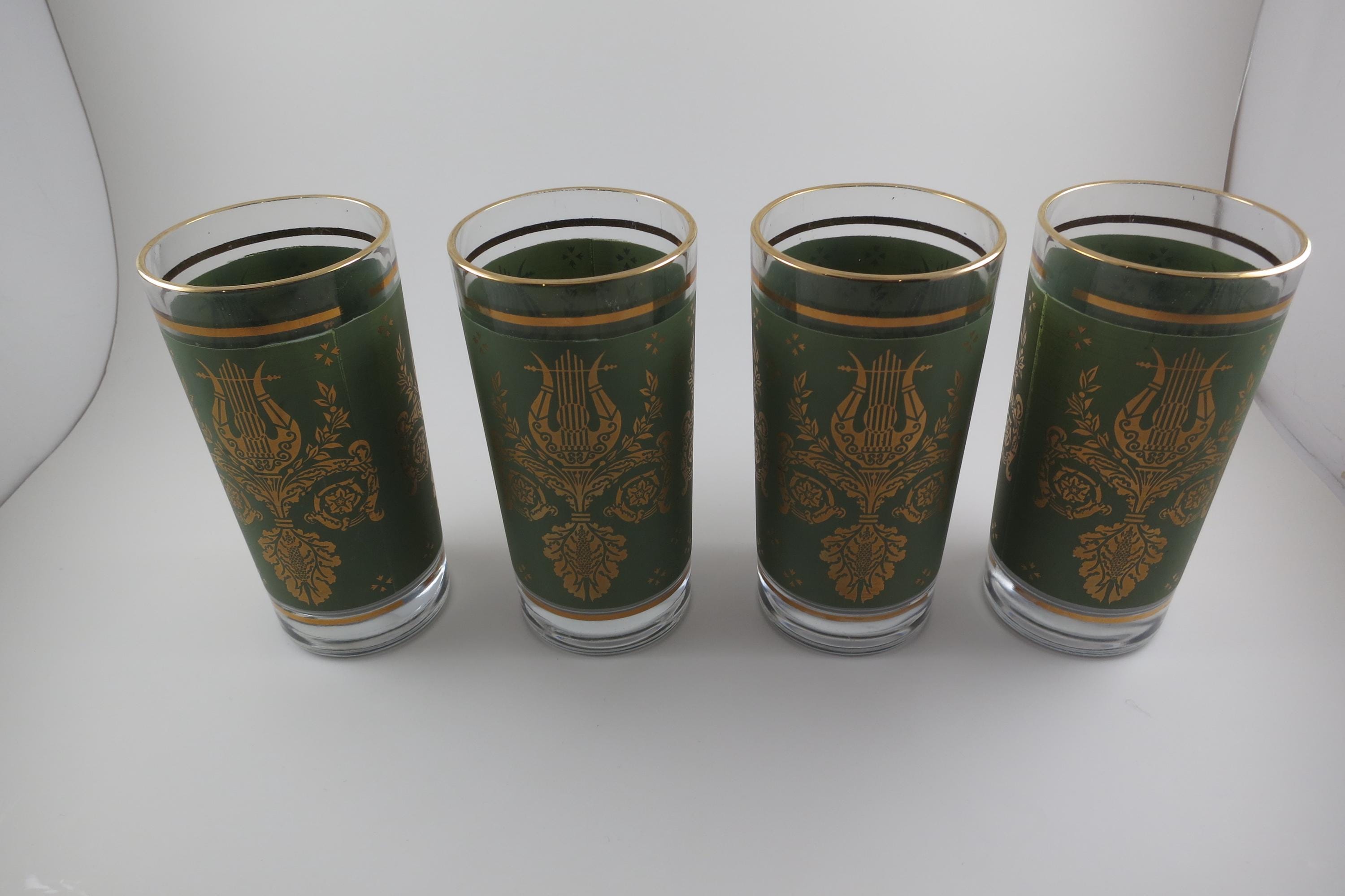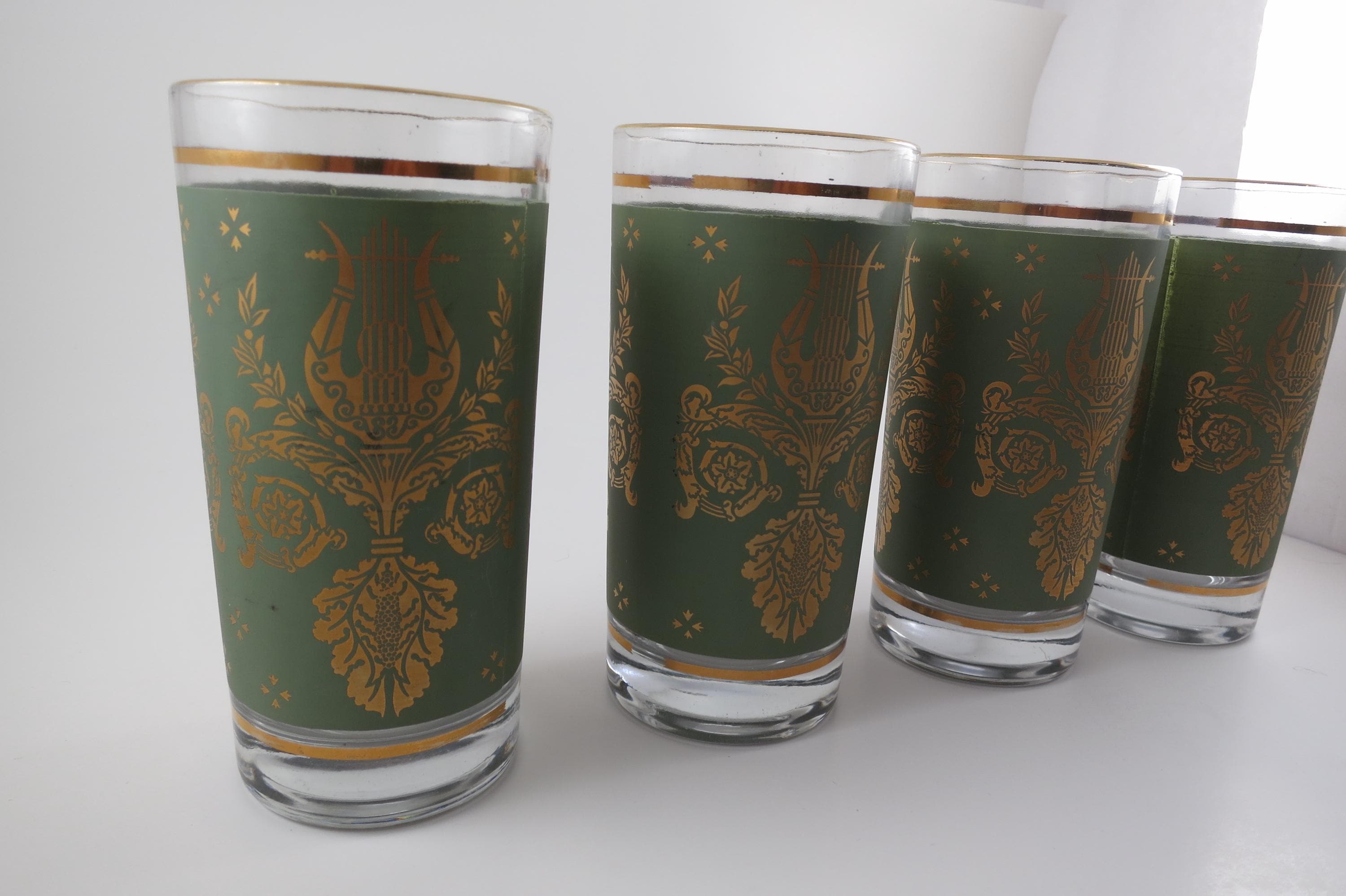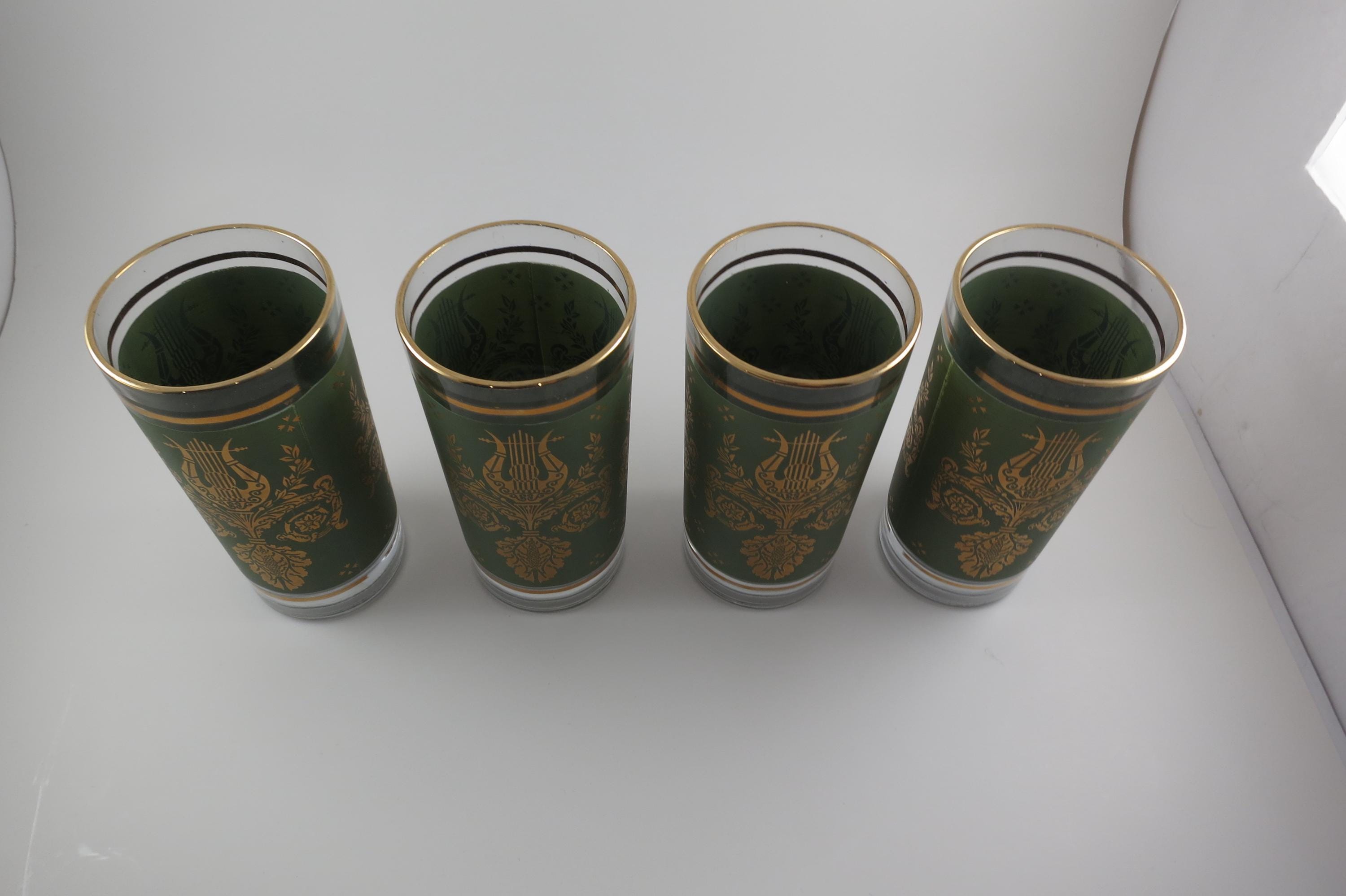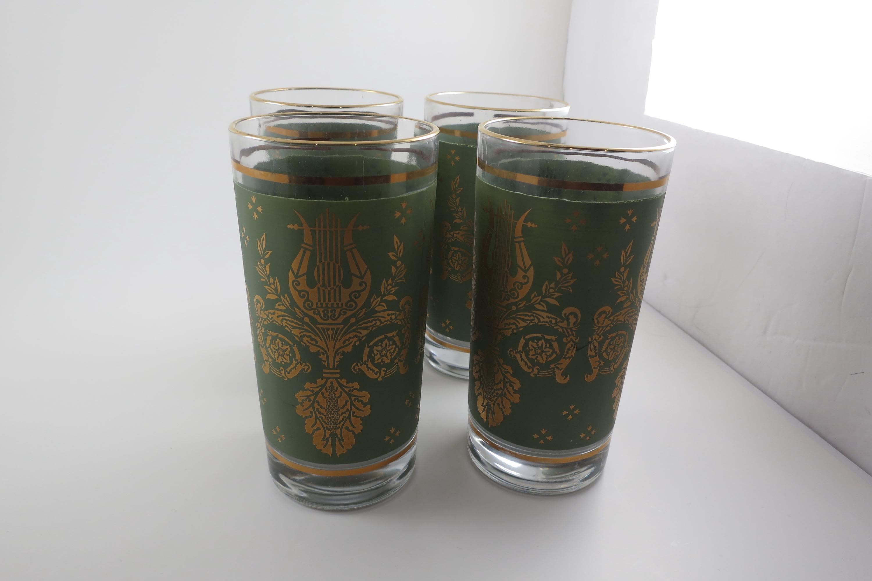 Set of Four Jeannette Glass Co Harp & Lyre 12 Oz Tumbler Glasses.
