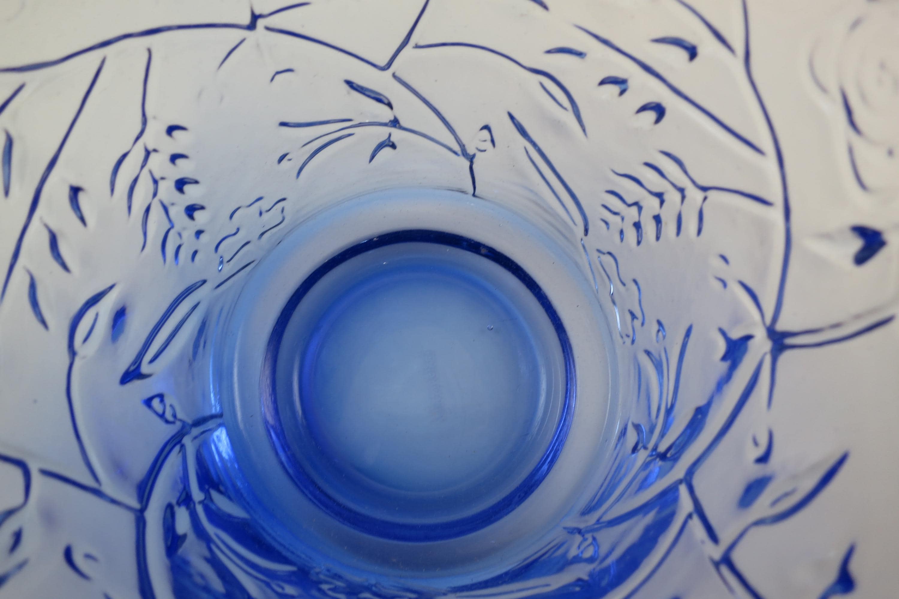 Measures 7 1/2 Inches tall and 5 1/2 inches wide. Beautiful Blue!