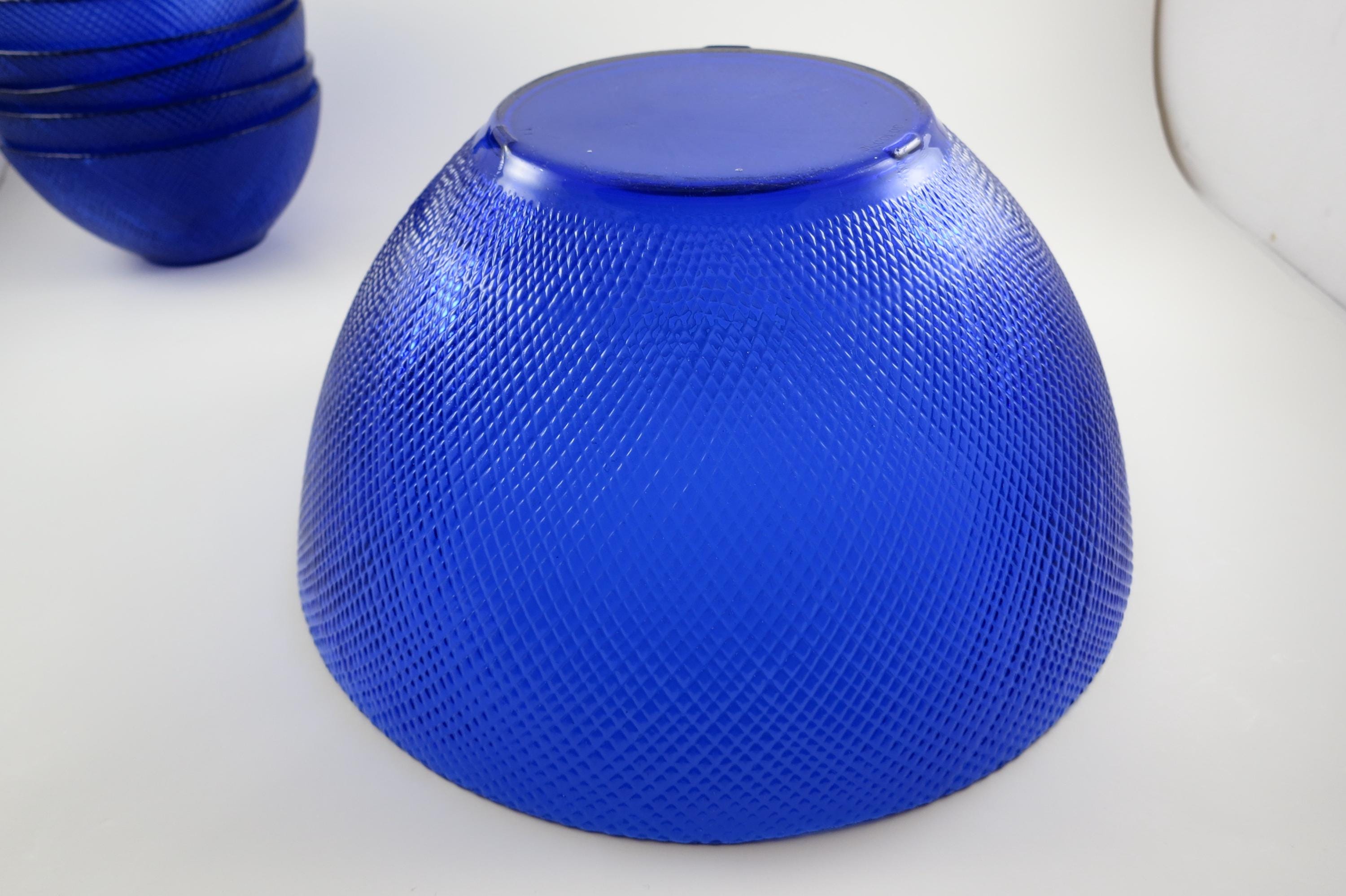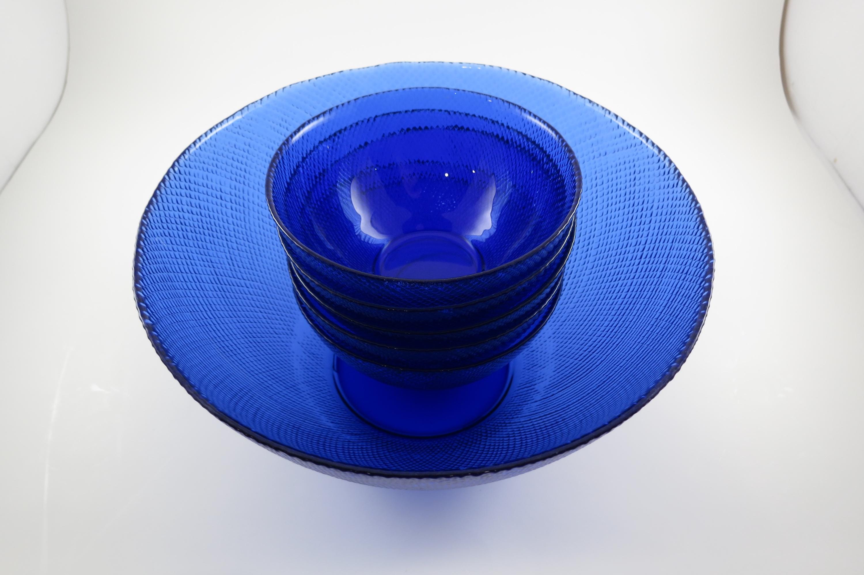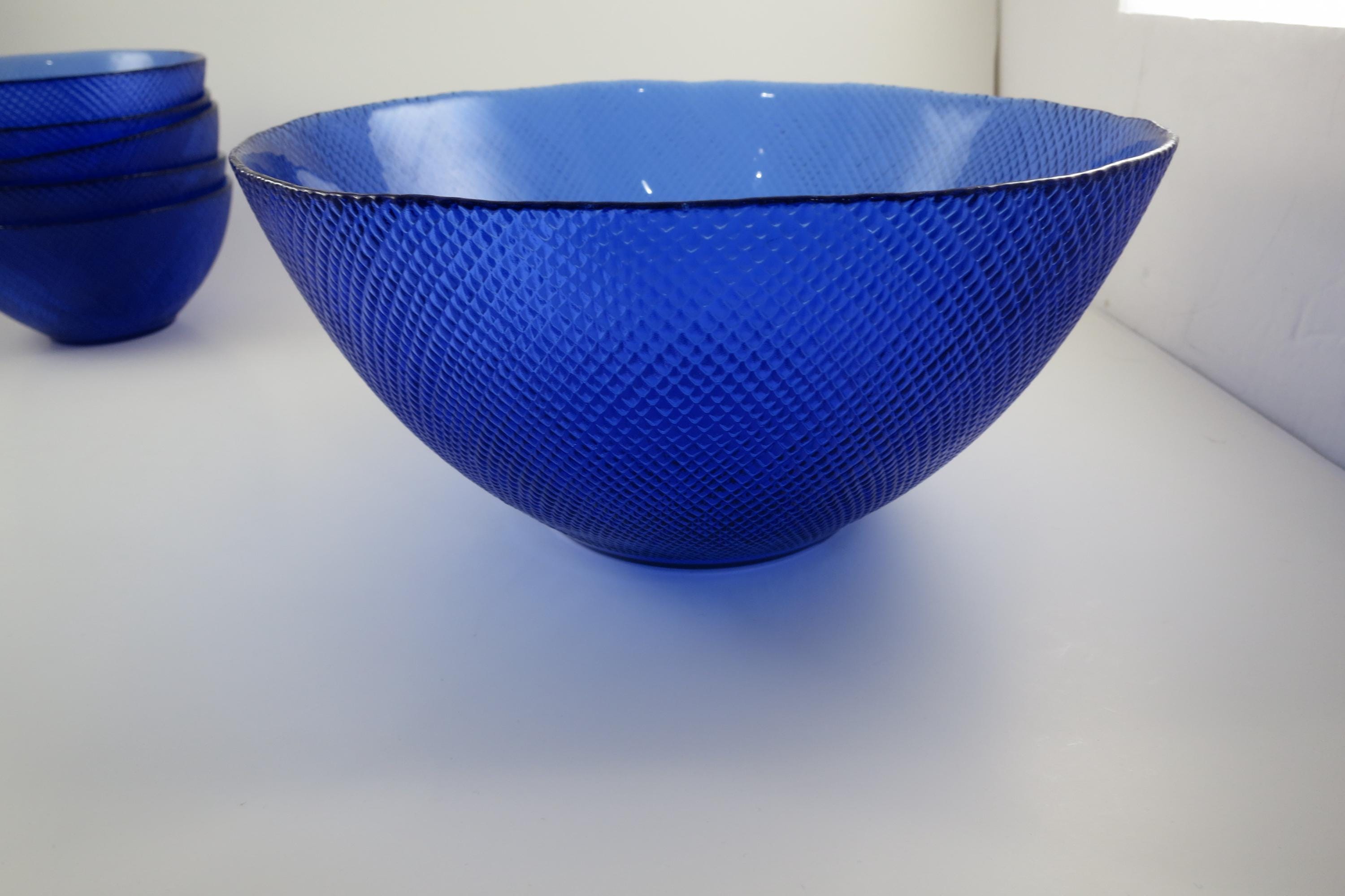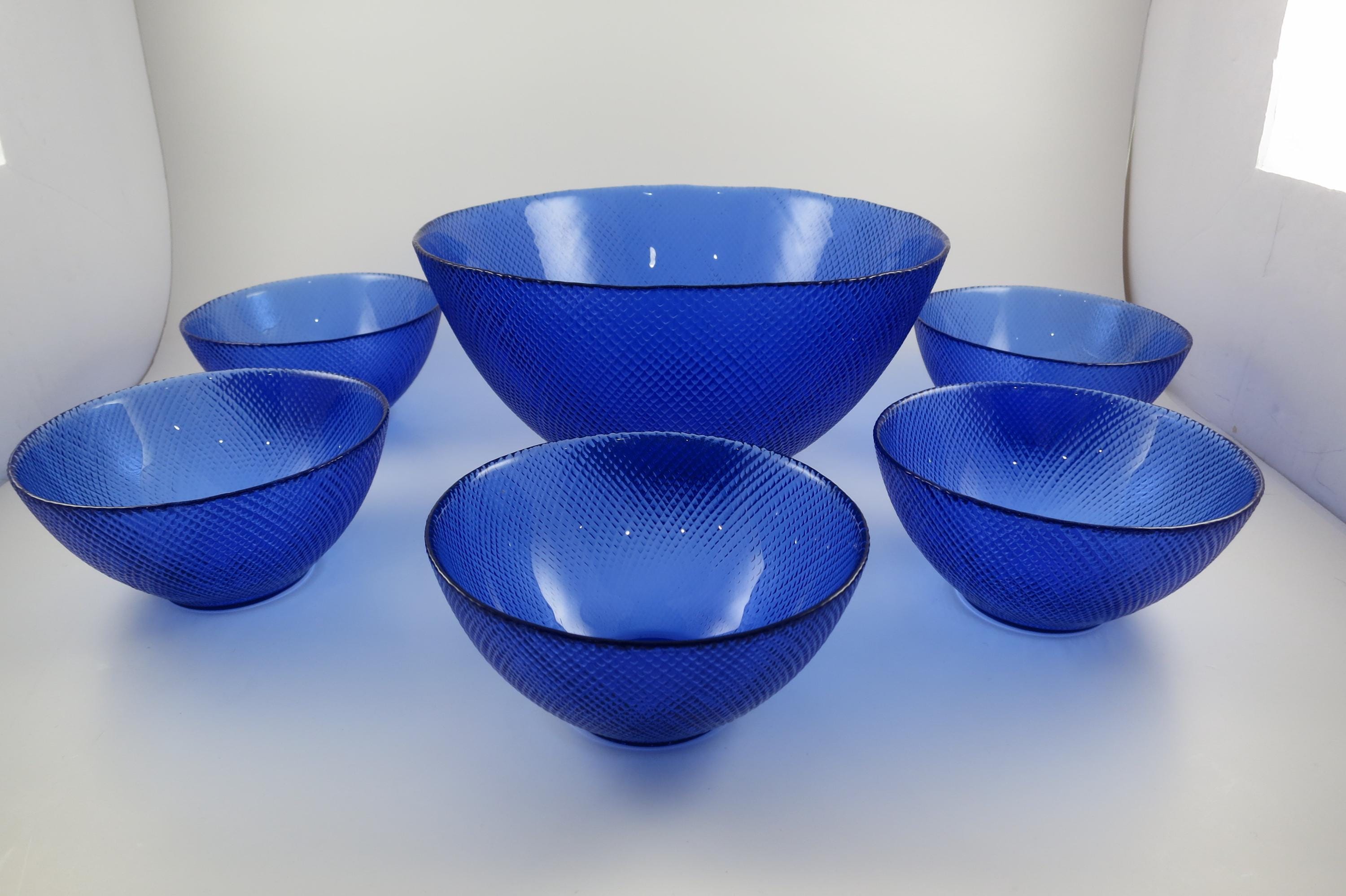Vintage Arcoroc France 6 Piece Cobalt Blue Salad Serving Set.