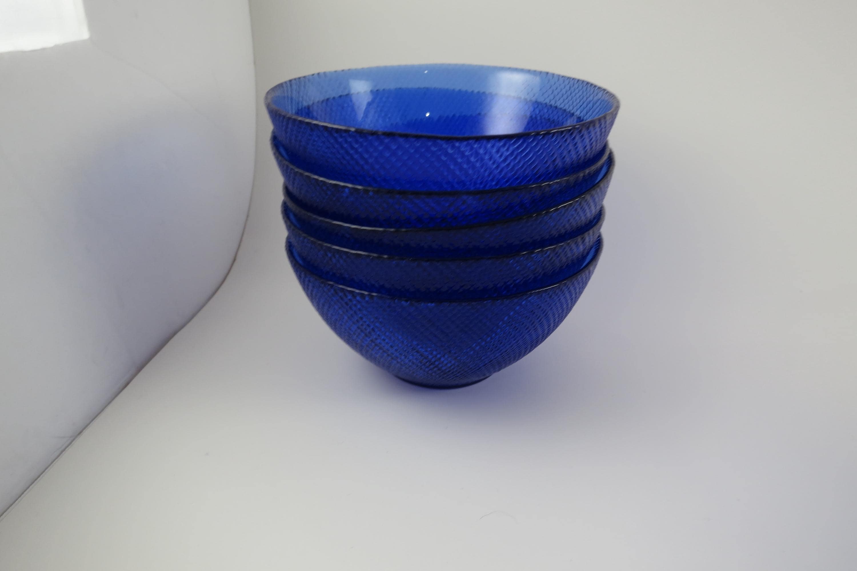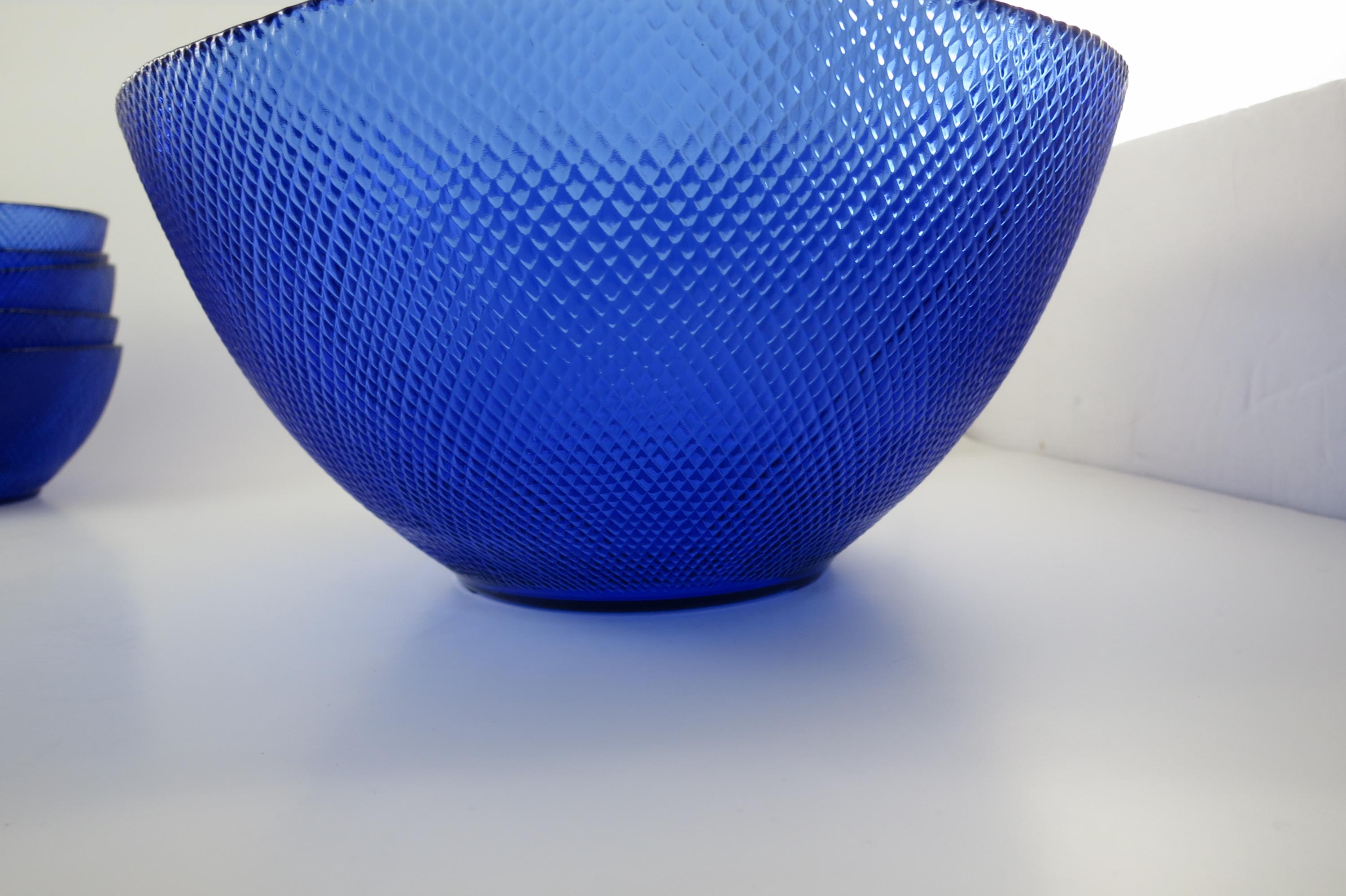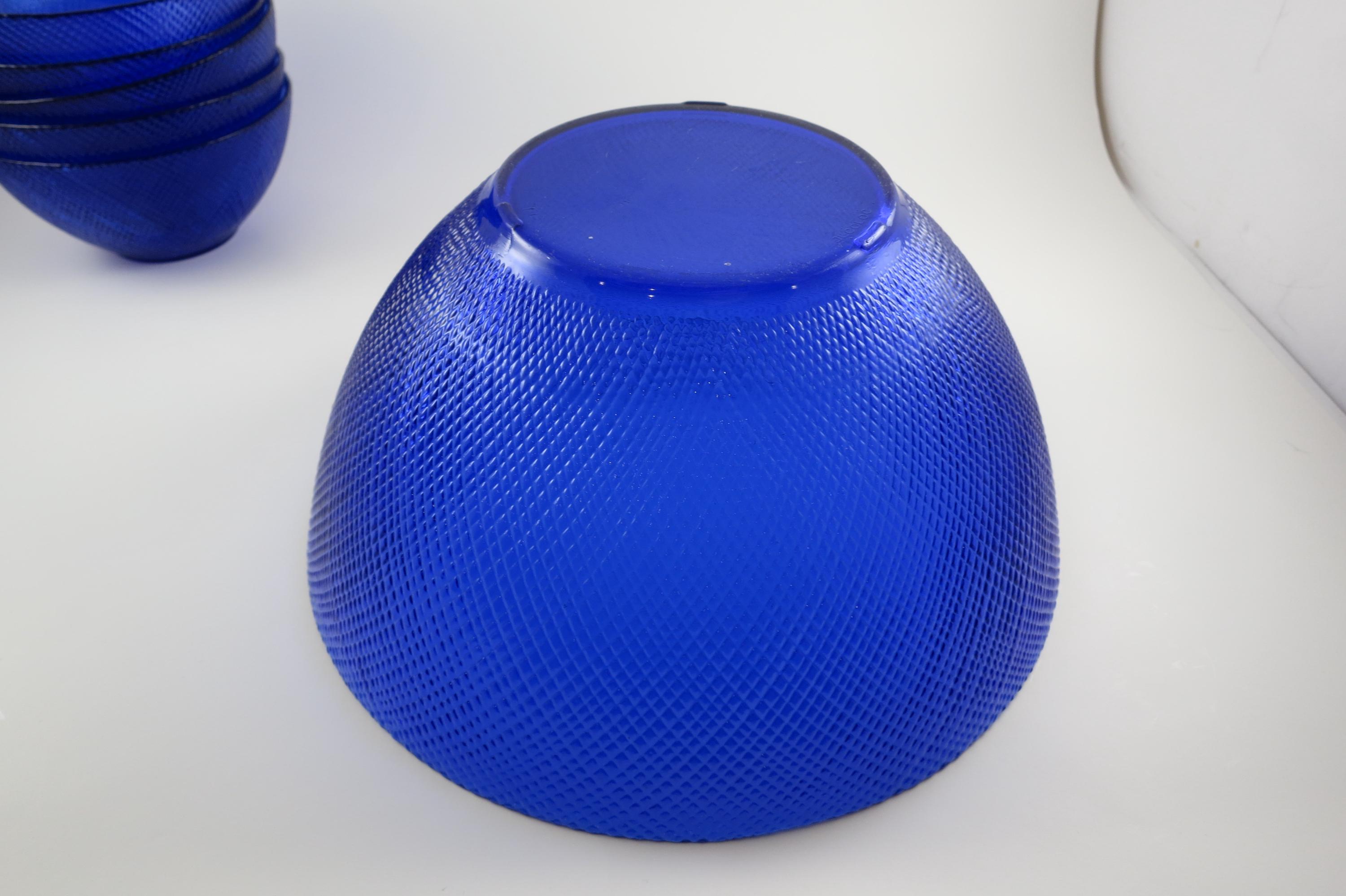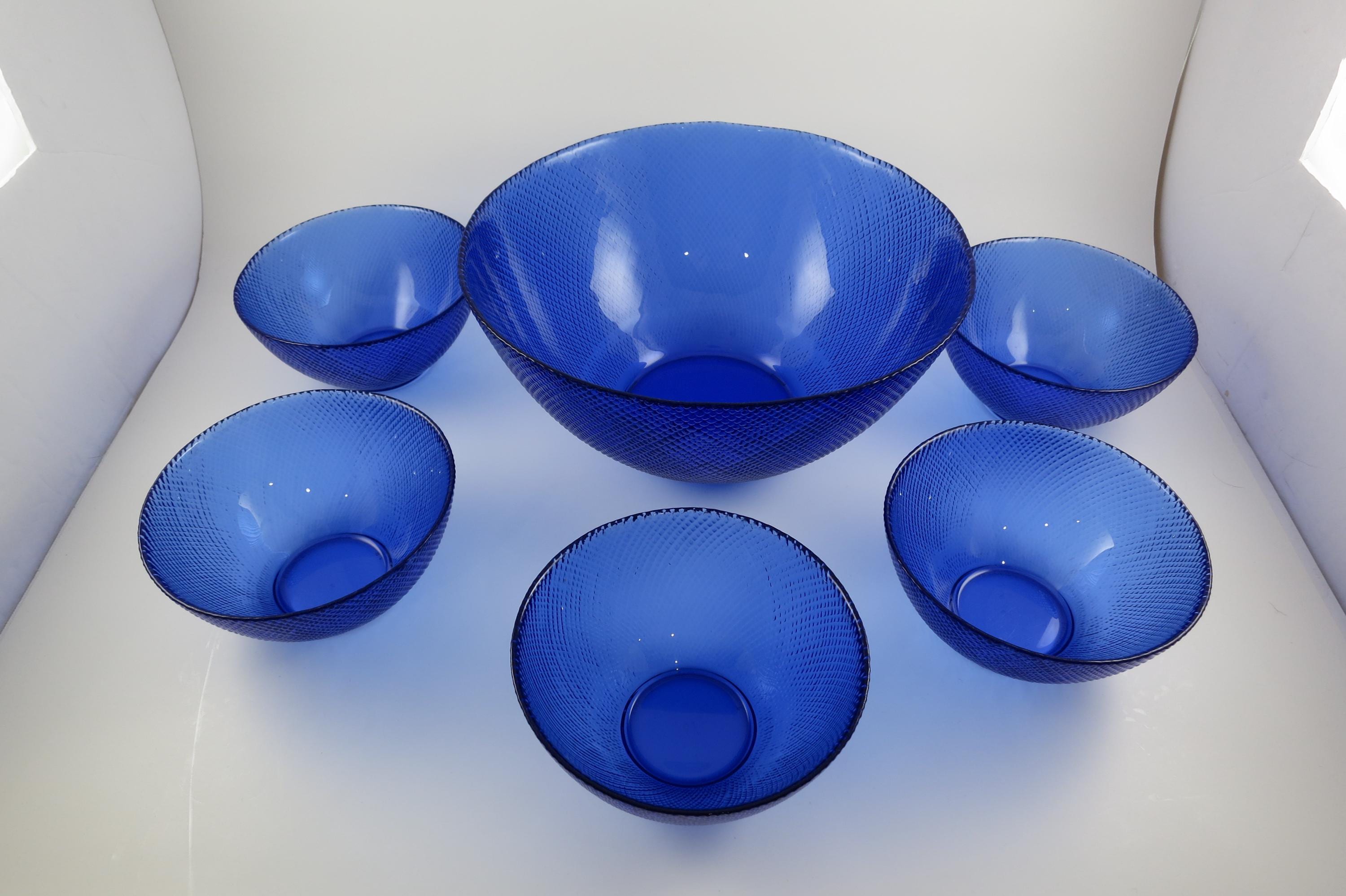 Vintage Arcoroc France 6 Piece Cobalt Blue Salad Serving Set.