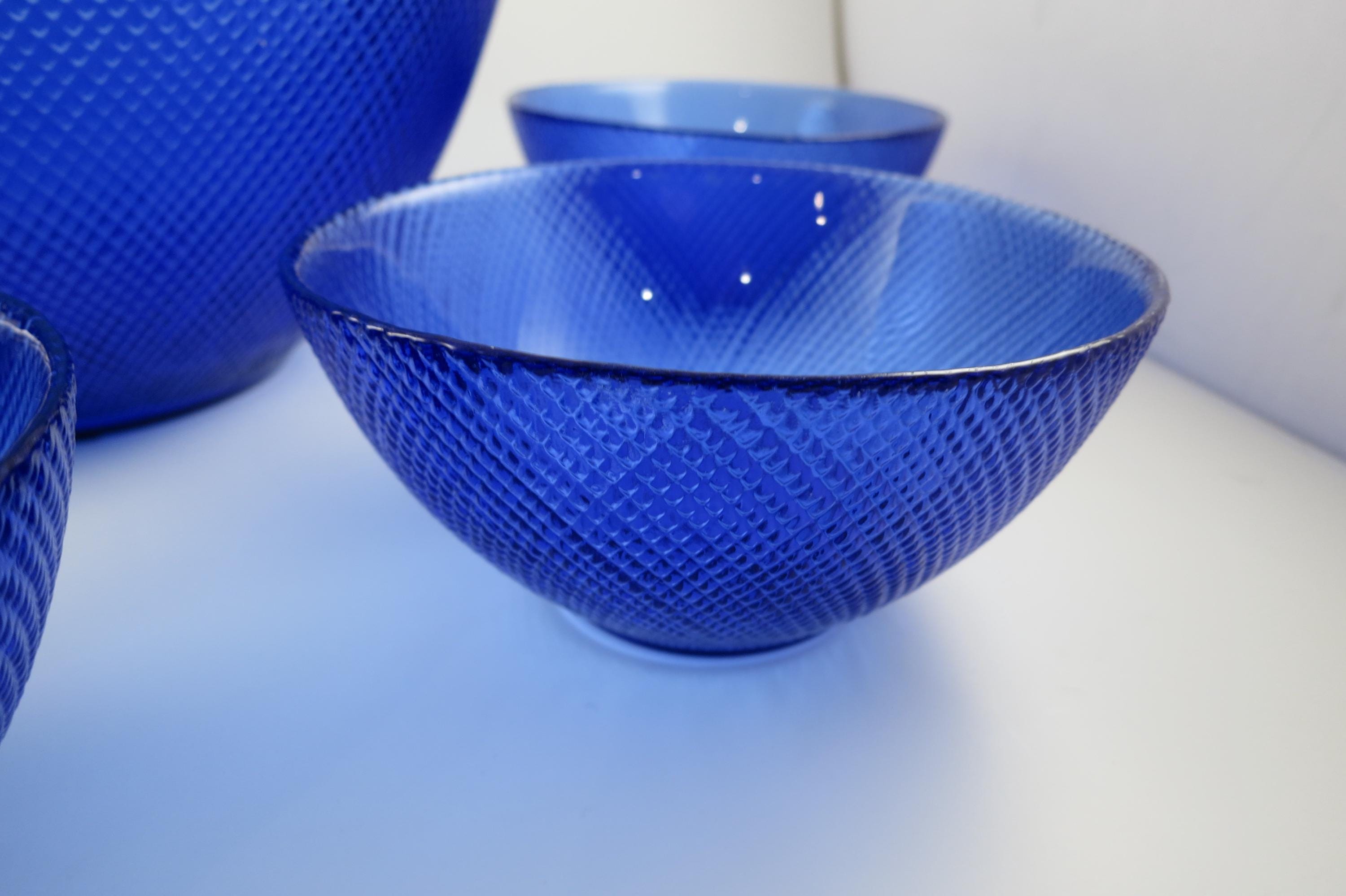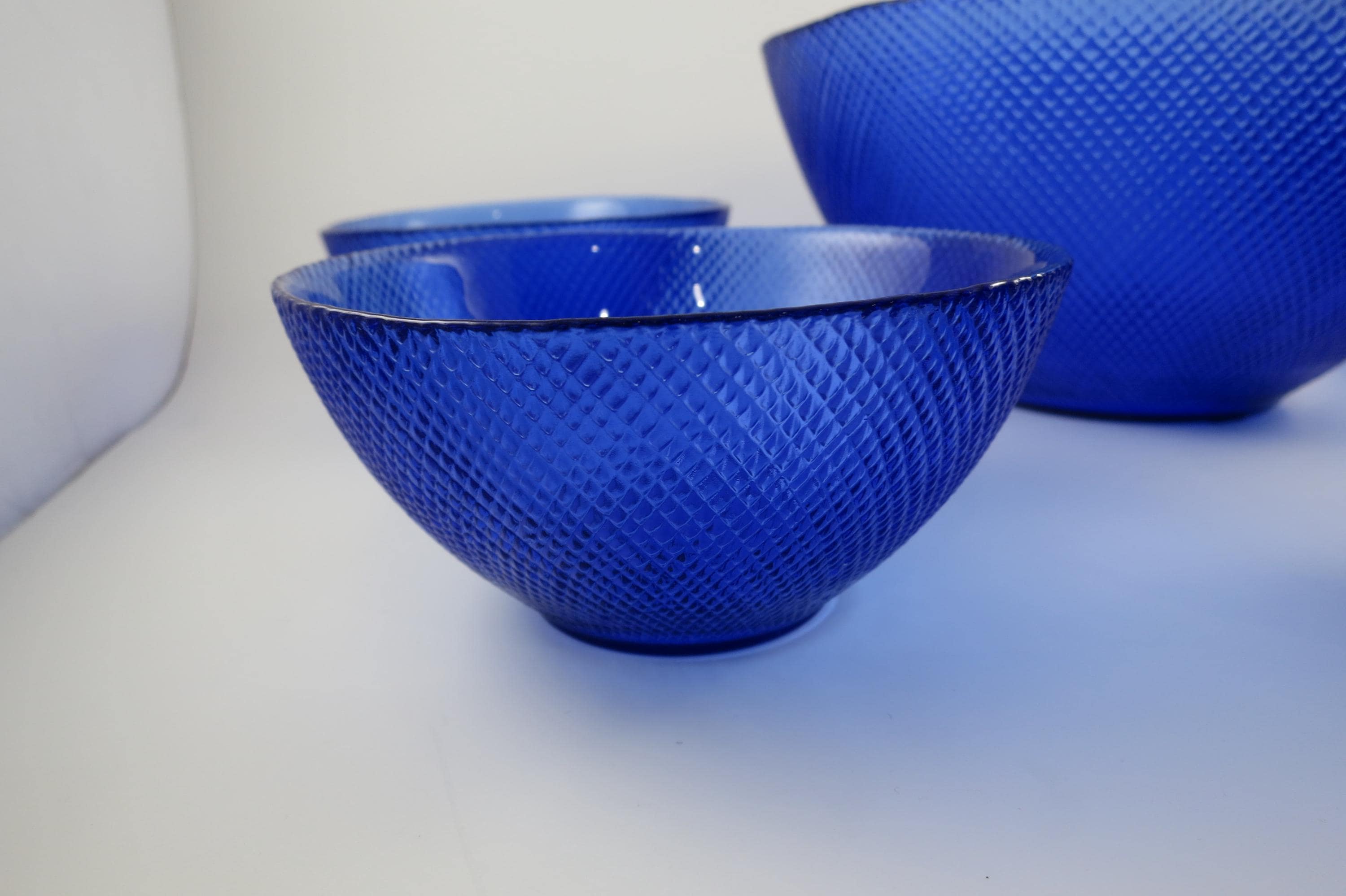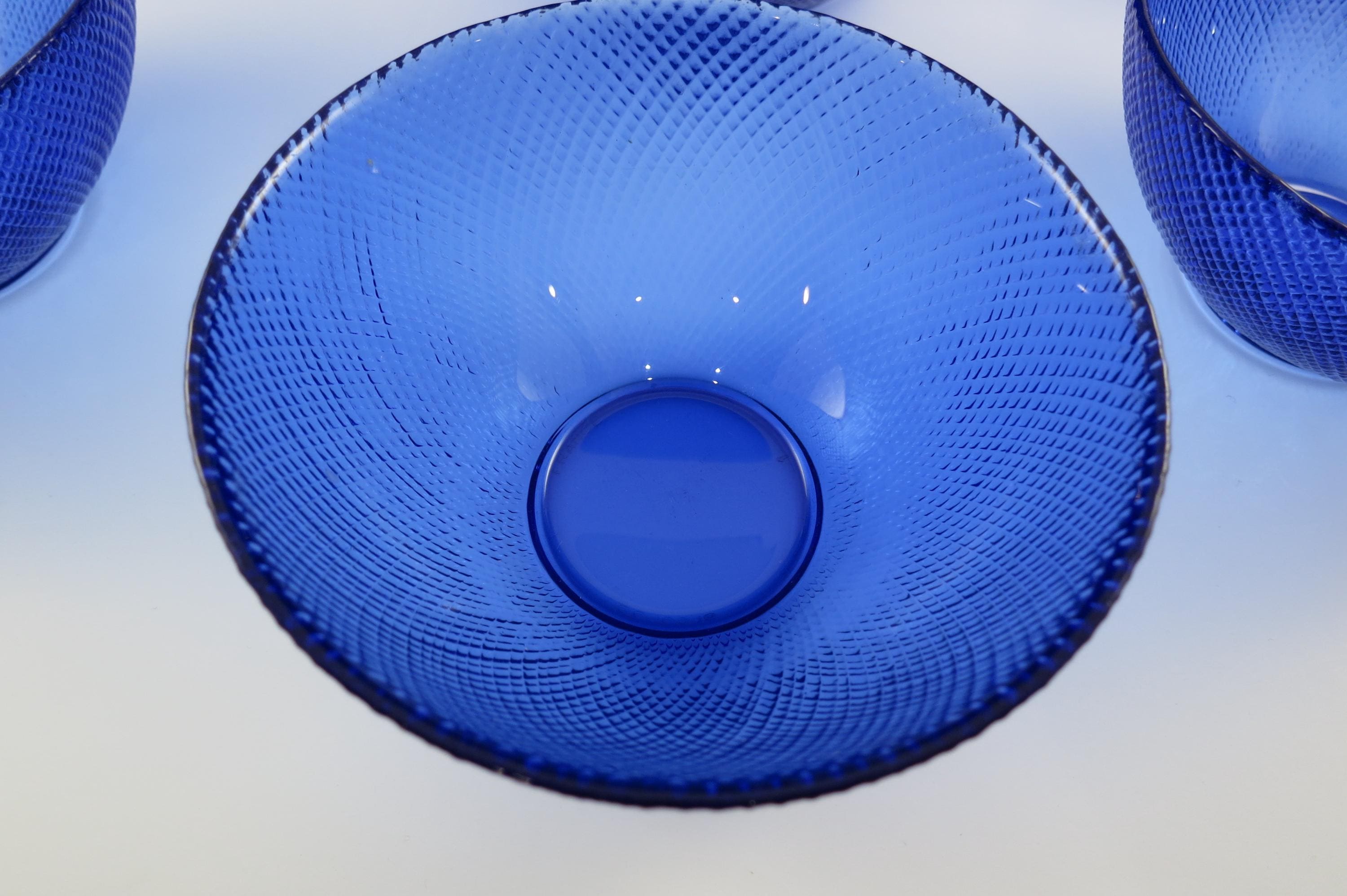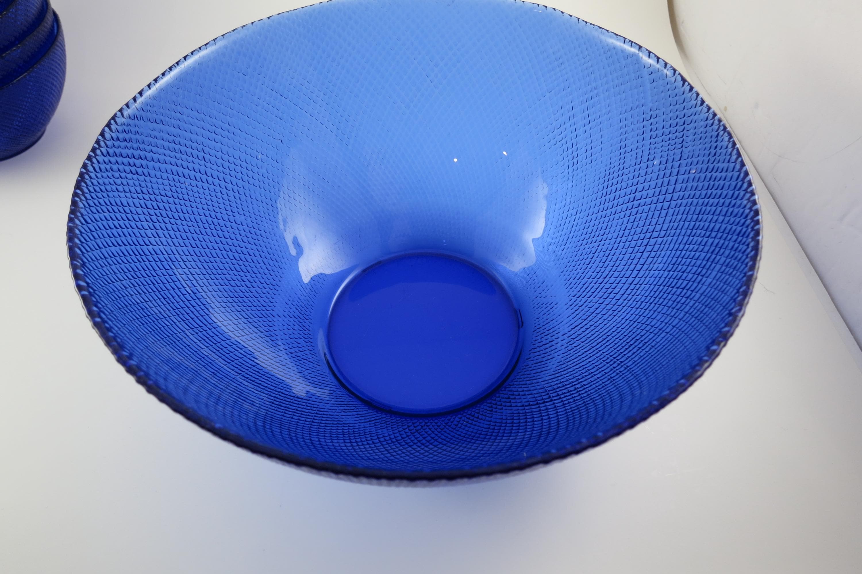 Vintage Arcoroc France 6 Piece Cobalt Blue Salad Serving Set.