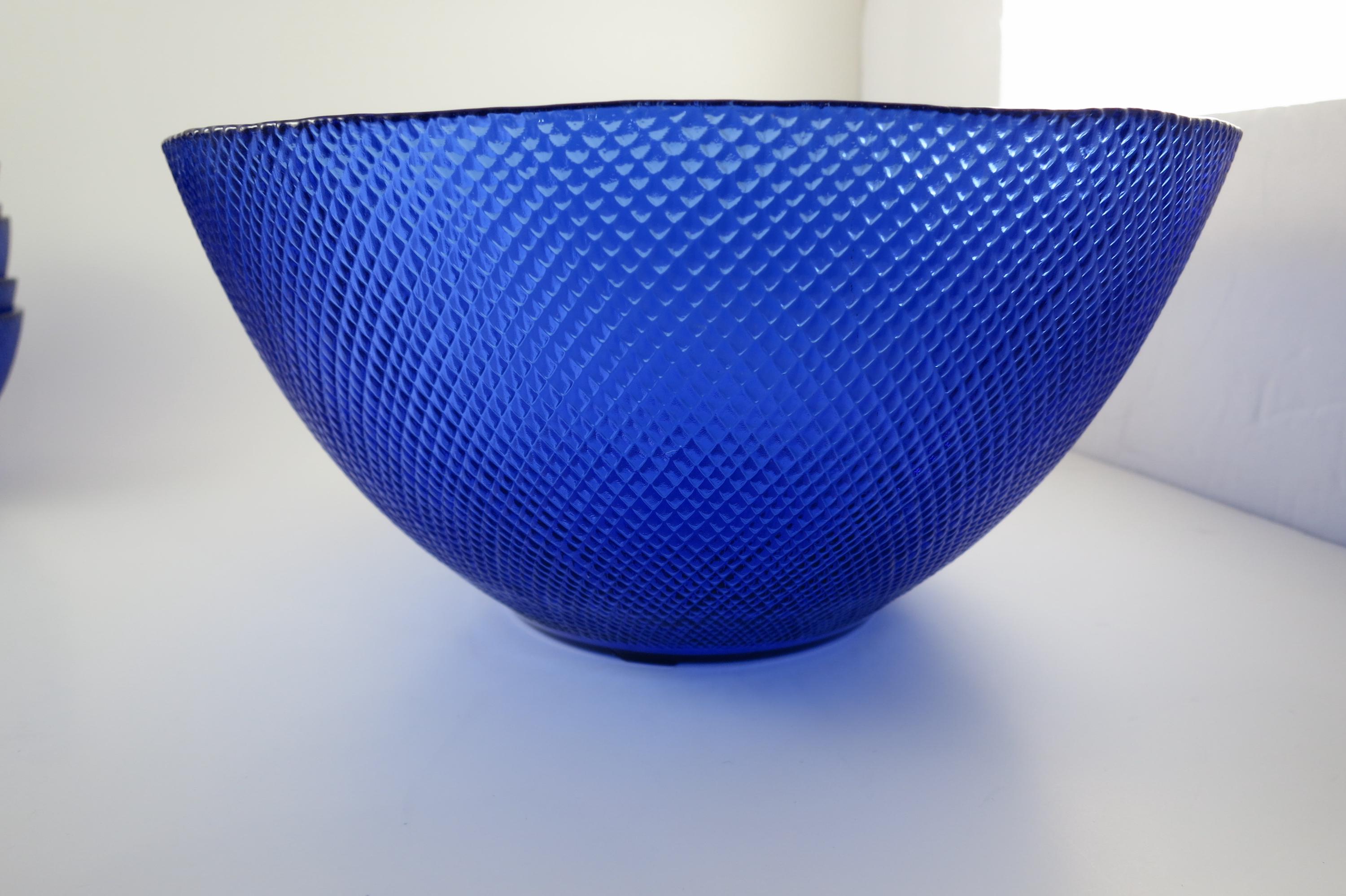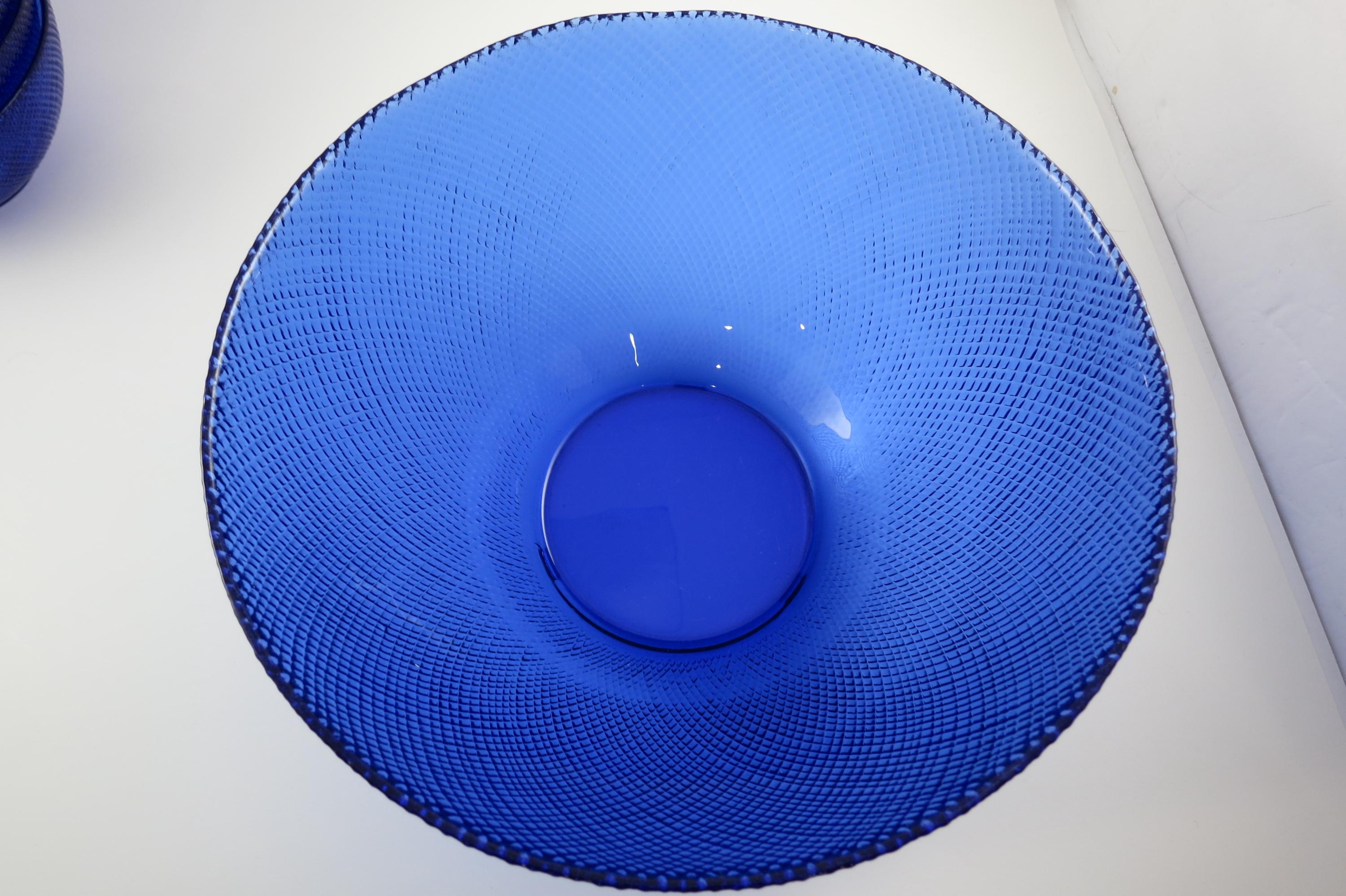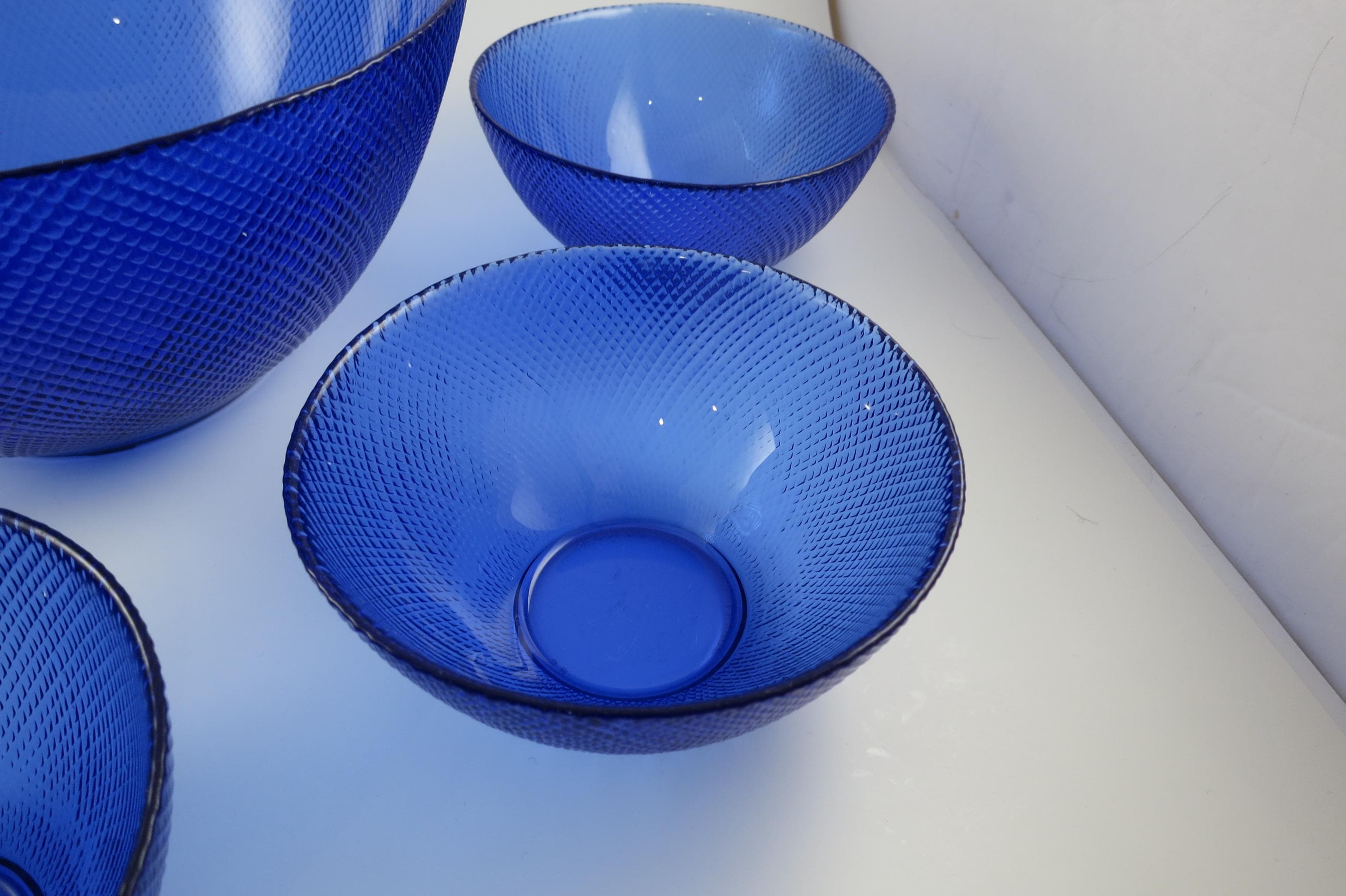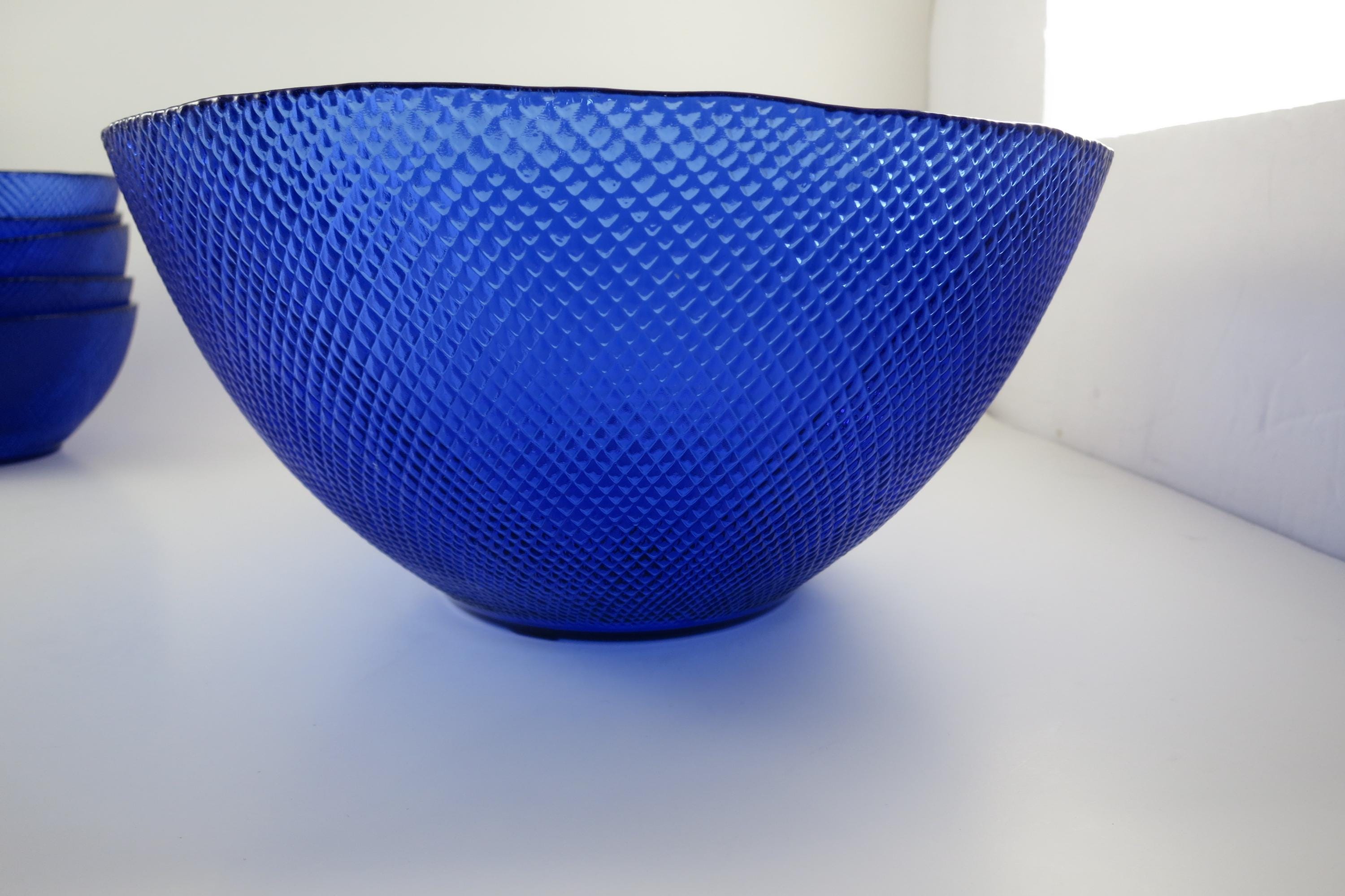 Vintage Arcoroc France 6 Piece Cobalt Blue Salad Serving Set.
