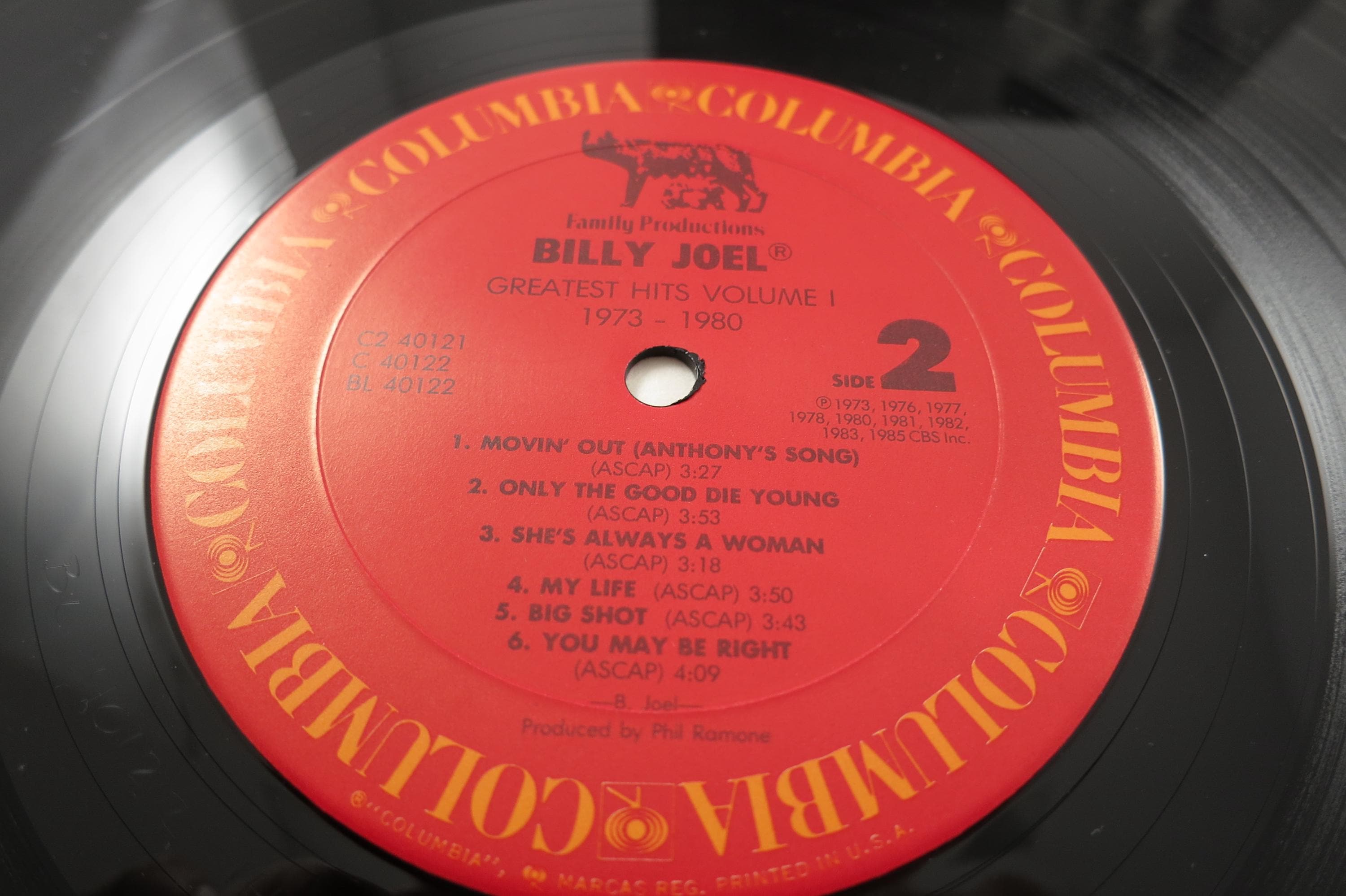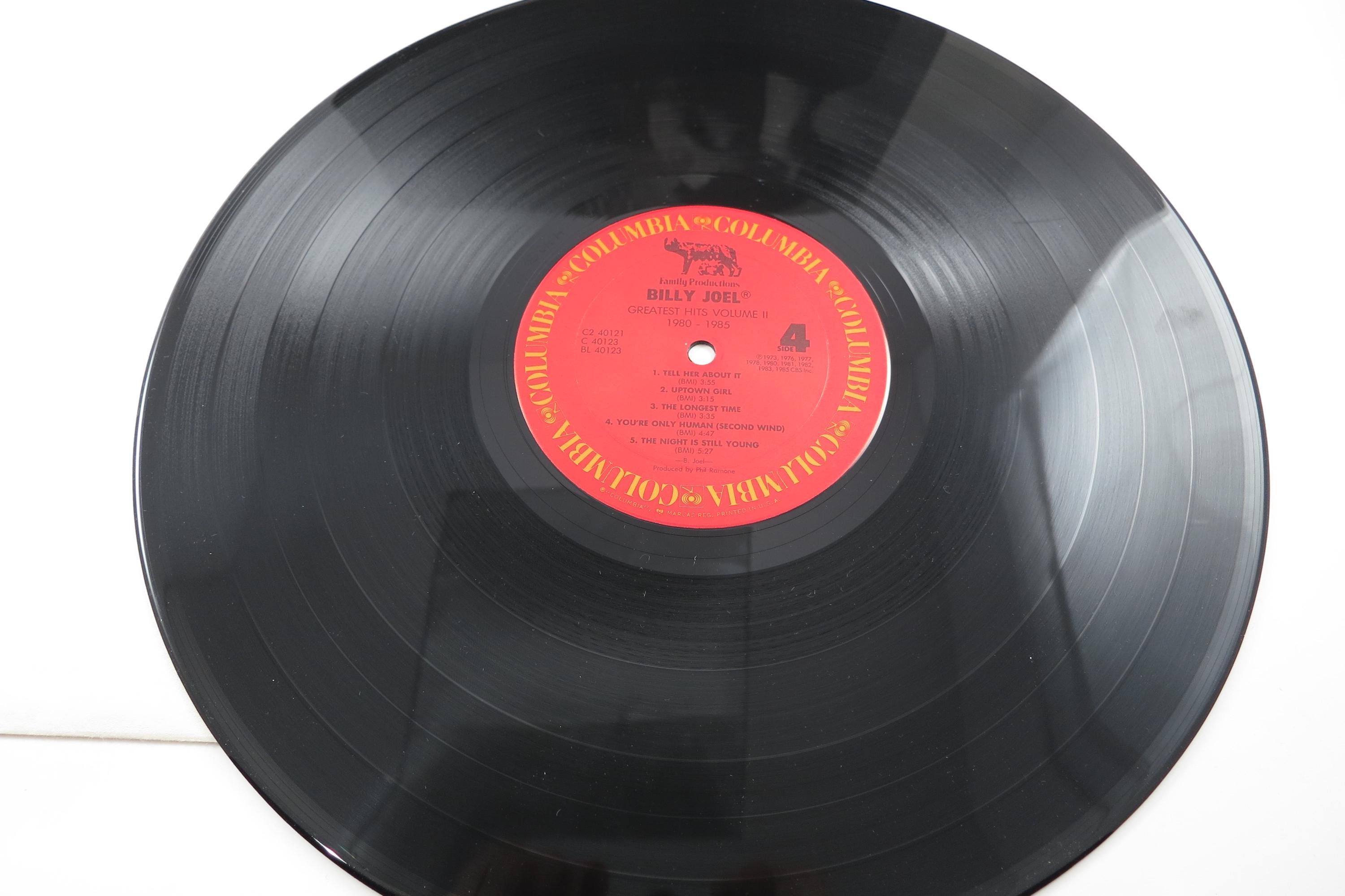 Vintage 1985 LP Record Billy Joel Greatest Hits Volume One and Two 2 LP Set. Original cover is in excellent condition and includes both inner paper sleeves. Small tear on the back cover. Records are excellent plus. Nice Copy! Tracks are as follows