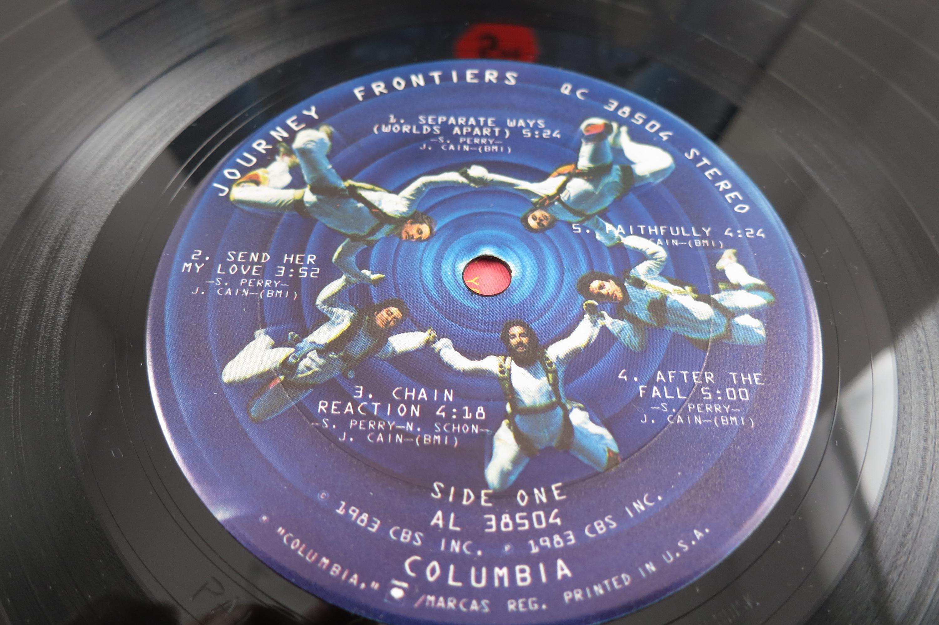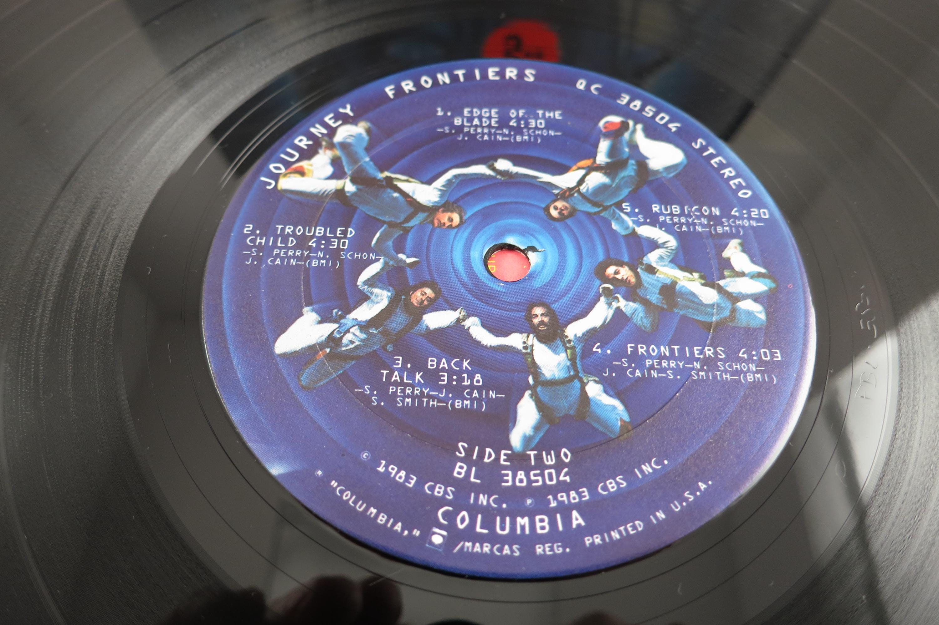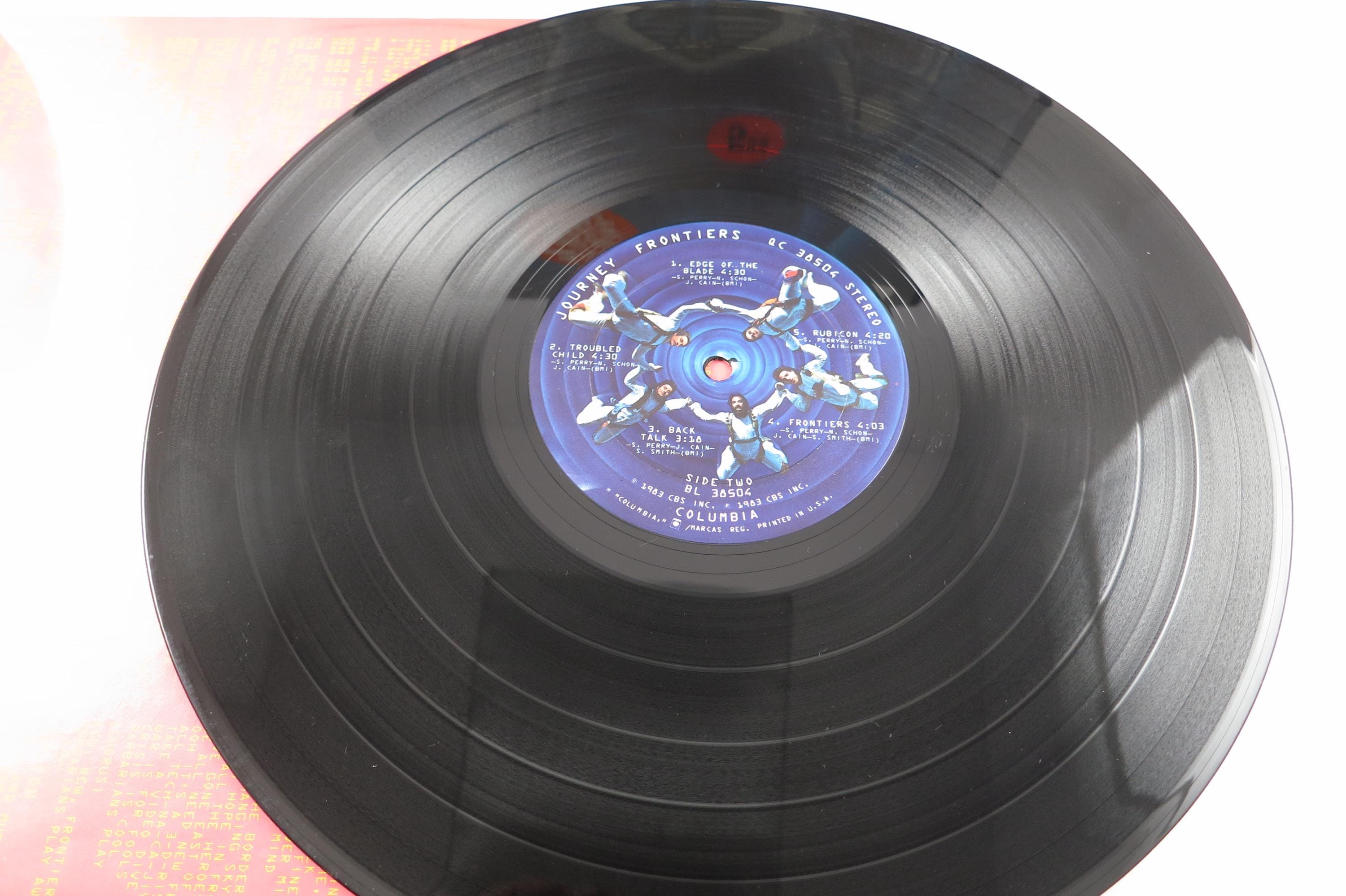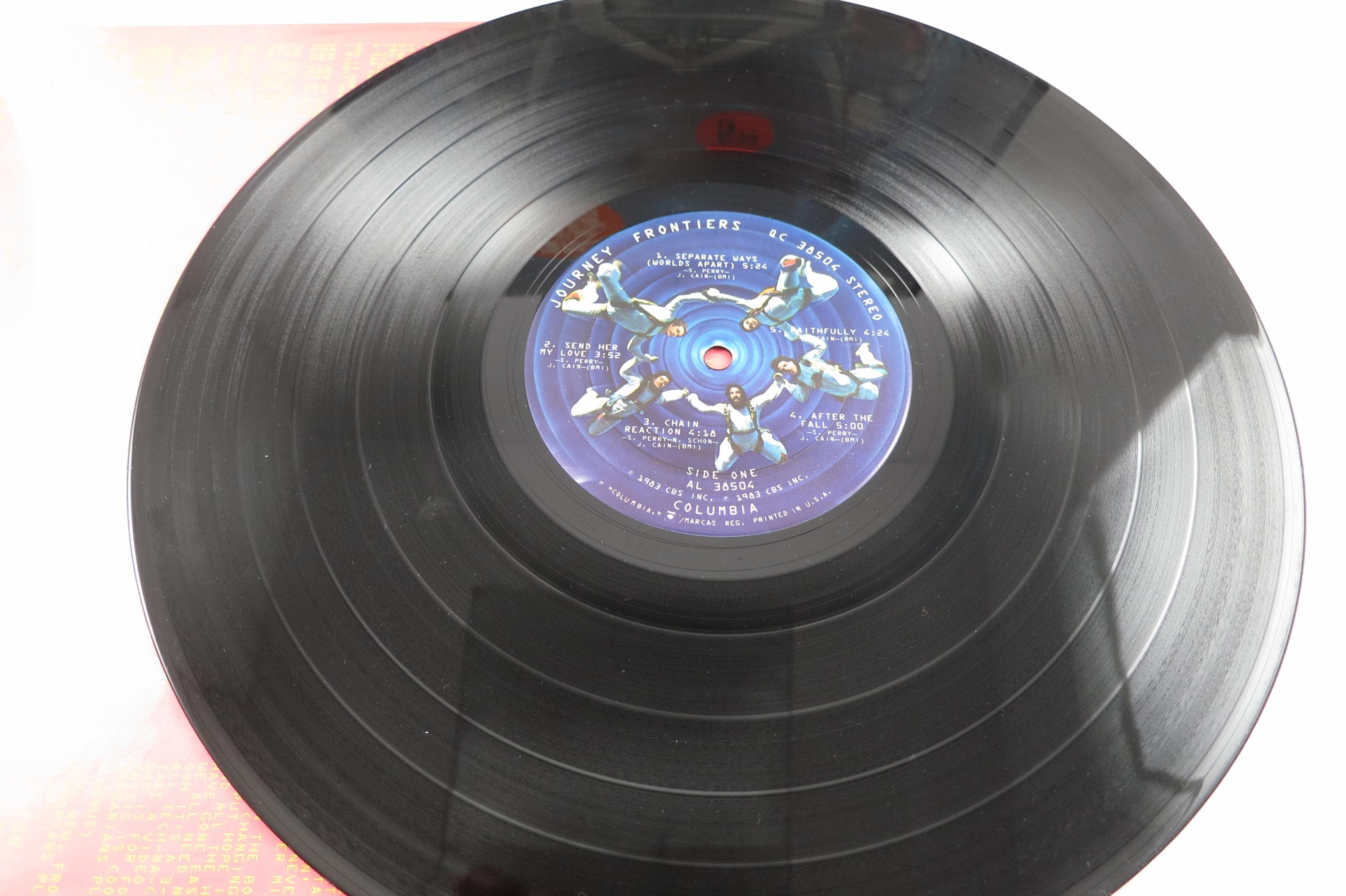 Vintage 1983 Vinyl LP Record Journey Frontiers Excellent Condition. Original cover is in excellent condition and includes the original inner paper sleeve and hype sticker, as well as the shrink wrap. Record is excellent. Tracks are as follows