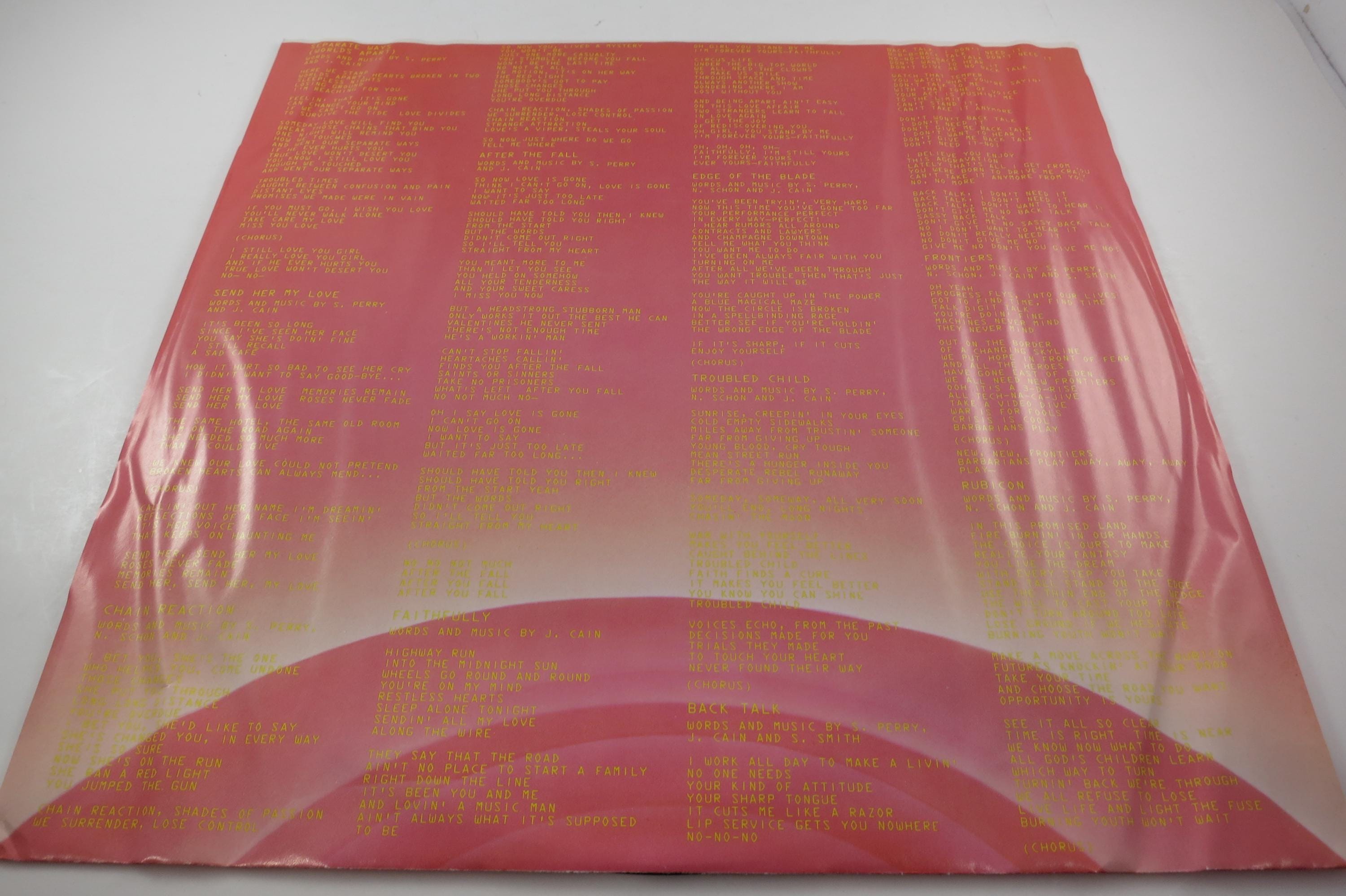 Vintage 1983 Vinyl LP Record Journey Frontiers Near Mint Condition. Original cover is in Near Mint condition and includes the original inner paper sleeve, factory shrink wrap and hype sticker. Looks just like it did 40 years ago!! Record is Near Mint. Fabulous Copy! Tracks are as follows