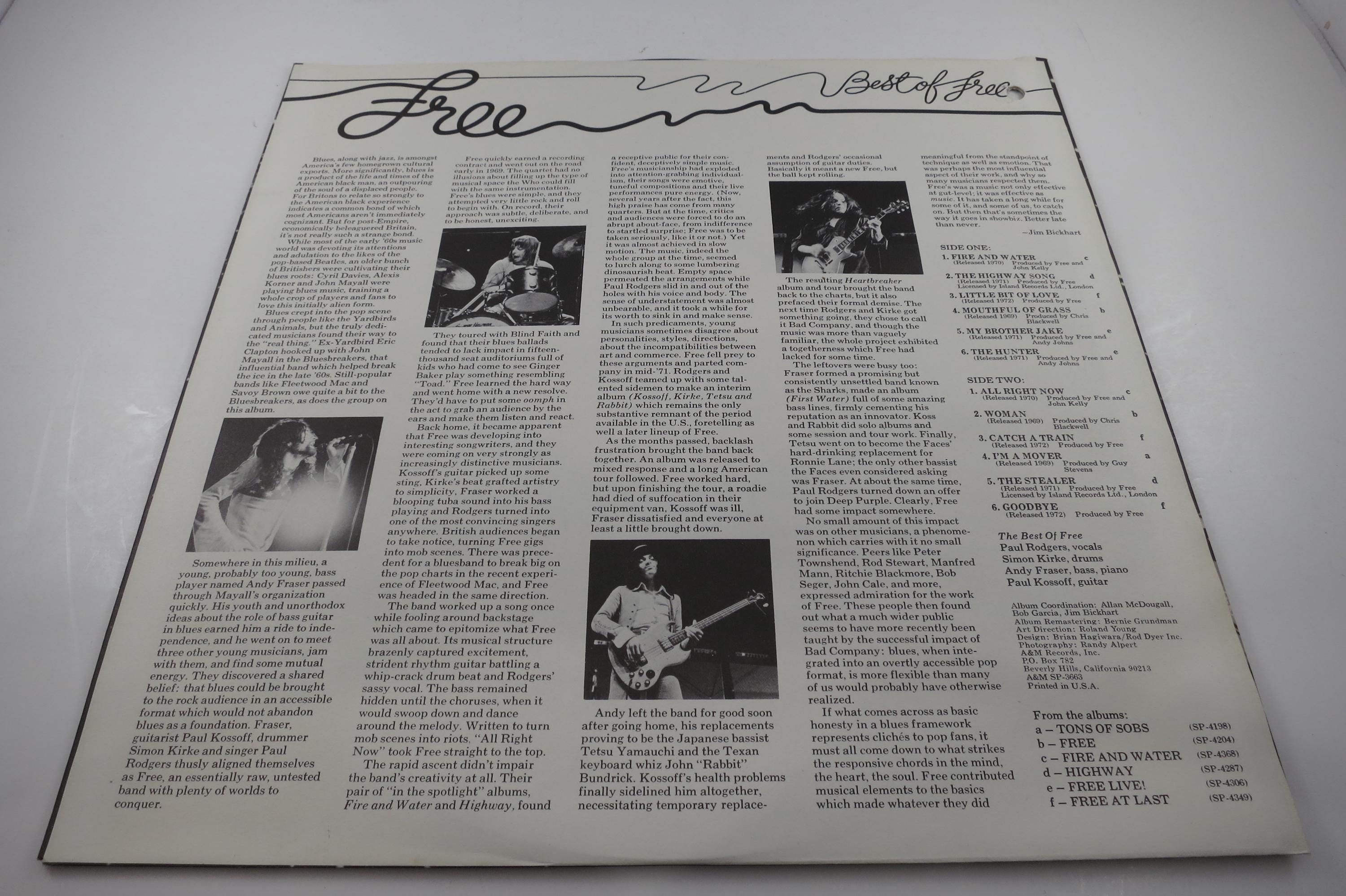 1974 Vinyl LP Record Free The Best of Free Near Mint Condition White Label Promo Pressing. Original cover is in excellent condition and includes the original inner paper sleeve. Record is a white label promo and is in near mint condition. Rare find!! Tracks are as follows