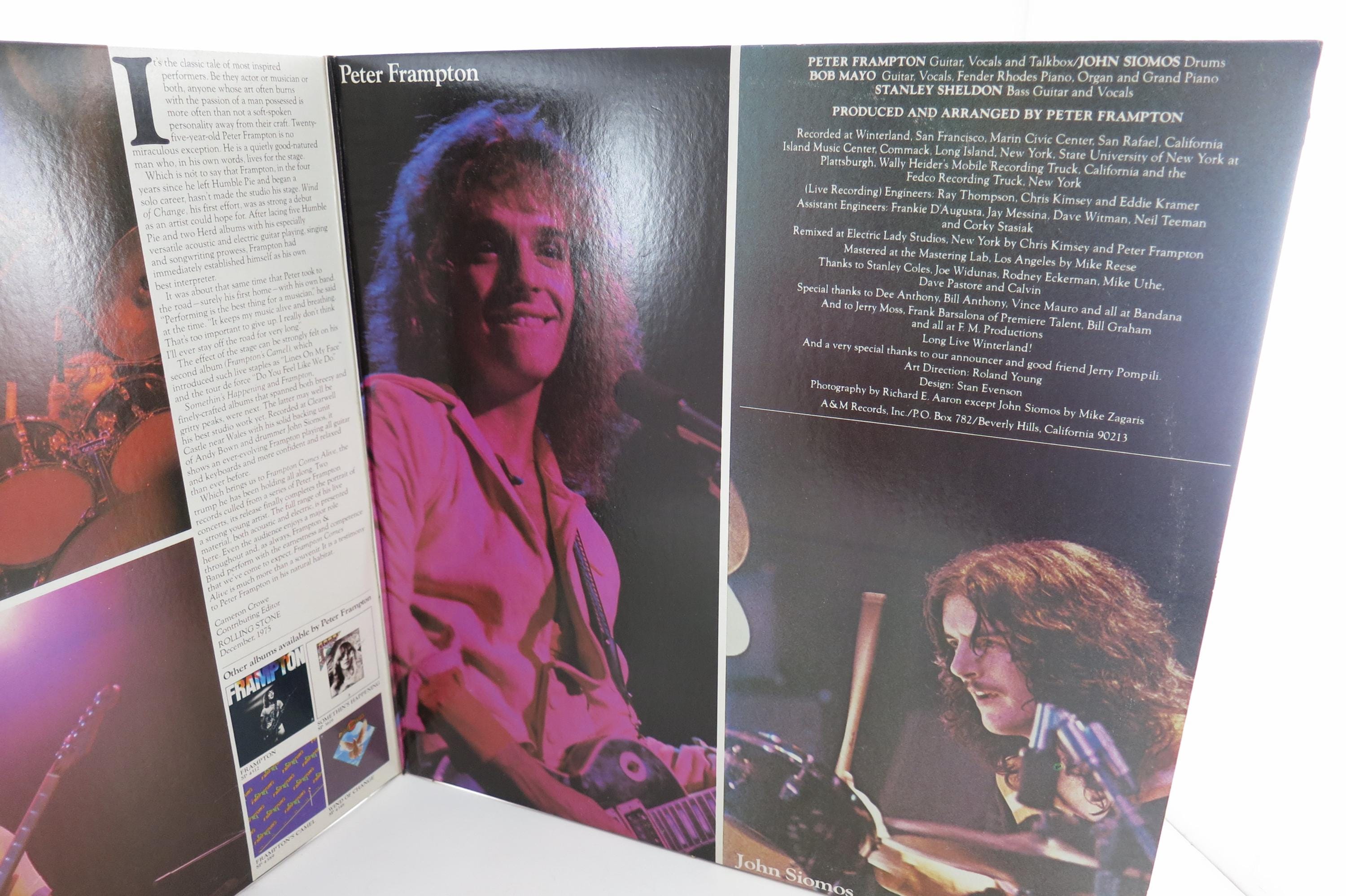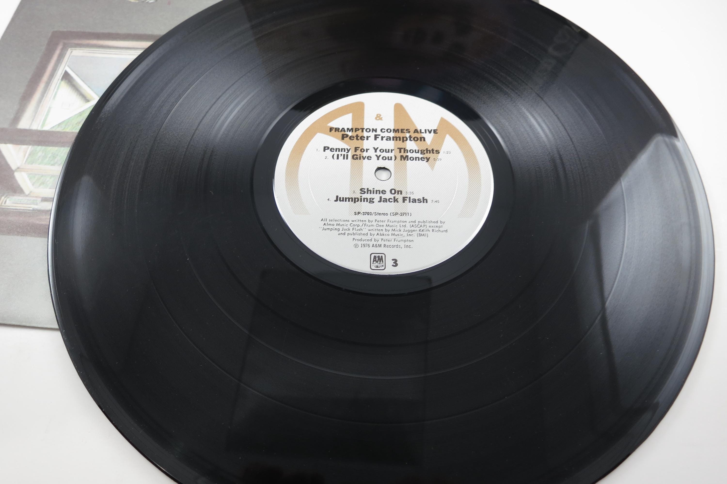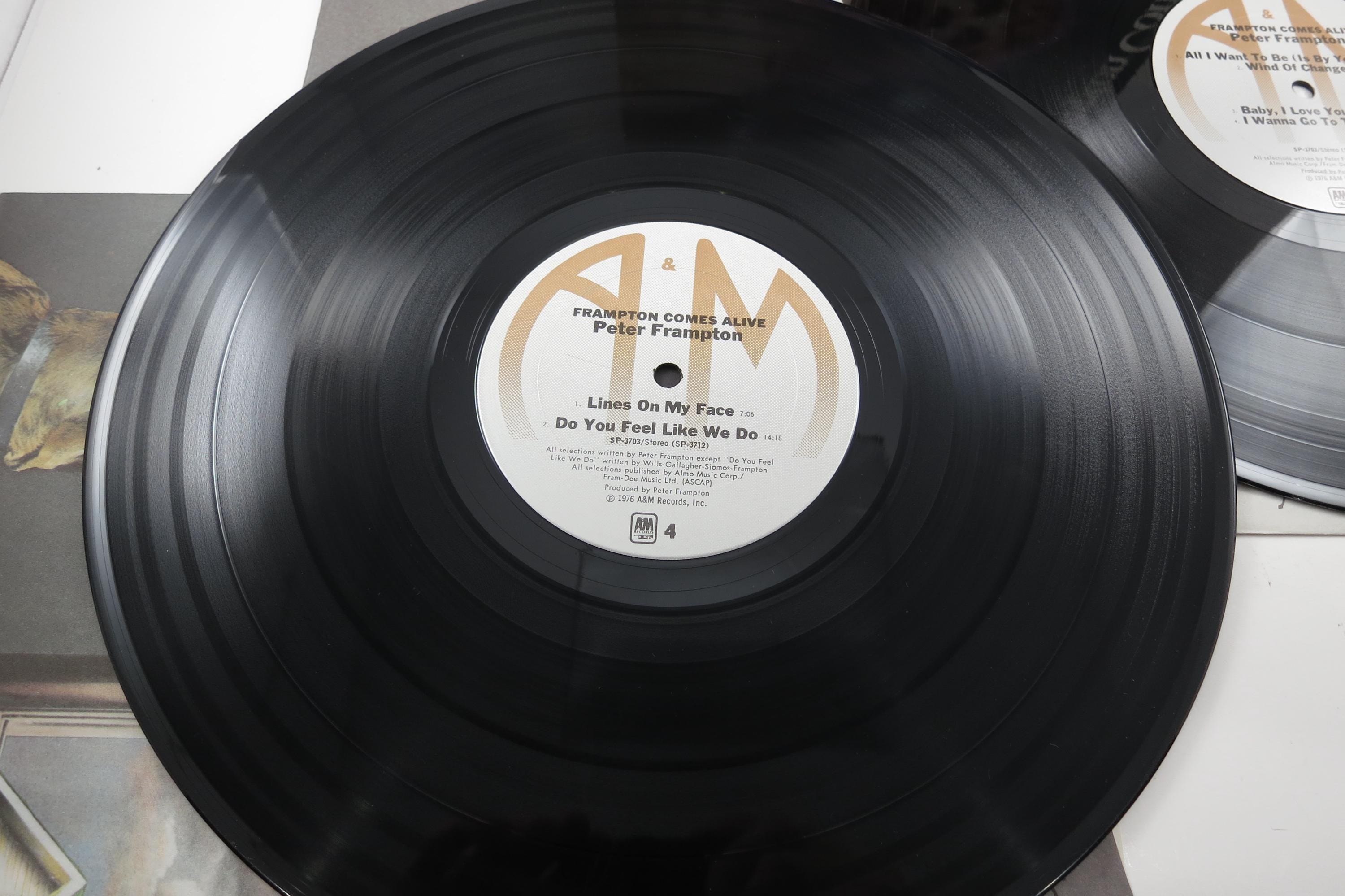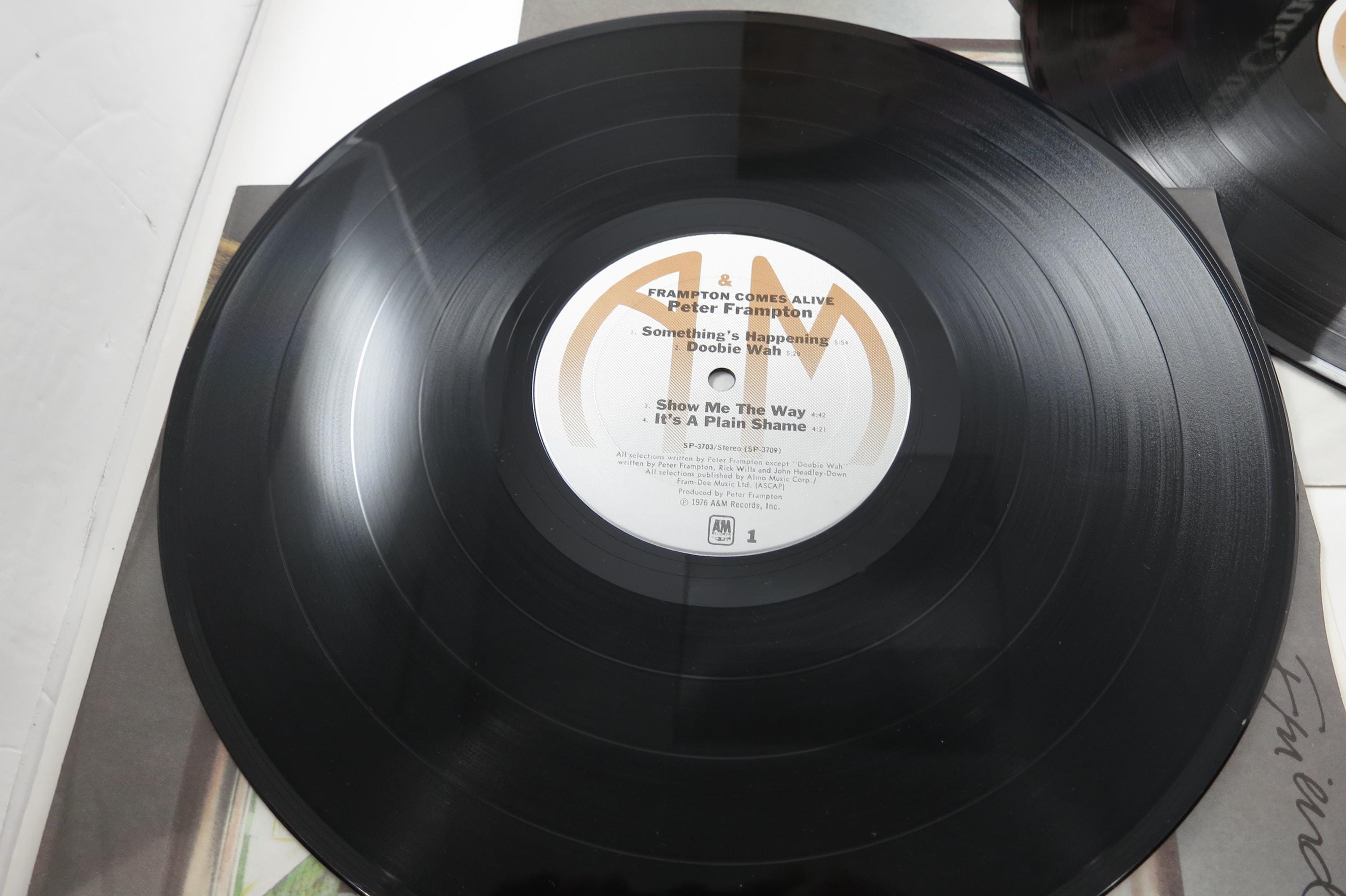 1976 Vinyl LP Record Peter Frampton Comes Alive Two Record Set. Original cover is in excellent condition and includes both original inner paper sleeves. Records are both excellent. Tracks are as follows