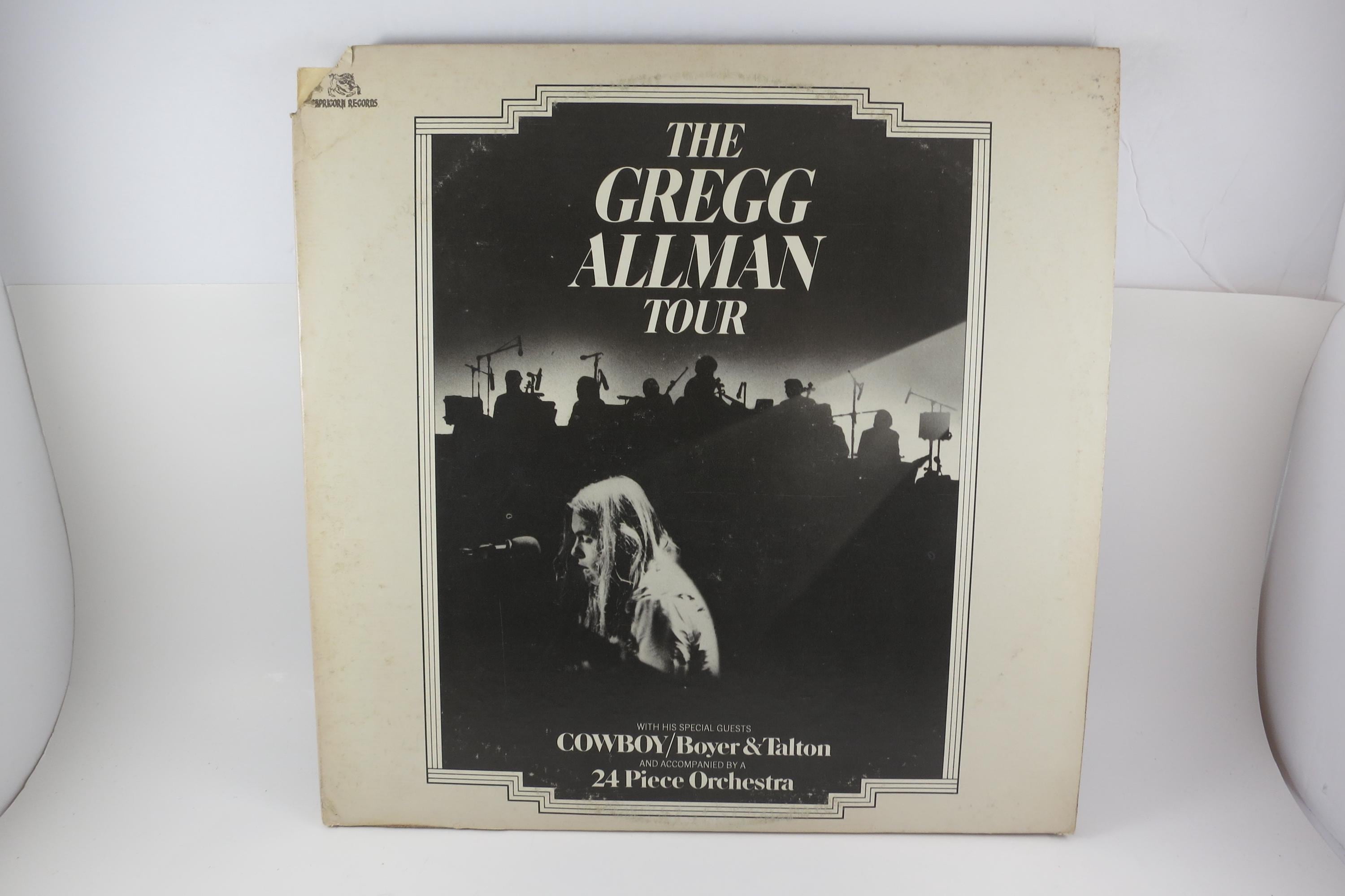 Vintage 1974 Vinyl LP Record Set The Gregg Allman Tour Live Excellent Plus Condition. Original gate gold cover is in excellent condition and includes both original inner paper sleeves. Has a corner clip top left. Records are excellent plus. Very nice copy! Tracks are as follows