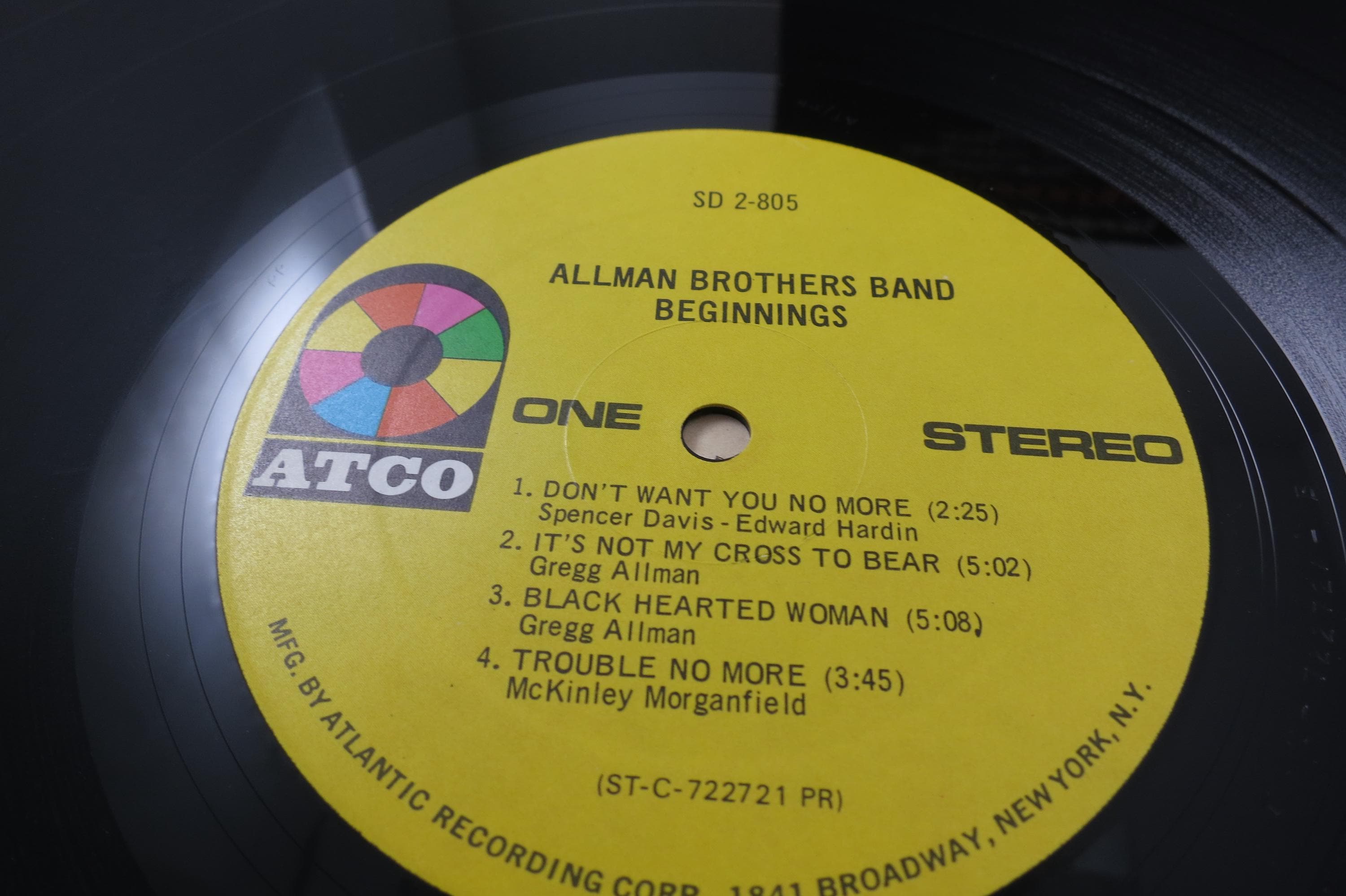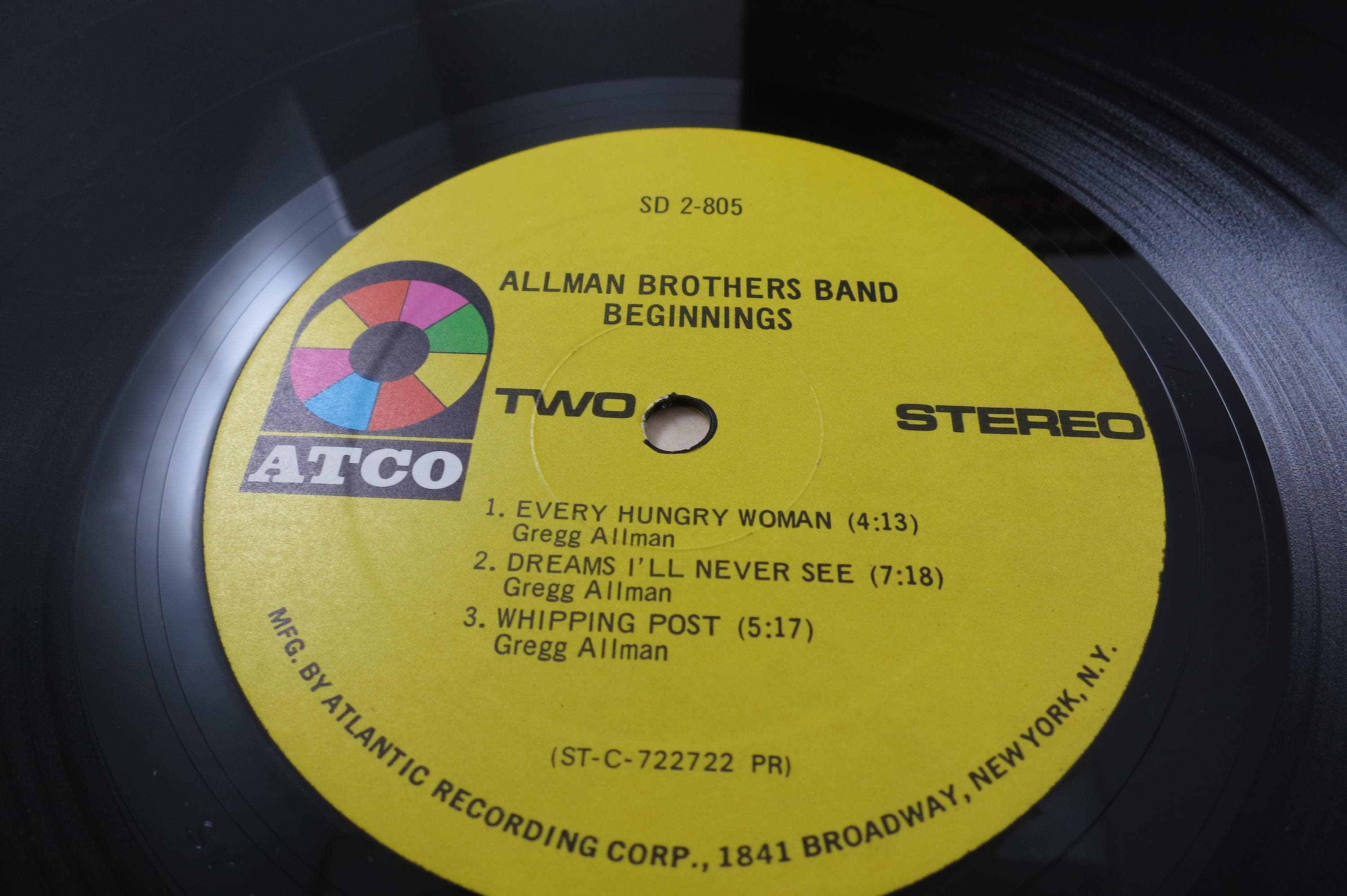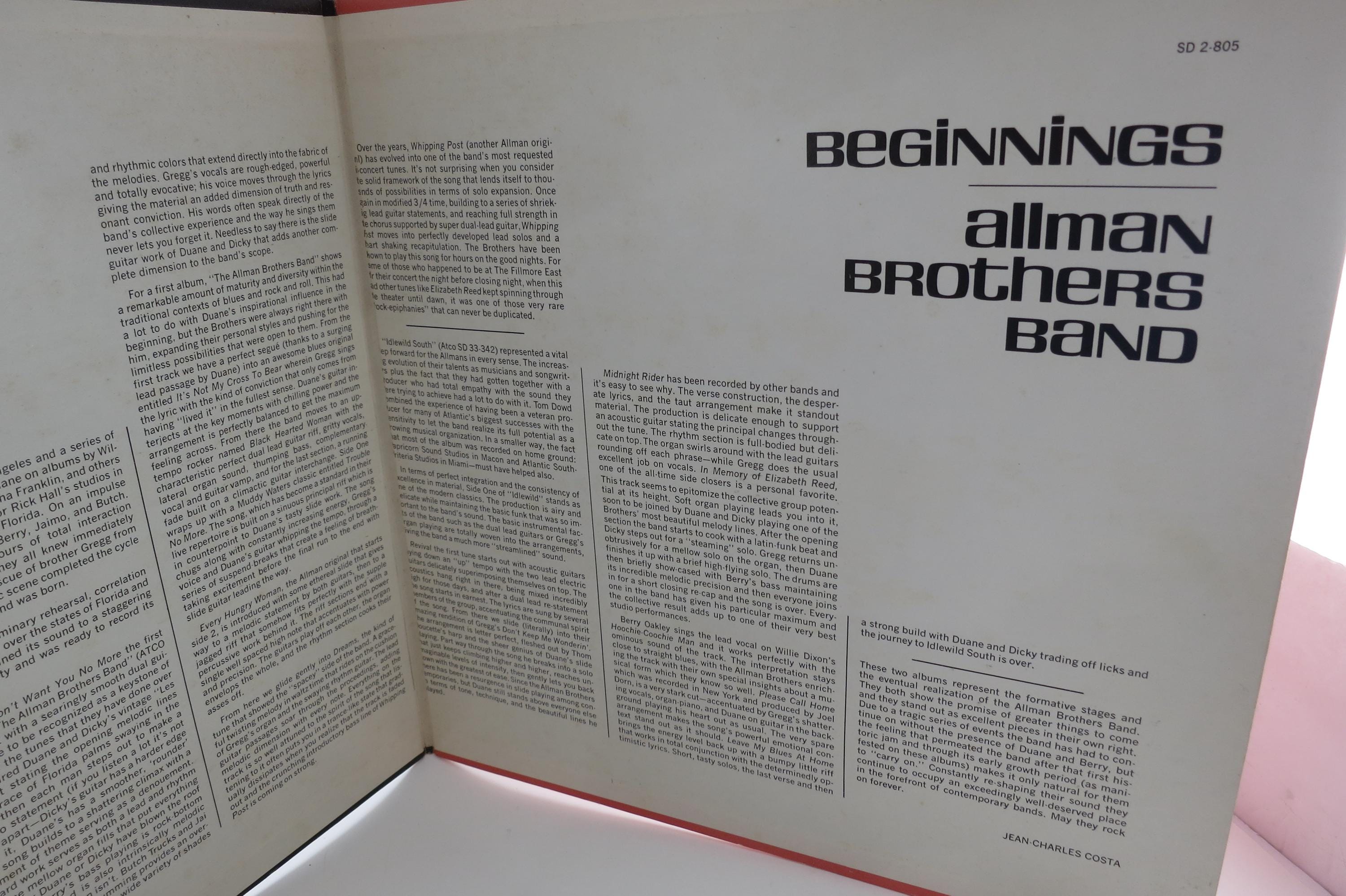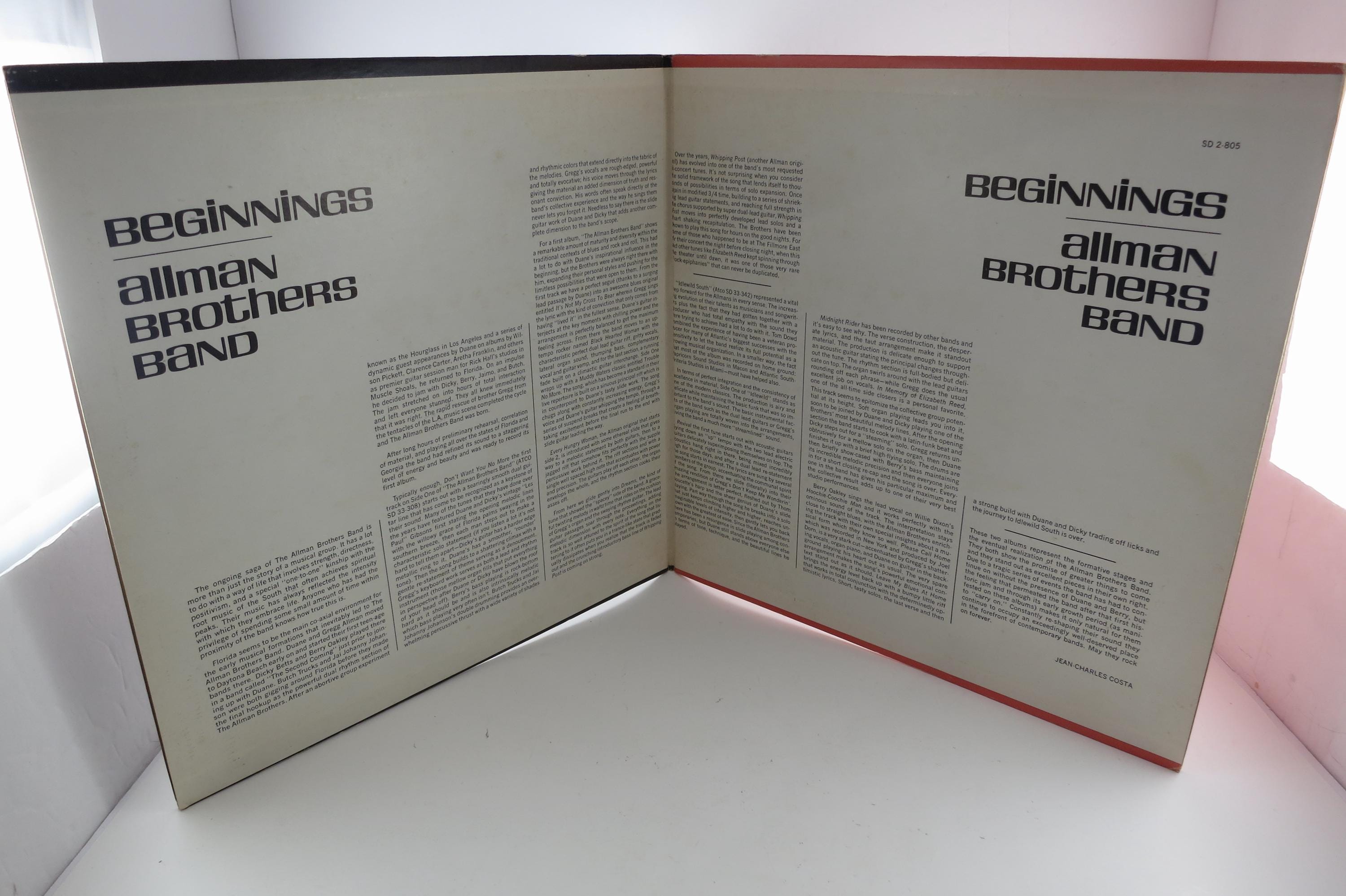 Vintage 1973 Vinyl LP Record Set Beginnings The Allman Brothers Band Excellent Plus Condition. Original gate fold cover is in excellent plus condition and includes the original inner paper sleeves. Records are in excellent plus condition as well. A Very Nice Set! Tracks are as follows