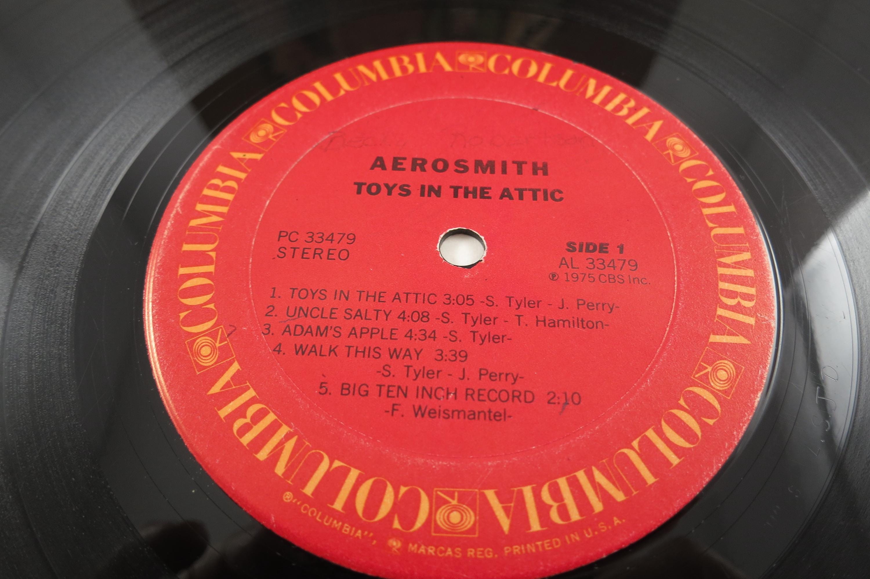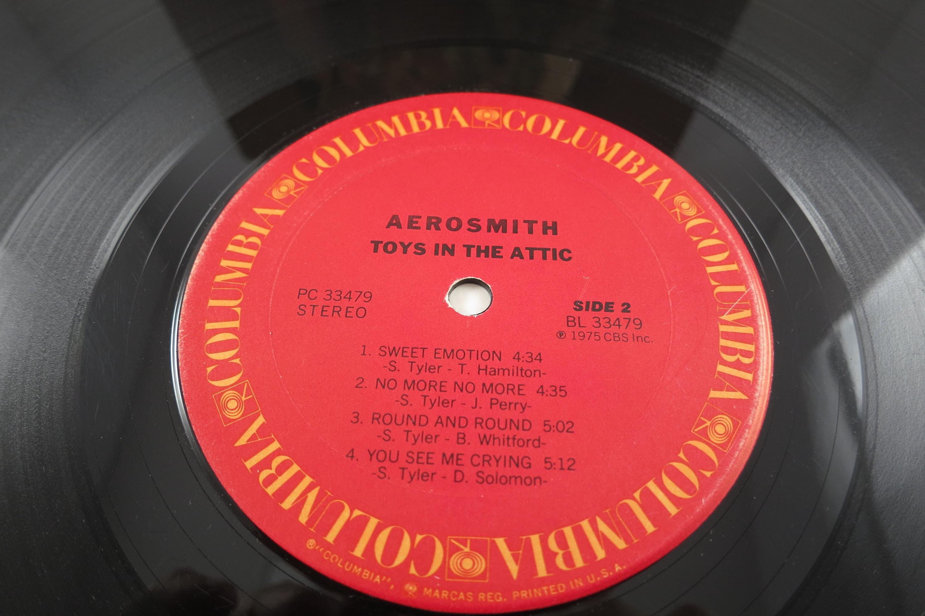 1975 Vintage LP Record Aerosmith Toys In The Attic. Record is very good and the original cover is in very good condition. Record has light marks and scuffs. Features the following tracks
