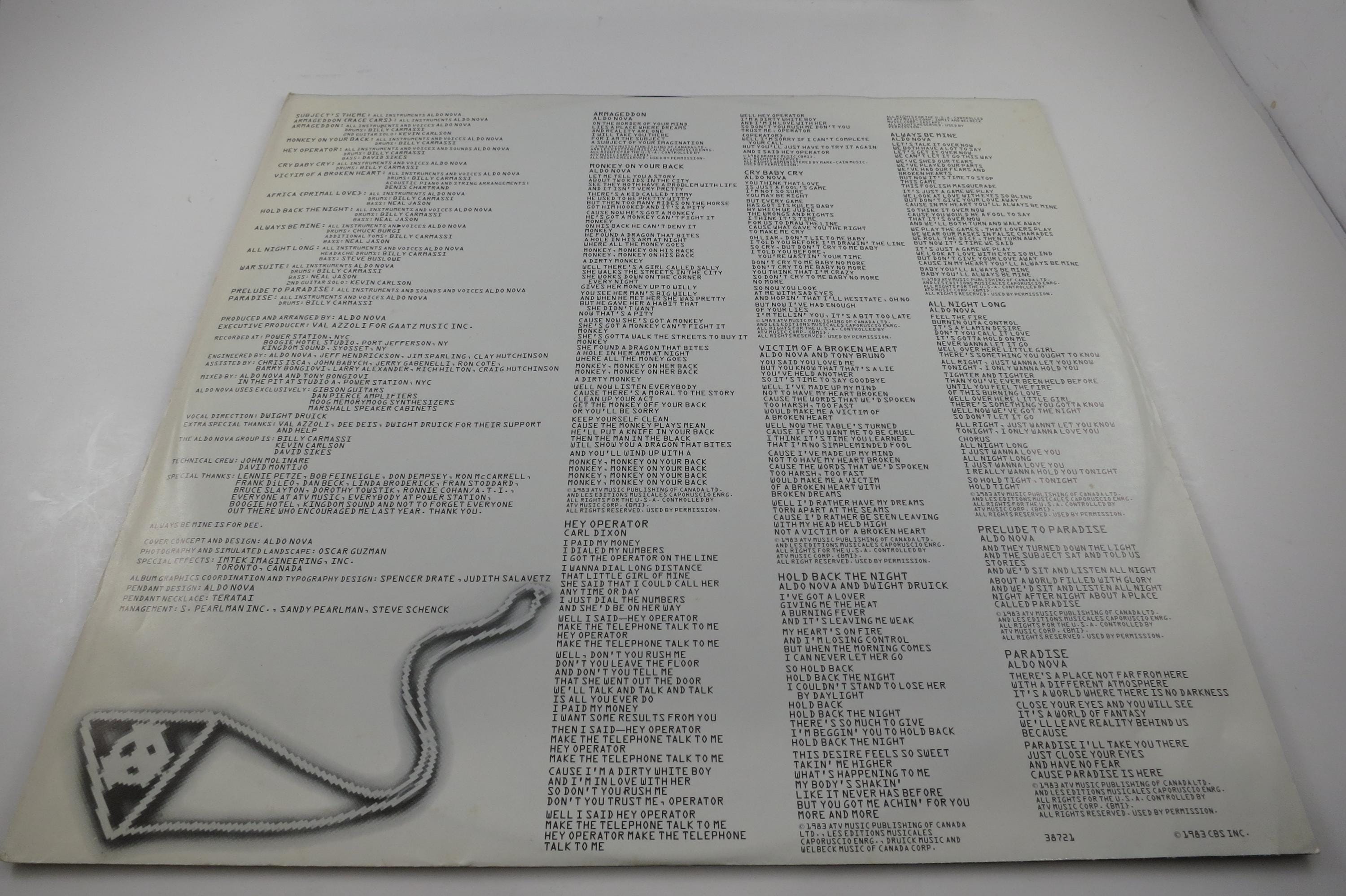 1983 Vinyl LP Record Subject Aldo Nova Near Mint Condition. Original cover is excellent and includes the original inner paper sleeve and factory shrink wrap. Record is Near Mint. Tracks are as follows