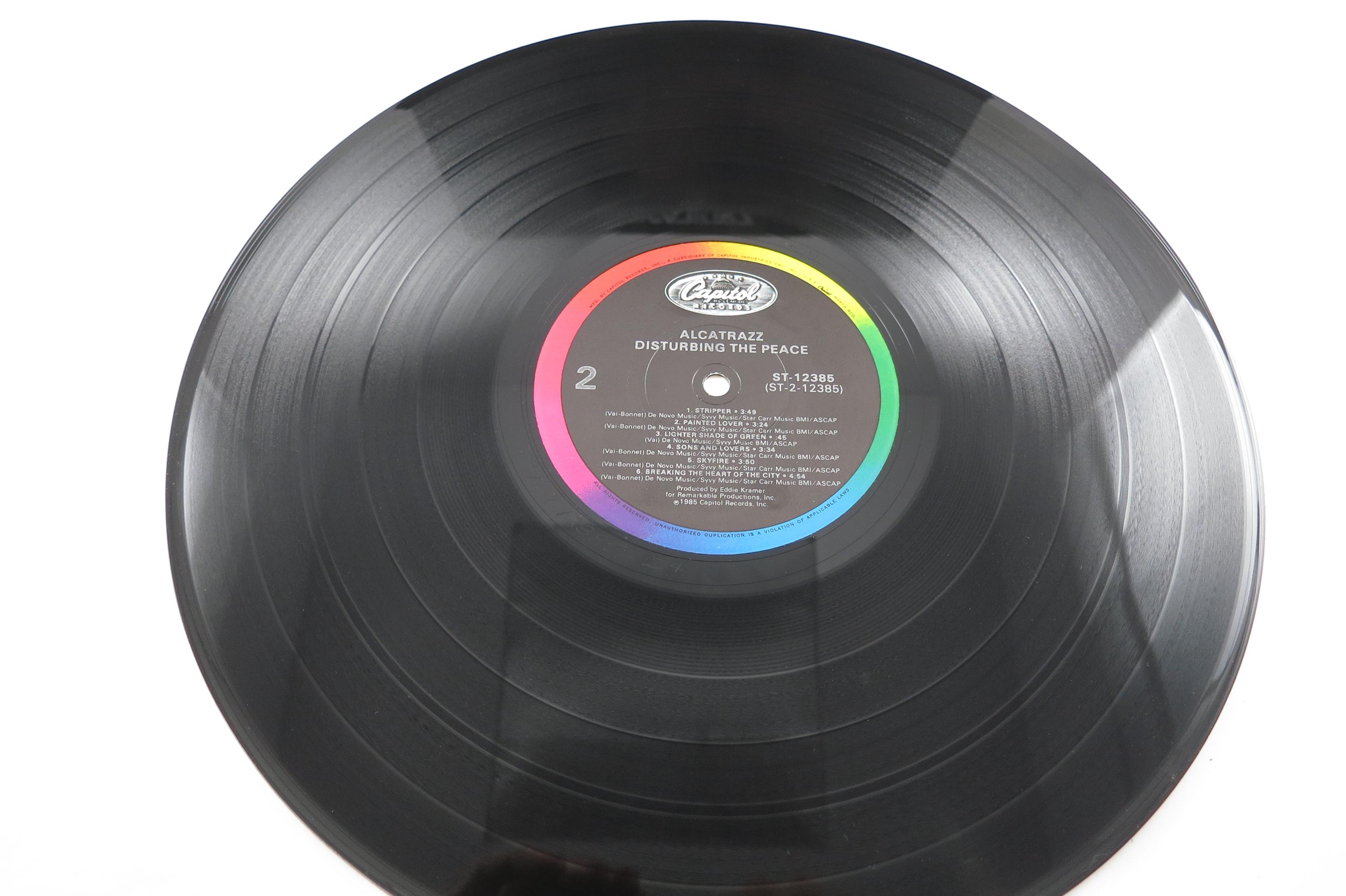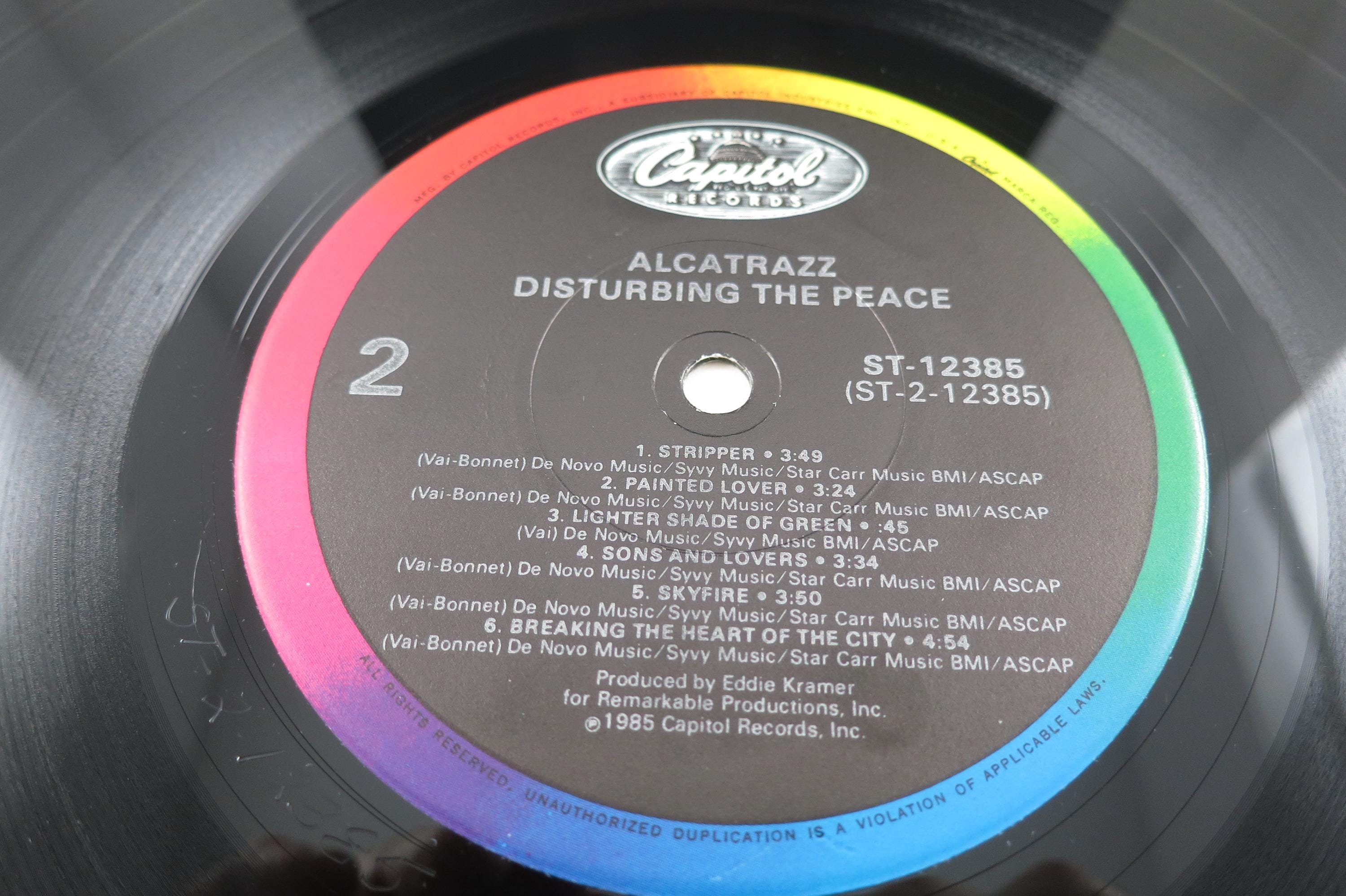 1985 Vinyl LP Record Disturbing the Peace Alcatrazz Rainbow Graham Bonnet Near Mint Condition. Original cover is in excellent condition and includes the inner paper sleeve and the original insert. Record is Near Mint. Tracks are as follows
