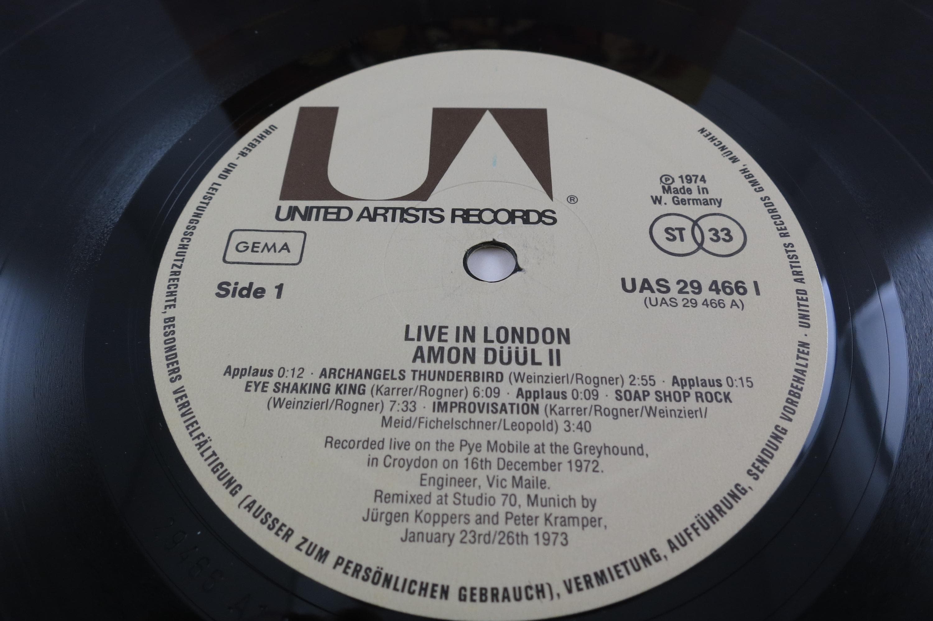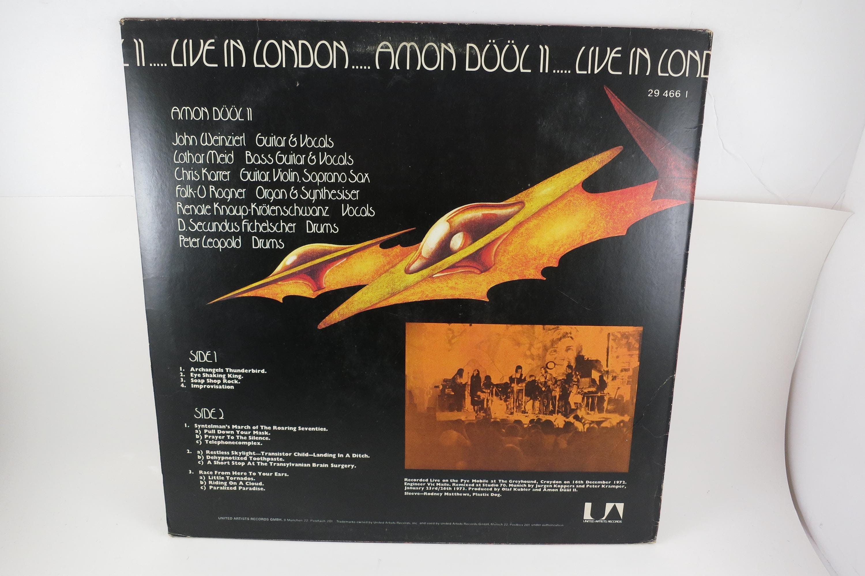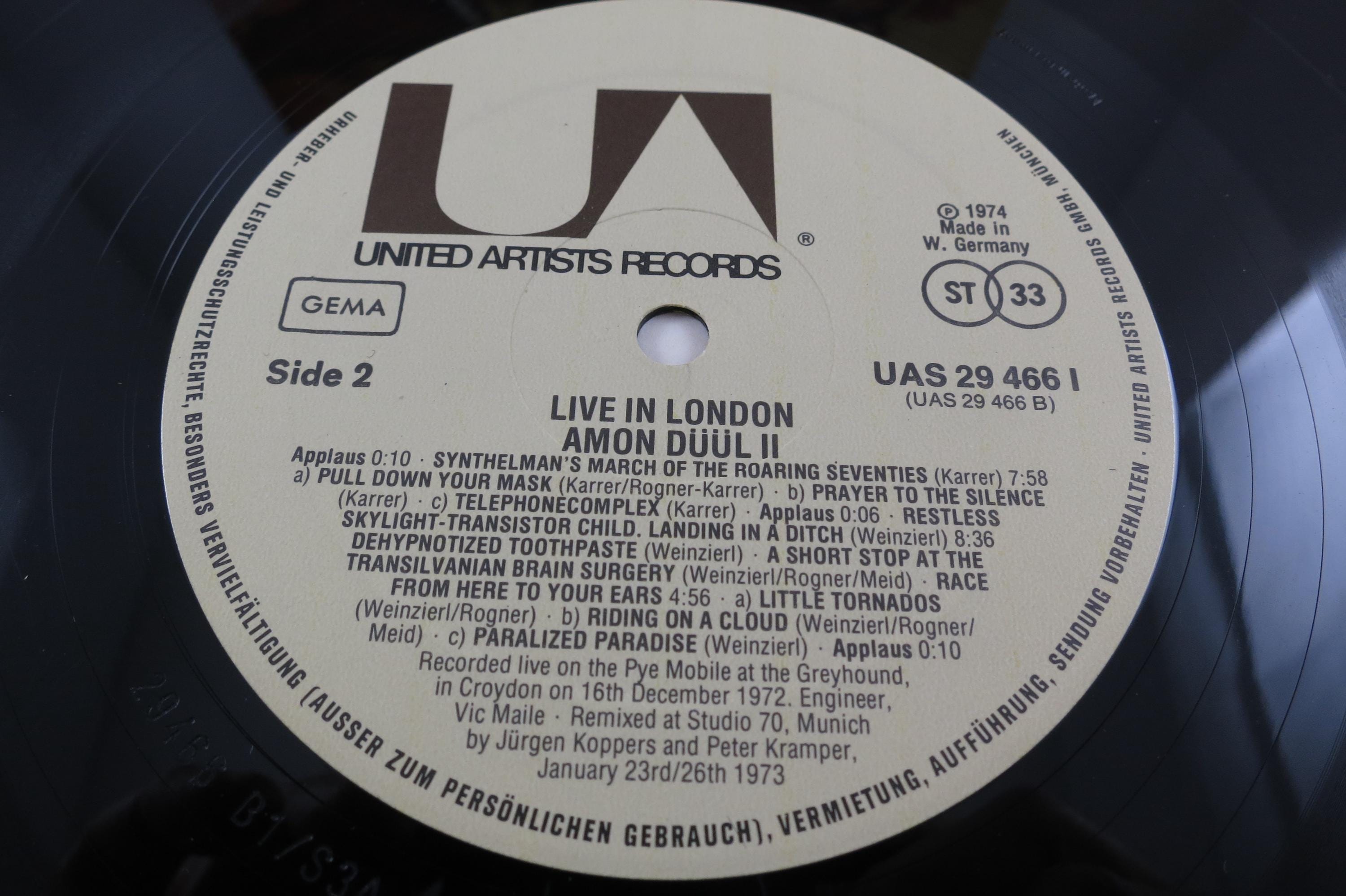 1974 Vinyl LP Record Amon Düül II Live In London Excellent Plus Condition. Original cover is in excellent condition and includes the inner paper sleeve. Record is excellent plus. Tracks are as follows