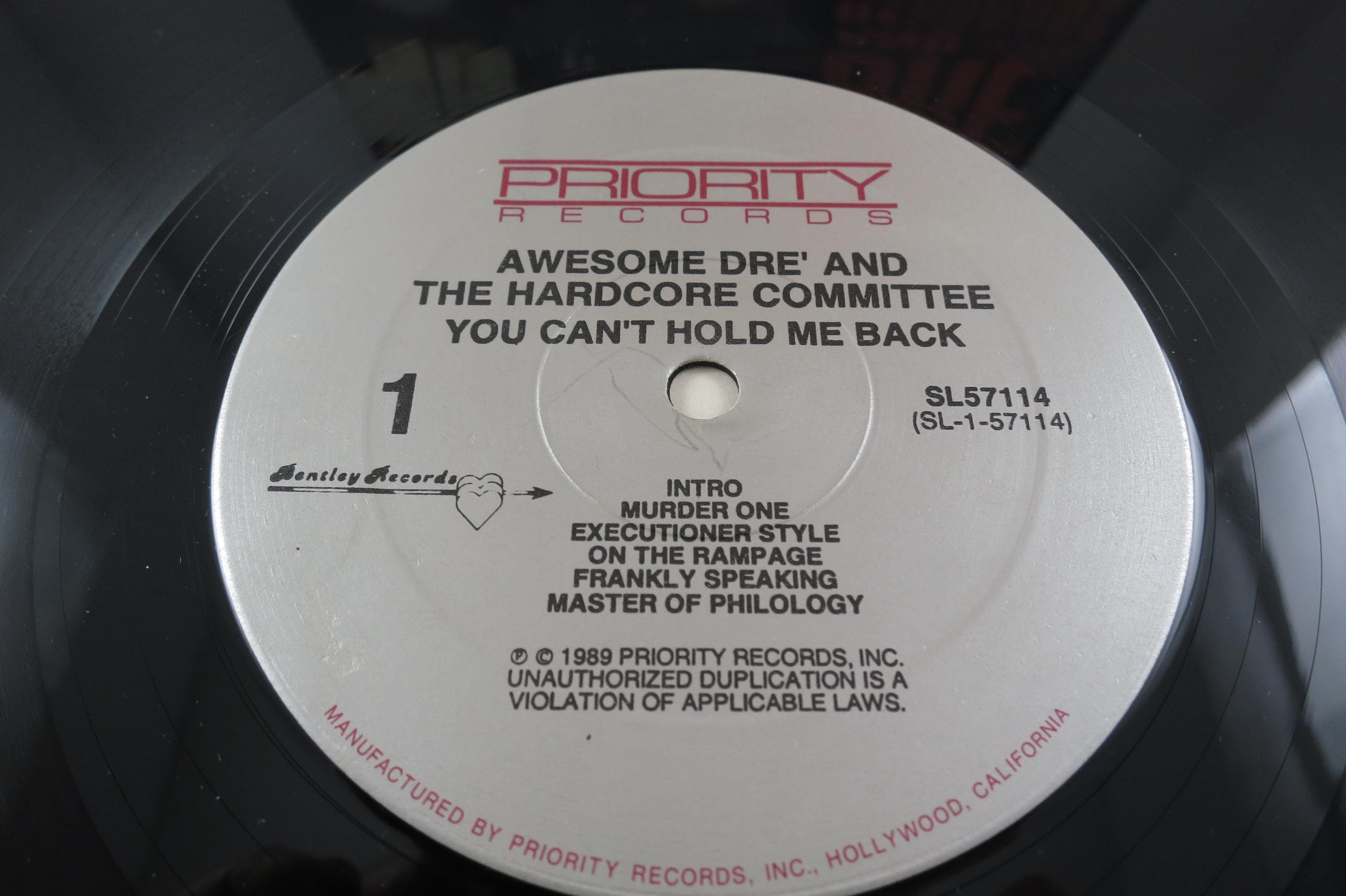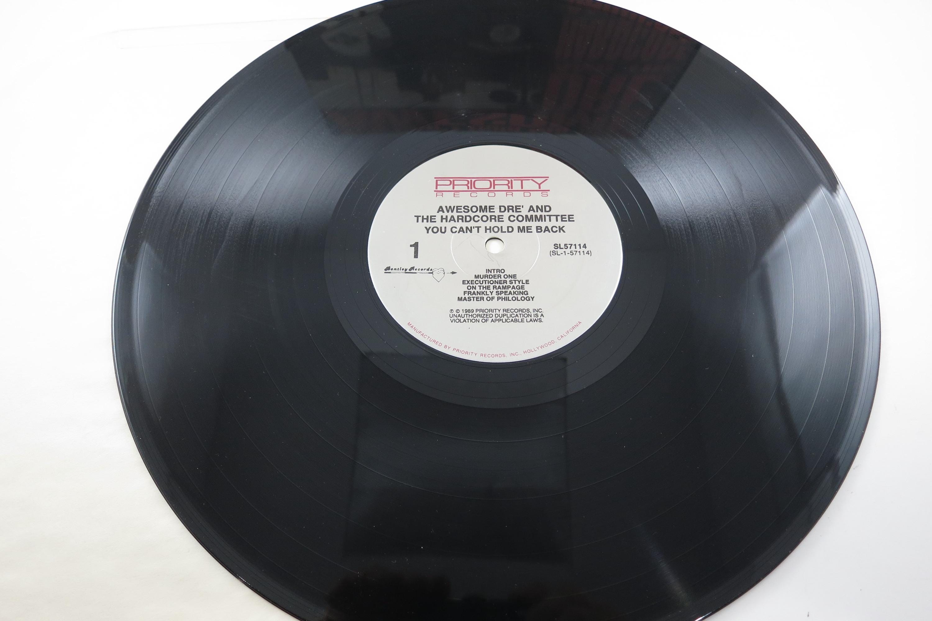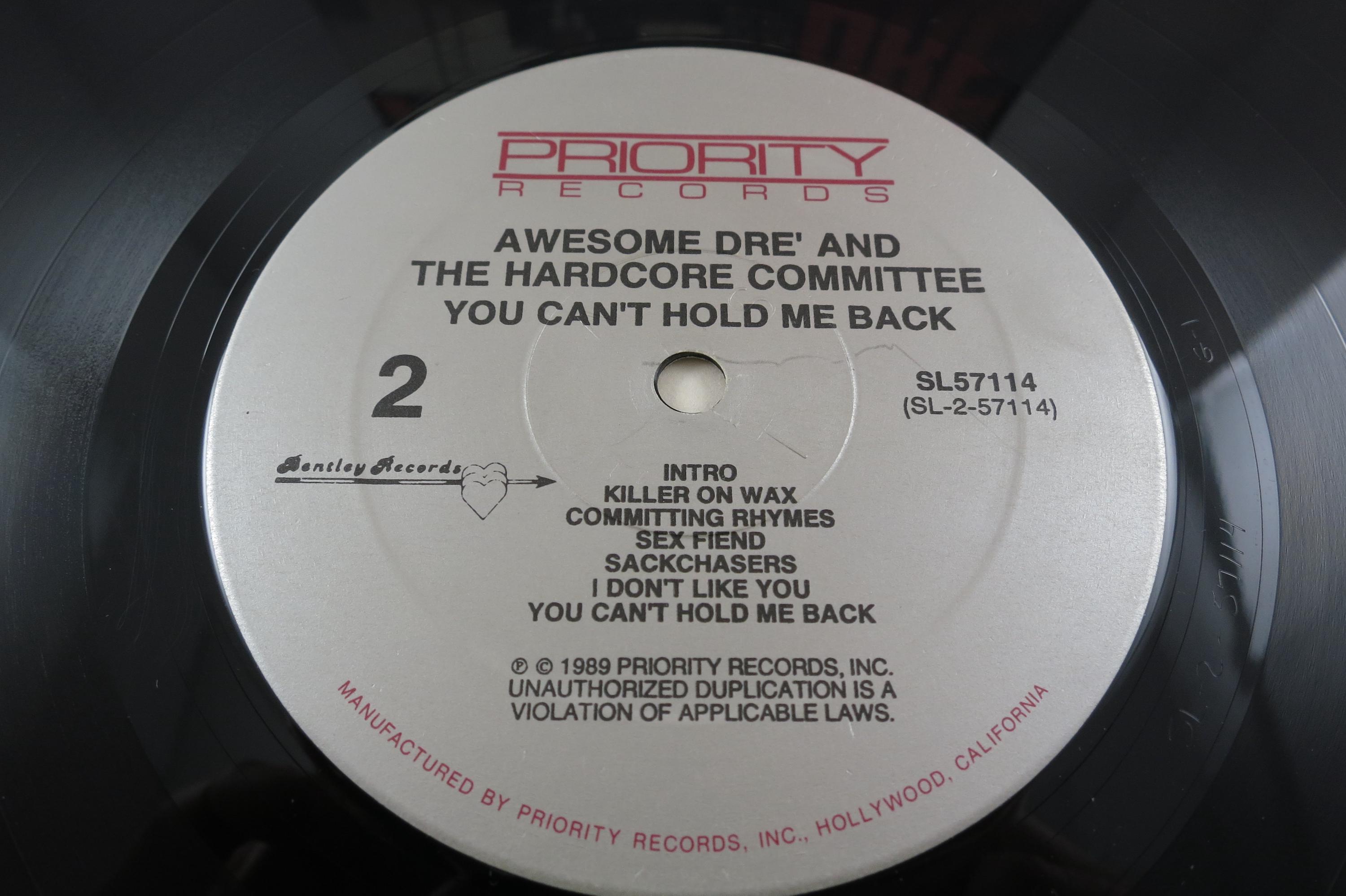Awesome Dre - You Can't Hold Me Back Vinyl LP - 1989 Hip Hop Record In Shrink. Original cover is in excellent condition and includes the inner paper sleeve and factory shrink wrap. Record is also excellent. Tracks are as follows